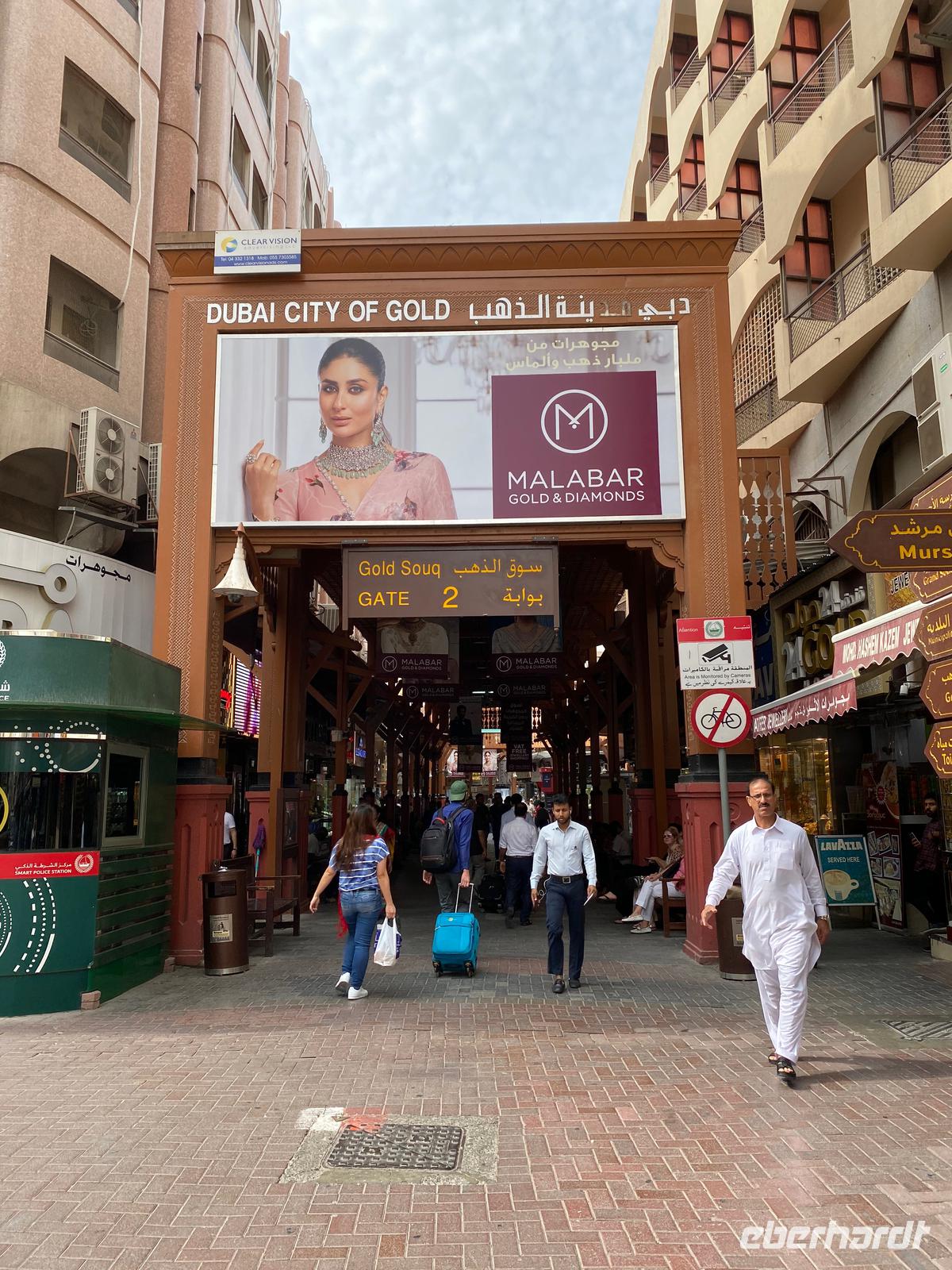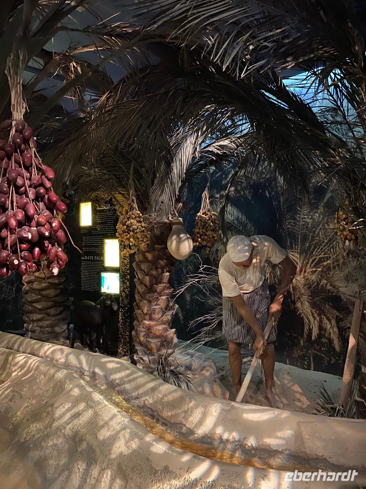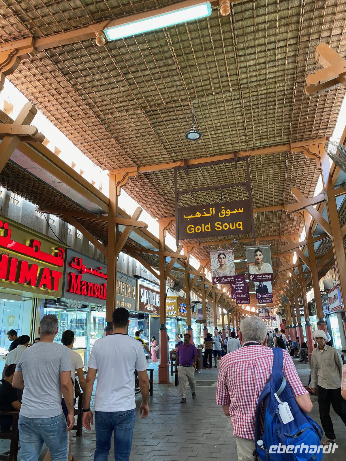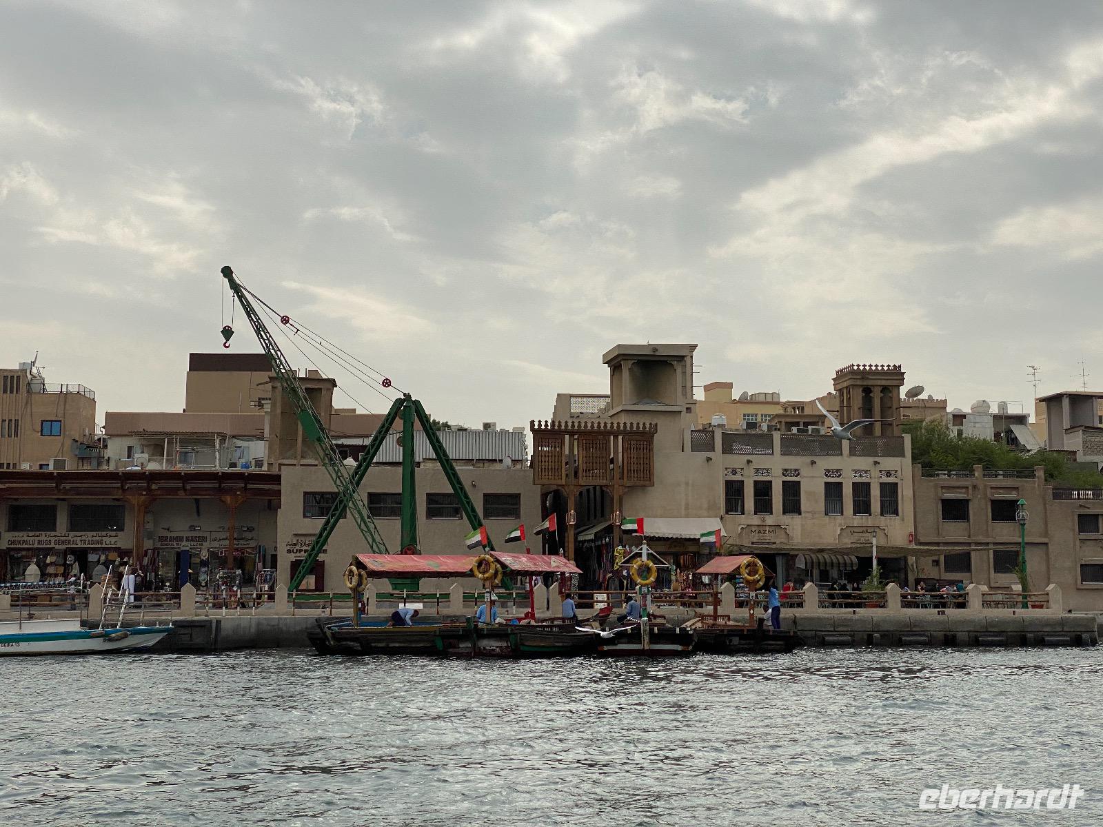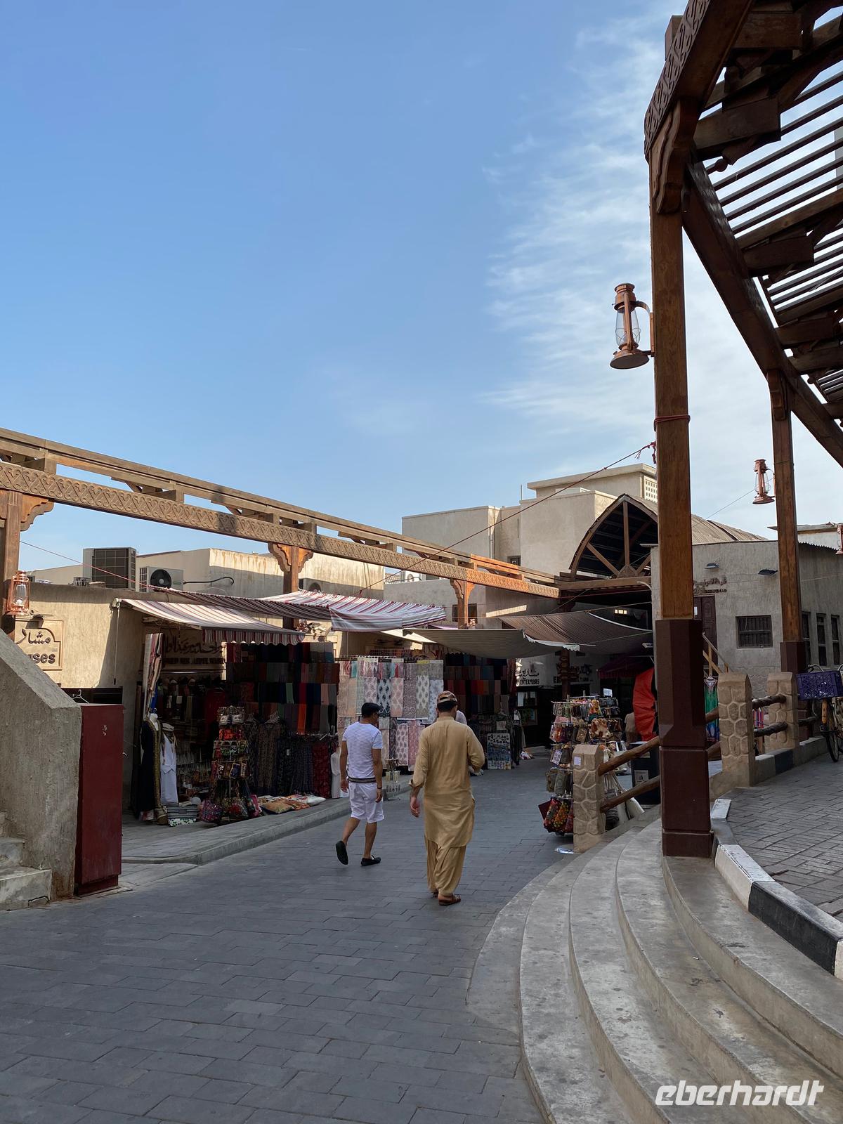 Heute wurden wir zur mittlerweile gewohnten Zeit mal nicht von unserem Bus abgeholt, sondern starteten unsere Tour zu Fuß. Durch die engen Gassen der ursprünglichen Altstadt mit ihren zahlreichen kleinen Läden spazierten wir bis zum Dubai Creek, wo wir mit einem Wassertaxi übersetzten. Wenig später erreichten wir bereits den Gewürzsouk sowie den Goldsouk. Hier blieb nun etwas Zeit zur freien Verfügung, um durch die Geschäfte zu schlendern, fleißig zu handeln und eventuell das eine oder andere Stück zu erstehen. Überall wurden uns verschiedenste Artikel angeboten und jeder warb mit den besten Produkten und günstigsten Preisen. Nach erfolgreichen Einkäufen trafen wir uns schließlich wieder und begaben uns mit dem Wassertaxi wieder zurück in den Stadtteil Dubai Bur, wo sich auch unser Hotel befand. Doch bevor wir in dieses zurückkehrten, besuchten wir noch das sich direkt gegenüber befindende Museum und tauchten ein in die Geschichte Dubais.