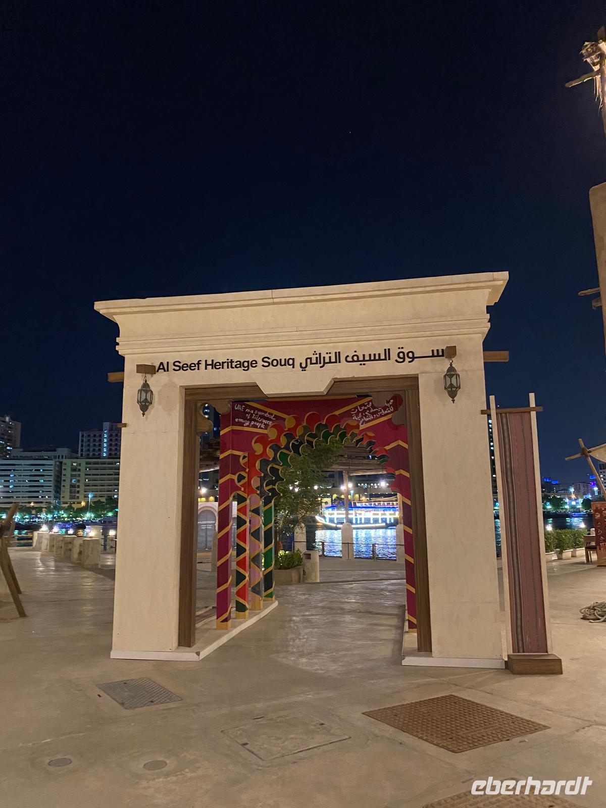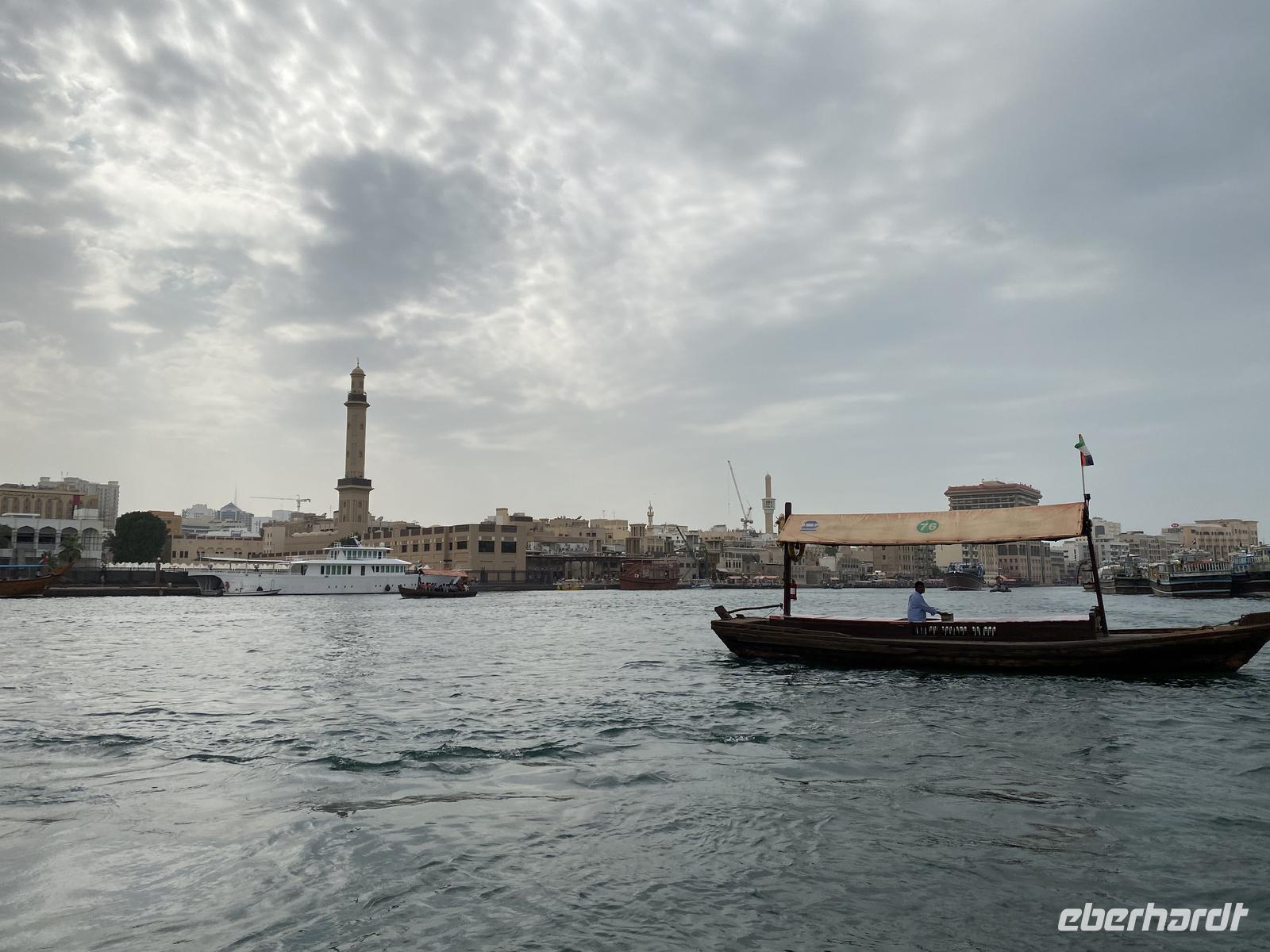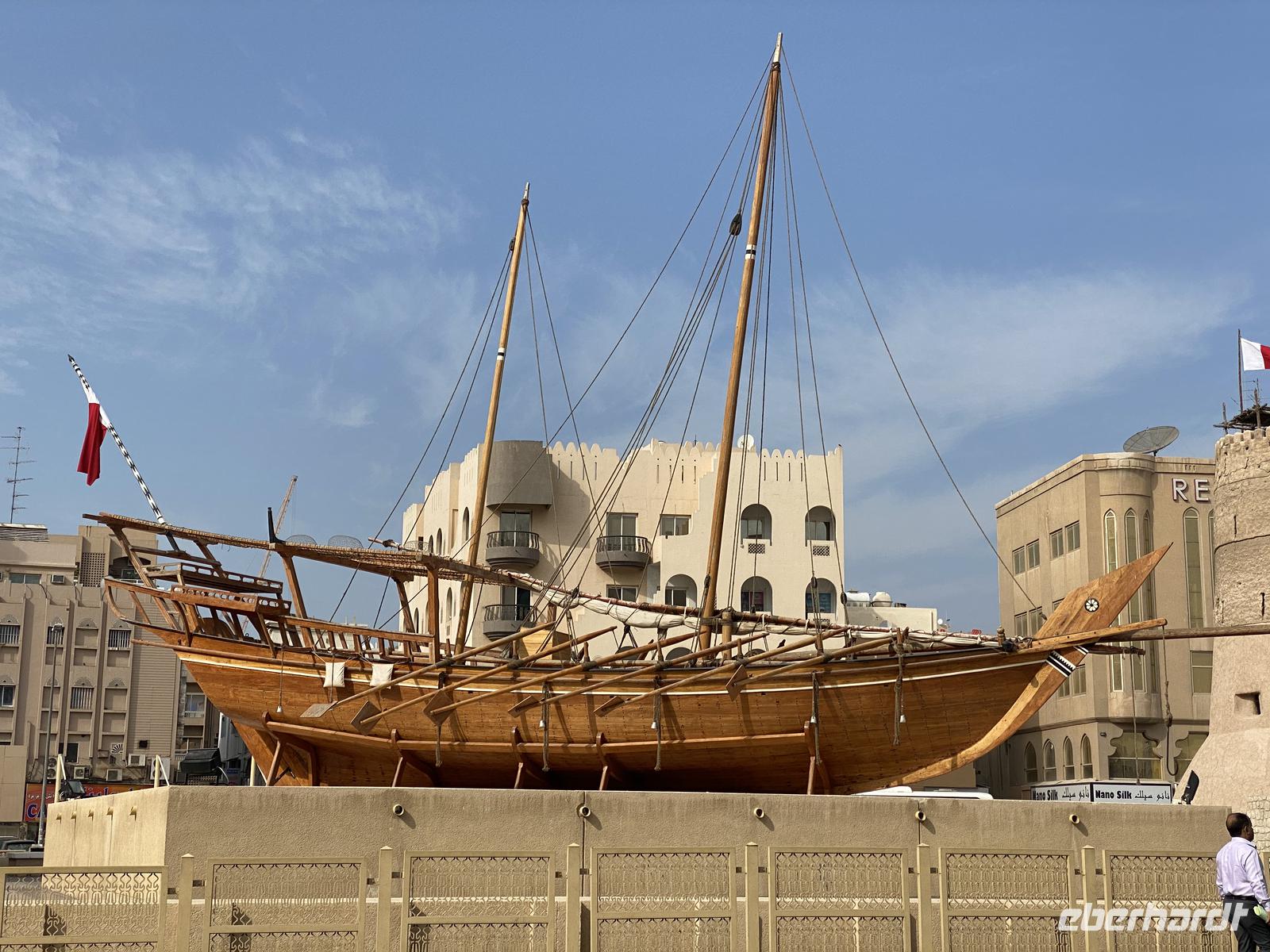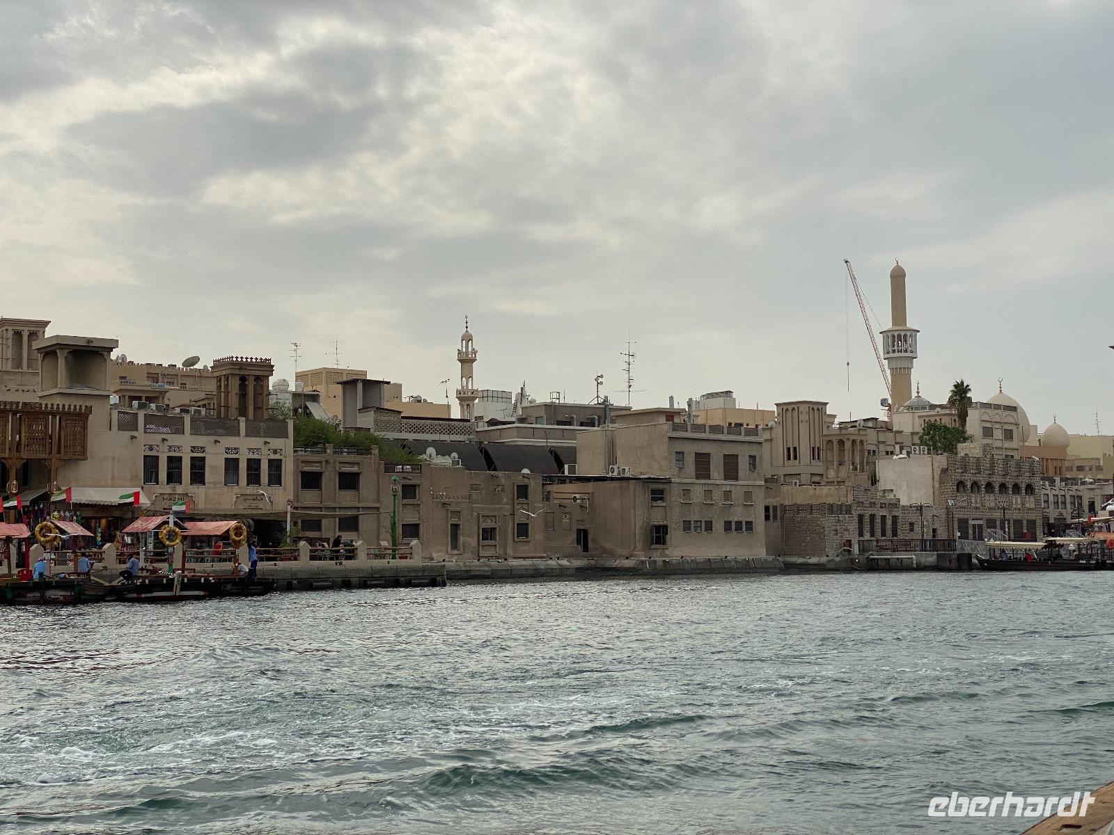 Heute wurden wir zur mittlerweile gewohnten Zeit mal nicht von unserem Bus abgeholt, sondern starteten unsere Tour zu Fuß. Durch die engen Gassen der ursprünglichen Altstadt mit ihren zahlreichen kleinen Läden spazierten wir bis zum Dubai Creek, wo wir mit einem Wassertaxi übersetzten. Wenig später erreichten wir bereits den Gewürzsouk sowie den Goldsouk. Hier blieb nun etwas Zeit zur freien Verfügung, um durch die Geschäfte zu schlendern, fleißig zu handeln und eventuell das eine oder andere Stück zu erstehen. Überall wurden uns verschiedenste Artikel angeboten und jeder warb mit den besten Produkten und günstigsten Preisen. Nach erfolgreichen Einkäufen trafen wir uns schließlich wieder und begaben uns mit dem Wassertaxi wieder zurück in den Stadtteil Dubai Bur, wo sich auch unser Hotel befand. Doch bevor wir in dieses zurückkehrten, besuchten wir noch das sich direkt gegenüber befindende Museum und tauchten ein in die Geschichte Dubais.