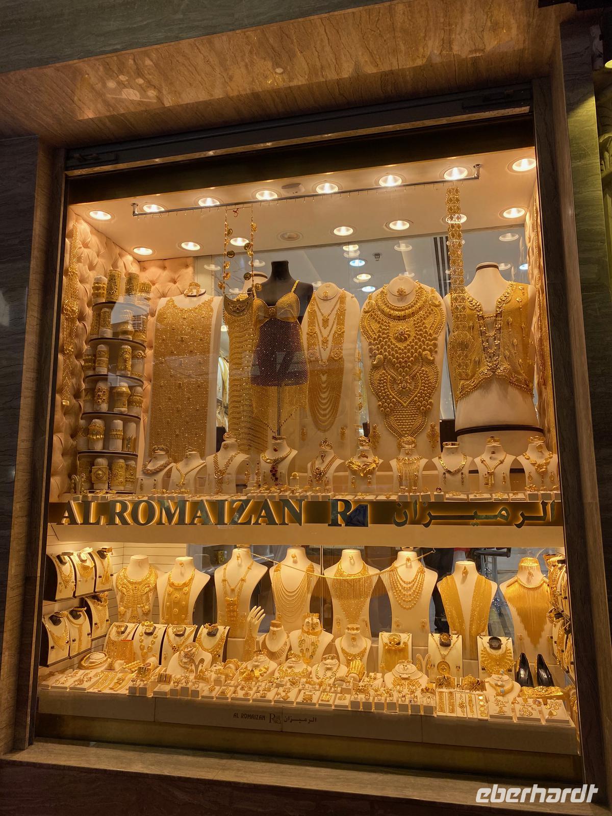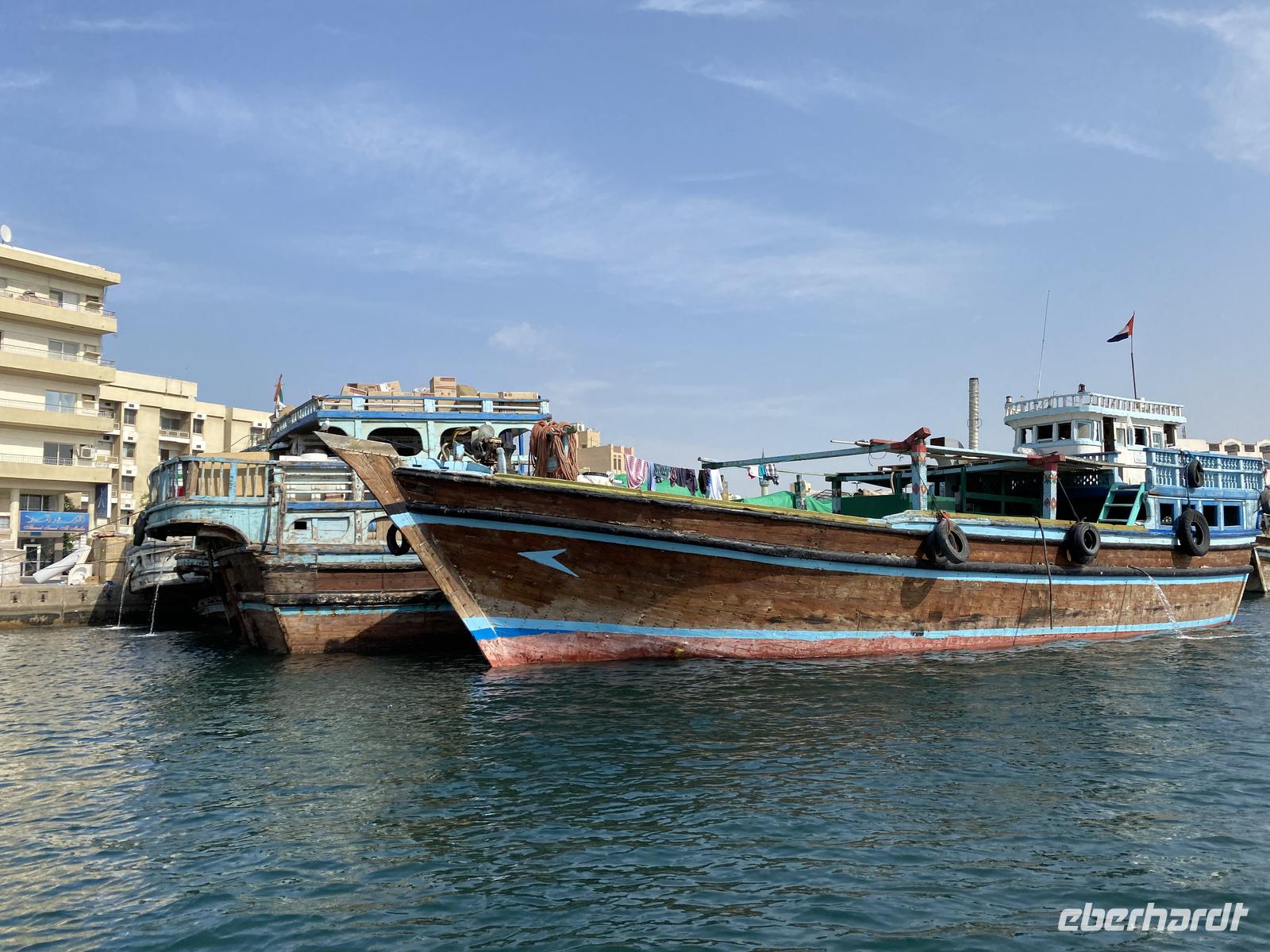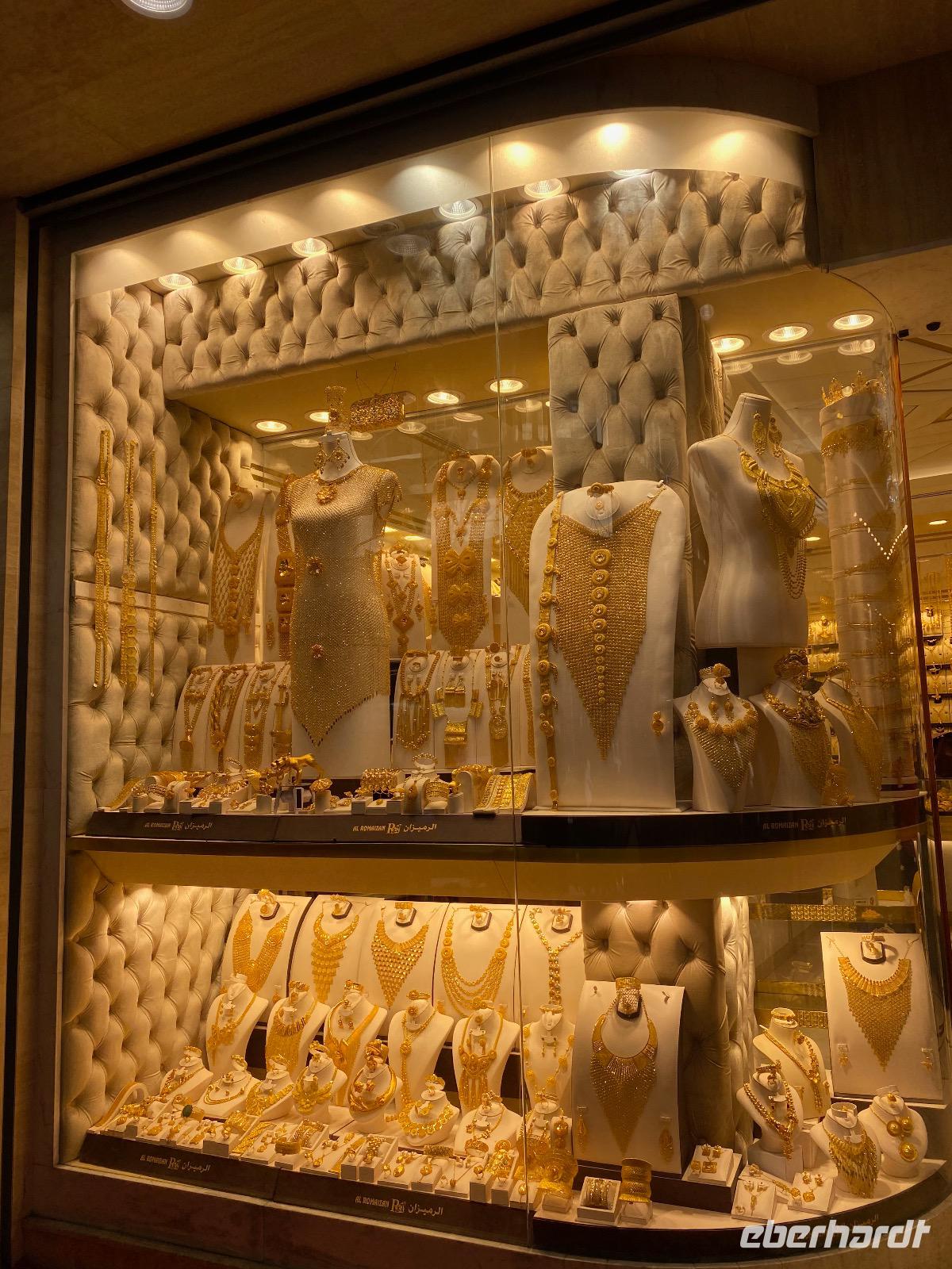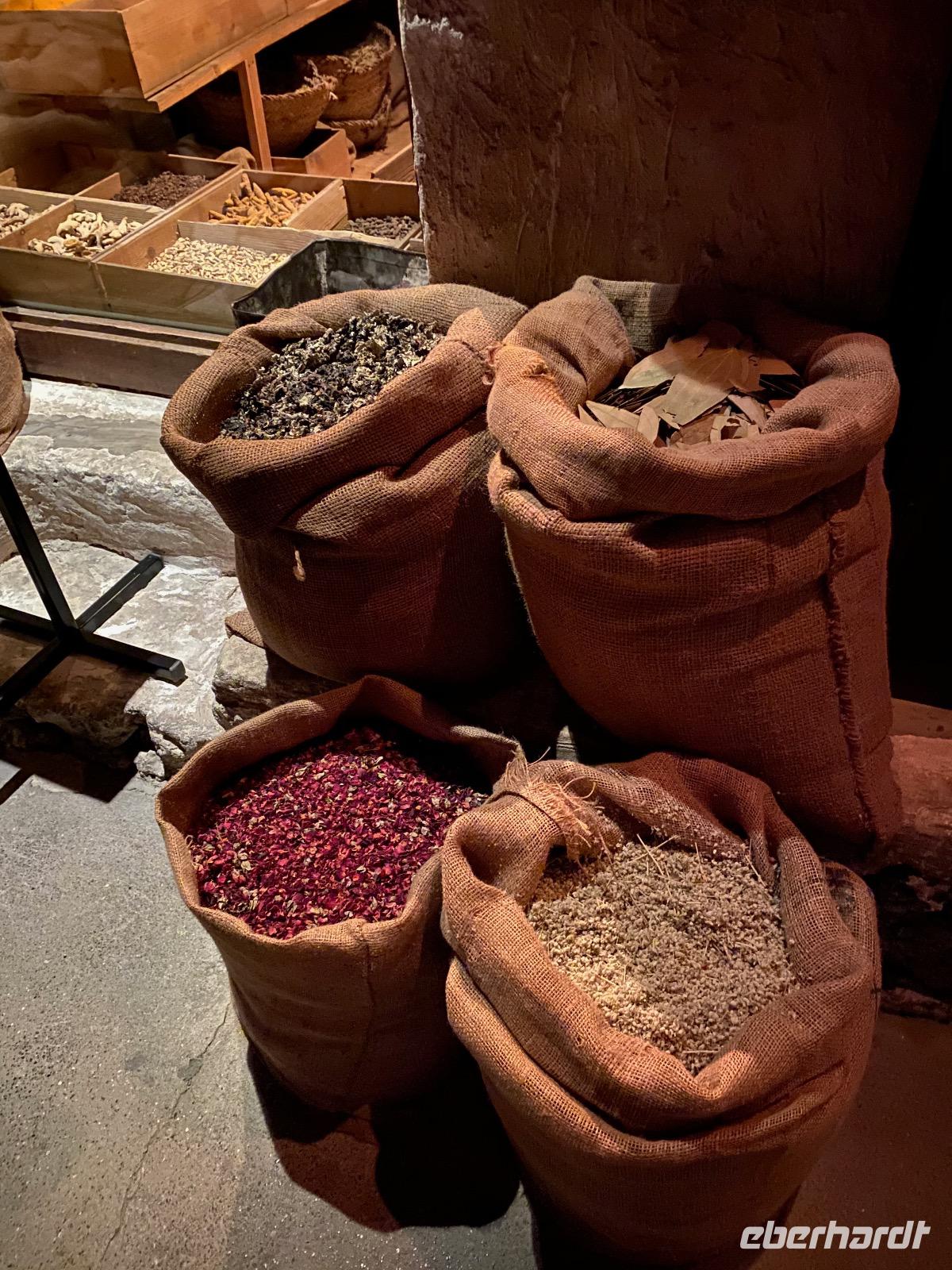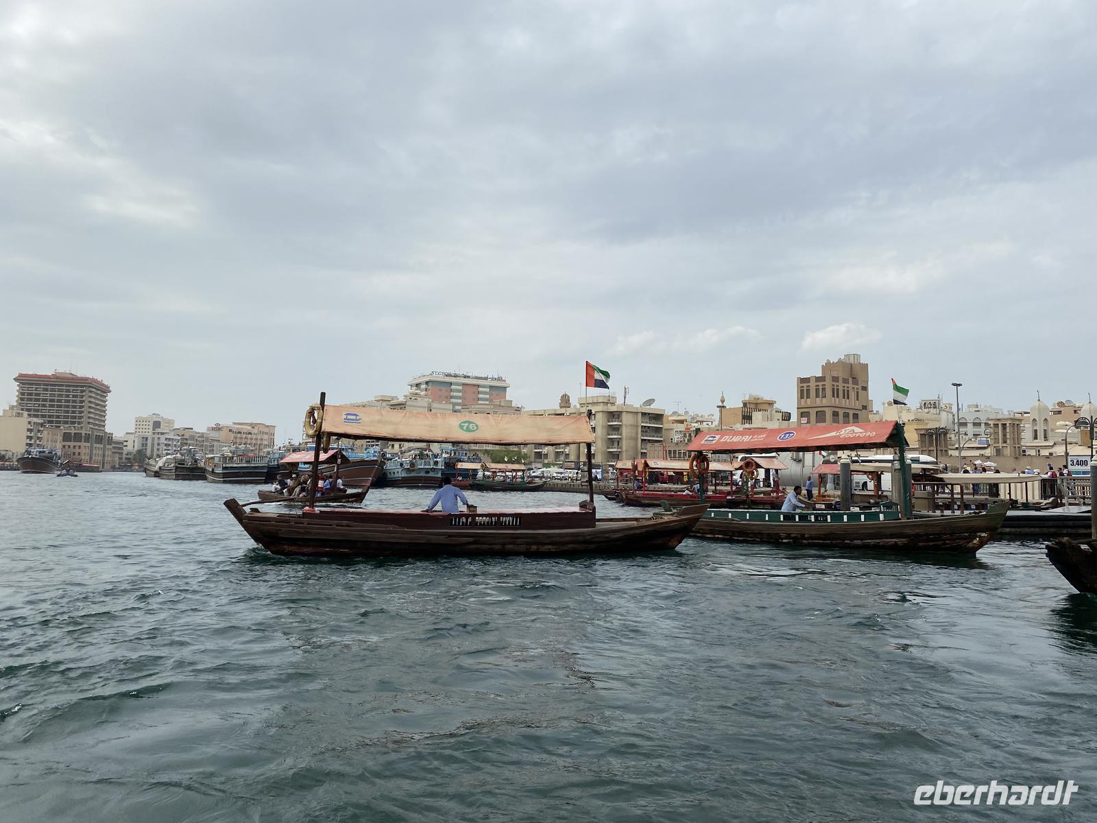Heute wurden wir zur mittlerweile gewohnten Zeit mal nicht von unserem Bus abgeholt, sondern starteten unsere Tour zu Fuß. Durch die engen Gassen der ursprünglichen Altstadt mit ihren zahlreichen kleinen Läden spazierten wir bis zum Dubai Creek, wo wir mit einem Wassertaxi übersetzten. Wenig später erreichten wir bereits den Gewürzsouk sowie den Goldsouk. Hier blieb nun etwas Zeit zur freien Verfügung, um durch die Geschäfte zu schlendern, fleißig zu handeln und eventuell das eine oder andere Stück zu erstehen. Überall wurden uns verschiedenste Artikel angeboten und jeder warb mit den besten Produkten und günstigsten Preisen. Nach erfolgreichen Einkäufen trafen wir uns schließlich wieder und begaben uns mit dem Wassertaxi wieder zurück in den Stadtteil Dubai Bur, wo sich auch unser Hotel befand. Doch bevor wir in dieses zurückkehrten, besuchten wir noch das sich direkt gegenüber befindende Museum und tauchten ein in die Geschichte Dubais.