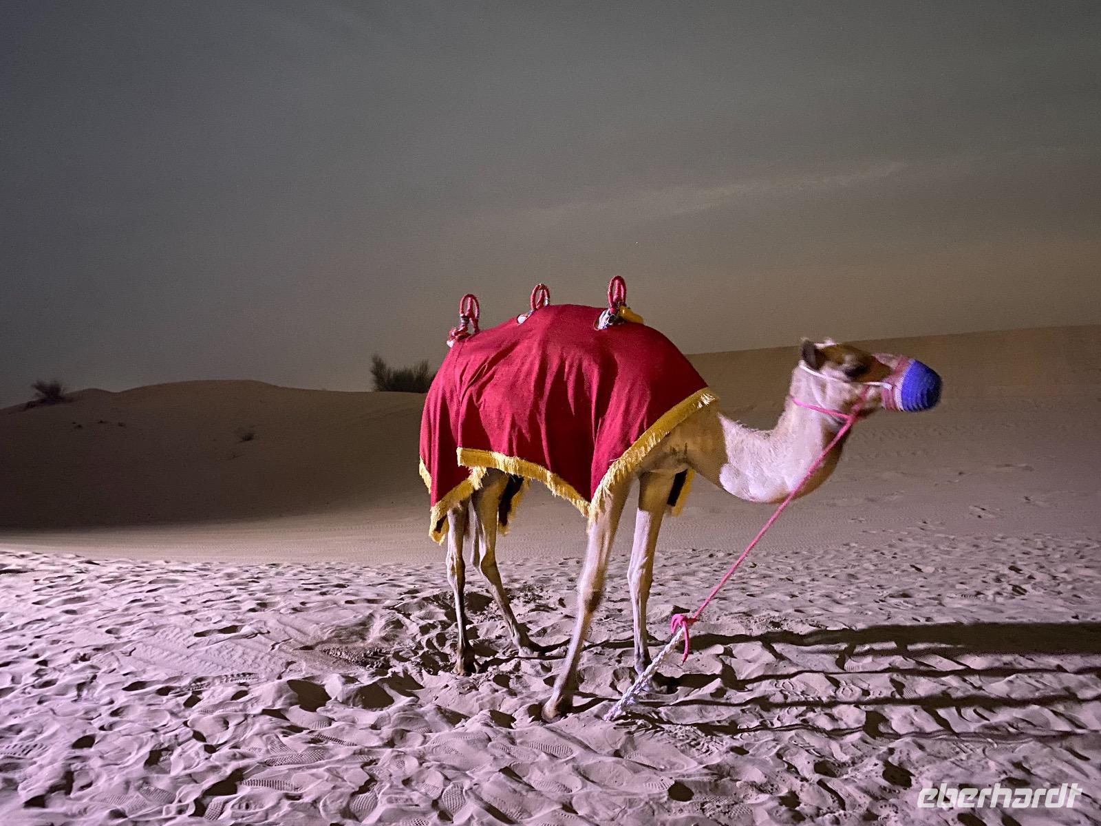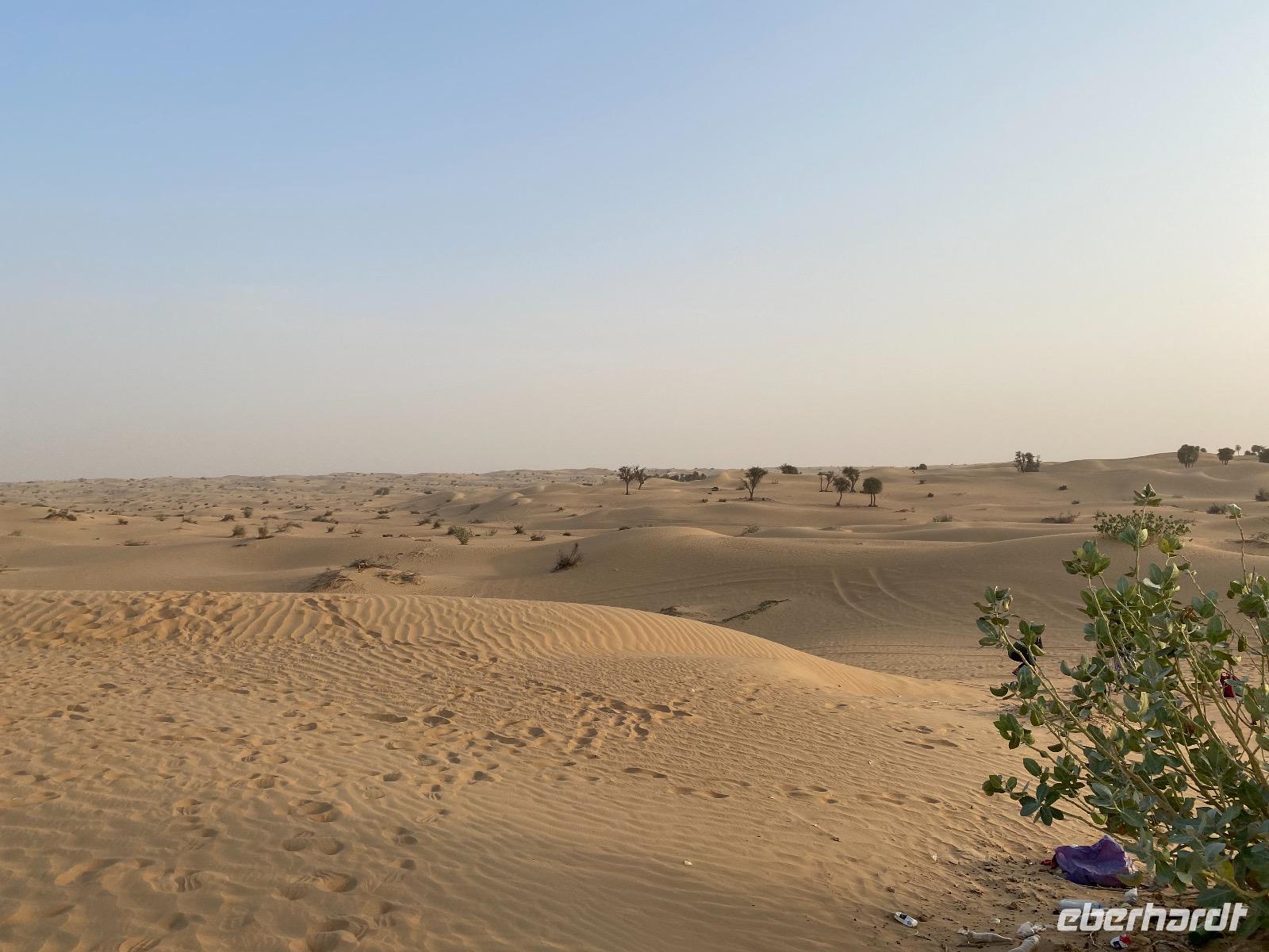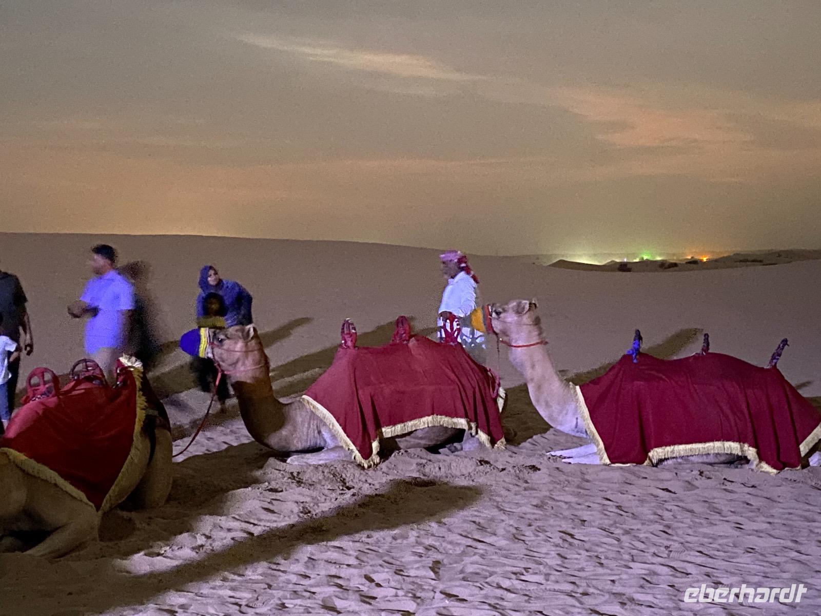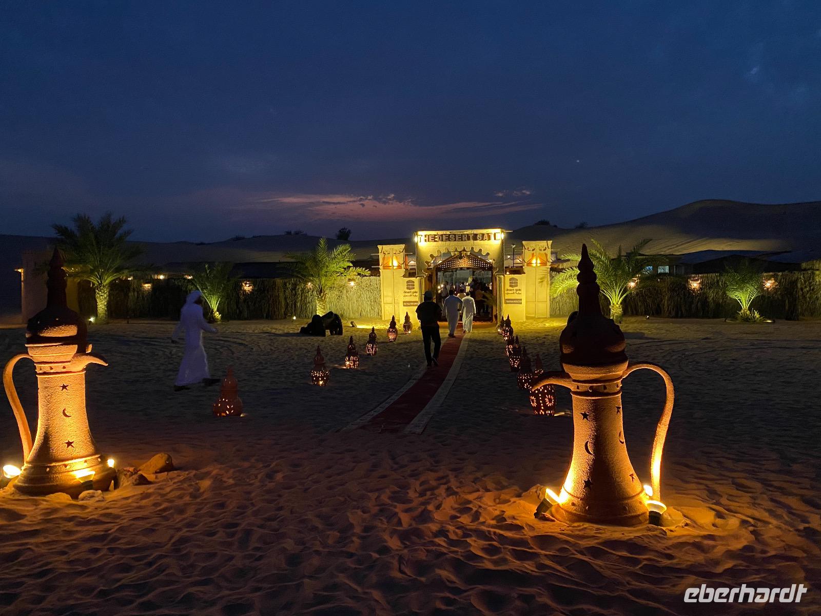 Anschließend blieb Zeit, um sich etwas auszuruhen, denn am Nachmittag erwartete uns bereits ein weiteres Highlight. Wir wurden von vier Jeeps abgeholt, mit welchen wir die Stadt Dubai schließlich verließen. Nach ca. 45minütiger Fahrt fanden wir uns in der Wüste wieder, wo wir zunächst einen kleinen Stop einlegten. Diesen nutzten wir für zahlreiche Fotos, während unsere Fahrer die Autos für die Weiterfahrt präparierten, indem die Luft von den Reifen abgelassen wurde. Anschließend ging es über die Dünen weiter. Je nachdem wie wir es wünschten, gaben die Fahrer ordentlich Gas und wir genossen die aufregende Fahrt. Als wir schließlich das Wüstencamp erreichten, erwartete uns zunächst eine kleine Falkenshow und wer wollte, konnte die Gelegenheit nutzen, auf einem Kamel zu reiten. Anschließend begaben wir uns in das Camp und gingen zu unseren Tischen. Hier konnten wir bereits eine Kleinigkeit essen und etwas trinken. Weiterhin bestand die Möglichkeit, sich ein Henna-Tattoo malen zu lassen, was der eine oder andere auch ausprobierte. Zahlreiche andere Aktivitäten wurden ebenfalls angeboten sowie verschiedene Tänze aufgeführt. Schließlich genossen wir ein leckeres Grillbuffet mit verschiedenen Spezialitäten. Im Anschluss traten wir mit den Jeeps wieder die Heimreise zurück in die Stadt an und wurden zu unserem Hotel gebracht. Hier ließ ein Teil der Reisegruppe den Abend noch im hoteleigenen Pub ausklingen.