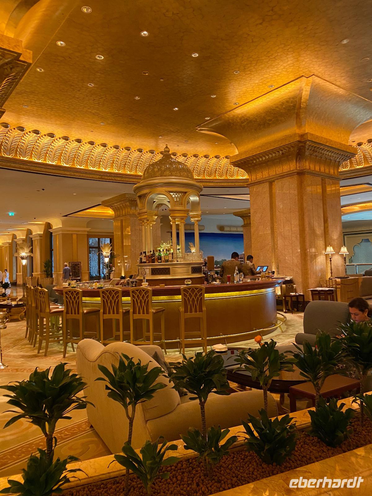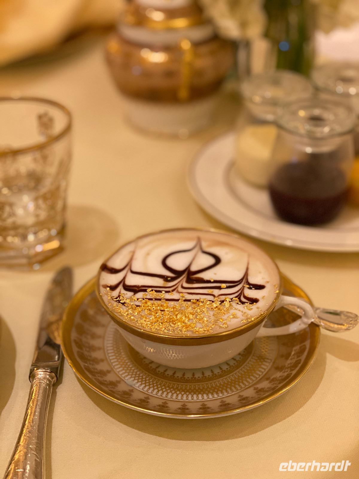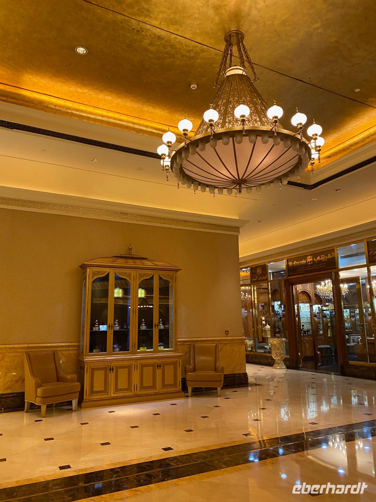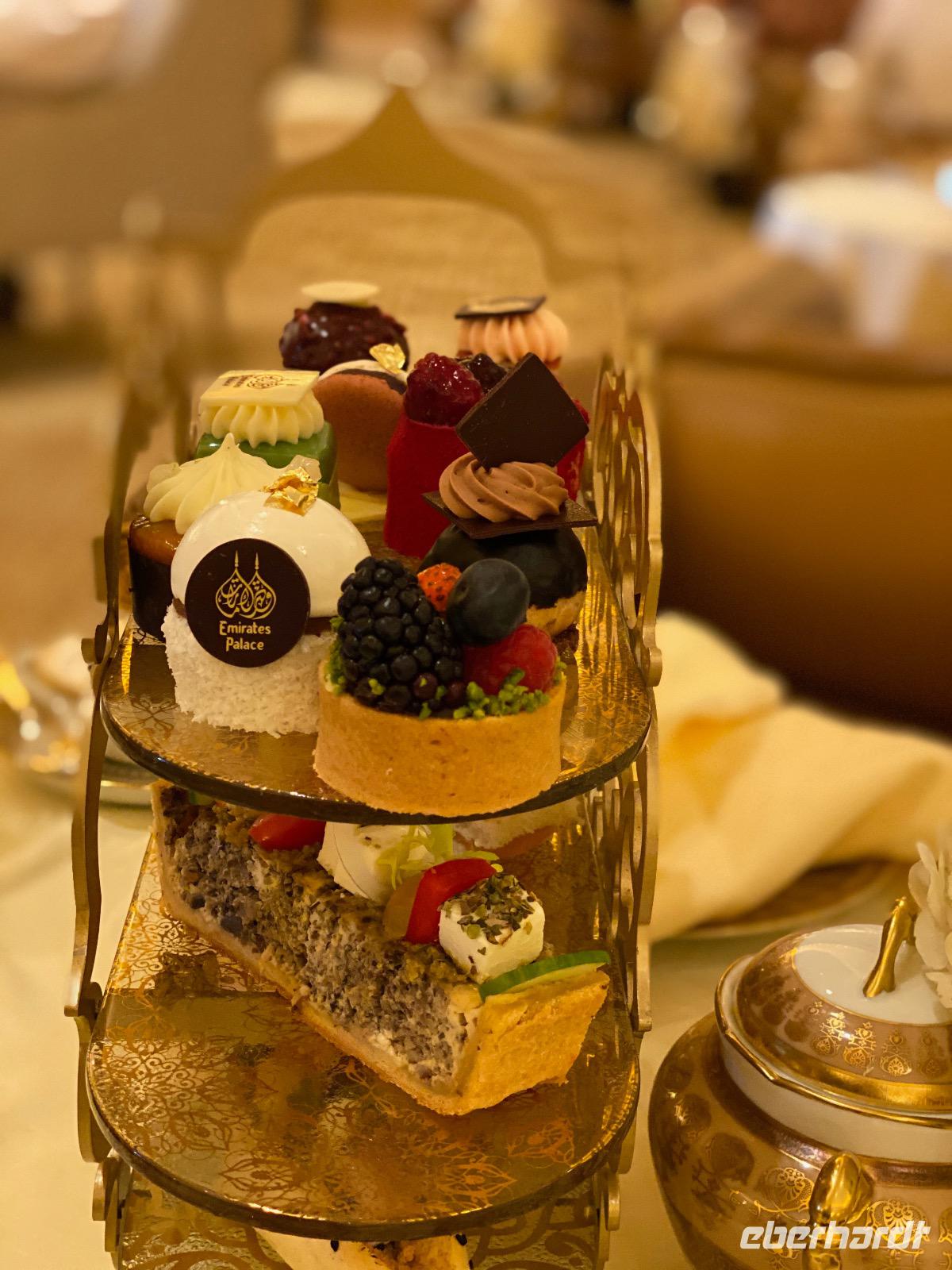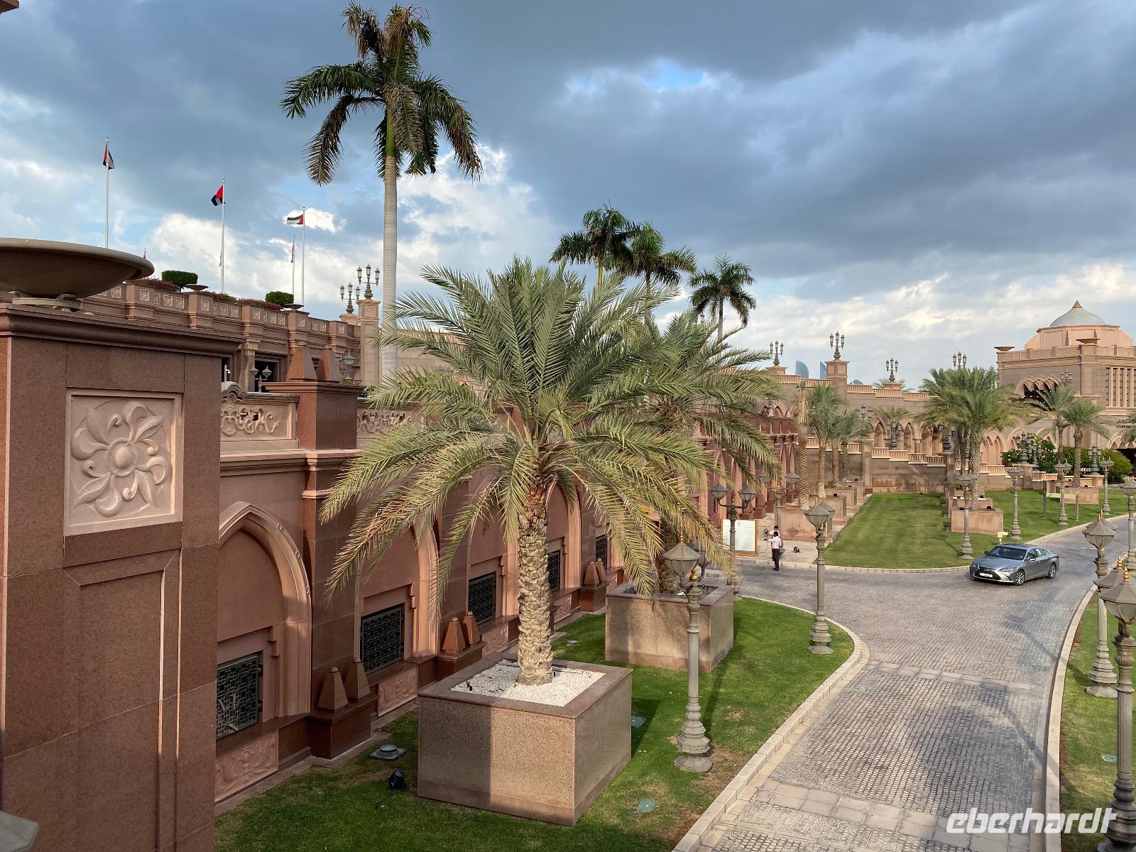 Zunächst erreichten wir Yas Island, wo wir die weltberühmte Formel 1-Strecke sowie die Ferrariworld von außen betrachten konnten. Vorbei am Louvre ging es schließlich zur Insel Abu Dhabi. Hier fuhren wir entlang der 8 Kilometer langen Strandpromenade und konnten schließlich einen wunderbaren Blick auf die Skyline der Stadt genießen. Bei einem weiteren Fotostop konnten wir das Emirates Palace sowie auch das neue Hotel, das Fairmont Hotel, fotografieren. Anschließend waren wir zur Teestunde im luxuriösesten Hotel des Emirates geladen, dem Emirates Palace, Teil der Kempinski Hotelkette. Durch die prunkvolle Lobby gelangten wir zu unseren Plätzen. Hier wurde uns Cappuccino, dekoriert mit Goldstaub, serviert. Dazu wurden Etageren mit zahlreichen Köstlichkeiten, von herzhaften Kleinigkeiten bis süßen Leckereien, gereicht. Wir genossen die kulinarischen Höhepunkte sowie die einzigartige Atmosphäre bei angenehmer Klaviermusik im Hintergrund. Anschließend begaben wir uns über die imposante Treppe nach unten, an deren Ende uns Wasserspiele erwarteten. Von hier hatten wir noch einmal einen tollen Blick auf das gewaltige Bauwerk, bevor wir mit dem Bus weiterfuhren. Wenig später fuhren wir vorbei am Palast des Scheiches von Abu Dhabi, welcher gleichzeitig auch immer der Präsident der Vereinigten Arabischen Emirate ist.