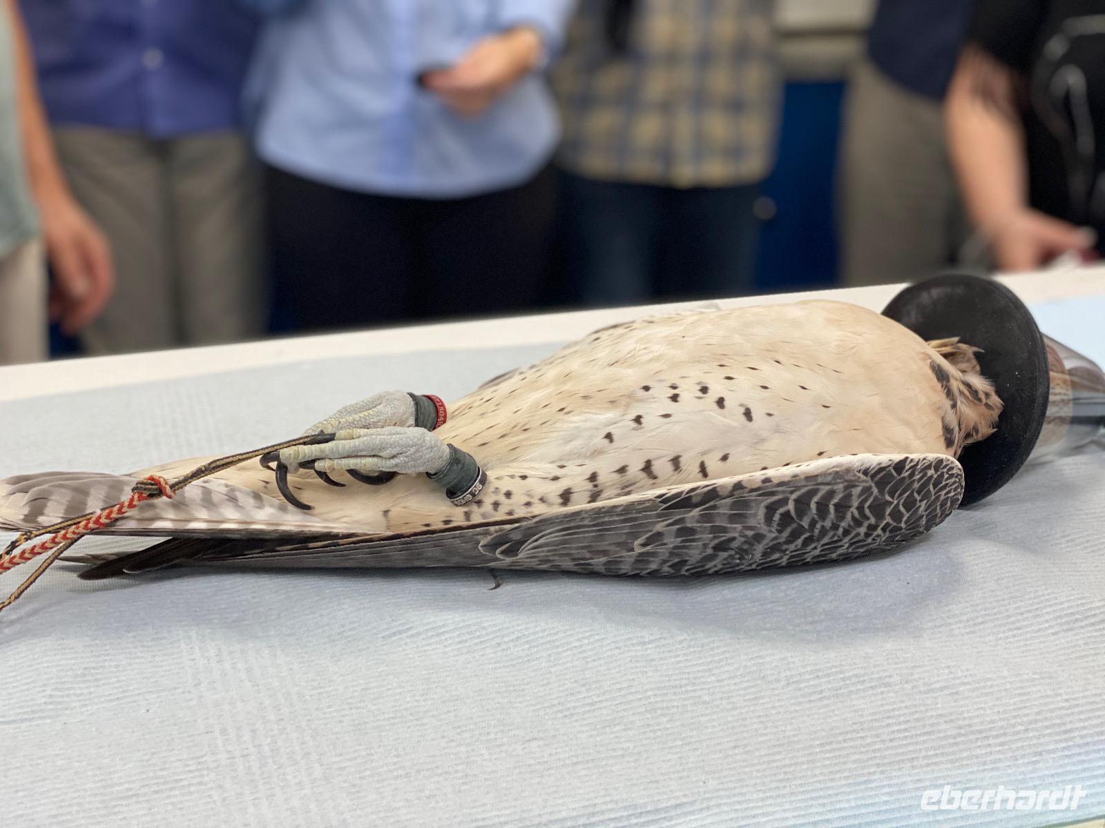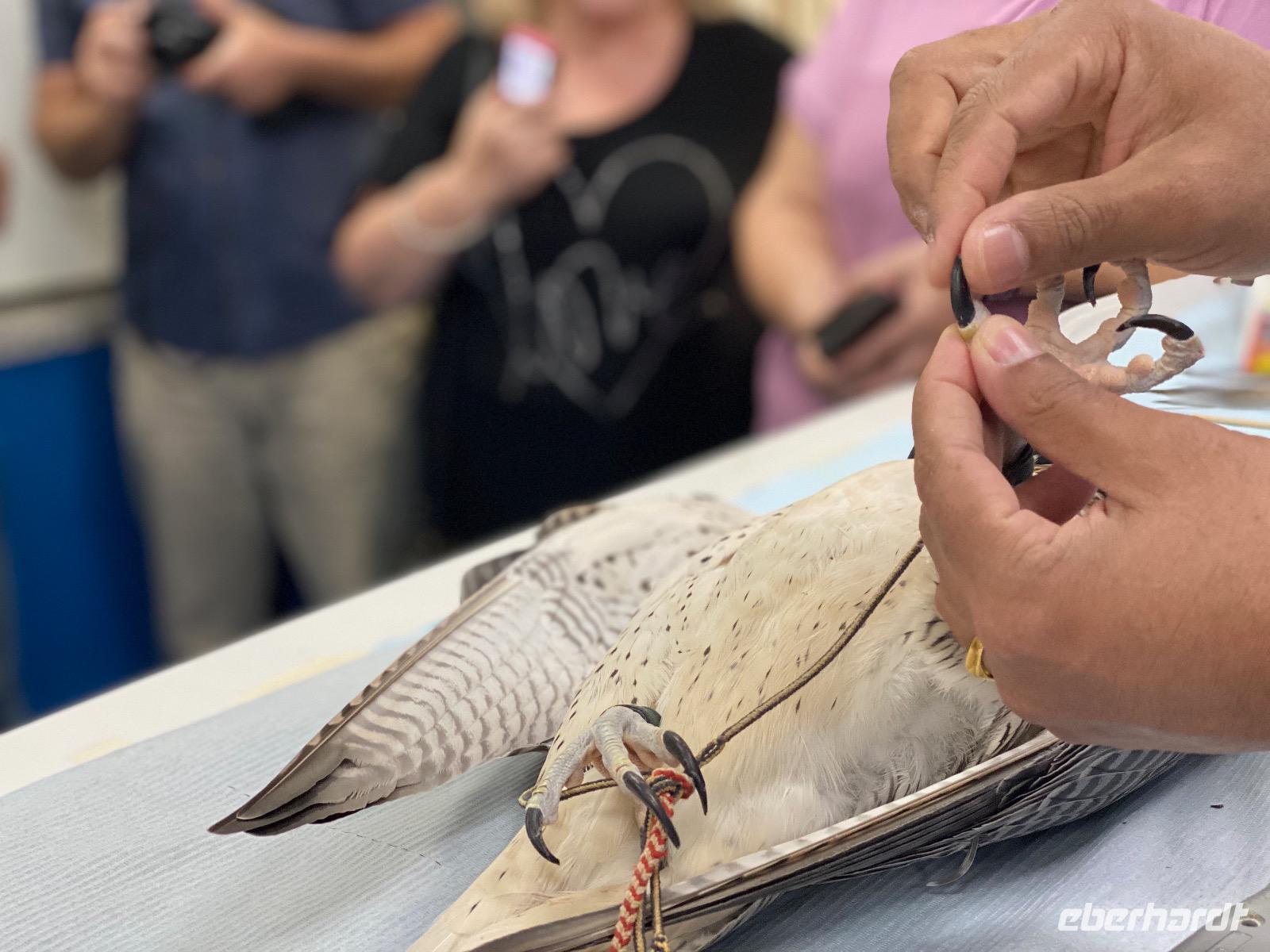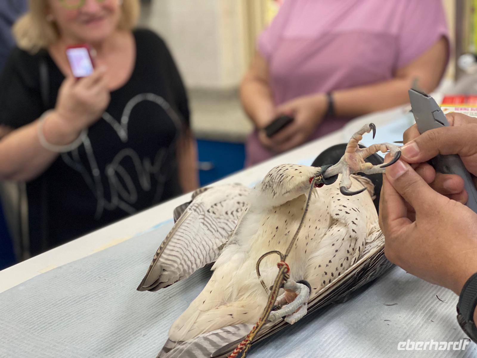 Heute mussten wir mal etwas eher aufstehen als gewohnt, denn vor uns lag ein langer und ereignisreicher Tag. Nach dem zeitigeren Frühstück erwartete uns unser Bus bereits, um mit uns in das Emirat Abu Dhabi zu fahren. Heute wollten wir das größte und reichste Emirat erkunden und dafür standen einige interessante Punkte auf unserem Programm. Doch zunächst lag eine ca. 2-stündige Busfahrt vor uns. Diese verging jedoch recht schnell, denn unser Reiseleiter Ibrahim nutzte die Zeit, um uns ausführlich über die arabische Kultur zu berichten, insbesondere über die Unterschiede zwischen Gastarbeitern und Einheimischen. Schließlich erreichten wir unser erstes Tagesziel, die Falkenklinik von Frau Dr. Müller. Hier erhielten wir eine Führung durch die Anlage und konnten sogar einen Arzt bei einem kleineren Eingriff an einem Falken über die Schulter schauen. Anschließend bestand die Möglichkeit, eines der Tiere selbst auf dem Arm zu halten, bevor wir schließlich sogar die Fütterung eines Vogels miterlebten bzw. daran mitwirken konnten. Weiterhin erfuhren wir, dass ein Falke zwischen 2.000 und 500.000 Euro kosten kann. Was für unvorstellbare Summen! Mit vielen neuen Eindrücken verließen wir die Falkenklinik schließlich und fuhren nach Abu Dhabi.