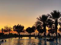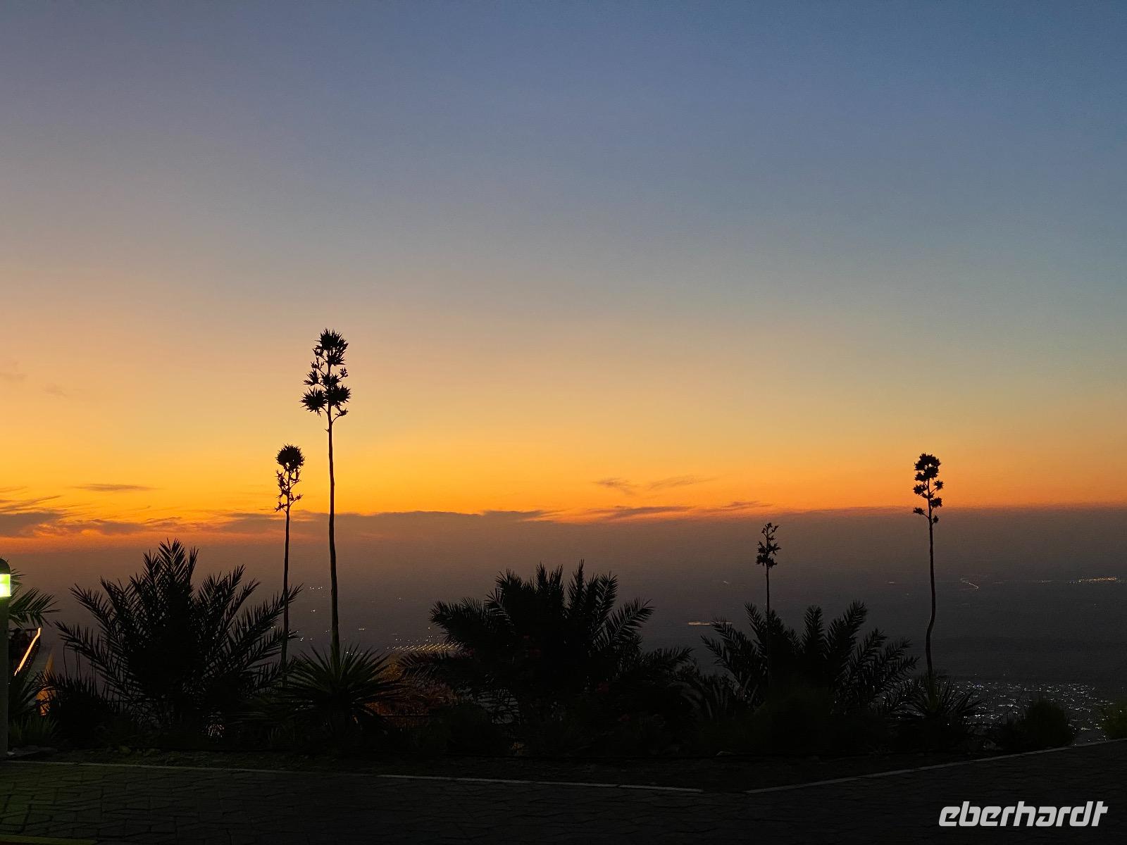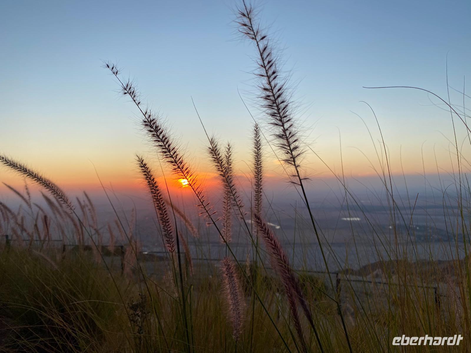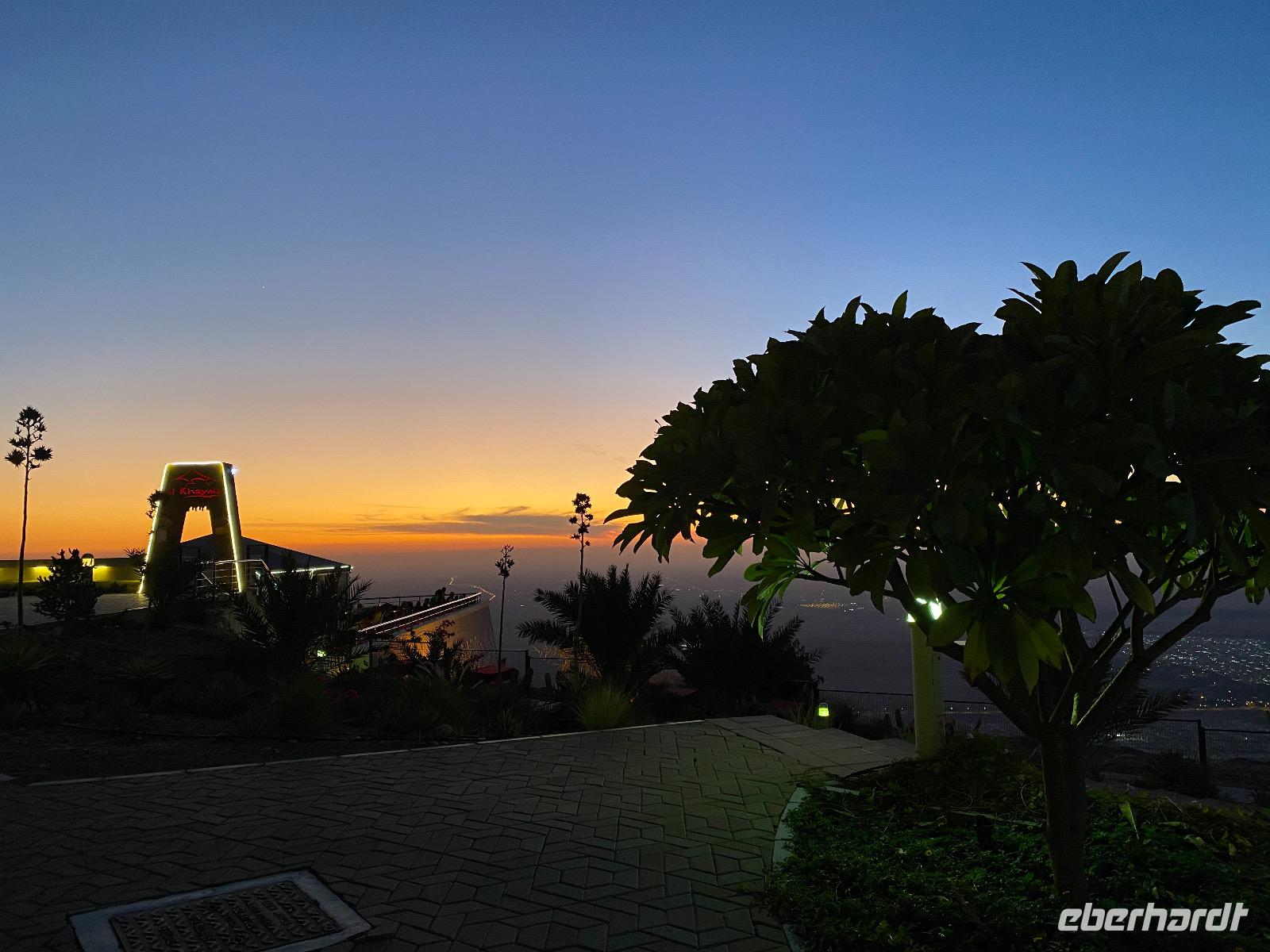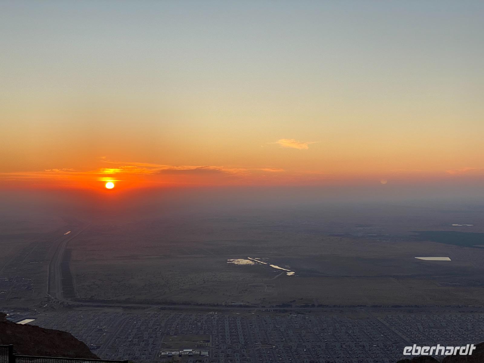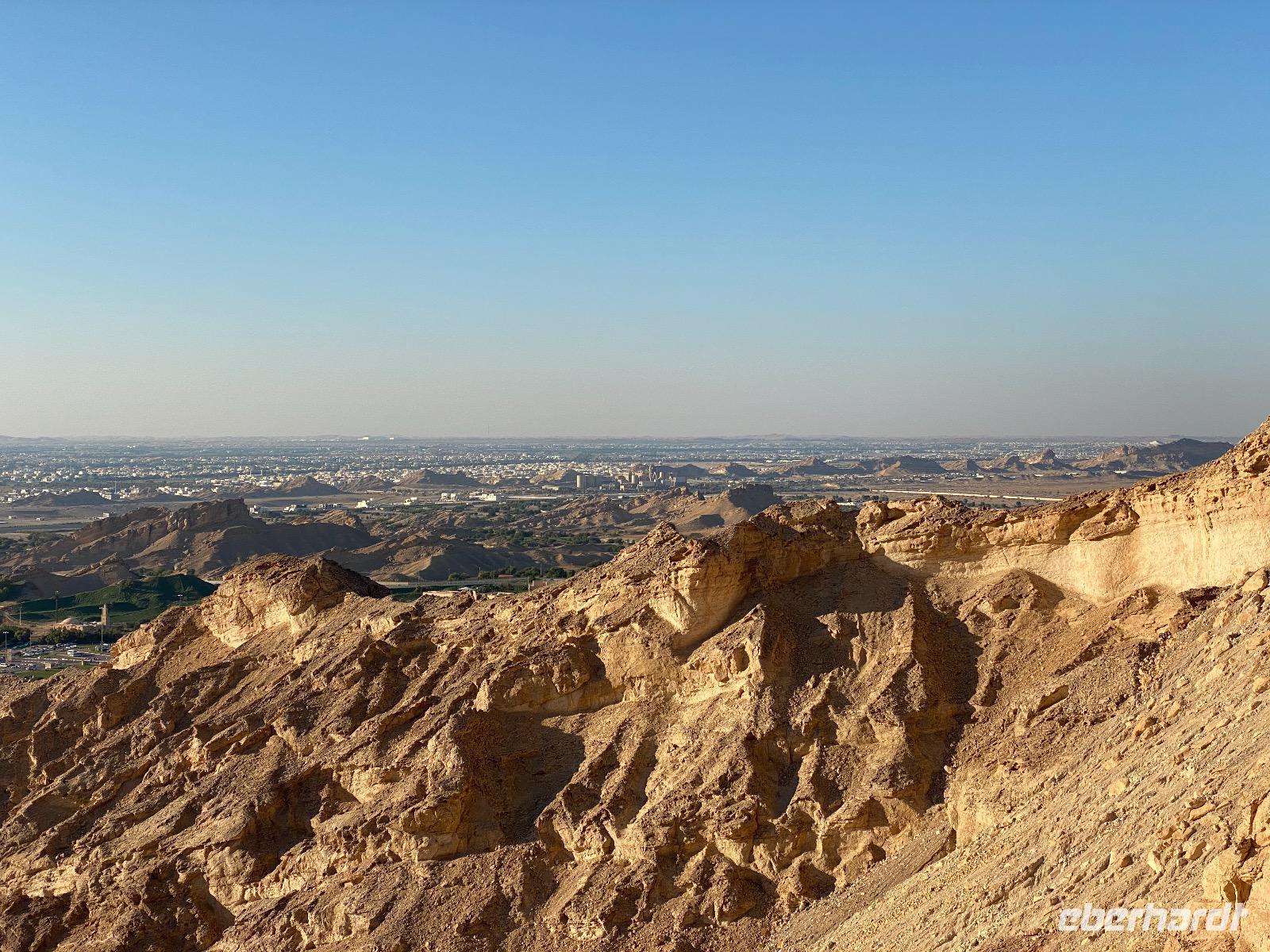 Anschließend ging es noch zum Jebel Hafeet, welcher mit 1.240 Metern der höchste Punkt der Emirate ist. Auf einer engen, kurvigen Straße fuhren wir nach oben, wo uns sofort etwas andere Temperaturen erwarteten. Es wehte ein etwas kühler Wind und wir waren froh, unsere Jacken dabei zu haben. Von der Terrasse des Mercure Hotels genossen wir einen wunderschönen Blick auf die Umgebung. Dazu erwartete uns ein Grill-Buffet, sodass wir unsere Reise bei einem leckeren Essen mit einmaligem Ausblick ausklingen lassen konnten. Bald ging auch schon die Sonne unter, was uns noch einmal tolle Fotomotive bescherte. Satt und zufrieden begaben wir uns schließlich zurück zum Bus und fuhren wieder nach Dubai zu unserem Hotel. Hier konnten wir zunächst alle noch einmal auf unsere Zimmer gehen und die letzten Sachen zusammenpacken.