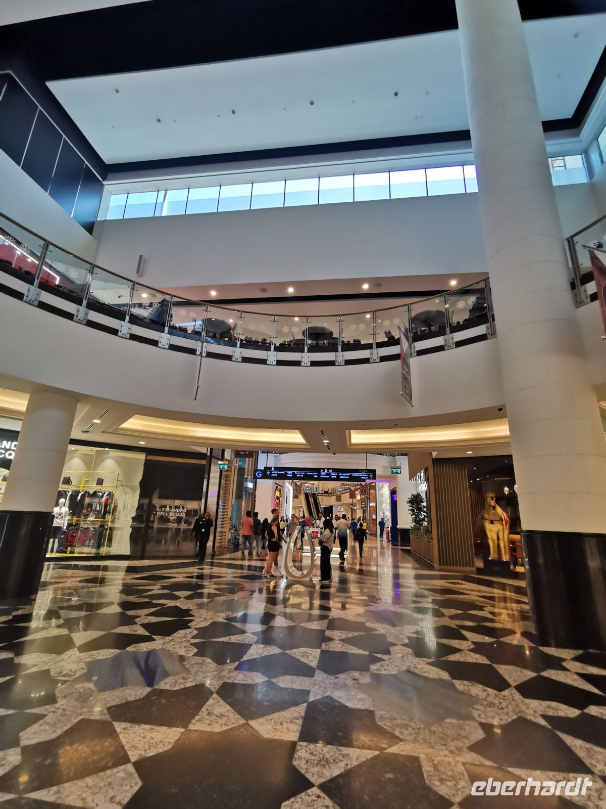 Unser nächster Programmpunkt ist das sich über drei Etagen der Dubai Mall erstreckende Aquarium. Das insgesamt elf Meter hohe und 10.000 Kubikmeter Wasser fassende Becken beherbergt unzählige Haie, Barsche, Rochen, Krokodile, Riesenkrabben und Robben. Ein Erlebnis der besonderen Art hier ist die Durchquerung eines schmalen Tunnels mitten im Becken, dessen Glaswände gerade mal 19 cm dick sind und man sich darin wirklich selbst wie ein Meeresbewohner vorkommt. Alle Gäste sind begeistert.