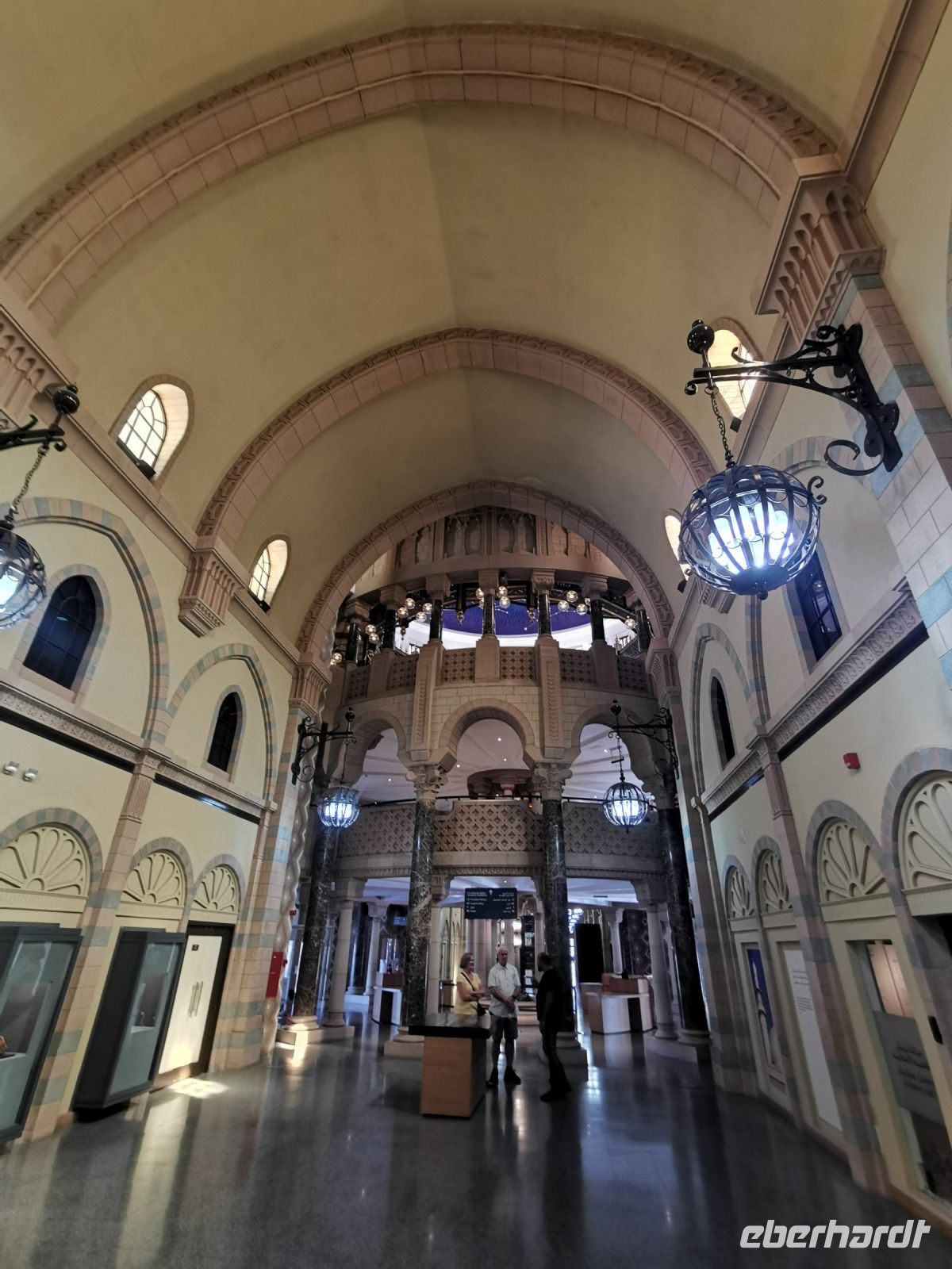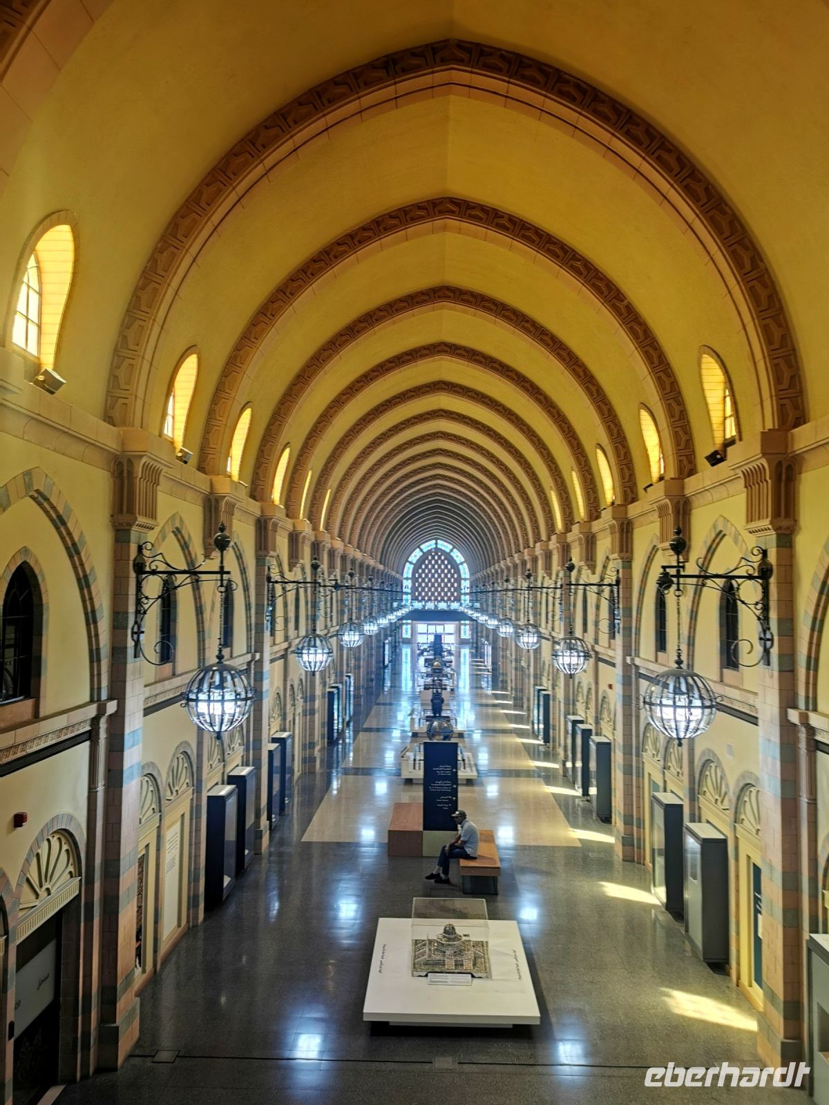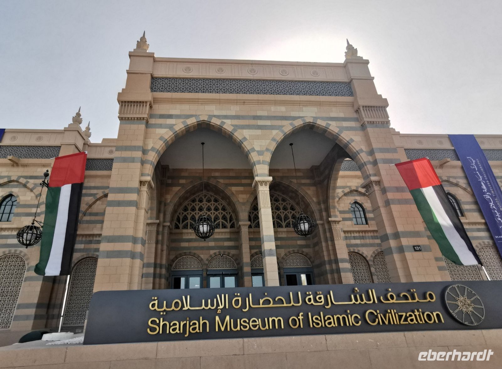 Direkt am Meeresarm befindet sich das Islamische Museum, welches mit sieben Galerien und zwei Etagen einen guten Einblick in die Entwicklungen der Geschichte des Islam gibt. Im Erdgeschoß sehen wir vor allem Artefakte des islamischen Glaubens, wie alte Koranausgaben, Gebetsteppiche und Kaligraphien. Auf der gegenüberliegenden Seite entdecken wir die Errungenschaften arabischer Wissenschaftler und Astronauten, vor allem unzählige Modelle der verschiedenen Arten der Wassergewinnung. Dieses Thema hat in den Zeiten vor der Elektrifizierung den Alltag der arabischen Halbinsel mehr als alles andere bestimmt. In der Mitte des Museums befindet sich eine eindrucksvolle Kuppel, ähnlich wie in einer Moschee, nur daß die Kuppel von Sternzeichen geschmückt wird.