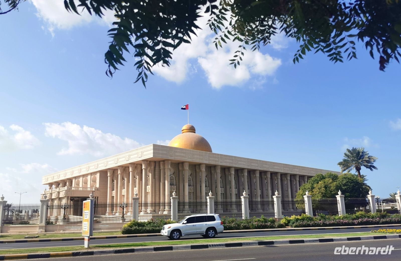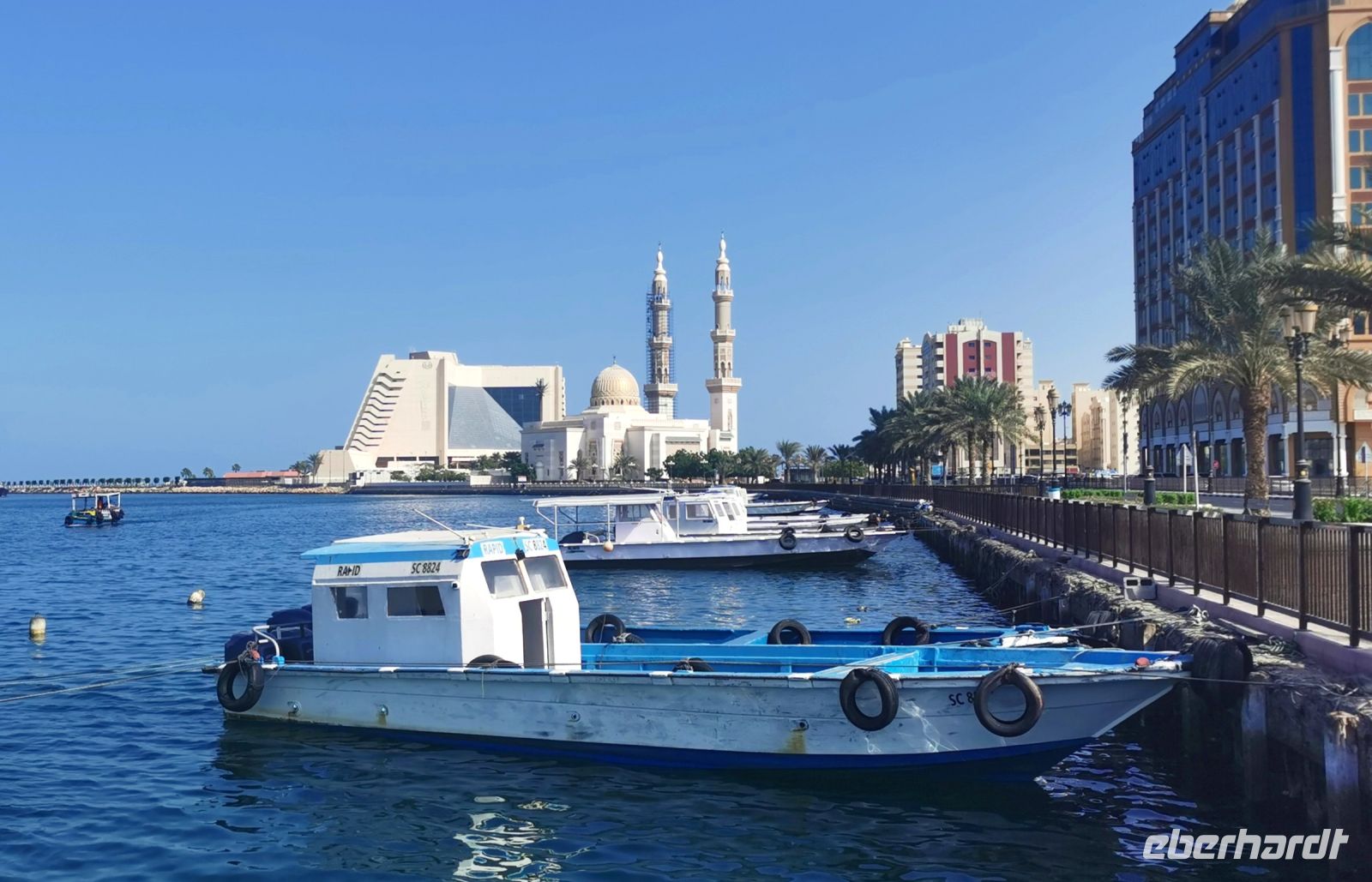 Am heutigen Morgen fahren wir in das Nachbaremirat Sharjah. Dort geht es konservativer und viel ruhiger zu als beim großen Nachbarn Dubai. Hier sind 90 Prozent der Bevölkerung Emiratis. Sharjah hat eine Gesamtfläche von 235 km². Etwa 1,5 Millionen Menschen leben in diesem Emirat, dessen Motto die Erhaltung und Bewahrung einheimischer Traditionen und ursprünglicher Kultur ist.