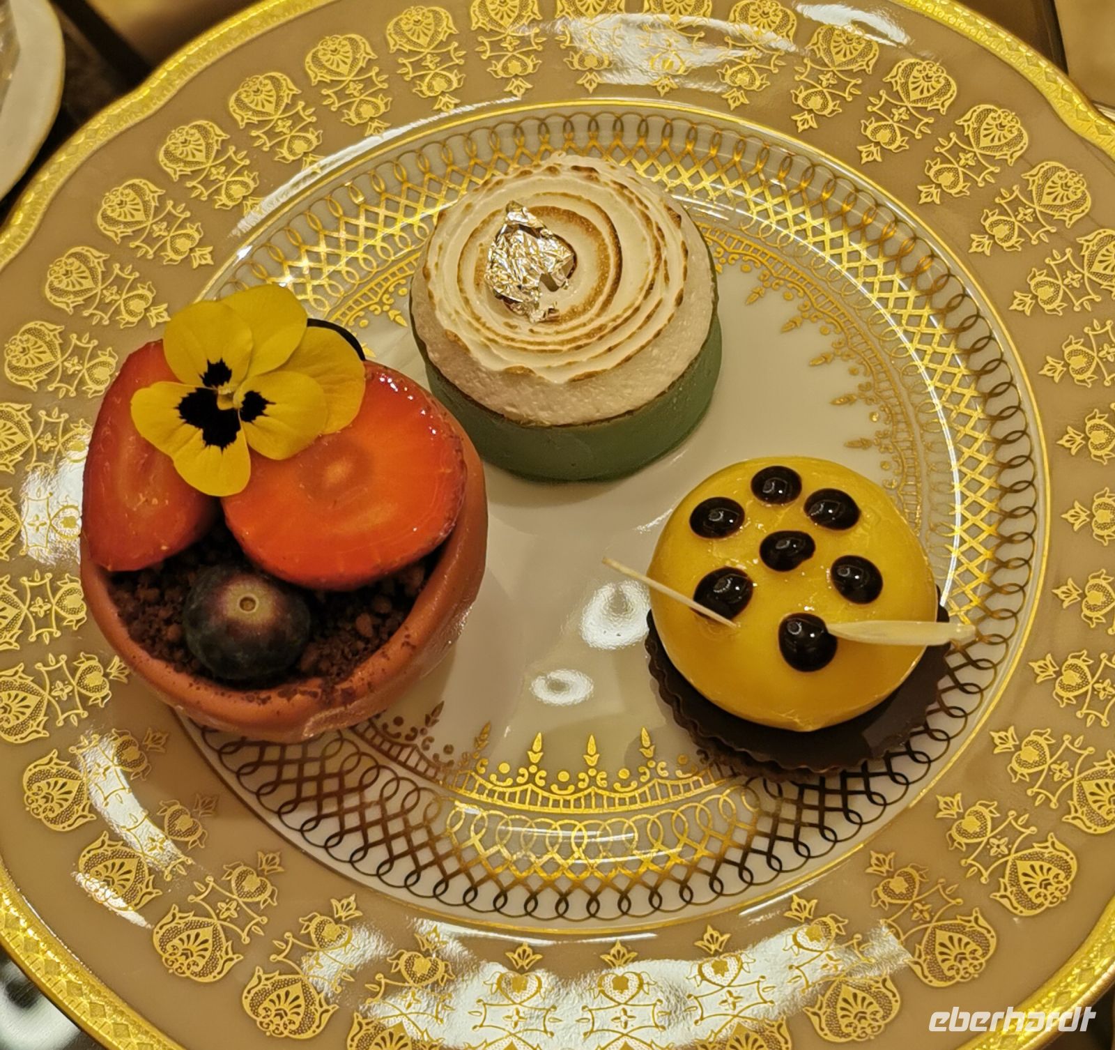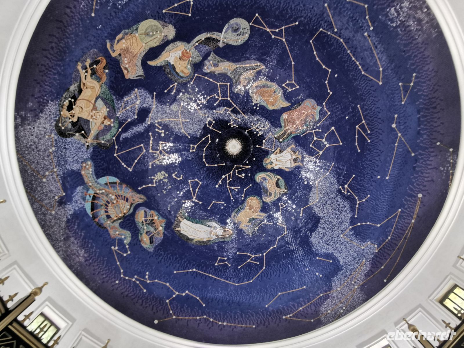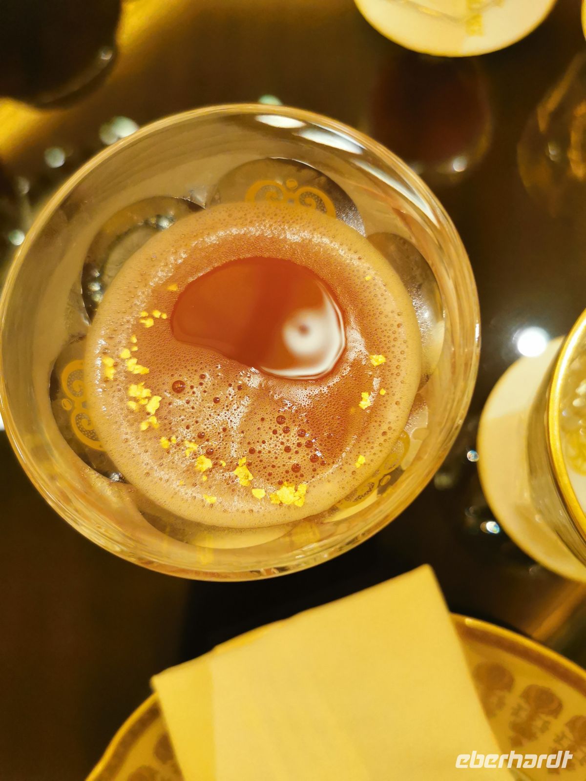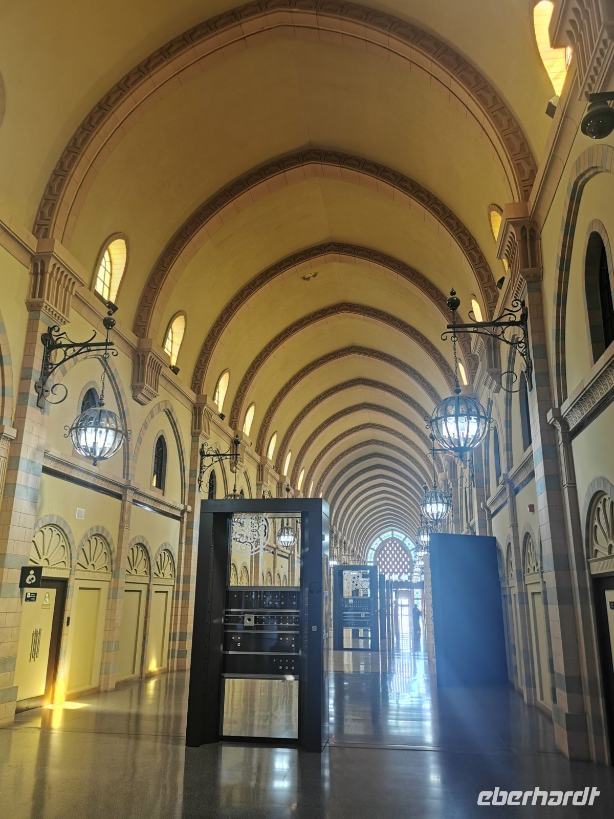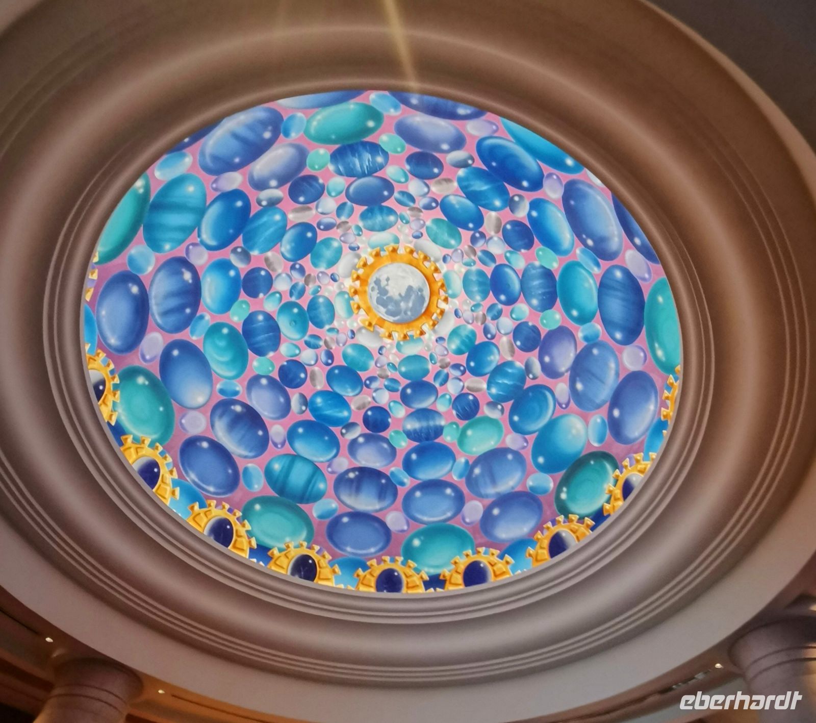 Wir begeben uns staunend durch die über und über mit Gold verzierte Lobby, bewundern die riesige Kuppel gleich nach dem Eingang und werden in gemütliche Sofalandschaften begleitet, wo bereits zierliches Porzellan mit Goldrand und Silberbesteck auf uns warten. Eine freundliche Kellnerin serviert uns süße und herzhafte Häppchen und auch der berühmte Cappuchino mit echtem Blattgold läßt nicht lange auf sich warten. Alle Gäste sind begeistert und spazieren noch eine Weile andächtig durch das geschmackvoll gestaltete Foyer und stellen fest, daß selbst in den Toiletten alles gülden glänzt.