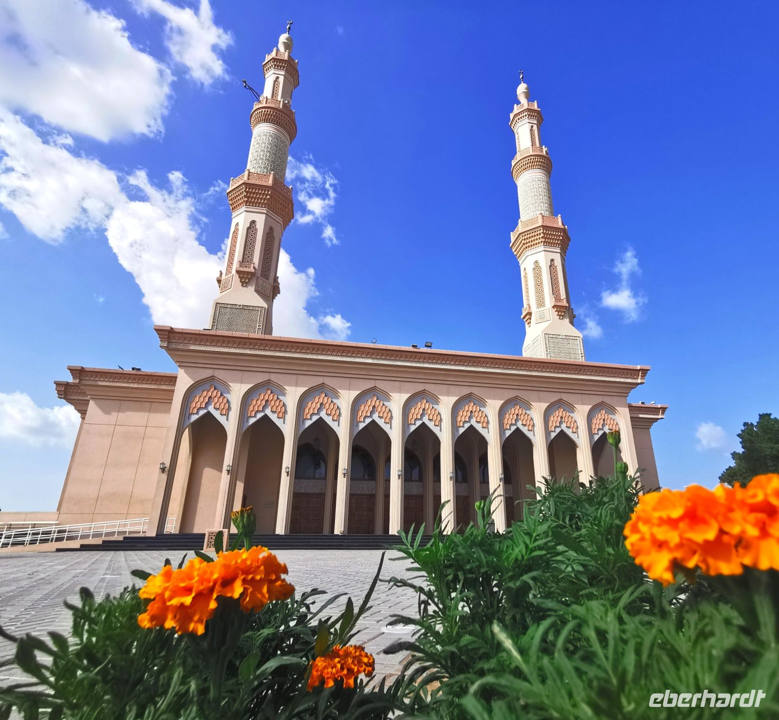 In Al Ain sehen wir die 2016 kurzem neu eröffnete Sheikh Khalifa Bin Zayed Moschee. Dieses Gotteshaus bietet mehr als 20.000 Gläubigen Platz und ist eine architektonische Augenweide. Die vier Minarette sind ganz im Lehmbaustil gehalten und die riesige Kuppel des Hauptsaales ist mit goldenen Koranversen verziert und hat einen Durchmesser von 86 Metern.