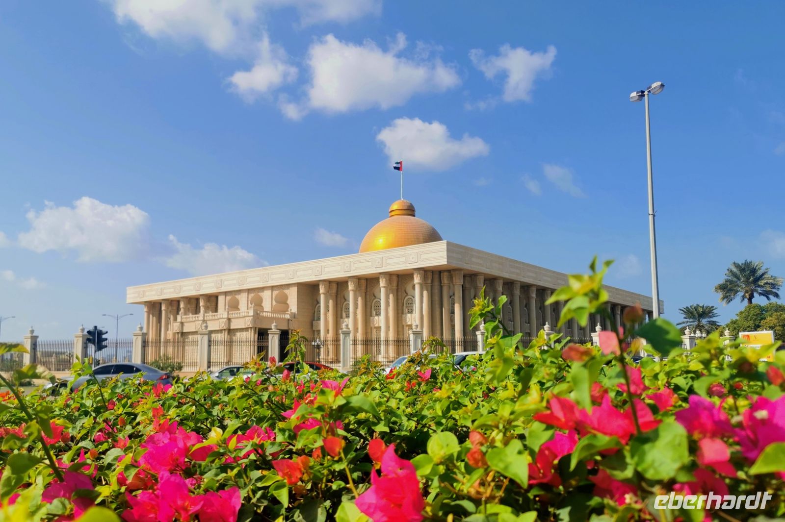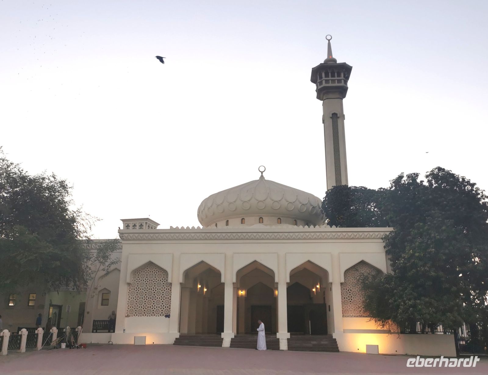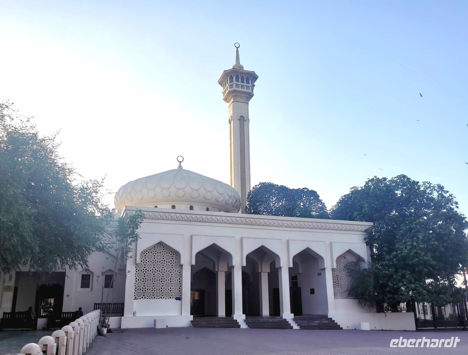 So findet man in Sharjah die meisten Museen zur Geschichte der Vergangenheit und des Islam. International bekannt wurde das Emirat allerdings erst durch die Ernennung zur Kulturhauptstadt der islamischen Welt im Jahre 2014. Unseren ersten Fotostopp machen wir am Korankreisverkehr, der so genannt wird, weil in seiner Mitte auf einer grünen Verkehrsinsel ein aufgeschlagener Koran in Übergröße liegt. Eine der schönsten Moscheen Sharjahs steht ebenfalls gleich daneben und nebenan sind auch der Kulturpalast, die Bibliothek und der Verwaltungssitz des Scheikhs. Beim nächsten Stop an der Corniche überkommt uns doch ein wenig die Badelust, aber es ist einfach zu heiß und wir machen lediglich ein paar Erinnerungsfotos.