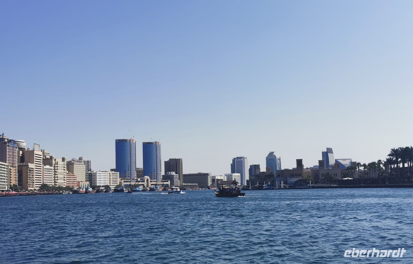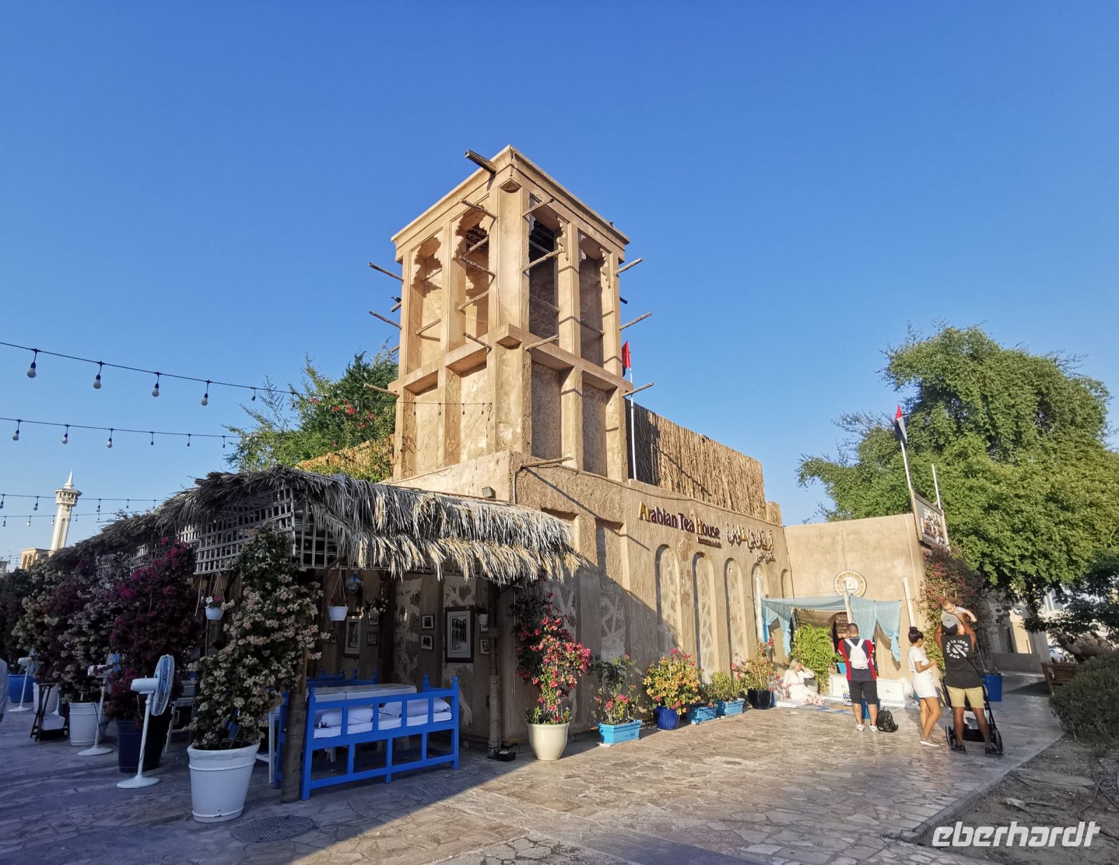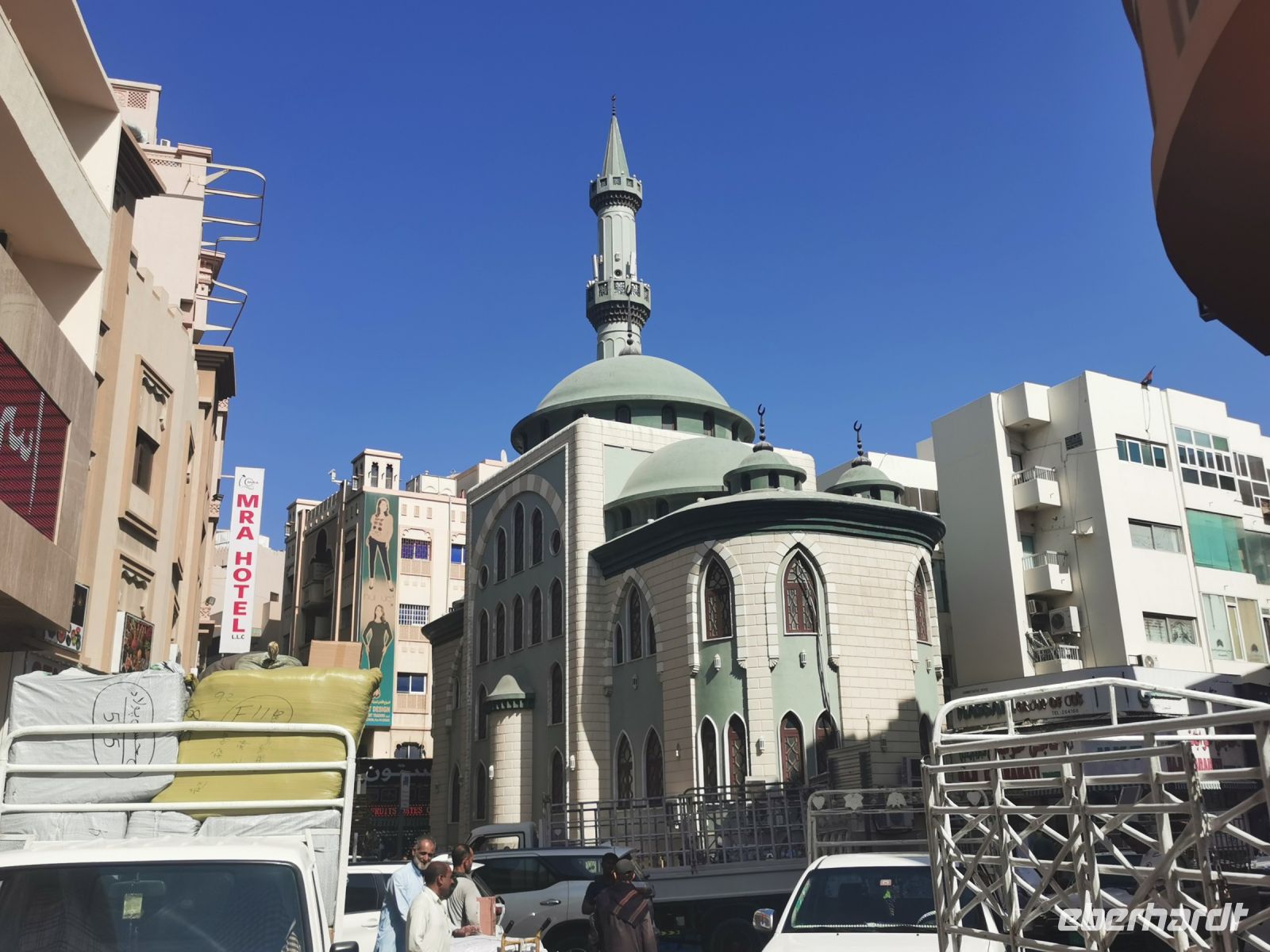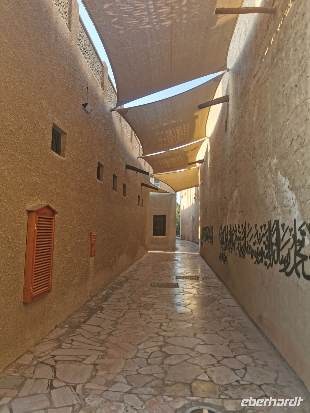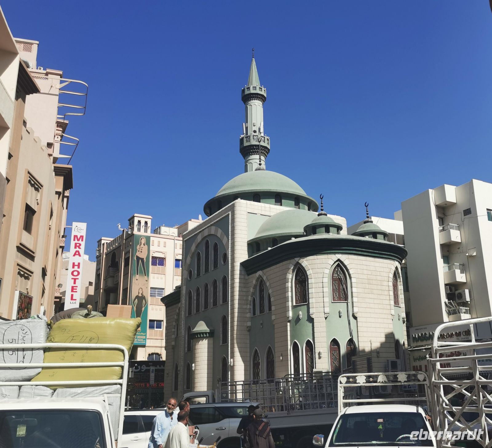 Am heutigen Morgen laufen wir vom Hotel in Richtung der nah gelegenen Altstadt zum Creek hinunter, dem Meeresarm, der durch Dubai fließt und der die Lebensader des alten traditionellen Teils der Stadt ist. Hier sieht man noch die Lehmbauten, die es in fast allen orientalischen Altstädten einstmals gab, Windtürme kühlten die Luft der Häuser auf angenehme Innentemperaturen hinunter, als es noch keinen Strom gab und inmitten des Viertels war der Bazar mit allen kleinen Lädchen, die Waren feilboten, die man zum Alltagsleben brauchte.