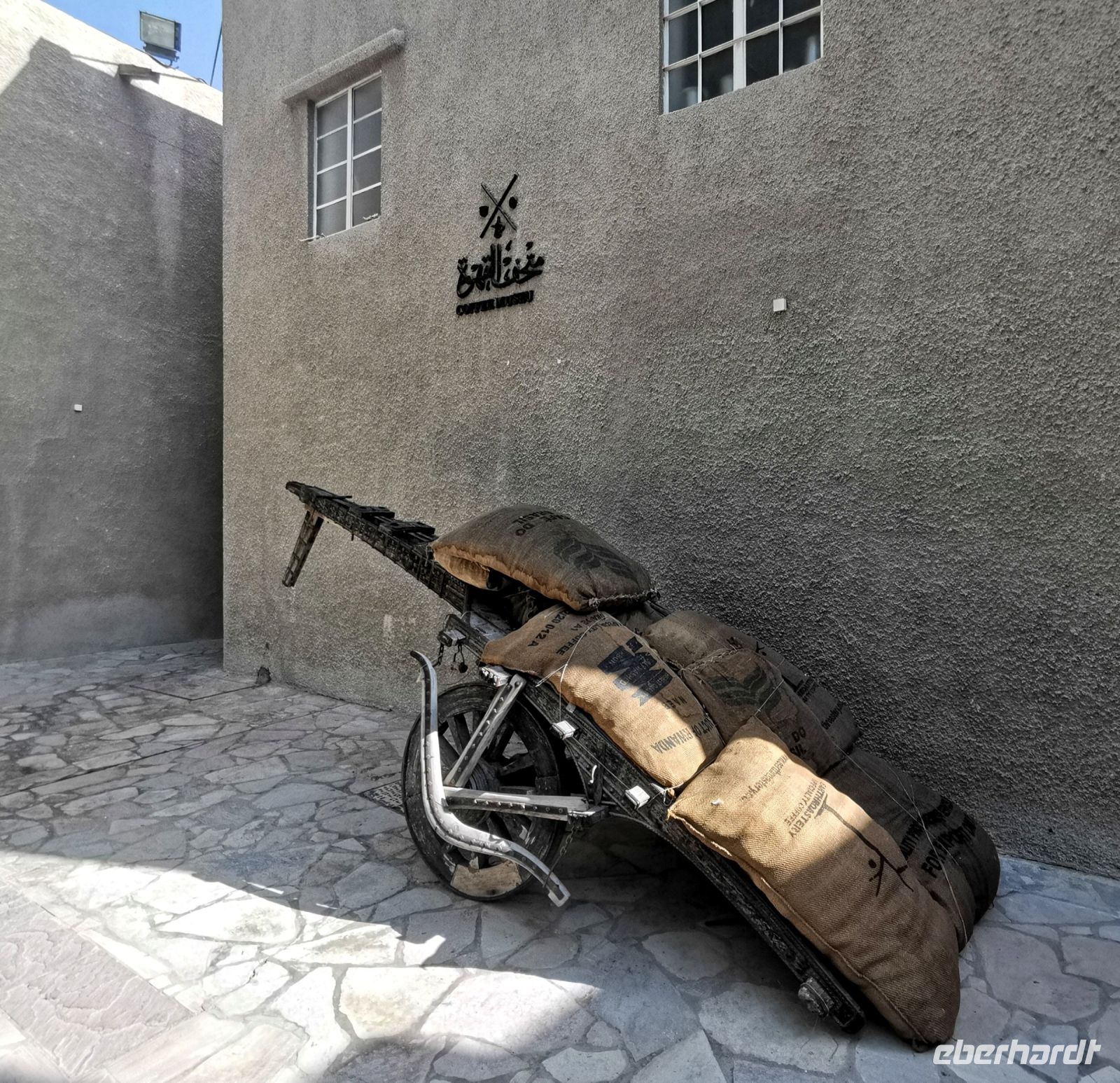 Am Abend treffen wir uns alle mit Ibrahim wieder, um zu einem Restaurant, direkt in der Altstadt zu laufen. Hier hat man ein neues "altes" Viertel errichtet. Sogar die Risse, die es in den alten Lehmhäusern gab und die wirren Stromleitungen hat man tatsächlich originalgetreu nachgebaut und hier kann man wunderbar flanieren und sich vorstellen, wie es vor 1970 auf der arabischen Halbinsel ausgesehen hat.