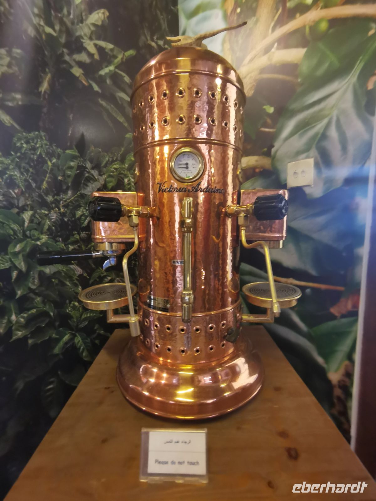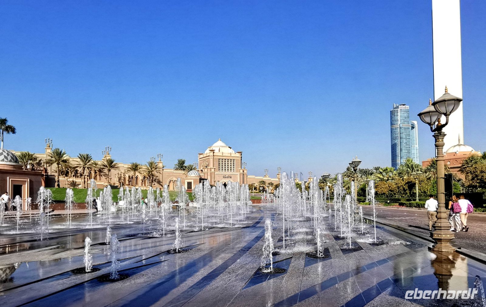 Leider haben wir für einen Besuch keine Zeit. So machen wir uns wieder auf den Weg und fahren zur Insel Yas, einer der vielen natürlichen Inseln Abu Dhabis. Sie hat eine Fläche von 25 km², auf ihr wachsen Mangrovenwälder und die Tierwelt reicht von Wasservögeln aller Art bis hin zu Flußdelfinen. Bekannter als die Mangroven von Yas ist sicherlich die Motorsportrennstrecke, die im November 2009 mit dem Großen Preis von Abu Dhabi der Formel 1 Serie eröffnet wurde. Gleich hinter der Rennstrecke befindet sich die ebenso populäre Ferrari World, auf deren Dach das größte Ferrarilogo der Welt zu sehen ist. In der Yas Waterworld können Kinder und Erwachsene auf etlichen Rutschen und bei Wasserspielen aller Art Spaß haben, ein Golfplatz und sechs Hotels sind ebenfalls immer gut gebucht und gleich nebenan. Wir verlassen die Insel wieder und fahren entlang der Corniche, der Strandpromenade, zum Emirates Palace Hotel, wo eine Kaffeezeremonie der besonderen Art auf uns wartet.