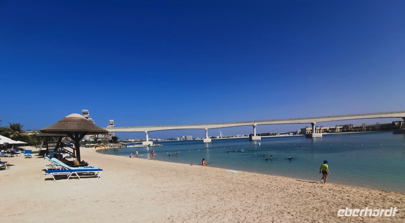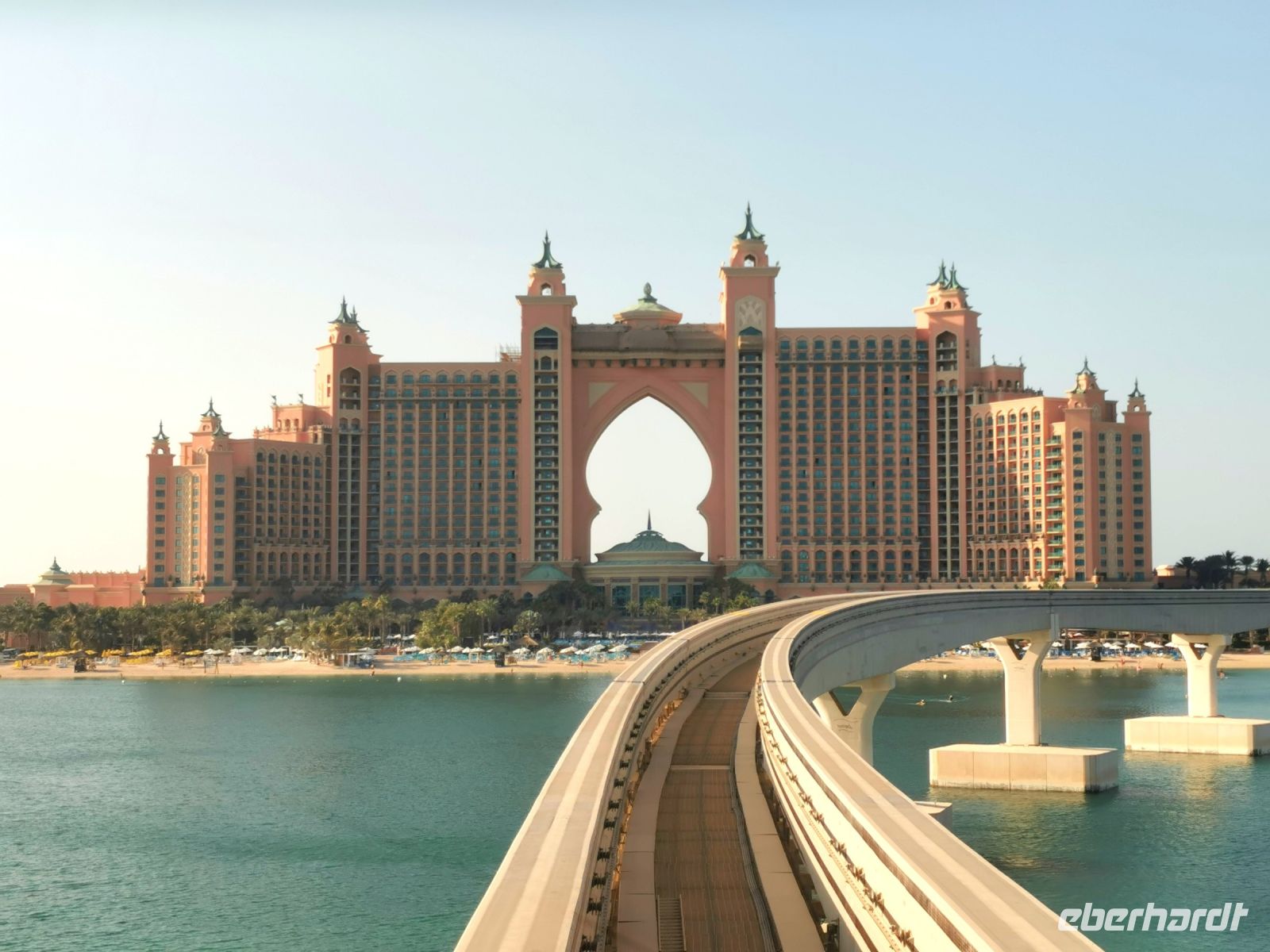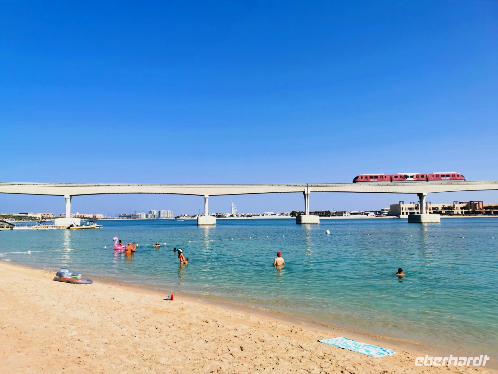 Zurück fahren wir mit der Monorail und haben nochmals fantastische Blicke auf das Hotel, das Burj al Arab Hotel, die einzelnen Wedel der Palme und die Kulisse ringsum. So läßt sich öffentlicher Nahverkehr gut aushalten.