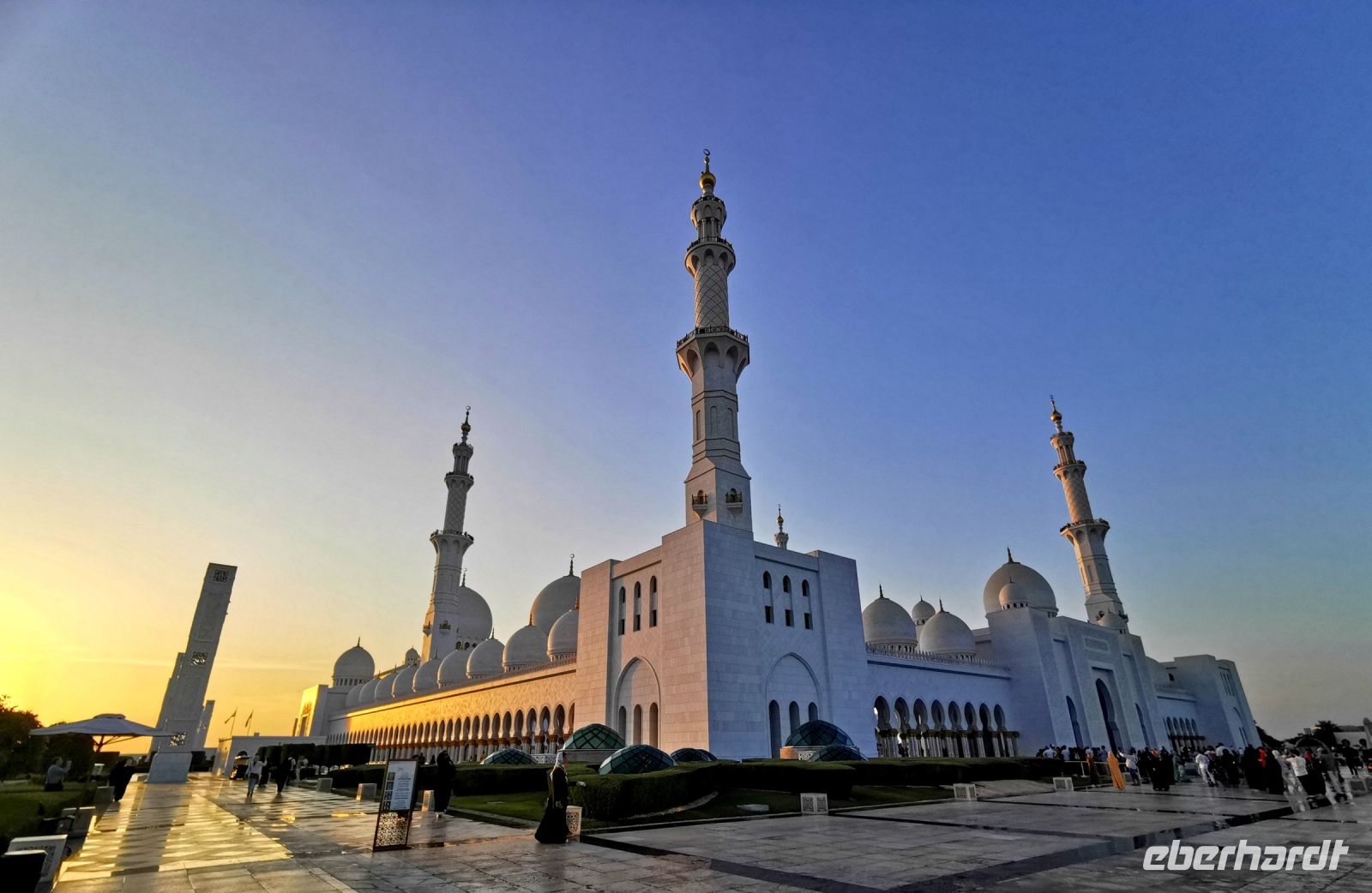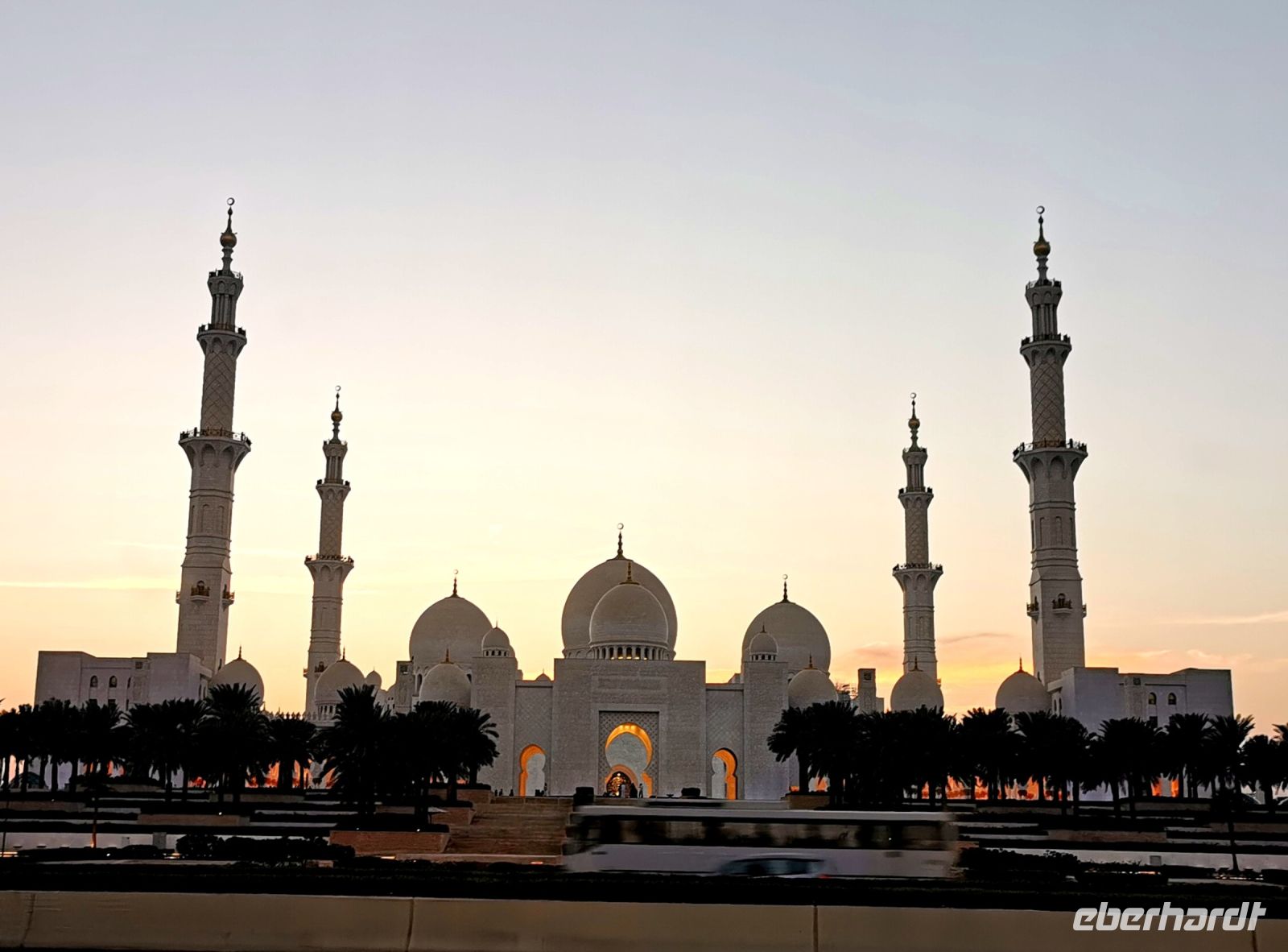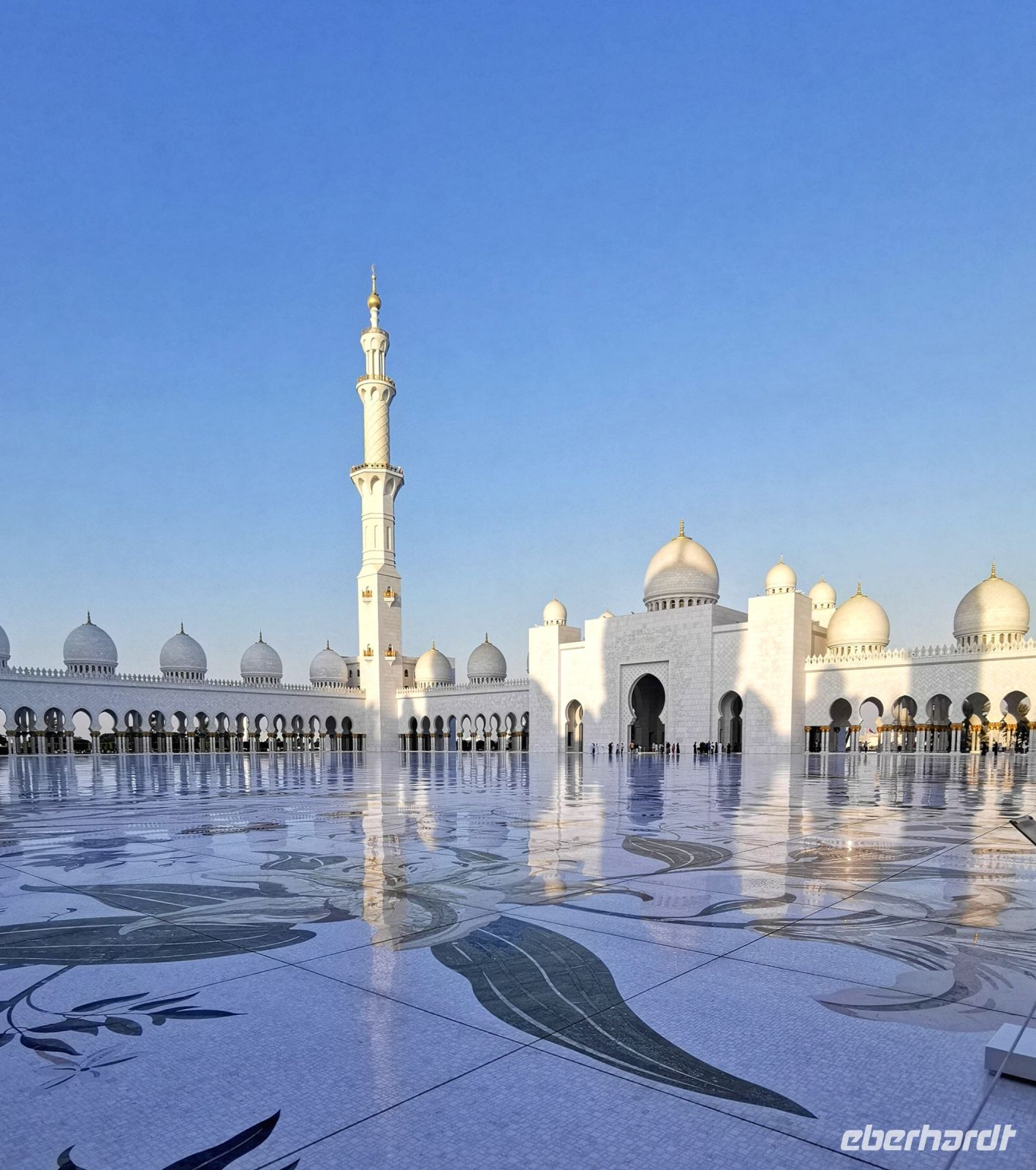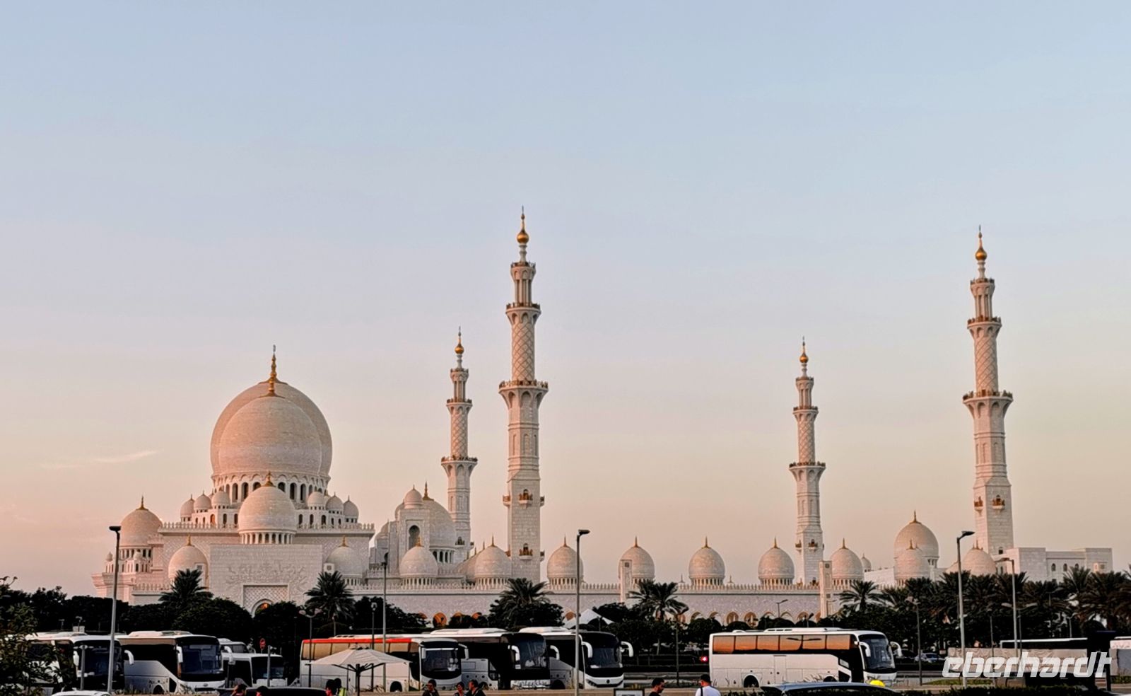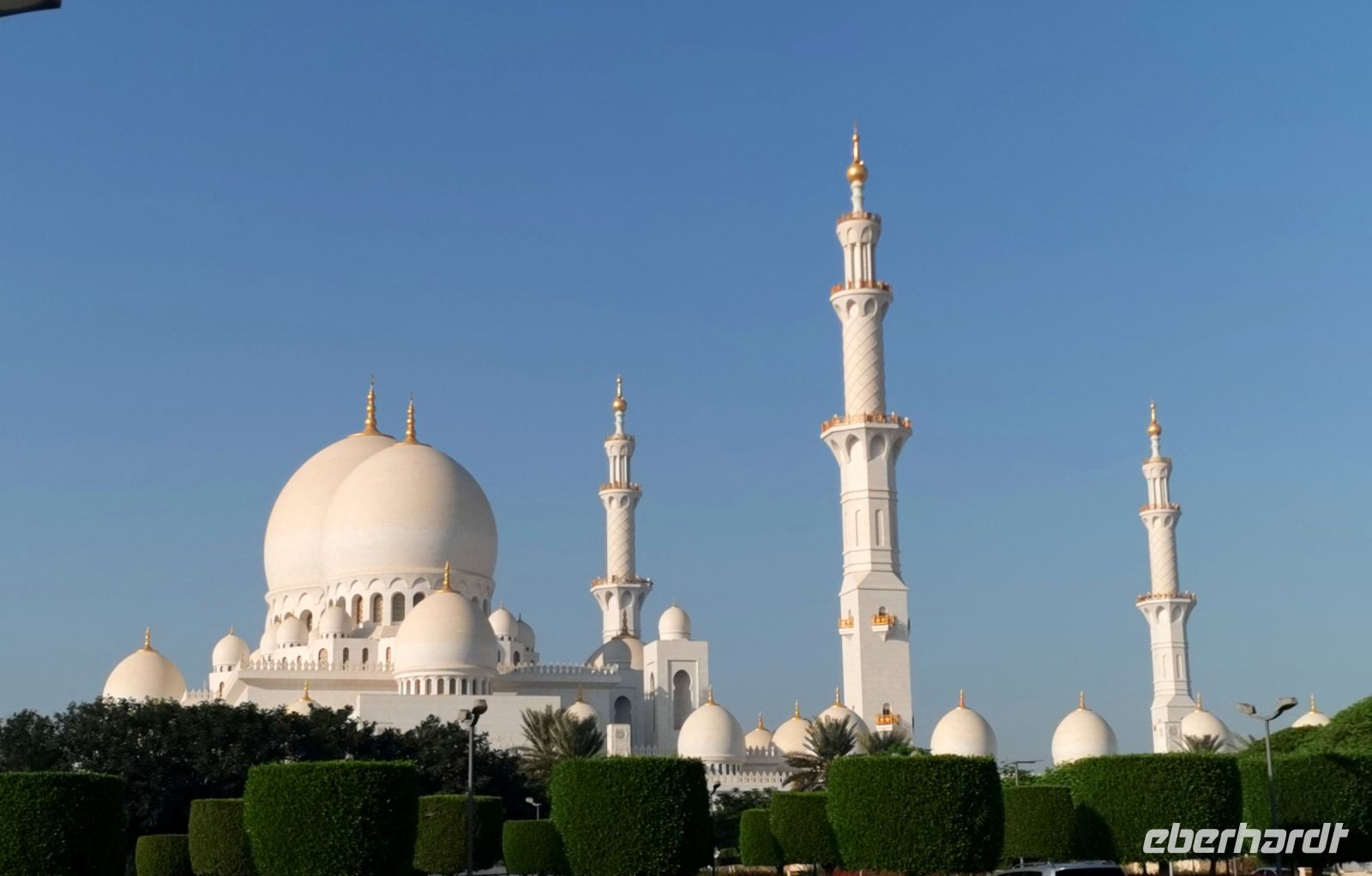 Nach so viel Glamour wird es Zeit für eine Abwechslung und das nächste Highlight erwartet uns bereits: die Sheikh Zayed Moschee.