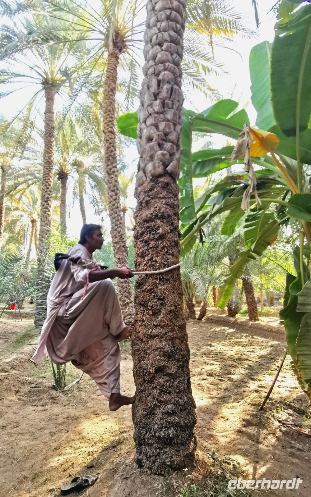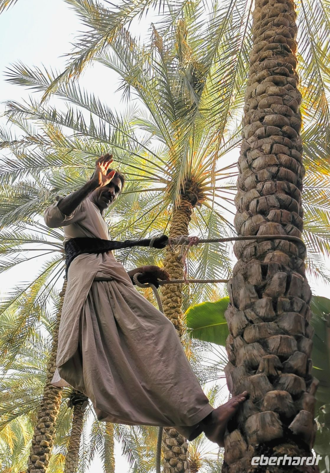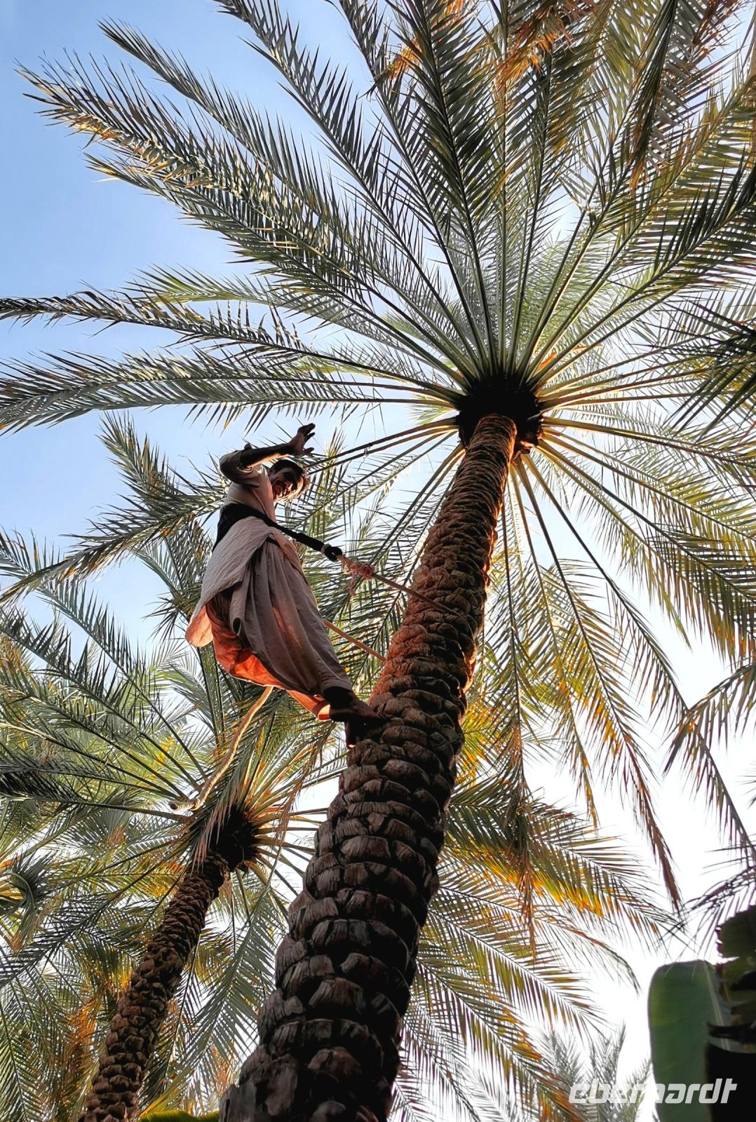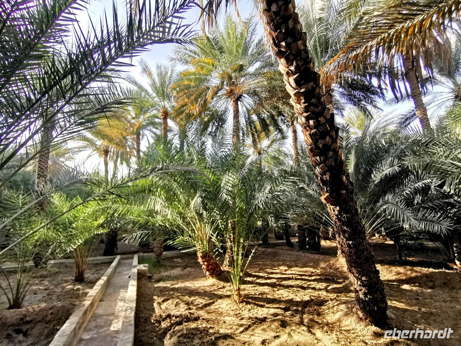 Als Nächstes steht ein Spaziergang in den Hili Gärten auf dem Programm. Einstmals war dieses Gebiet eine Oase und Zwischenstation auf dem Karawanenweg vom Persischen Golf zum Indischen Ozean. Die Anlage wurde vom Sheikh zu einer Art botanischem Garten ausgebaut und für Besucher geöffnet. Hauptsächlich wachsen hier Dattelpalmen, Granatapfelbäume und Bananenstauden. Die Palmen werden künstlich befruchtet und liebevoll gepflegt, damit sie reichliche Ernte liefern. Bewässert wird alles mit dem im Orient traditionellen Falaj-System. Dabei wird das Wasser über Kanäle, die oft mehrere Kilometer lang sind, transportiert. Es kommt entweder aus wasserführenden Schichten eines nah gelegenen Berges oder aus einer Quelle und wird unter Ausnutzung des Gefälles zu den einzelnen Parzellen geleitet und dort durch Falltüren von Hand verteilt. Dieses Bewässerungssystem wurde auf der arabischen Halbinsel bereits vor 1500 Jahren verwendet und einige dieser Anlagen stehen bereits unter UNESCO Weltkulturerbe.