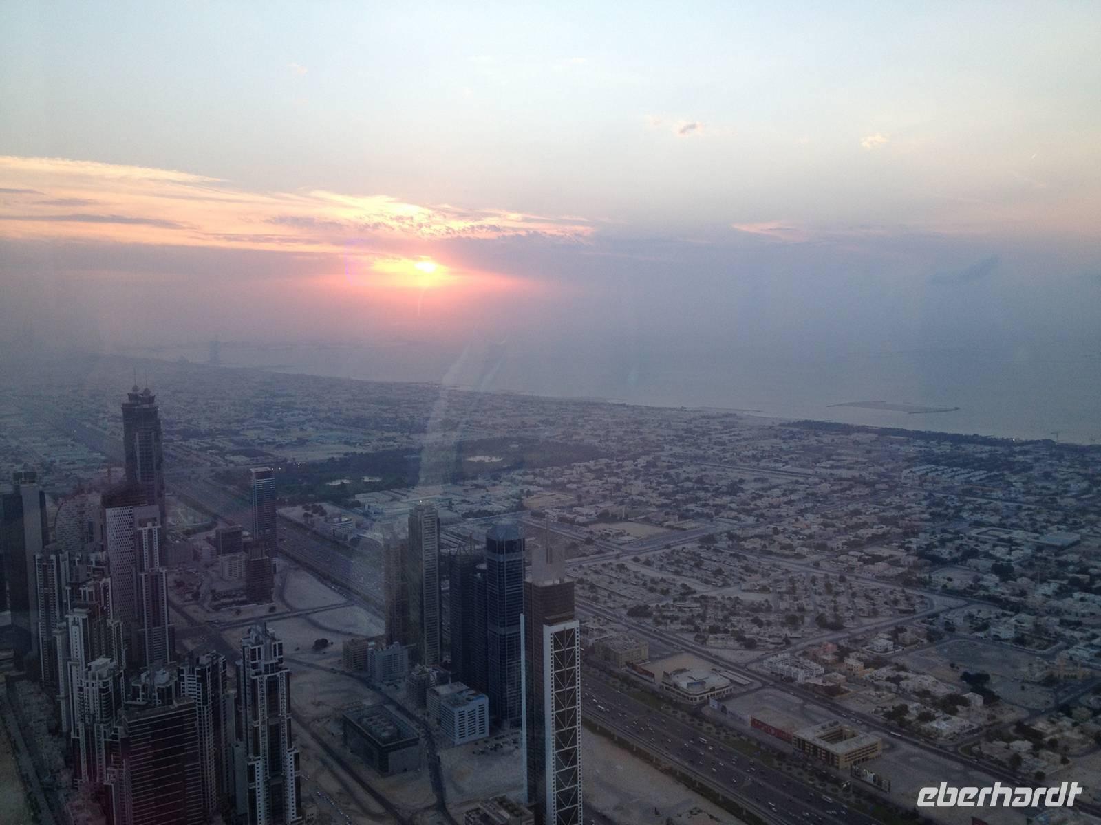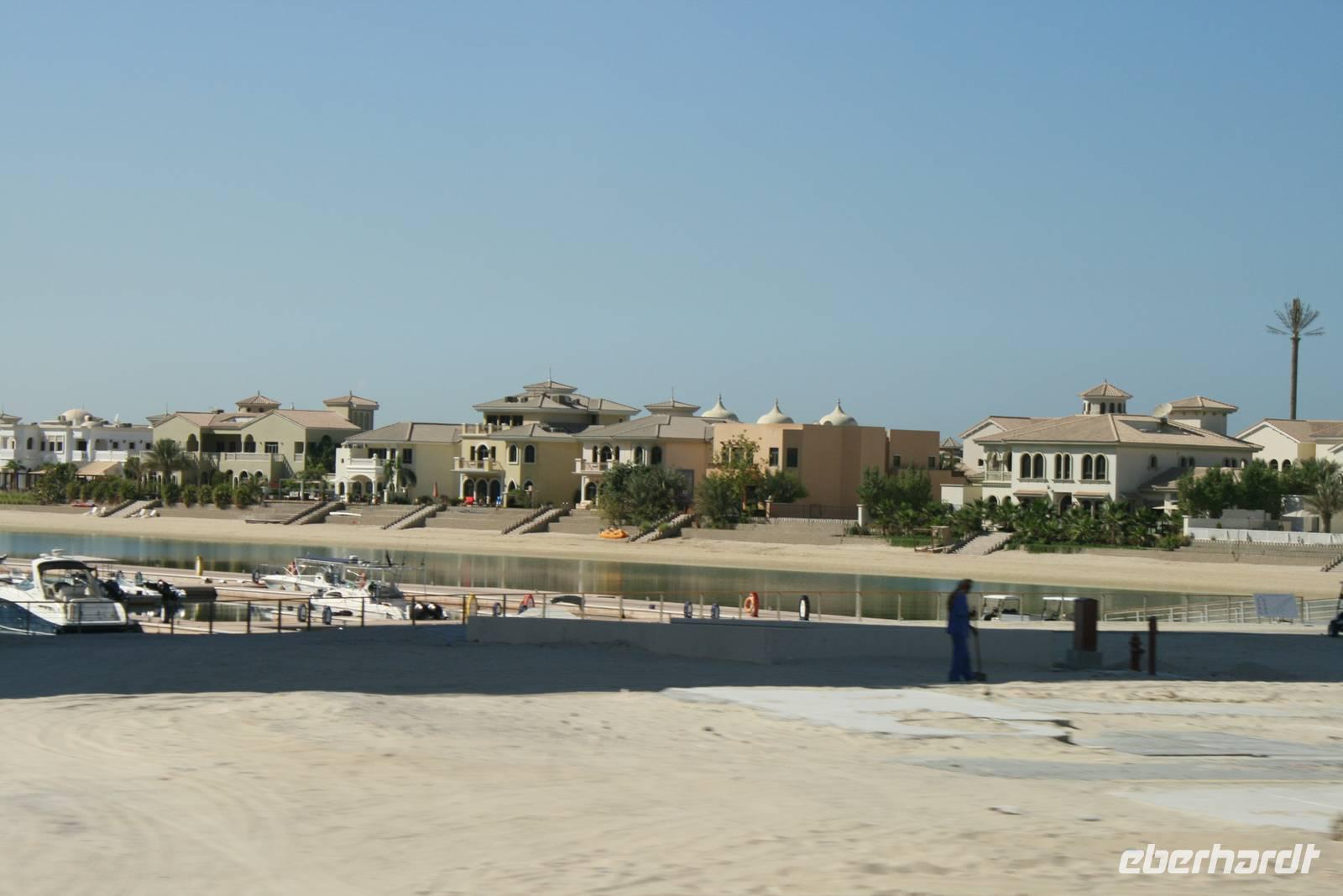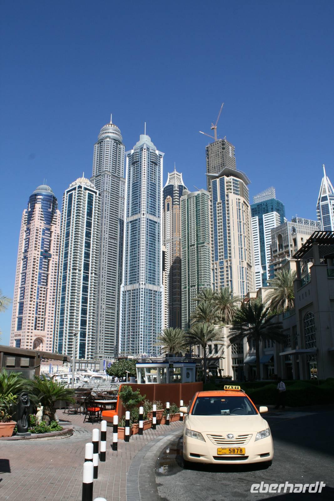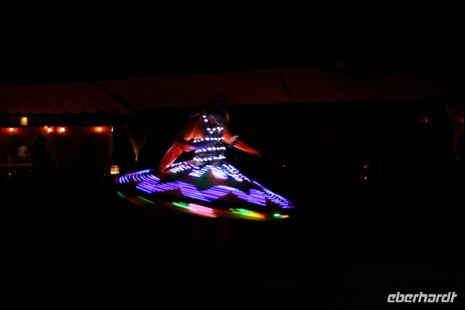 Eberhardt TRAVEL treibt seine Reisegäste nicht nur auf die Palme (Palm Jumeirah), sondern schickt sie auch noch in die Wüste Deswegen standen nach dem Mittagessen im Hotel schon unsere modernen Jeeps für die bevorstehende Wüstentour bereit. Die Fahrer hatten die Autos bestens unter Kontrolle und zeigten uns natürlich ihre Fahrkünste. So ließen wir keine Düne aus und hatten auf der Fahrt zum Wüstencamp jede Menge Spaß! Im Wüstencamp saßen wir gemütlich unter freiem Sternenhimmel, die Henna-Lady zauberte kleine Kunstwerke auf die Haut unserer Frauen und die Köche leisteten auch sehr gute Arbeit. Das Barbecue schmeckte in dieser Atmosphäre natürlich umso besser! Ein Darwish-Tänzer und eine Bauchtänzerin rundeten den Abend bei orientalischen Klängen wunderschön ab. Mit den Jeeps ging es dann zurück nach Dubai und ins Hotel.