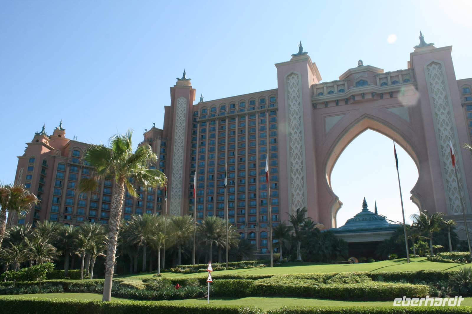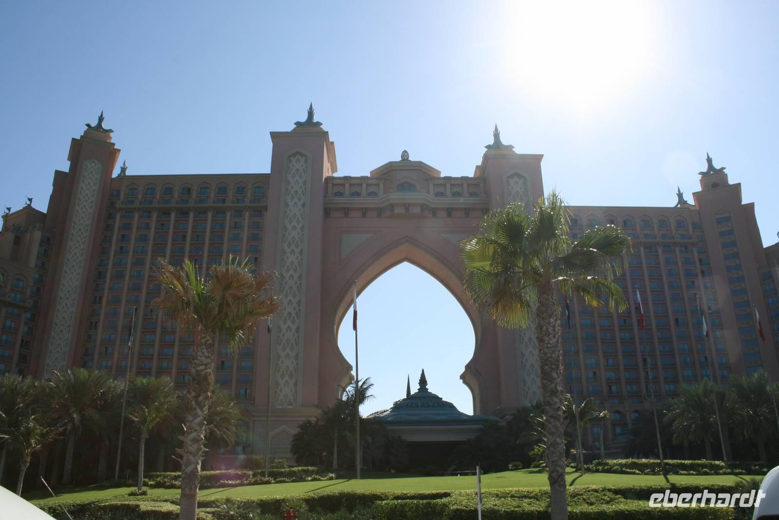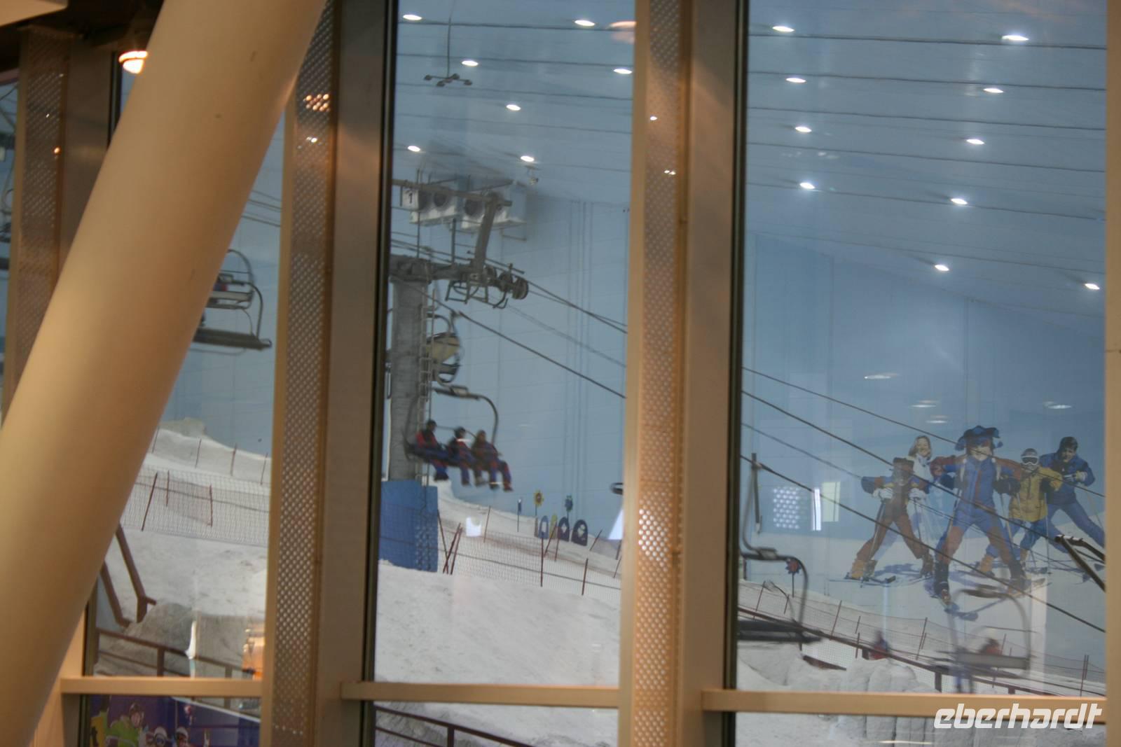 Zunächst fuhren wir zu unserem Hotel „Arabian Courtyard" im alten Stadtteil Bur Dubai in unmittelbarer Nähe des Creeks und gleich neben dem Dubai-Museum. Nach dem ersten Frühstück auf arabischem Boden und bei angenehm warmen Temperaturen starteten wir unsere erste Besichtigungstour im modernen Dubai. Das weltbekannte Burj al Arab war unser erstes Ziel. Wir fuhren auf das Prestige-Objekt des Herrschers - die Palm Jumeirah mit dem spektakulären Themenhotel Atlantis. Weiter ging es dann zum neuen Stadtteil Dubai Marina. Lebhaft, urban und spektakulär spiegelte sich die Skyline der etwa 200 neu erbauten bzw. noch im Bau befindlichen Appartement-Hochhäuser und Wolkenkratzer im Wasser der künstlich geschaffenen Lagune. Hier flanierten wir auf am Wasser auf dem schönen Dubai-Walk im sogenannten „Arabischen Manhattan". Skifahren in der Wüste? Ja, in Dubai ist alles möglich. So schauten wir den Emiratis in der Mall oft he Emirates beim Abfahrtsski, Bobfahren und Rodeln zu. Die 85 Meter hohe Indoor-Skiarena beeindruckte jeden als weiße Winter-Wunderwelt mit Kunstschnee und alpinen Illusionen. Am Nachmittag bezogen wir unsere Zimmer im Hotel und gönnten uns ein wenig Ruhe nach dem anstrengenden ersten Tag. In den Twin-Towers, die schon mit den Herrscherbildern geschmückt waren, ließen wir uns das Abendessen schmecken und genossen schöne Blicke auf den Dubai-Creek.