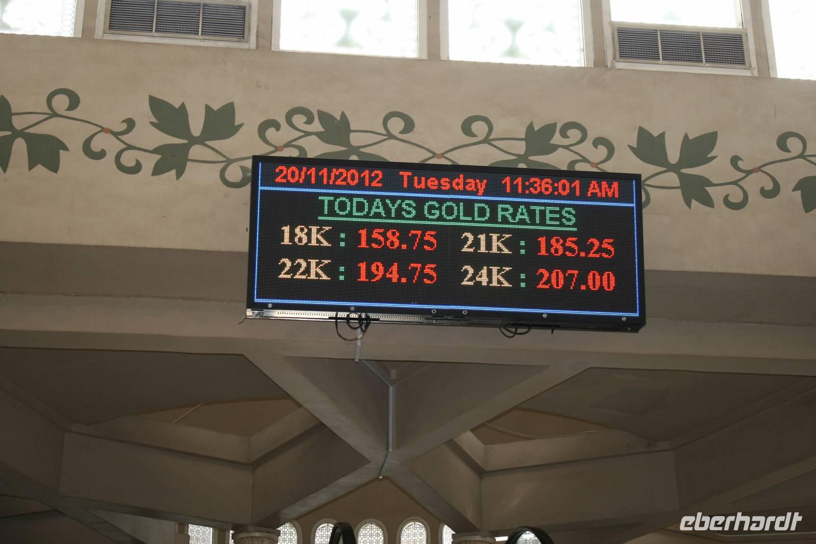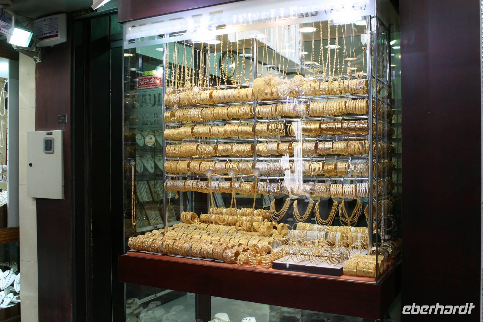 Ein weiteres Erlebnis war zweifelsohne der Gold Souk mit seinen fantastisch funkelnden Auslagen gleich in der Nähe. Hier ist wirklich alles Gold, was glänzt. Alle Armreifen, Ohrringe, Halsketten, Krawattennadeln ebenso wie Colliers und Diademe in den Auslagen der ungefähr 400 Schmuckgeschäfte und Juweliere. Auch die Tuchhändler waren eine begehrte Anlaufstelle, bei denen das Handeln um die besten Preise kein Problem war!