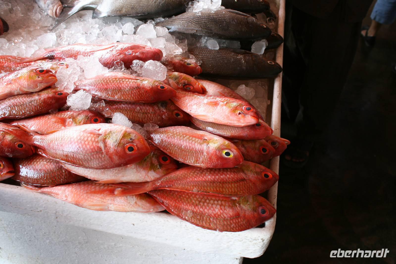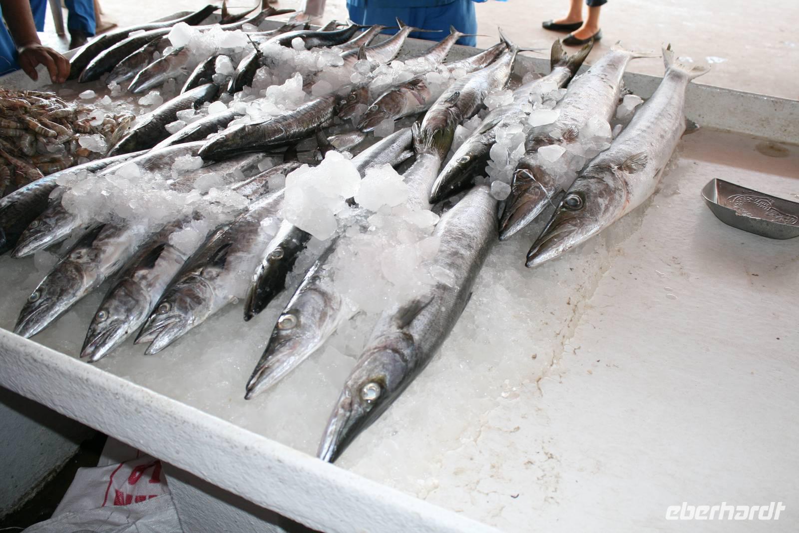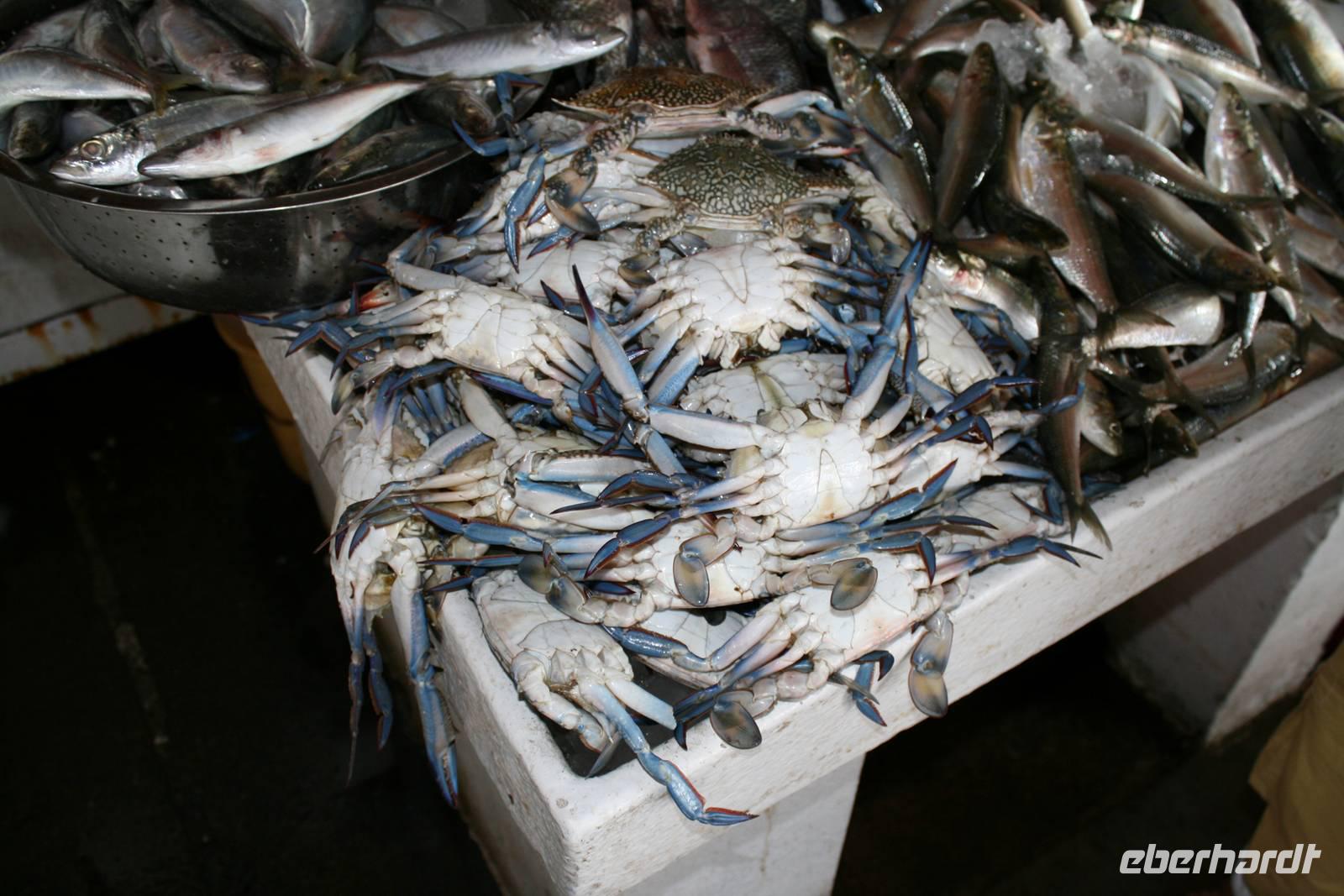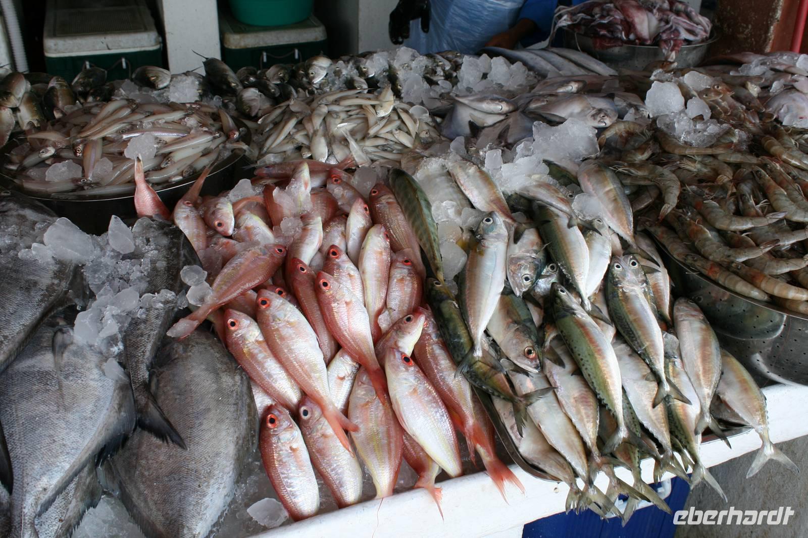 Nur wenige Kilometer von Dubai entfernt, und doch ganz anders: Mit starkem Akzent auf Kunst und Tradition geht das Emirat Sharjah seinen eigenen Weg. Auf den ersten Blick scheinen die beiden Brüder Dubai und Sharjah ziemlich gleich. Auf den ersten Blick jedenfalls. Schaut man dann genauer hin, entdeckt man schnell, dass die hübsch um eine Lagune gruppierten Hochhäuser in Sharjah deutlich weniger hoch in den Himmel ragen als in Dubai. Dass man hier statt sündhaft teurer Zuckerguss-Luftschlösser gern solide finanzierte Brötchen backt. Dass man lieber bodenständig kleckert als arrogant klotzt. Kurzum: Dass man mit beiden Beinen ziemlich sattelfest auf dem Wüstenboden steht. Dr. Scheich Sultan bin Mohammed Al Quasimi nämlich hat einen Plan für die Zukunft. Einen Masterplan. Sharjahs Herrscher inszeniert sein kleines Reich keineswegs als „Zukunftsstadt des Nahen Ostens" wie der Nachbar. Anstelle von Gigantomanie, Größenwahn und Kommerz setzt er bewusst auf eine ausgewogene Mischung aus Kultur und Moderne. Auf Kunst und Bildung. Auf Tradition und Bewahrung der arabischen Identität. Zunächst schauten wir uns den liebevoll gestalteten Koran-Kreisverkehr an. Anschließend besuchten wir den mit Sorgfalt hergerichteten alten Souk, den Souk Al-Masqoof mit seinen kleinen Lädchen, im Herzen der alten Stadt. Den nächsten Stopp legten wir am Central Souk ein. Dieses Shoppingparadies erstreckt sich auf ca. 80.000 m² und besitzt eine typisch islamische Architektur. Wegen der blauen Dachgewölbe und der blaugemusterten Verzierungen an den Außenfassaden wird er häufig auch als der Blaue Souk bezeichnet. Anschließend führte uns Anja zum Fischmarkt, auf dem wir den Fang des Tages begutachteten und so manch außergewöhnliche Fische sehen konnten.