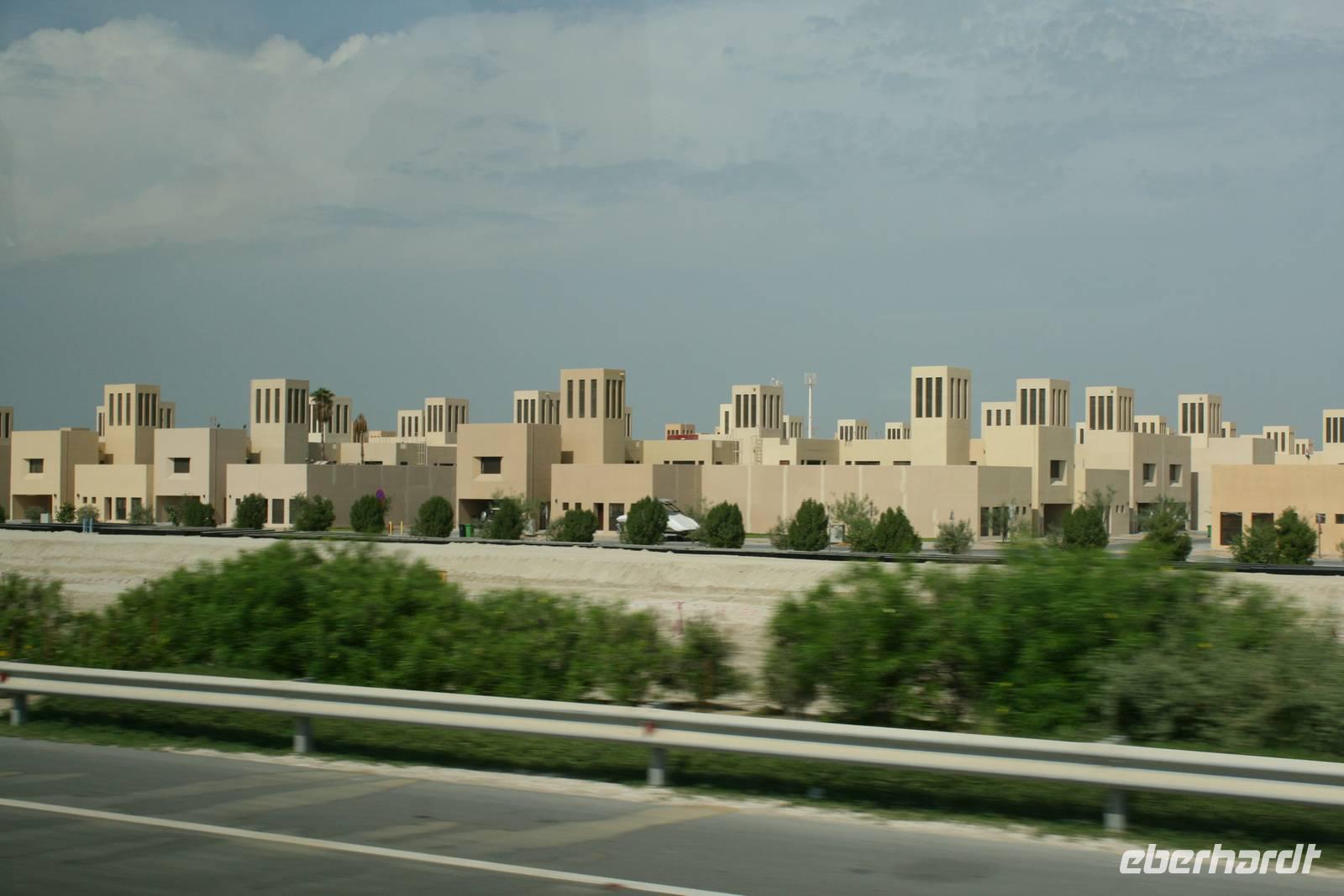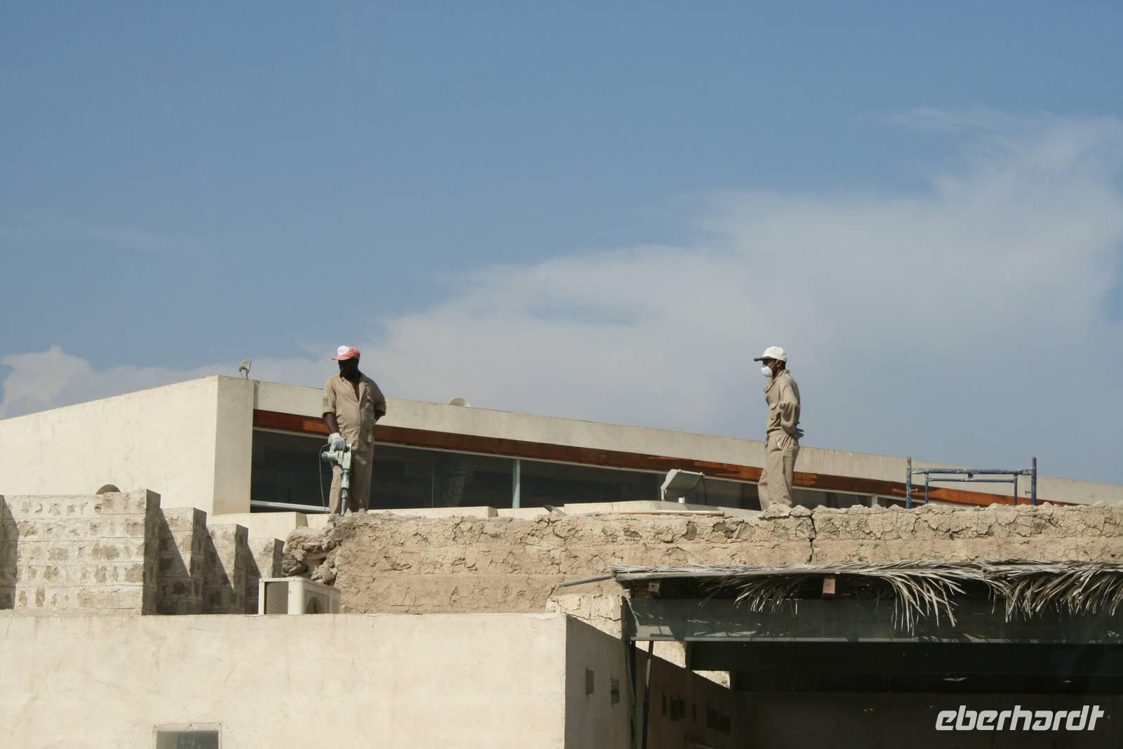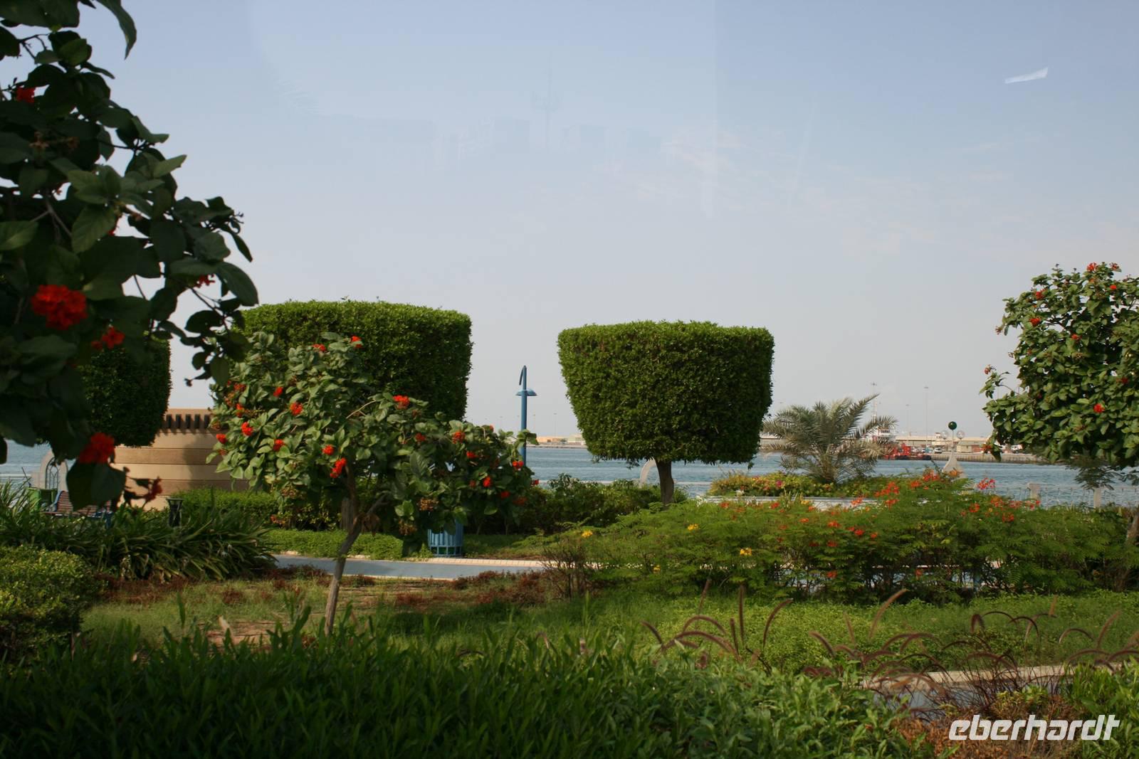 Einen Einblick in das lokale Brauchtum vor dem Ölboom ermöglichte uns das Heritage Village auf der künstlich angelegten Halbinsel Breakwater (die Wellenbrecher-Insel). Diese Anlage ist einem traditionellen Beduinendorf nachempfunden und bietet durch deren Lage einen genialen Blick auf die Skyline der Stadt auf der gegenüberliegenden Seite. Gerne wurde hier auch die Gelegenheit genutzt, die Füße in das kristallklare Wasser des Persischen Golfs zu halten.