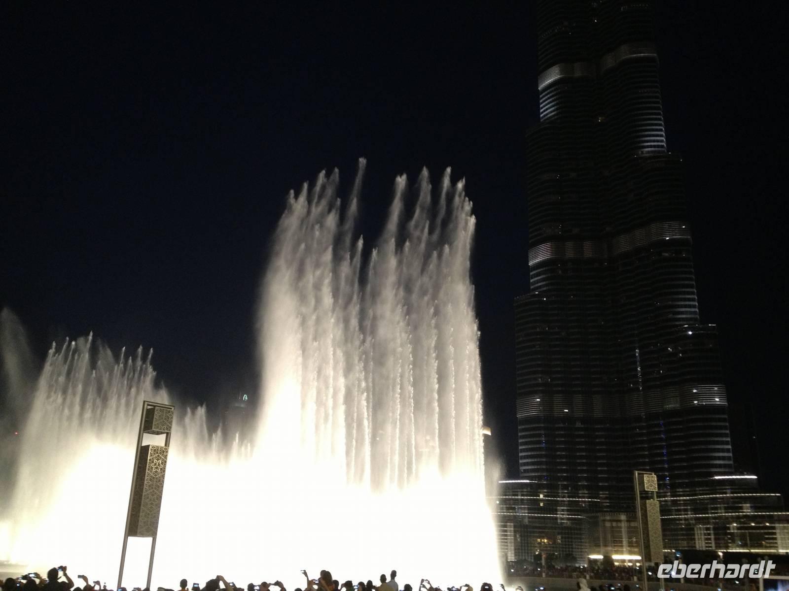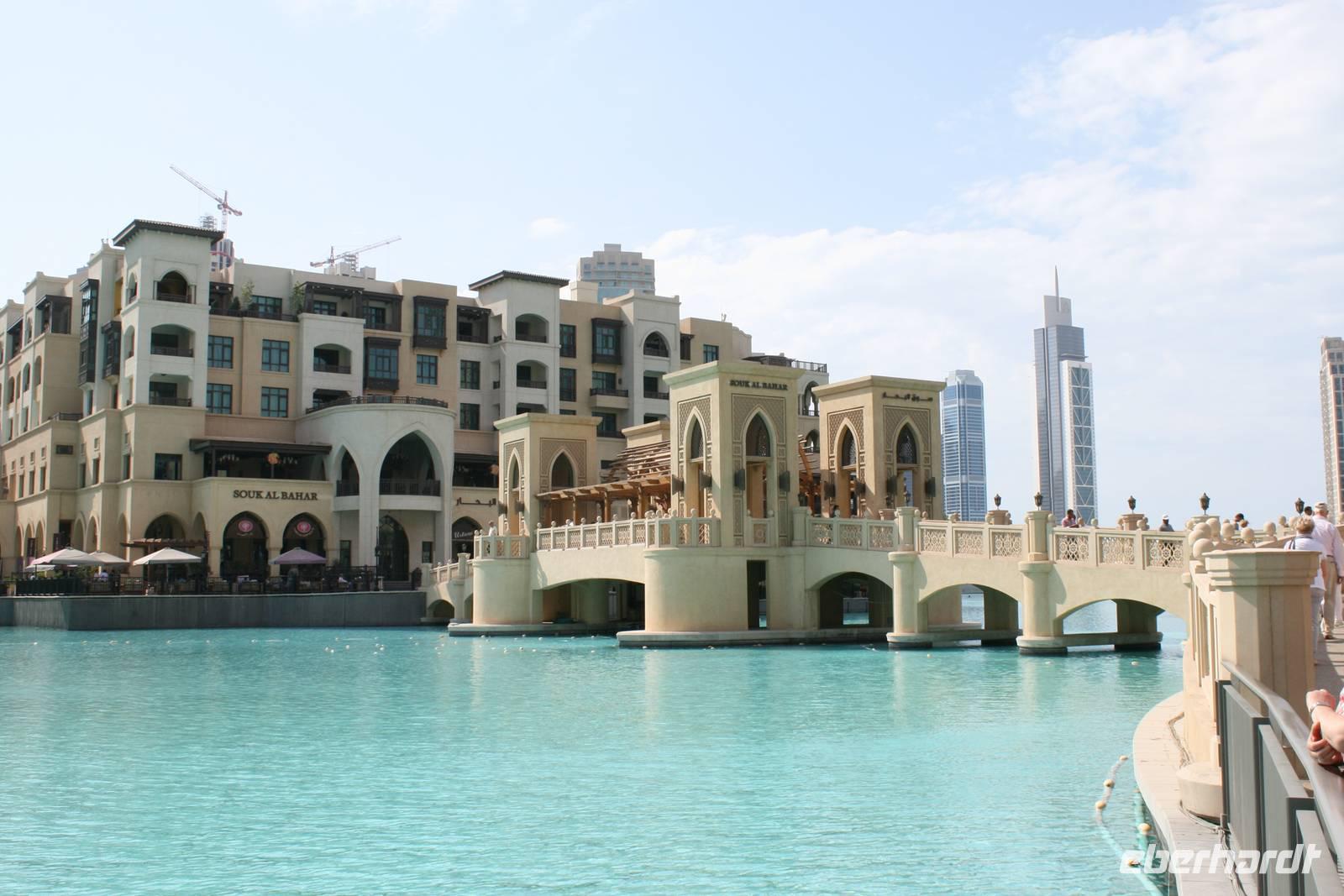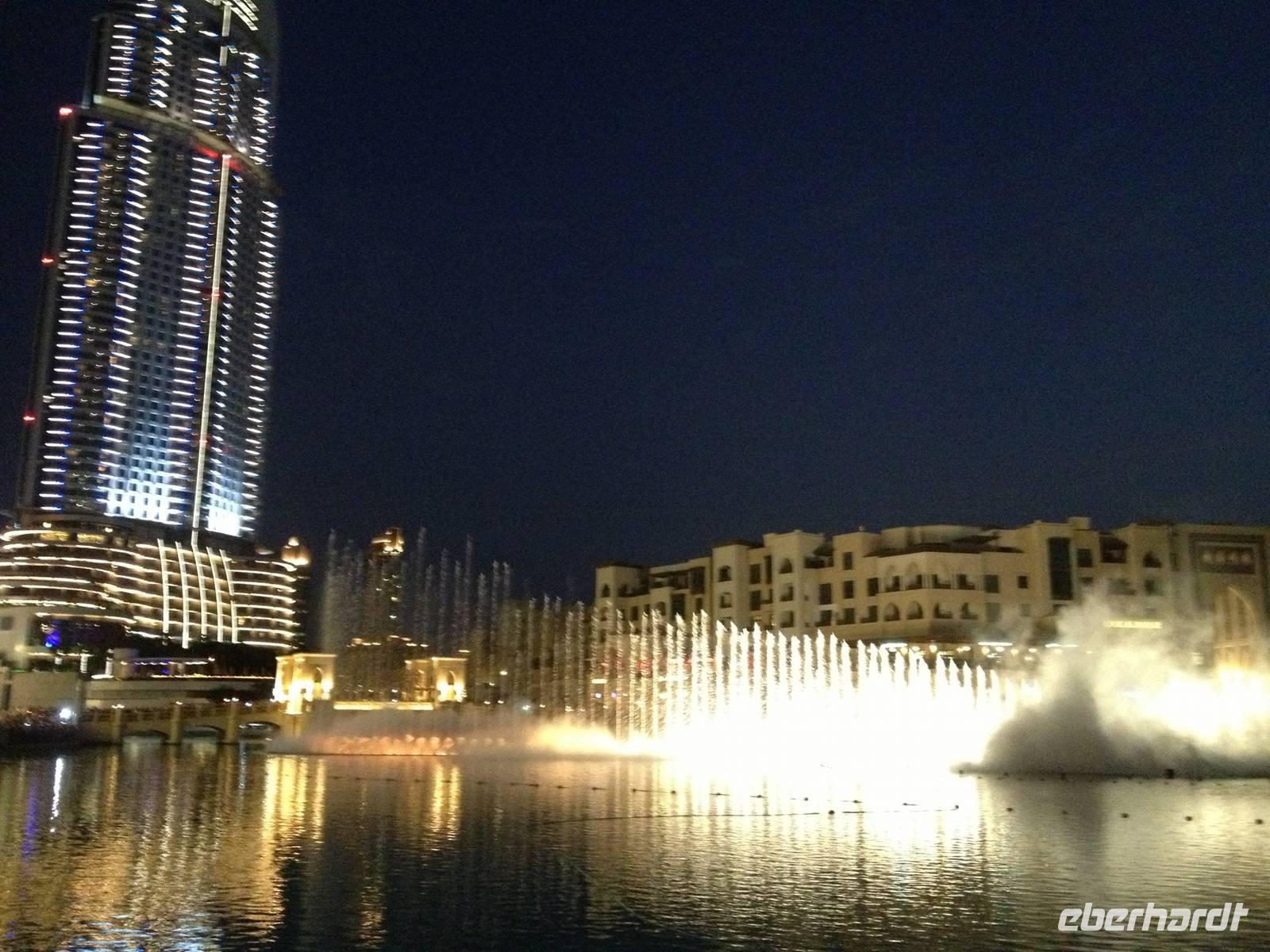 Am Nachmittag stürzten sich einige Gäste gemeinsam mit mir in das Erlebnis Dubai Metro. Vom Hotel aus nahmen wir die neu erbaute, fahrerlose Metro in Richtung Dubai Mall. Heute war Freitag und somit der arbeitsfreie Tag der Moslems. Wir hatten das Gefühl, alle Einwohner und die vielen Touristen fahren gerade jetzt mit der Metro. Ein letztes Mal sahen wir uns die wunderschönen Wasserspiele am Burj Khalifa an und fuhren wieder mit der Metro zurück zum Hotel. Mit ein wenig Verspätung trafen wir zum Abendessen im Indischen Restaurant des Hotels ein, wo die anderen Gäste schon sehnsüchtig auf uns warteten.