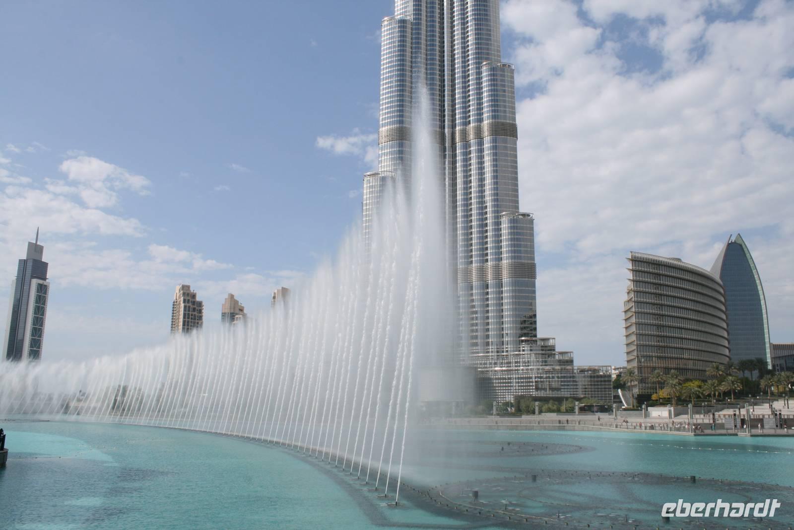 Ein weiteres Highlight folgte anschließend. Das höchste Gebäude der Welt - der Burj Khalifa. Der 828m hohe Wolkenkratzer wartete mit vielen beeindruckenden Fakten auf uns: die höchste bewohnbare Etage in 535 Metern, der höchste Swimming-Pool, der längste Lift mit einer Geschwindigkeit von 10 Metern pro Sekunde. In diesen stiegen wir ein uns in Windeseile standen wir auf der Aussichtsplattform in der 124. Etage. Wie ein Baukasten sahen die Häuser unter uns aus. Ein tolles Erlebnis! Spektakulär waren zum Abschluss des Tages noch die Wasserspiele am Abend. Bei orientalischen Klängen schossen die weltweit größten Wasserfontänen aus dem künstlich angelegten See in die Luft. Somit ging ein weiterer erlebnisreicher Tag zuende!