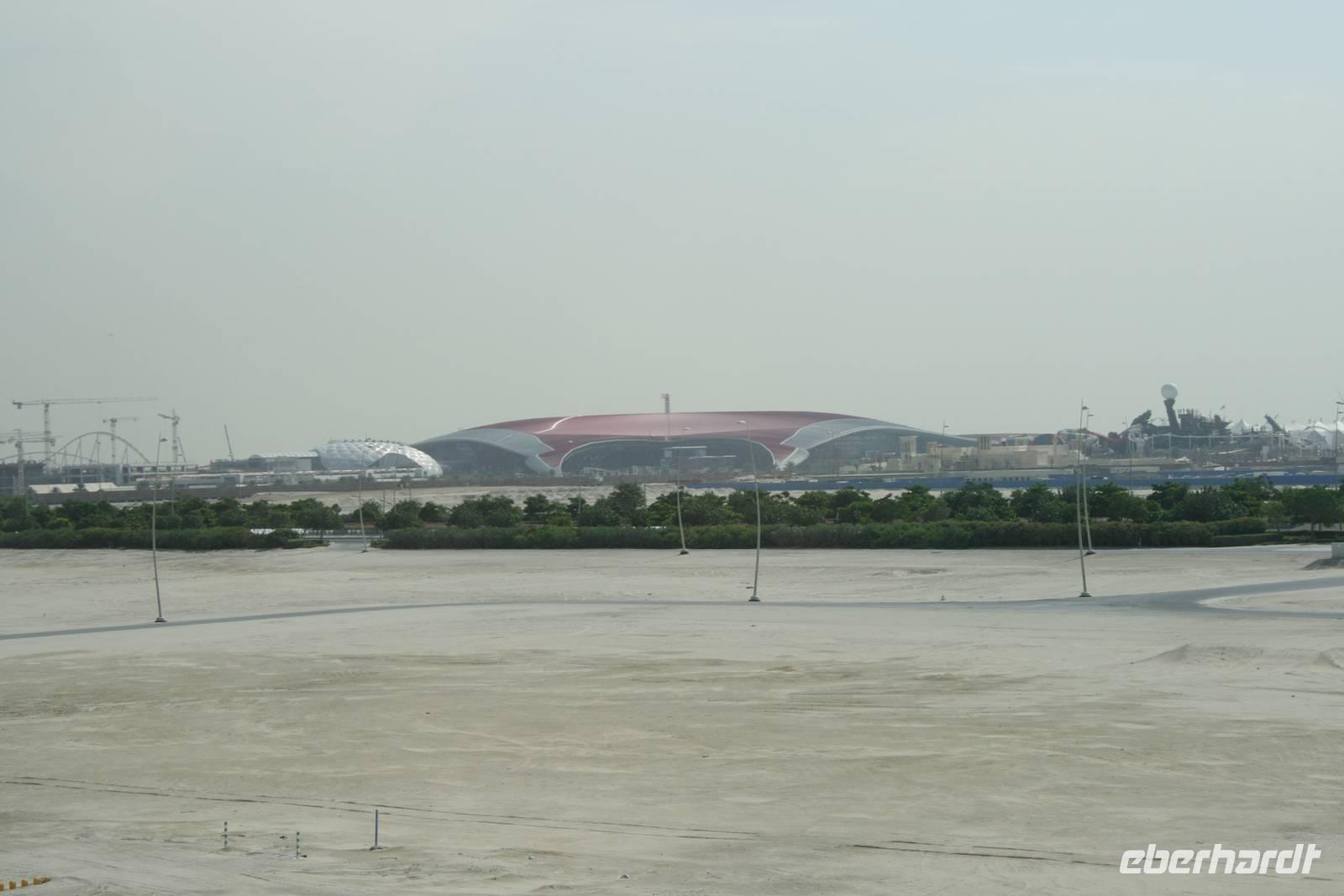 Nach gut 2 Stunden Fahrt erreichten wir den Küstenstreifen kurz vor der Stadt. Dieser ist durch Lagunen und Meeresarme, flache Sandbänke, Korallenriffe sowie Mangrovensümpfe gekennzeichnet. Auf Yas Island, eine der größten Inseln im Emirat Abu Dhabi, legten wir unseren ersten Stopp ein. Hier investiert die Herrscherfamilie ca. 40 Milliarden $ um einen komplett neuen Stadtteil zu errichten. Zweifelsohne sind die Formel 1 - Rennstrecke und die neue Ferrari-World derzeit die bekanntesten Werke des Scheichs. Es entstehen hier weiterhin viele Luxushotels, Appartements, Shopping-Malls, Themenparks. Somit ist Yas Island eines der spektakulärsten und teuersten Projekte in den Vereinigten Arabischen Emiraten. Auf dem Weg ins Zentrum der Stadt Abu Dhabi hielten wir am Dattelmarkt, auf dem wir die leckeren Früchte der Dattelpalme kosten und natürlich auch kaufen konnten. Hier war wieder unser Verhandlungsgeschick gefragt!