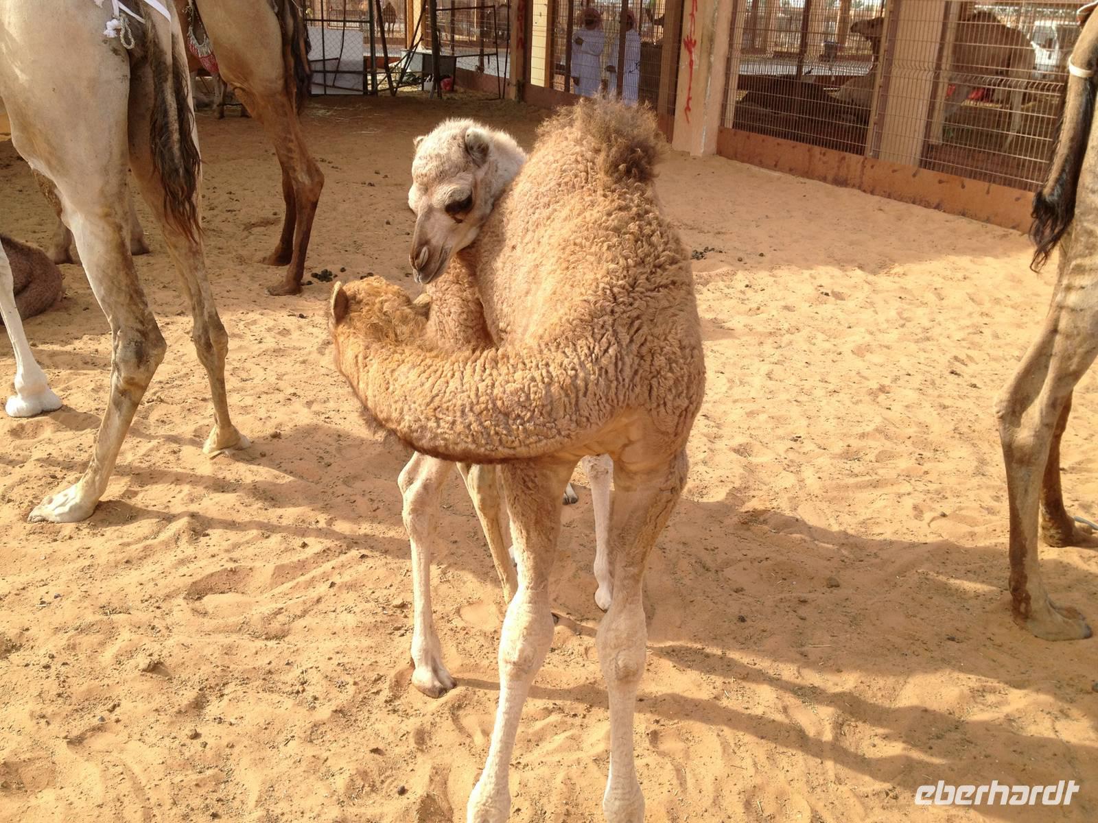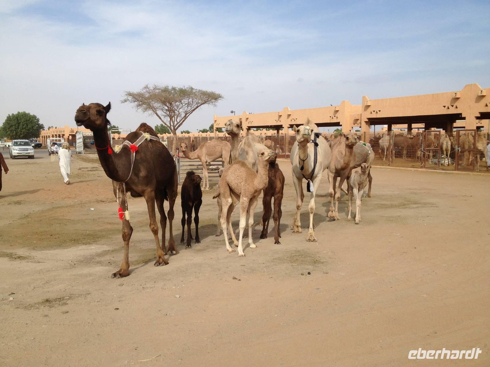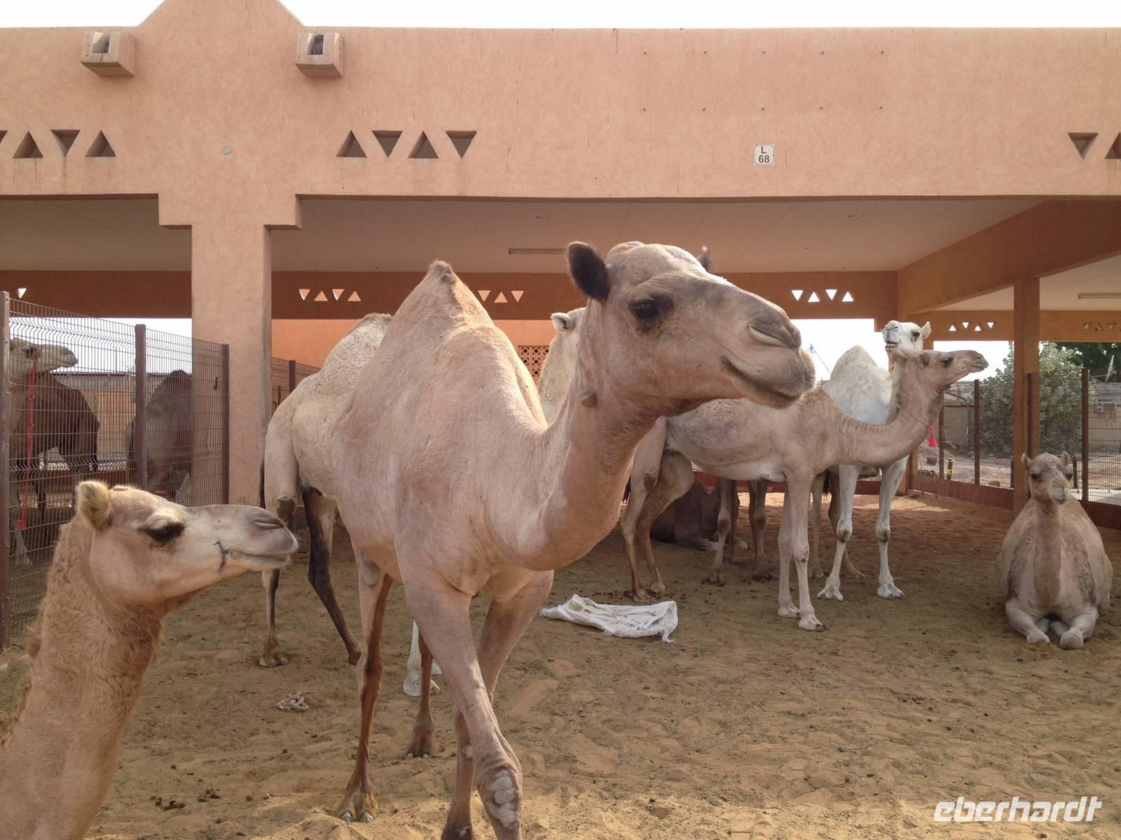 Etwas außerhalb des Stadtzentrums besuchten wir noch den berühmten Kamelmarkt. Viele Interessenten und Verkäufer kommen teils von weit her, um ihre Dromedare feilzubieten. Dieser Markt ist der letzte Souk seiner Art in den Vereinigten Arabischen Emiraten. Er bot uns eine exzellente Möglichkeit, Kamele aus nächster Nähe zu betrachten und Händlern bei den Diskussionen um den Preis und die Vorzüge ihrer Tiere zuzusehen und zuzuhören.