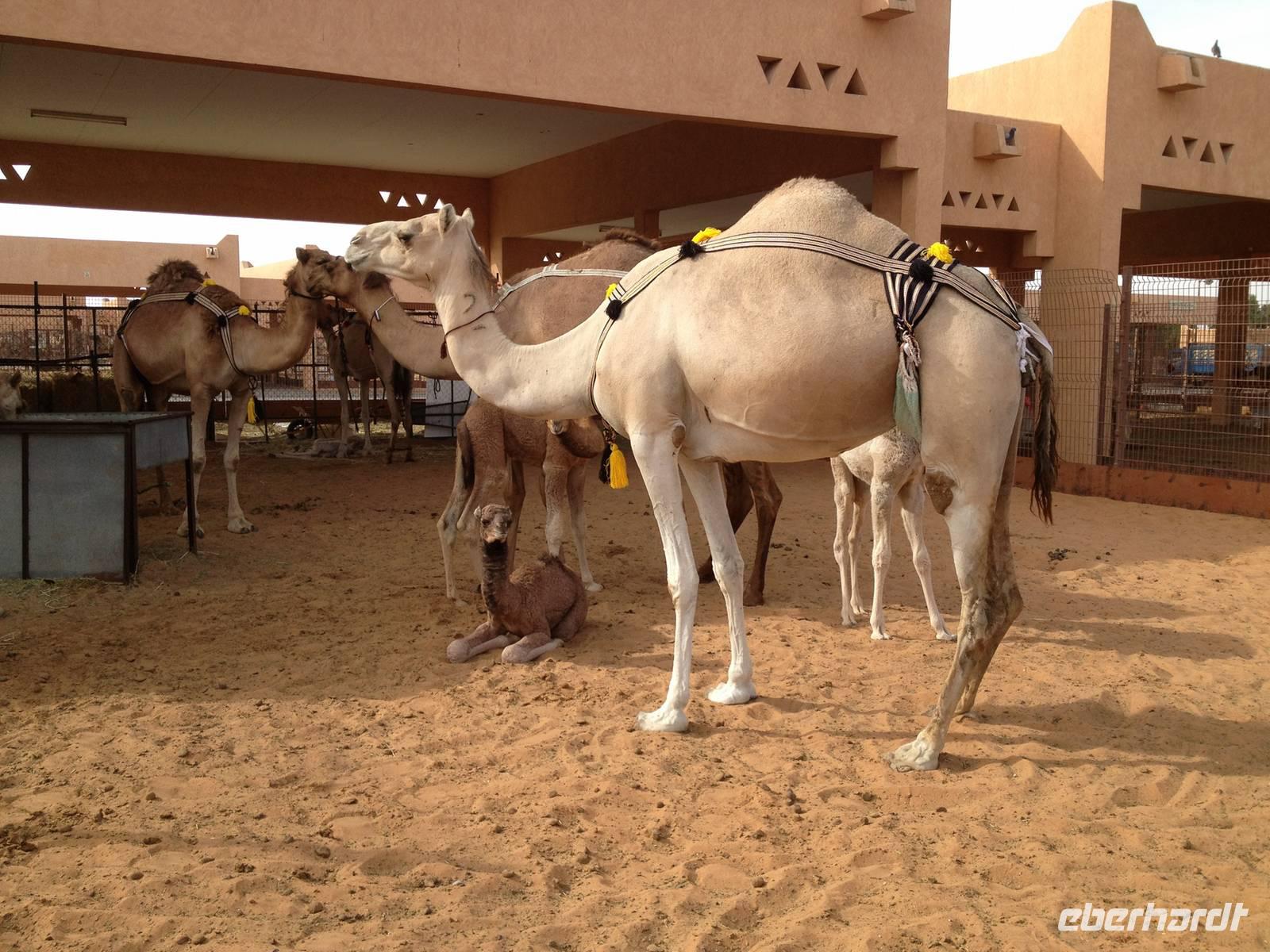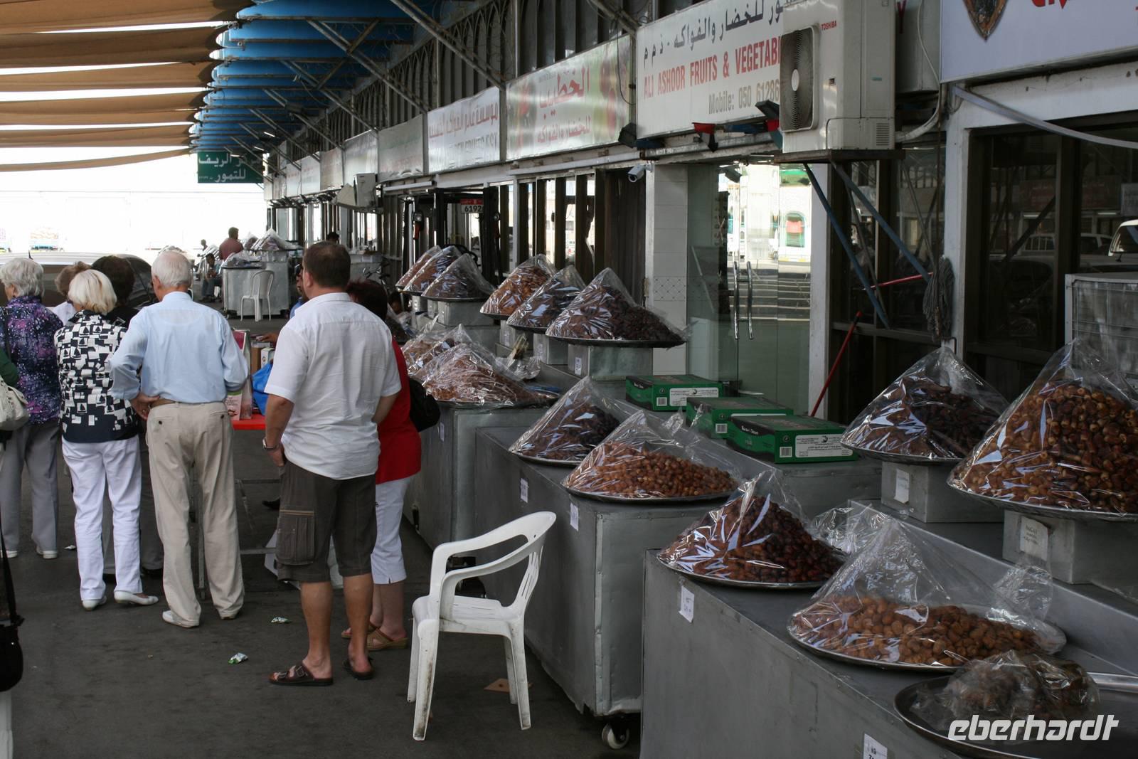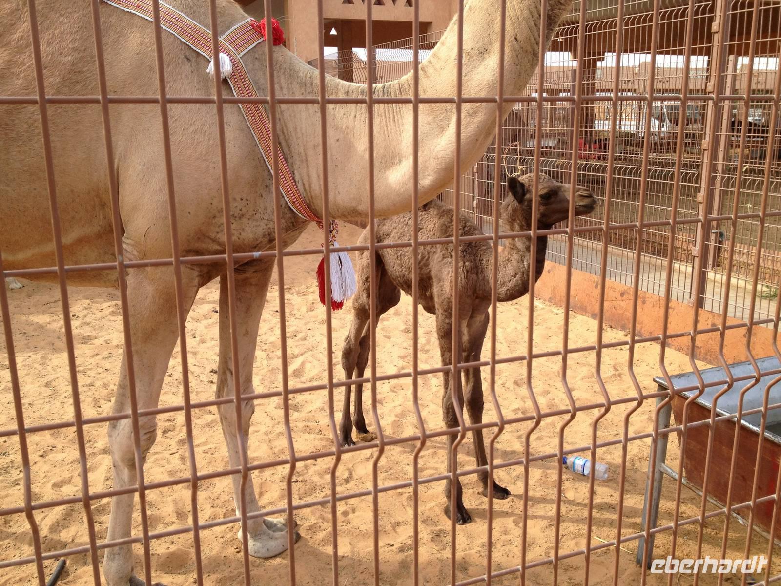 Etwas außerhalb des Stadtzentrums besuchten wir noch den berühmten Kamelmarkt. Viele Interessenten und Verkäufer kommen teils von weit her, um ihre Dromedare feilzubieten. Dieser Markt ist der letzte Souk seiner Art in den Vereinigten Arabischen Emiraten. Er bot uns eine exzellente Möglichkeit, Kamele aus nächster Nähe zu betrachten und Händlern bei den Diskussionen um den Preis und die Vorzüge ihrer Tiere zuzusehen und zuzuhören.
