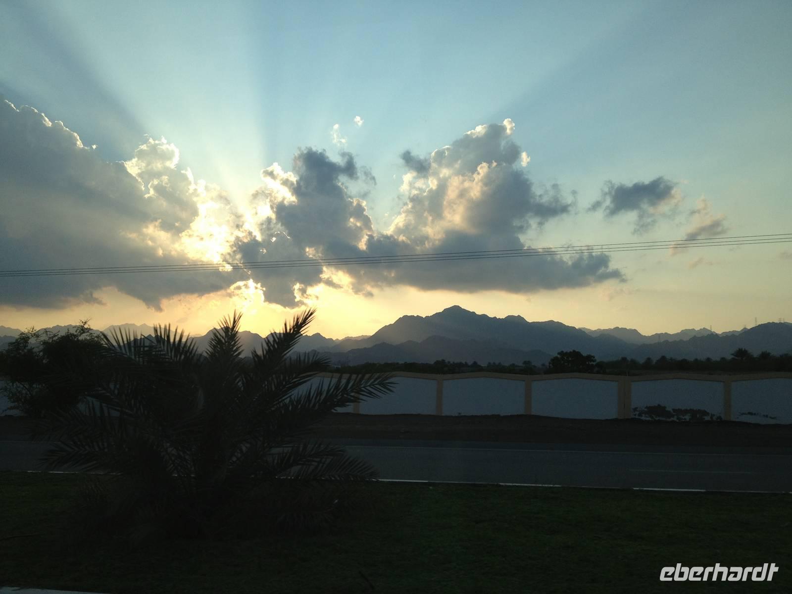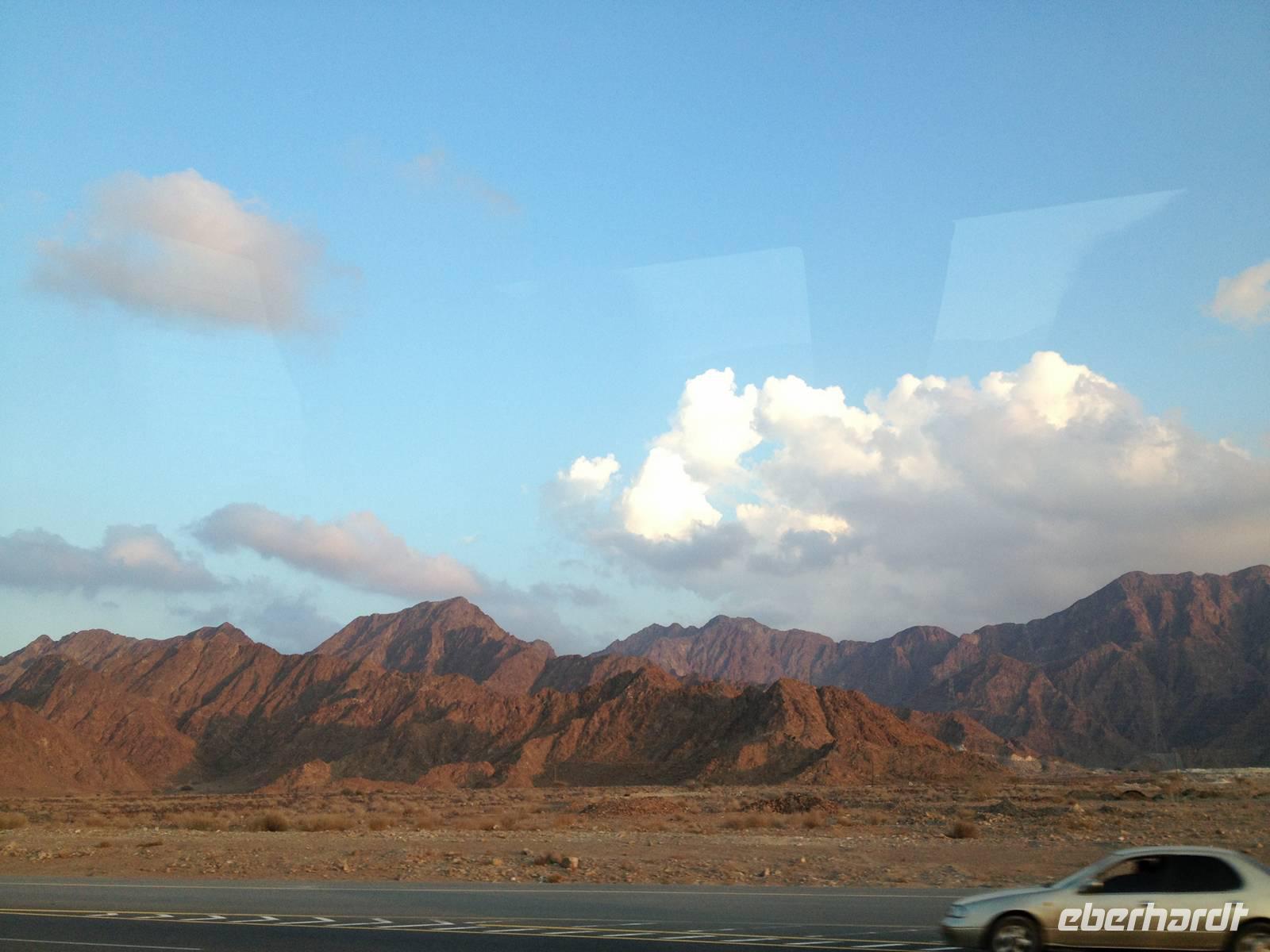 Im Sandy Beach Hotel direkt am Meer ließen wir uns das Mittagessen schmecken und stürzten uns dann in die Fluten des angenehm warmen Golfs von Oman, der ein Teil des Indischen Ozeans ist. Leider wollte das Wetter nicht so wie wir und graue Wolken verdeckten die warmen Strahlen der arabischen Sonne. Dennoch hatten wir einen schönen Tag an der Ostküste und begaben uns am späten Nachmittag auf den Rückweg nach Dubai.
