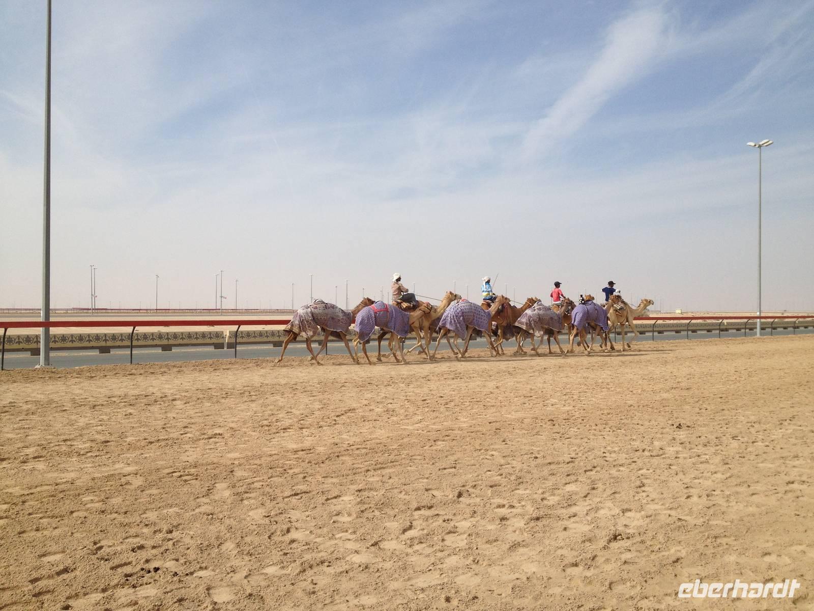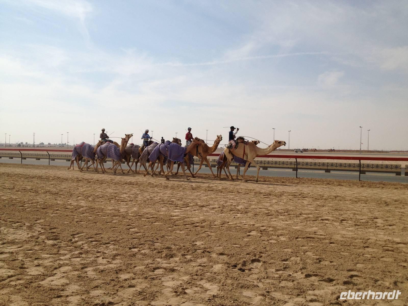 Am letzten Tag unserer gemeinsamen Reise in die arabische Welt gönnten sich einige Gäste ein wenig Ruhe und Erholung am Meer. Mit einer kleinen Gruppe machten wir uns aber auf den Weg in Richtung Al Ain - die Oasenstadt. Auf dem Weg ins Landesinnere hielten wir an einer Kamelrennstrecke und konnten einigen Jockeys beim Training mit ihren Kamelen zuschauen.