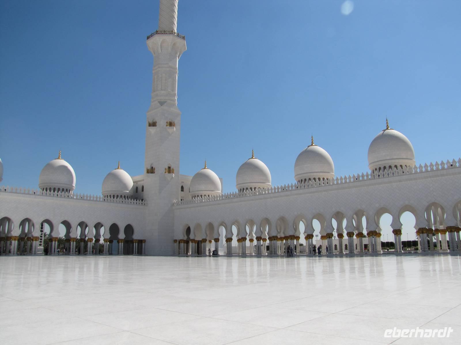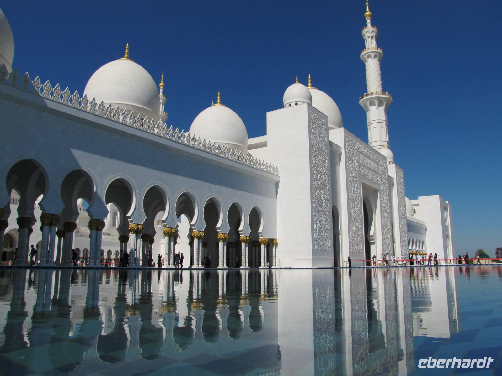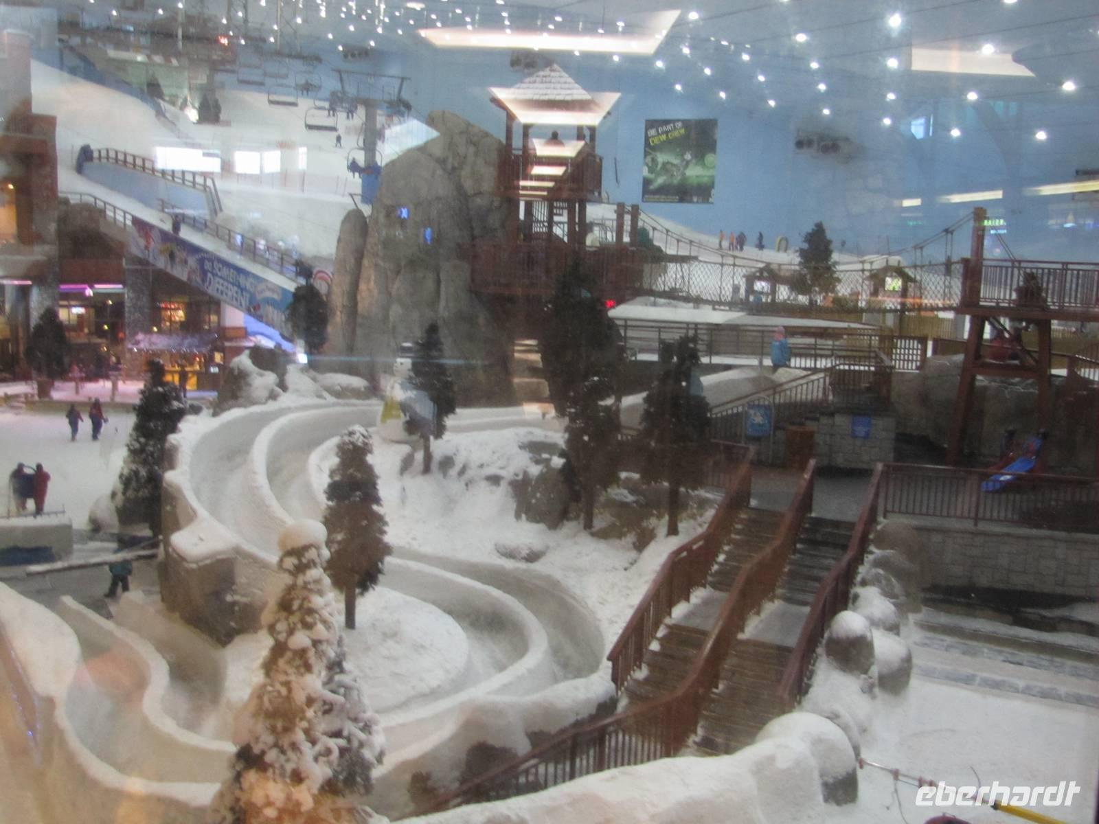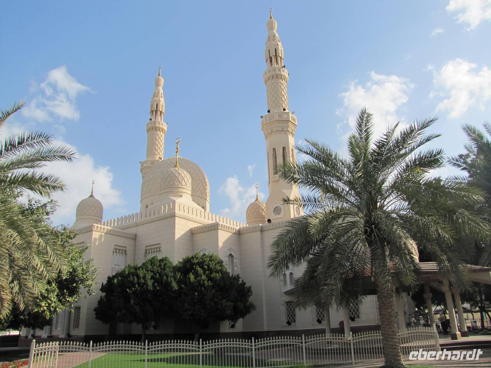 Nach einer kurzen Nacht und etwas verschlafen kamen wir bei angenehmen 18Grad früh morgens in Dubai am Flughafen an. Unsere Reiseleiterin Anja erwartete uns schon sehnsüchtig und begrüßte uns in Ihrer gut gelaunten und freundlichen Art. Voller Vorfreude fuhren wir zusammen mit einem komfortablen Reisebus zum Hotel „Arabien Courtyard". Im Hotel konnten wir unsere Koffer abstellen und erst einmal ganz in Ruhe Frühstücken. Das leckere Frühstücksbuffet und das frisch zubereitete Omelette war ein toller Einstieg in den noch jungen Tag. Gut gesättigt machten wir uns auf und fuhren mit dem Bus erst einmal zur Jumeirah Moschee, der größten von Dubai. Bei strahlendem Sonnenschein und blauen Himmel schossen wir erste tolle Fotos. Anschließend ging es zum ersten großen Highlight der Stadt. Das Burj Al Arab Hotel. Vom Jumeirah Beach blickten wir auf das 7 Sterne Hotel und machten ein Foto nach dem anderen. Das Hotel zählt mit zu den teuersten der Welt. Mit seinen Baukosten von rund 1,5 Milliarden $ ist es eine der kostspieligsten Gebäude von Dubai. Feinster Carrara-Marmor und Tonnen an Blattgold wurden hierfür verwendet. Nach einem schönen Gruppenfoto ging es weiter entlang der Jumeirah Beach Road zur nächsten Superlative, der Dubai Marina. In kürzester Zeit entstanden hier über 100 Wolkenkratzer und mehrere Yachthäfen. Während der Bauzeit befanden sich die meisten Kräne der Welt in Dubai. Wir waren beeindruckt von der Höhe der Gebäude und blickten besonders interessiert auf den „Infinity Tower", der sich elegant in die Höhe drehte. Anja erklärte uns viel über das neu entstandene Stadtteil Dubai Marina. Nach dieser ersten beeindruckenden Kulisse ging es weiter zur „Palm Jumairah", der größten künstlich geschaffenen Insel der Welt in Form einer Palme. Am Ende der Insel befindet sich das Atlantishotel, welches wir von außen bestaunen konnten. Danach fuhr uns Busfahrer Nassad zum nächsten Weltrekord, der größten Skihalle der Welt in der Mall of the Emirates. Dort sahen wir die Einheimischen beim Wintersport und Schneespaß. Wir staunten nicht schlecht. In der Mall hatten wir etwas Freizeit und konnten uns im Food Court auf „Nahrungssuche" begeben.