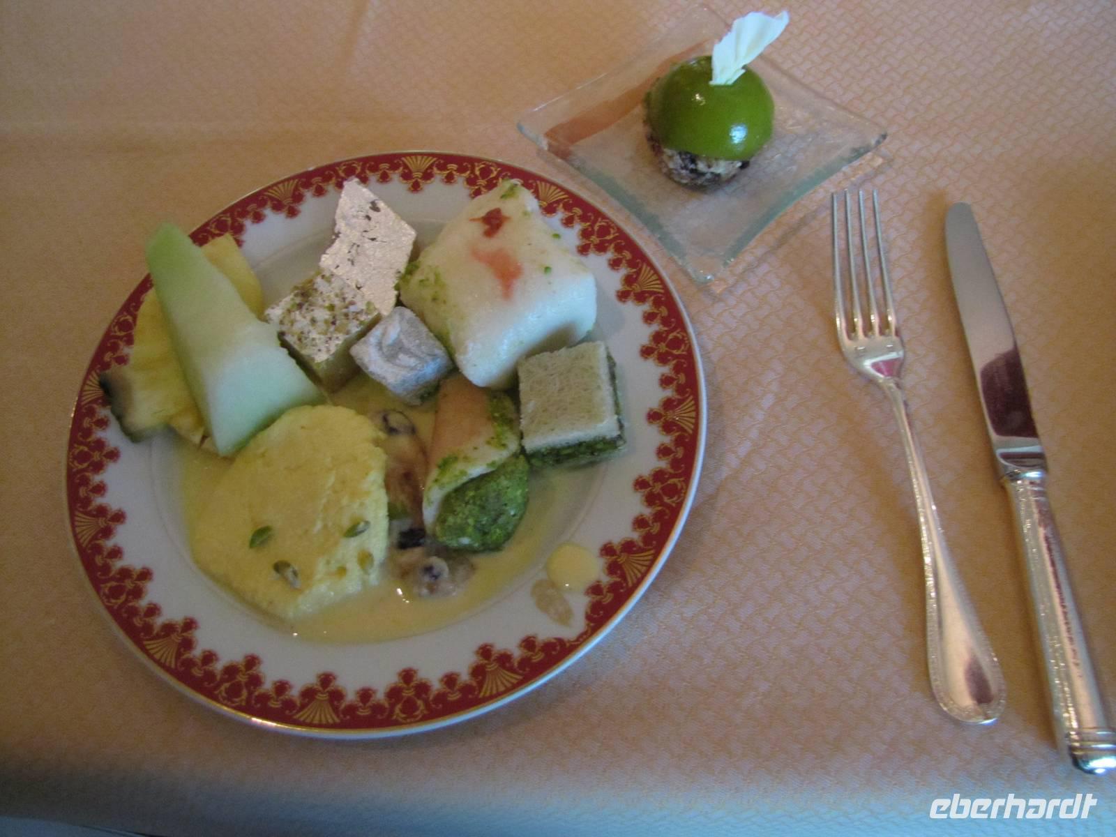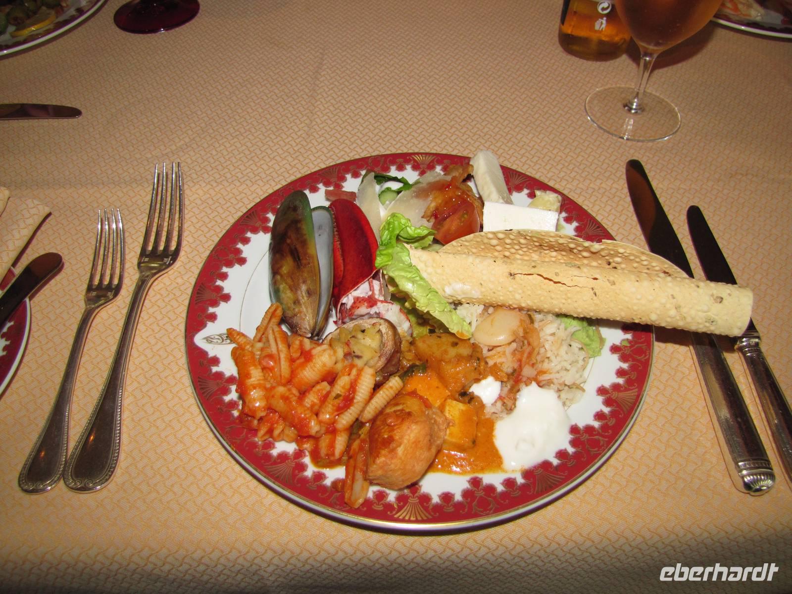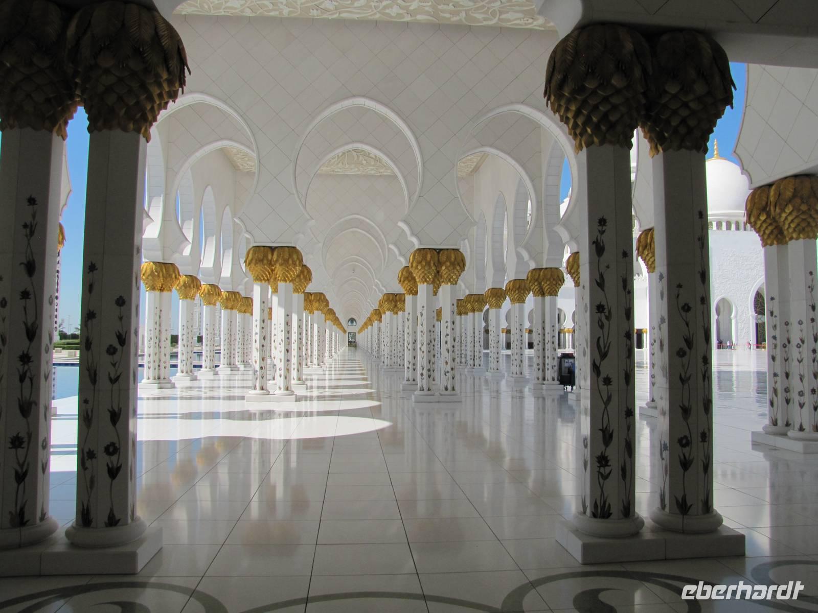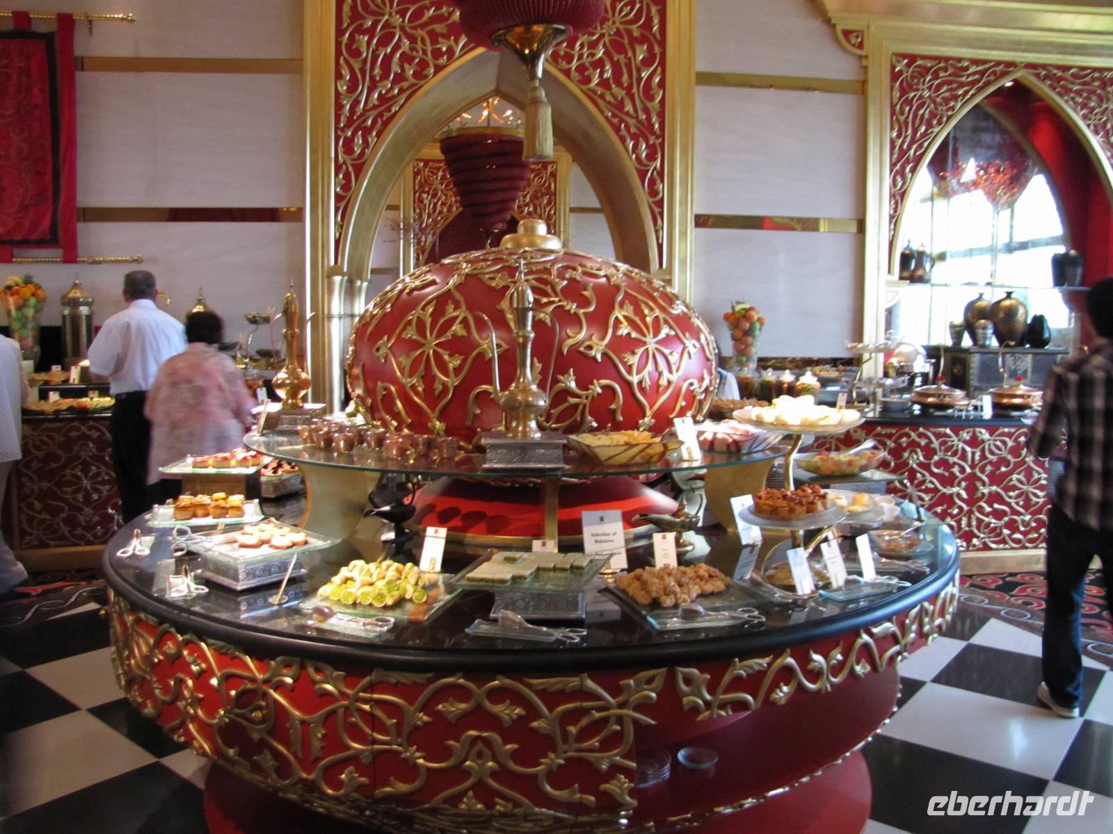 Nach einer kurzen Nacht und etwas verschlafen kamen wir bei angenehmen 18Grad früh morgens in Dubai am Flughafen an. Unsere Reiseleiterin Anja erwartete uns schon sehnsüchtig und begrüßte uns in Ihrer gut gelaunten und freundlichen Art. Voller Vorfreude fuhren wir zusammen mit einem komfortablen Reisebus zum Hotel „Arabien Courtyard". Im Hotel konnten wir unsere Koffer abstellen und erst einmal ganz in Ruhe Frühstücken. Das leckere Frühstücksbuffet und das frisch zubereitete Omelette war ein toller Einstieg in den noch jungen Tag. Gut gesättigt machten wir uns auf und fuhren mit dem Bus erst einmal zur Jumeirah Moschee, der größten von Dubai. Bei strahlendem Sonnenschein und blauen Himmel schossen wir erste tolle Fotos. Anschließend ging es zum ersten großen Highlight der Stadt. Das Burj Al Arab Hotel. Vom Jumeirah Beach blickten wir auf das 7 Sterne Hotel und machten ein Foto nach dem anderen. Das Hotel zählt mit zu den teuersten der Welt. Mit seinen Baukosten von rund 1,5 Milliarden $ ist es eine der kostspieligsten Gebäude von Dubai. Feinster Carrara-Marmor und Tonnen an Blattgold wurden hierfür verwendet. Nach einem schönen Gruppenfoto ging es weiter entlang der Jumeirah Beach Road zur nächsten Superlative, der Dubai Marina. In kürzester Zeit entstanden hier über 100 Wolkenkratzer und mehrere Yachthäfen. Während der Bauzeit befanden sich die meisten Kräne der Welt in Dubai. Wir waren beeindruckt von der Höhe der Gebäude und blickten besonders interessiert auf den „Infinity Tower", der sich elegant in die Höhe drehte. Anja erklärte uns viel über das neu entstandene Stadtteil Dubai Marina. Nach dieser ersten beeindruckenden Kulisse ging es weiter zur „Palm Jumairah", der größten künstlich geschaffenen Insel der Welt in Form einer Palme. Am Ende der Insel befindet sich das Atlantishotel, welches wir von außen bestaunen konnten. Danach fuhr uns Busfahrer Nassad zum nächsten Weltrekord, der größten Skihalle der Welt in der Mall of the Emirates. Dort sahen wir die Einheimischen beim Wintersport und Schneespaß. Wir staunten nicht schlecht. In der Mall hatten wir etwas Freizeit und konnten uns im Food Court auf „Nahrungssuche" begeben.
