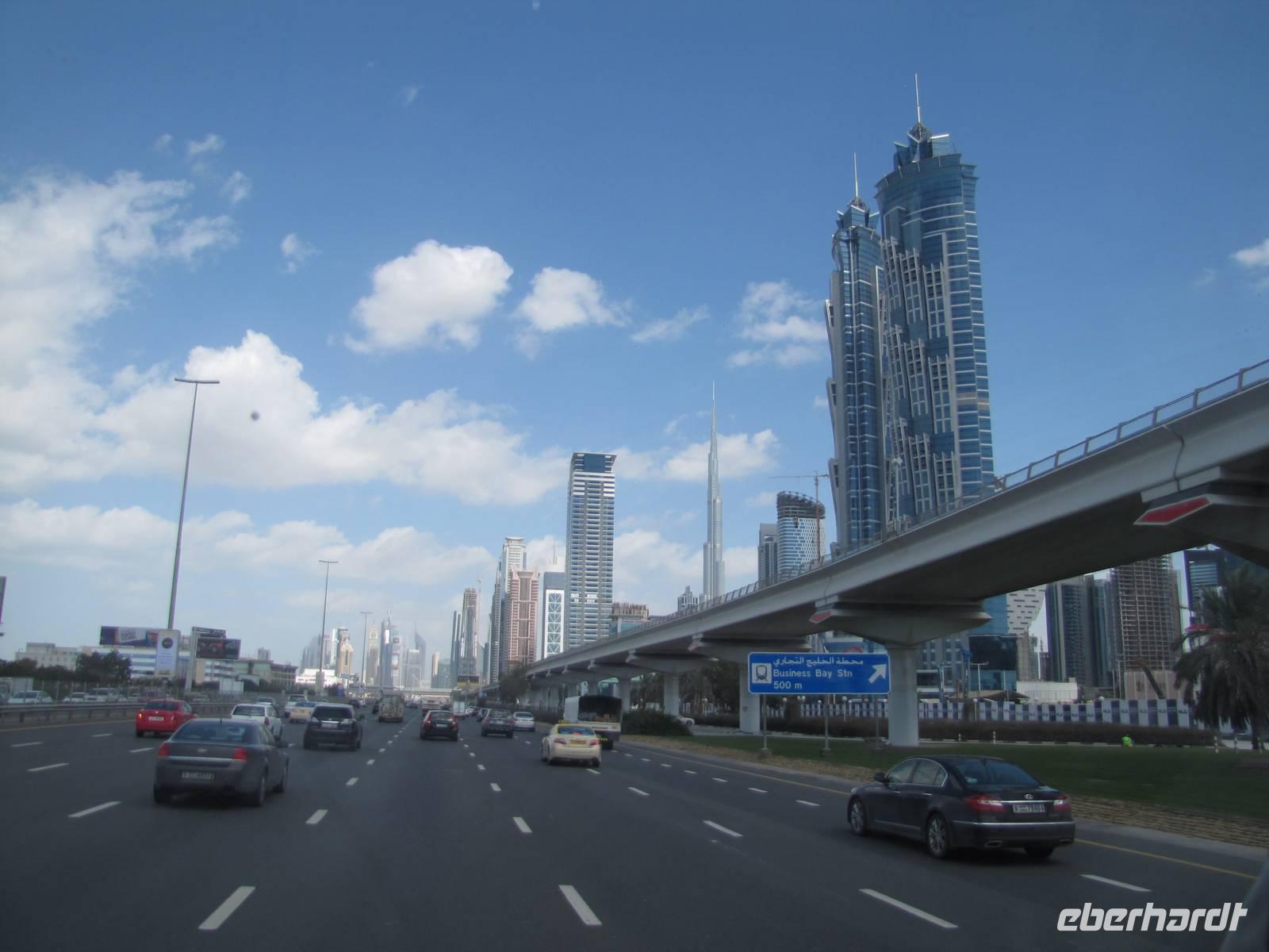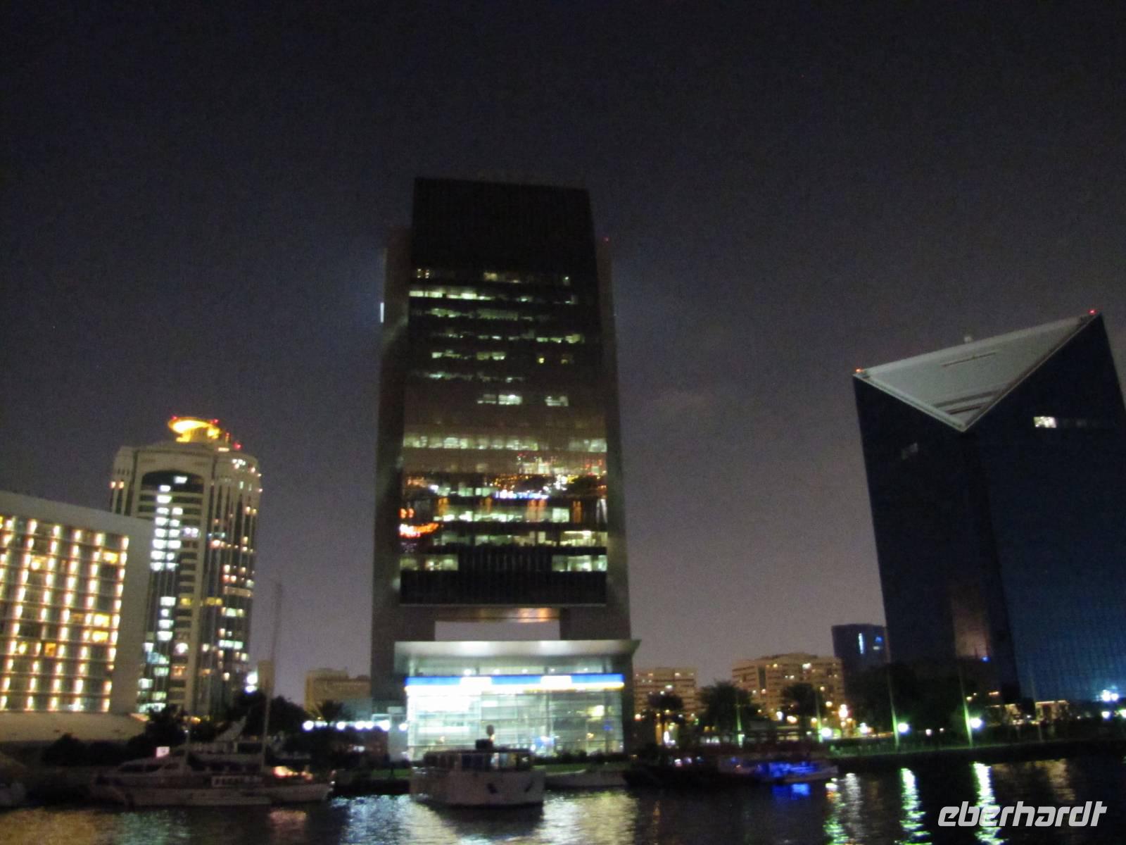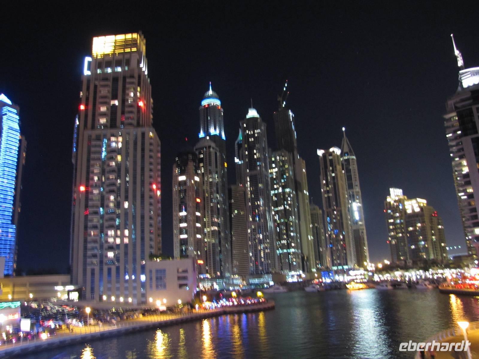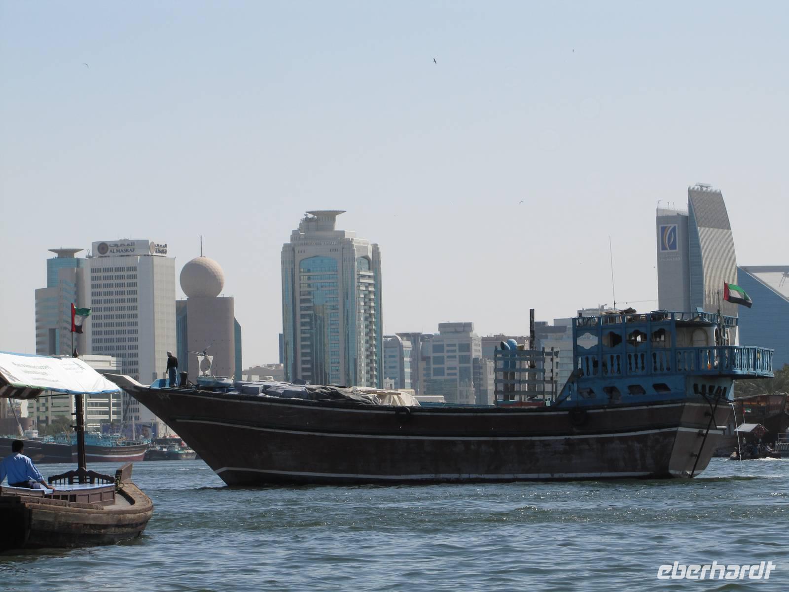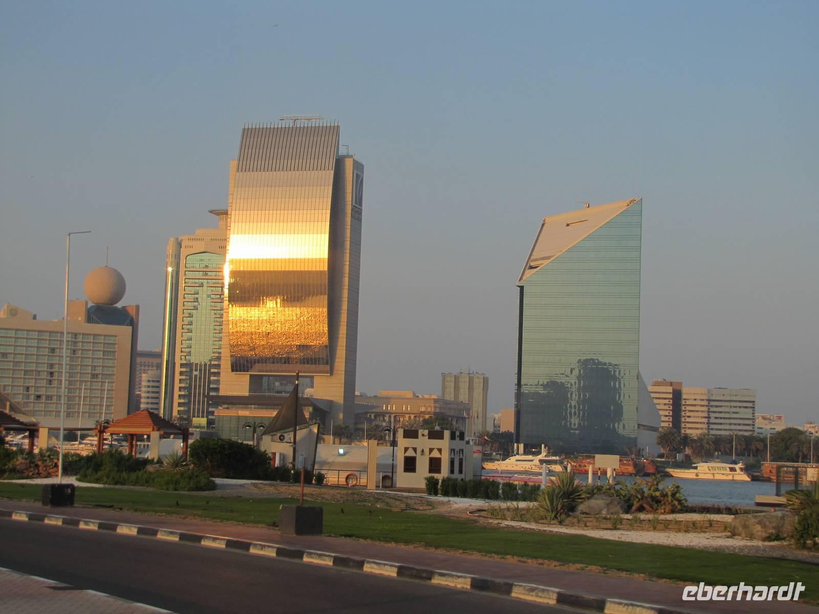Nach ca. 40min. Aufenthalt in der Mall fuhren wir entlang der „Shaihk zayed road", der Hauptverkehrsader von Dubai zurück zum Hotel. 7 Spuren reiten sich auf beiden Seiten aneinander. Links und rechts der Straße die rangten sich wieder gigantische Wolkenkratzer in die Höhe. 1980 befand sich dort eine kleine Sandstraße mit kleinen Gebäuden, heute stehen dort die schönsten und höchsten Wolkenkratzer der Welt. Diese überaus erstaunliche Entwicklung haben die Emiratis nicht nur der Entdeckung von Öl in den 60er Jahren zu verdanken, sondern auch dem Scheich Zayed bin Sultan Al Nahyan. Er hat Dubai ins Rampenlicht der Welt gebracht und dafür gesorgt das Dubai ein modernes Märchen aus 1000 und einer Nacht geworden ist. Im Hotel angekommen bezogen wir erstmal unsere Zimmer und verarbeiteten erstmal diese tollen Eindrücke. Abends speißten wir in den Twin Towers am Dubai Creek.