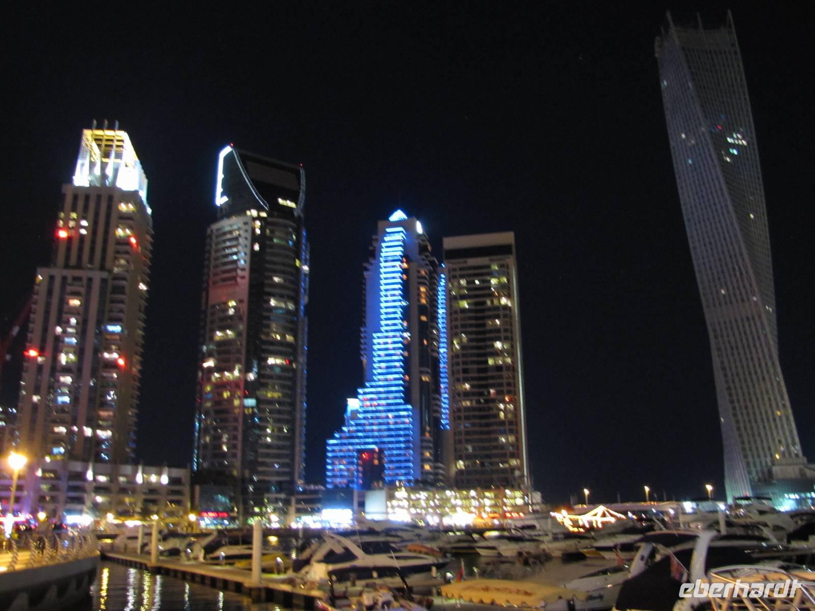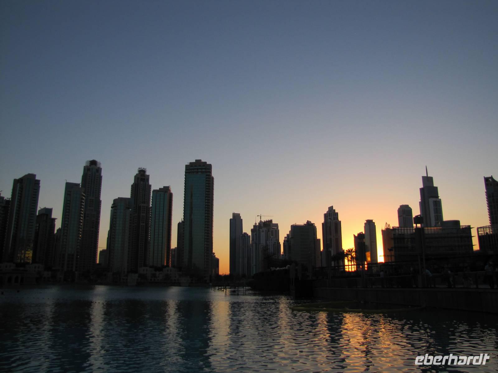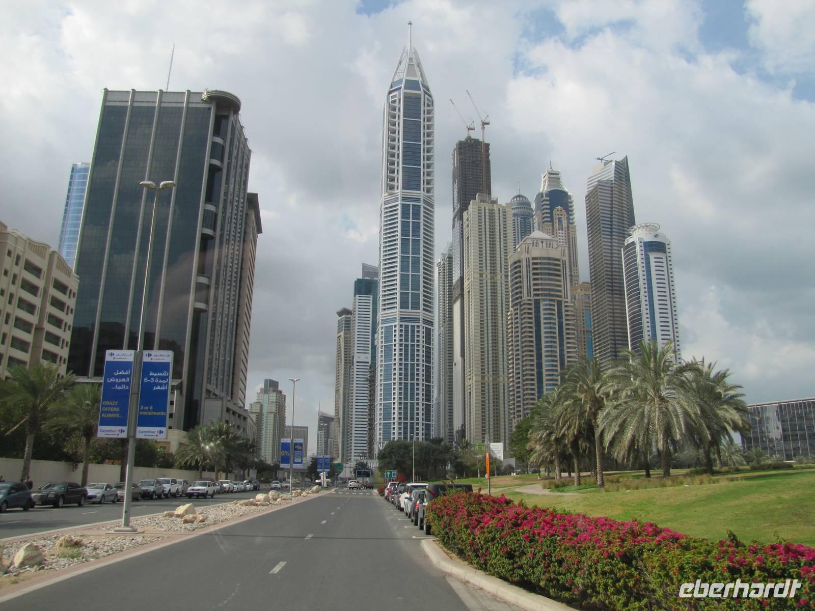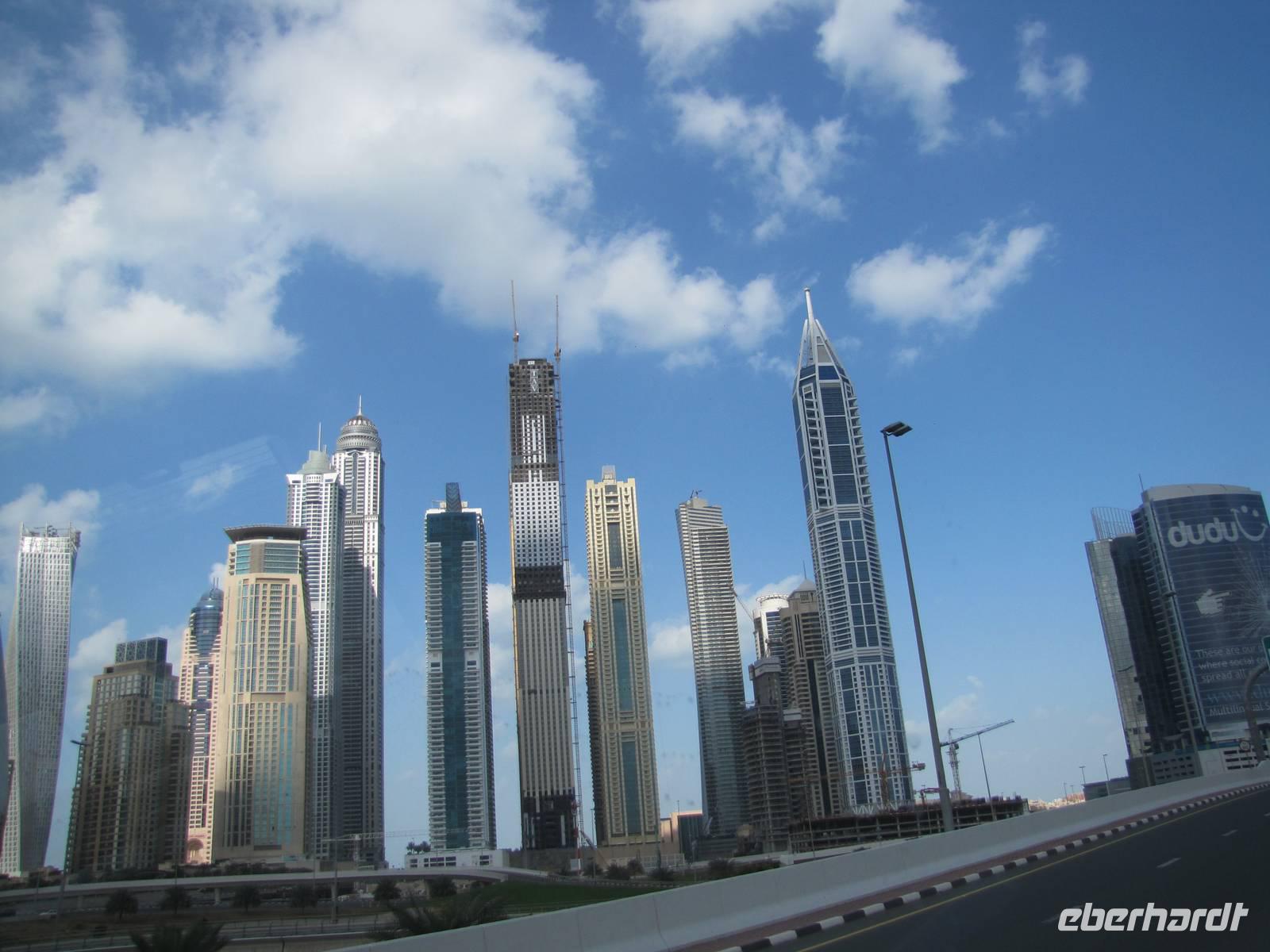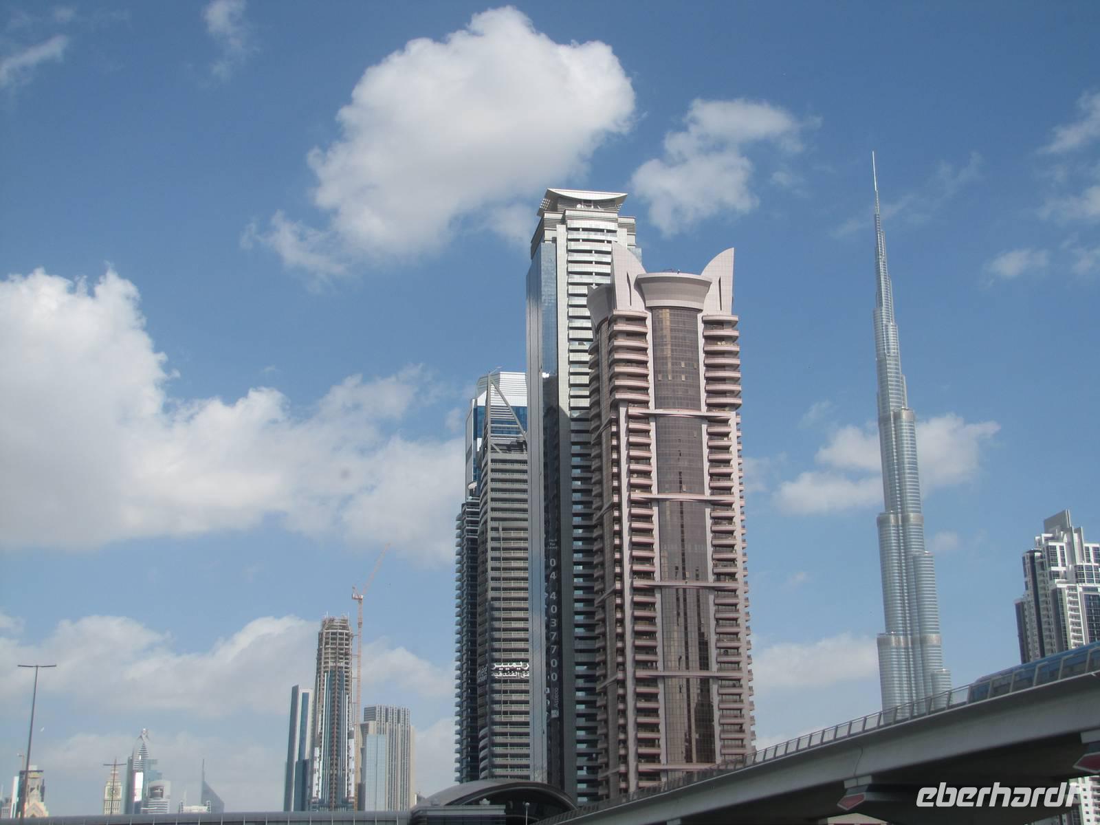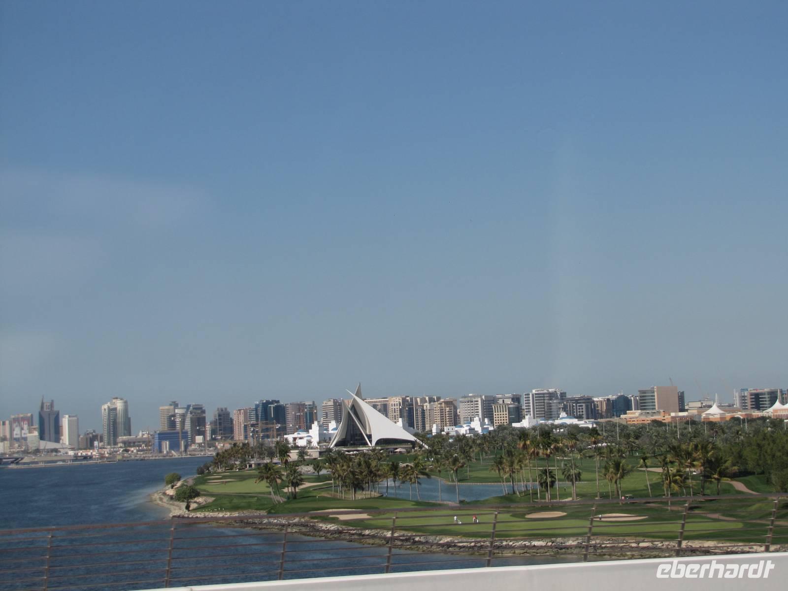 Nach ca. 40min. Aufenthalt in der Mall fuhren wir entlang der „Shaihk zayed road", der Hauptverkehrsader von Dubai zurück zum Hotel. 7 Spuren reiten sich auf beiden Seiten aneinander. Links und rechts der Straße die rangten sich wieder gigantische Wolkenkratzer in die Höhe. 1980 befand sich dort eine kleine Sandstraße mit kleinen Gebäuden, heute stehen dort die schönsten und höchsten Wolkenkratzer der Welt. Diese überaus erstaunliche Entwicklung haben die Emiratis nicht nur der Entdeckung von Öl in den 60er Jahren zu verdanken, sondern auch dem Scheich Zayed bin Sultan Al Nahyan. Er hat Dubai ins Rampenlicht der Welt gebracht und dafür gesorgt das Dubai ein modernes Märchen aus 1000 und einer Nacht geworden ist. Im Hotel angekommen bezogen wir erstmal unsere Zimmer und verarbeiteten erstmal diese tollen Eindrücke. Abends speißten wir in den Twin Towers am Dubai Creek.