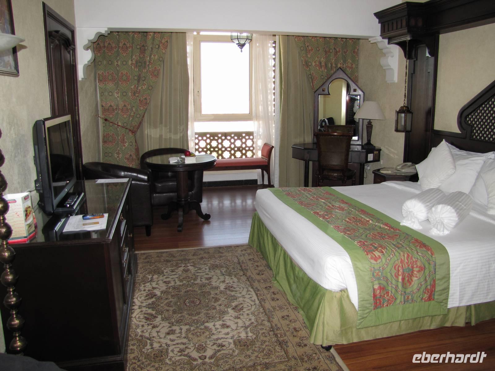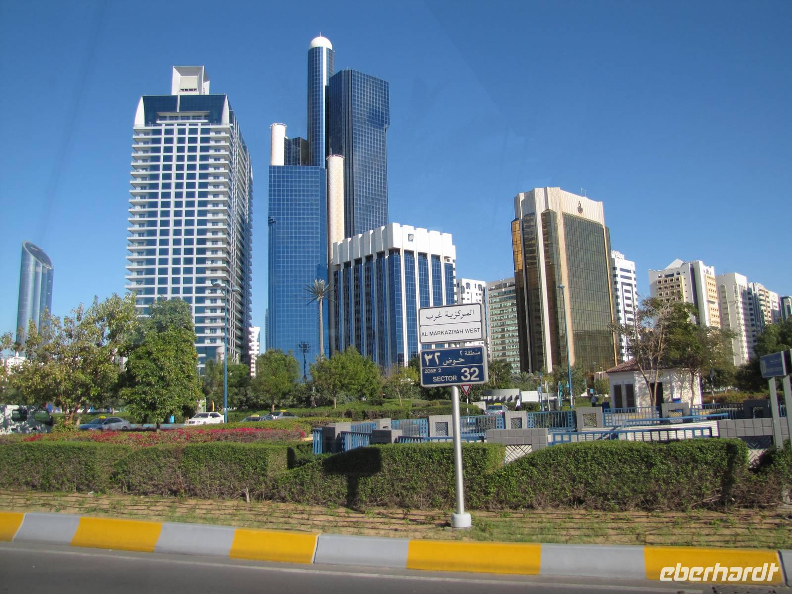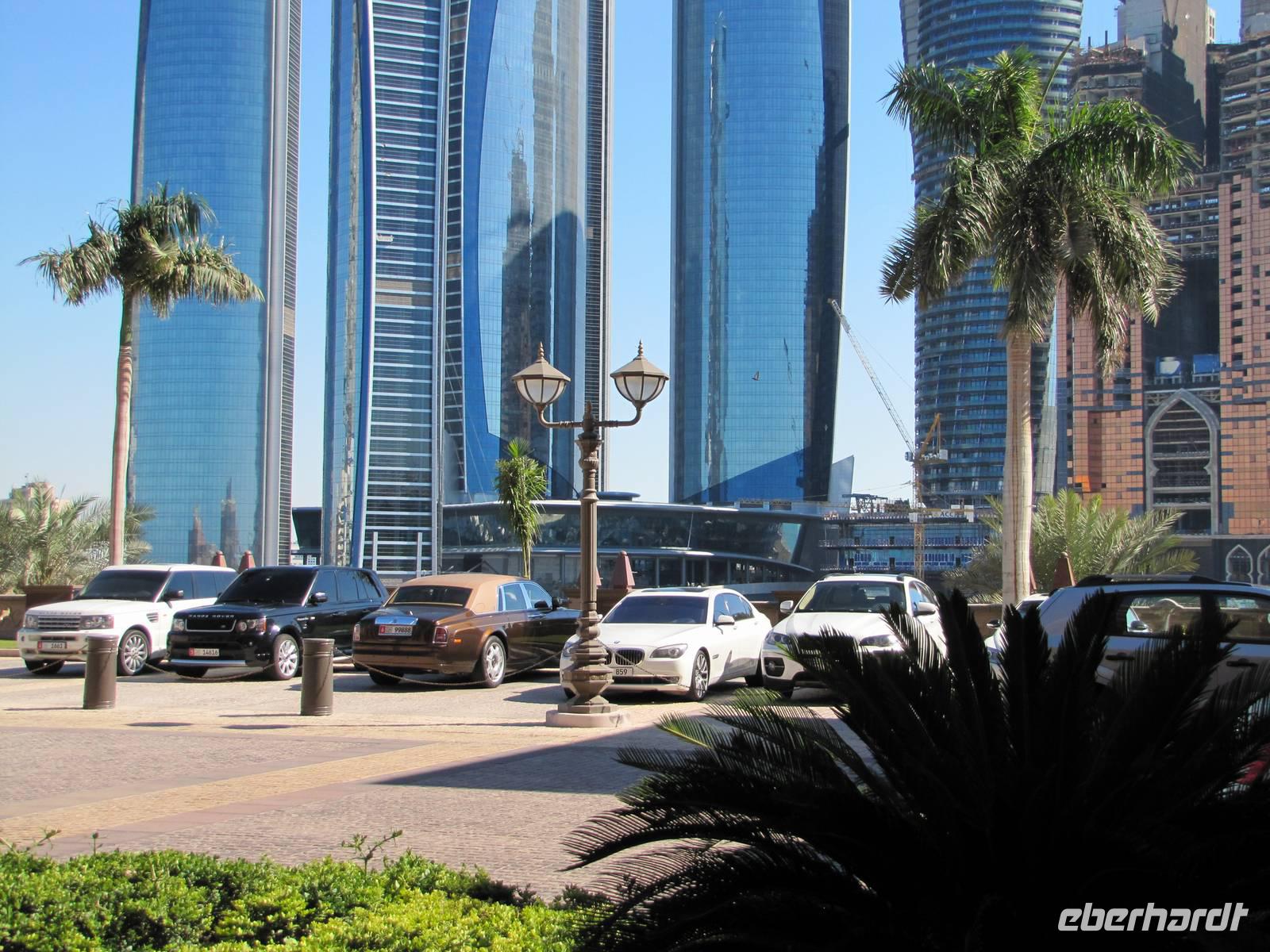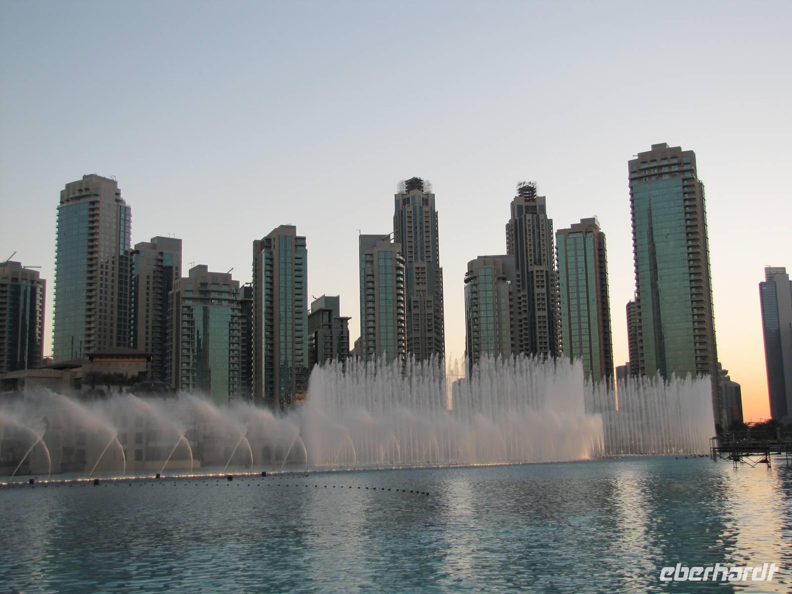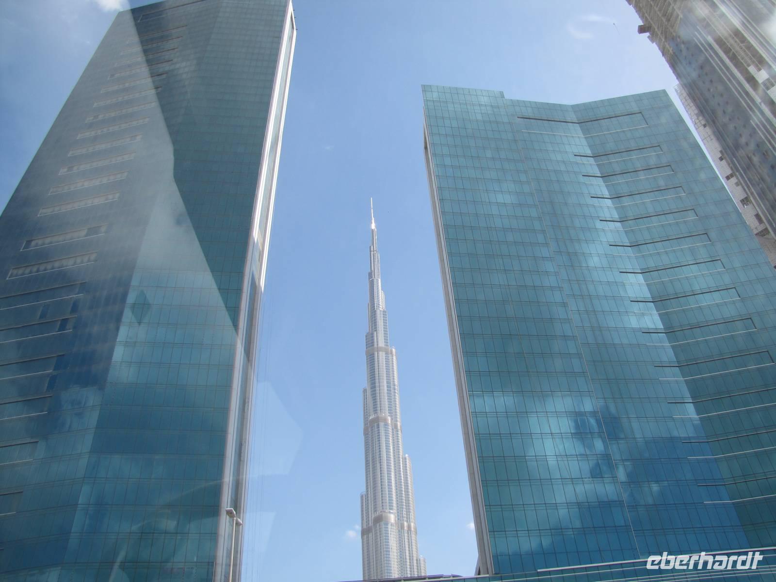 Nach ca. 40min. Aufenthalt in der Mall fuhren wir entlang der „Shaihk zayed road", der Hauptverkehrsader von Dubai zurück zum Hotel. 7 Spuren reiten sich auf beiden Seiten aneinander. Links und rechts der Straße die rangten sich wieder gigantische Wolkenkratzer in die Höhe. 1980 befand sich dort eine kleine Sandstraße mit kleinen Gebäuden, heute stehen dort die schönsten und höchsten Wolkenkratzer der Welt. Diese überaus erstaunliche Entwicklung haben die Emiratis nicht nur der Entdeckung von Öl in den 60er Jahren zu verdanken, sondern auch dem Scheich Zayed bin Sultan Al Nahyan. Er hat Dubai ins Rampenlicht der Welt gebracht und dafür gesorgt das Dubai ein modernes Märchen aus 1000 und einer Nacht geworden ist. Im Hotel angekommen bezogen wir erstmal unsere Zimmer und verarbeiteten erstmal diese tollen Eindrücke. Abends speißten wir in den Twin Towers am Dubai Creek.