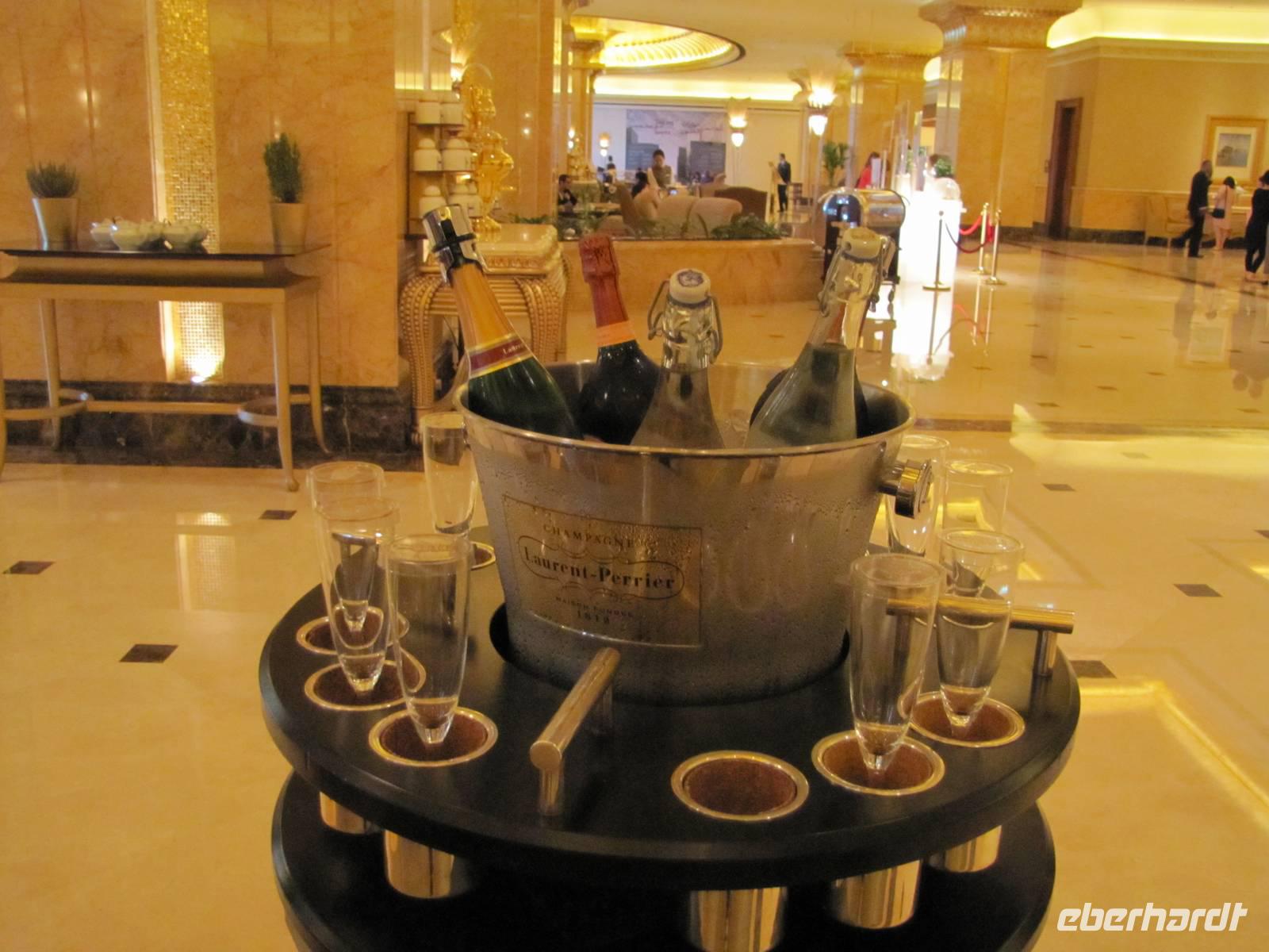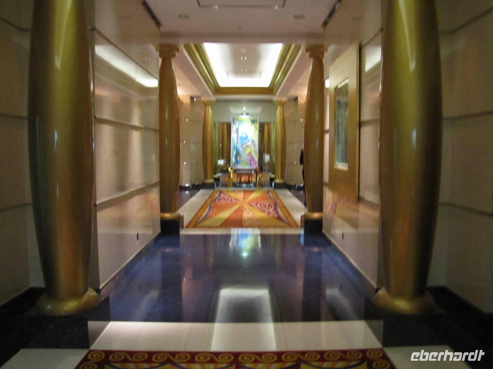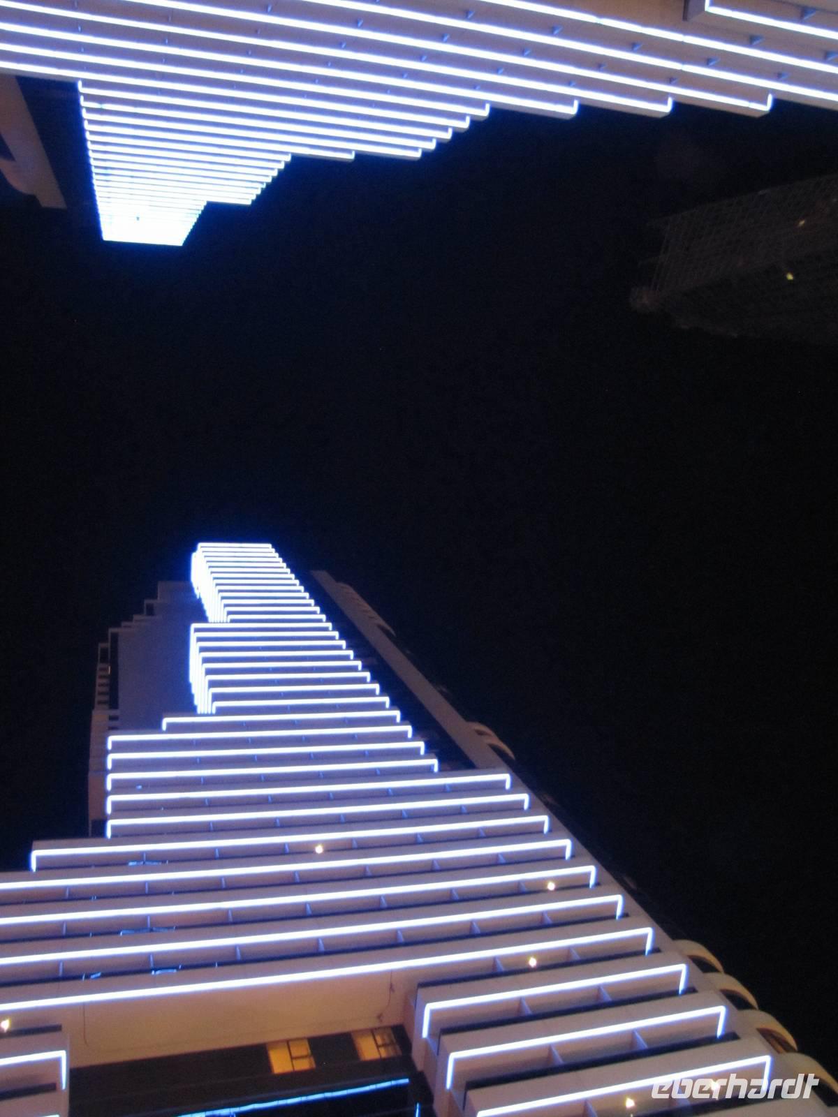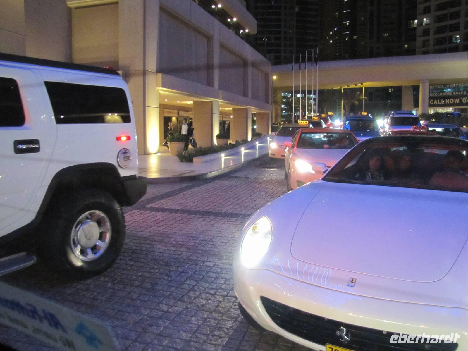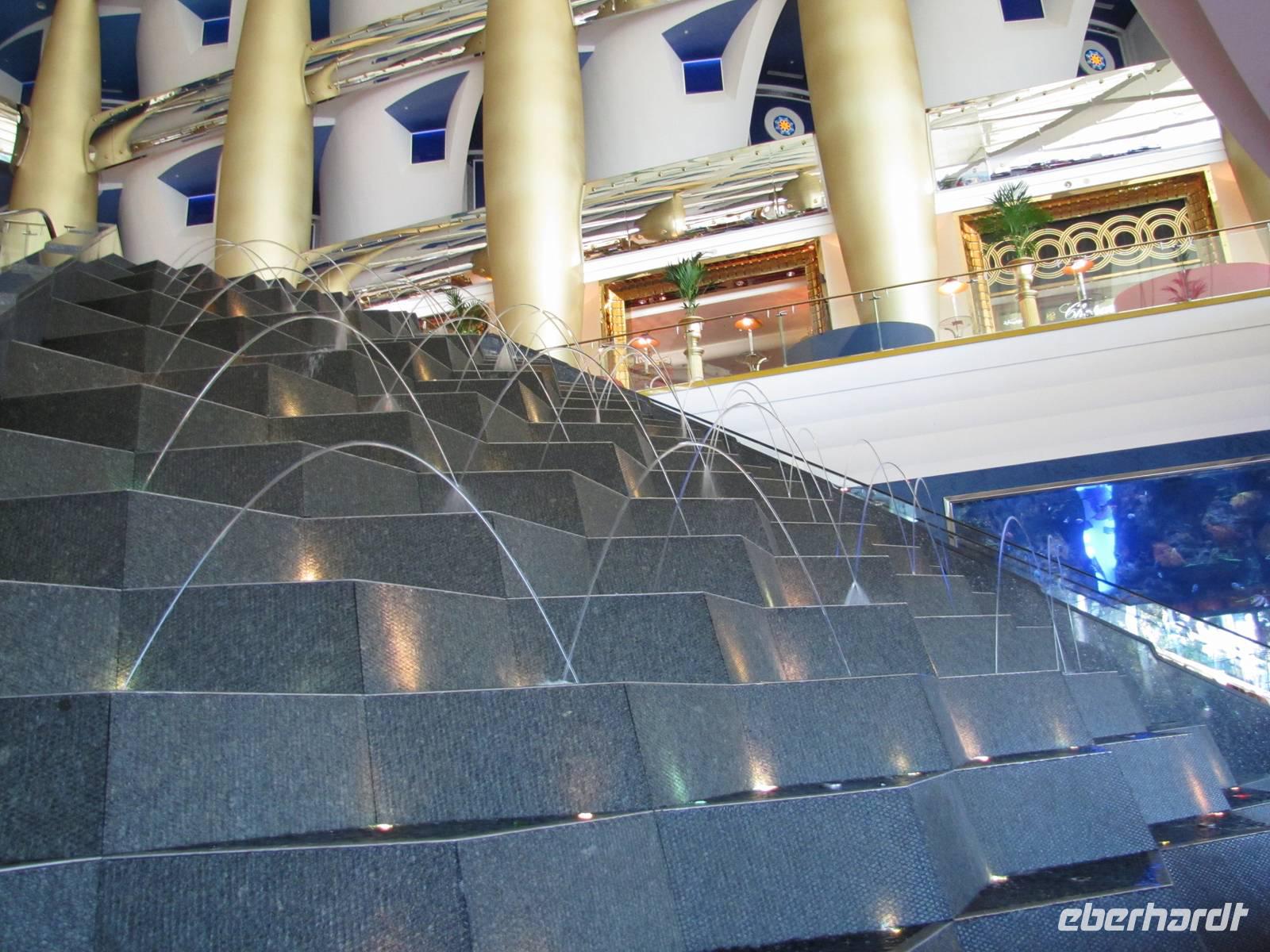 Nach ca. 40min. Aufenthalt in der Mall fuhren wir entlang der „Shaihk zayed road", der Hauptverkehrsader von Dubai zurück zum Hotel. 7 Spuren reiten sich auf beiden Seiten aneinander. Links und rechts der Straße die rangten sich wieder gigantische Wolkenkratzer in die Höhe. 1980 befand sich dort eine kleine Sandstraße mit kleinen Gebäuden, heute stehen dort die schönsten und höchsten Wolkenkratzer der Welt. Diese überaus erstaunliche Entwicklung haben die Emiratis nicht nur der Entdeckung von Öl in den 60er Jahren zu verdanken, sondern auch dem Scheich Zayed bin Sultan Al Nahyan. Er hat Dubai ins Rampenlicht der Welt gebracht und dafür gesorgt das Dubai ein modernes Märchen aus 1000 und einer Nacht geworden ist. Im Hotel angekommen bezogen wir erstmal unsere Zimmer und verarbeiteten erstmal diese tollen Eindrücke. Abends speißten wir in den Twin Towers am Dubai Creek.