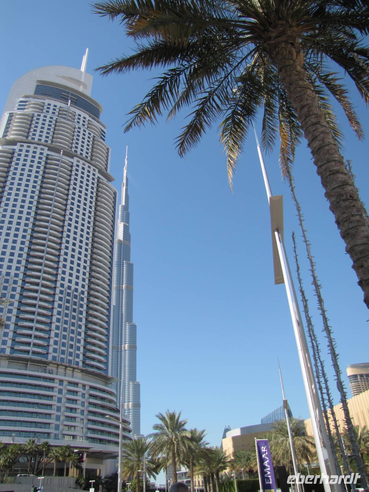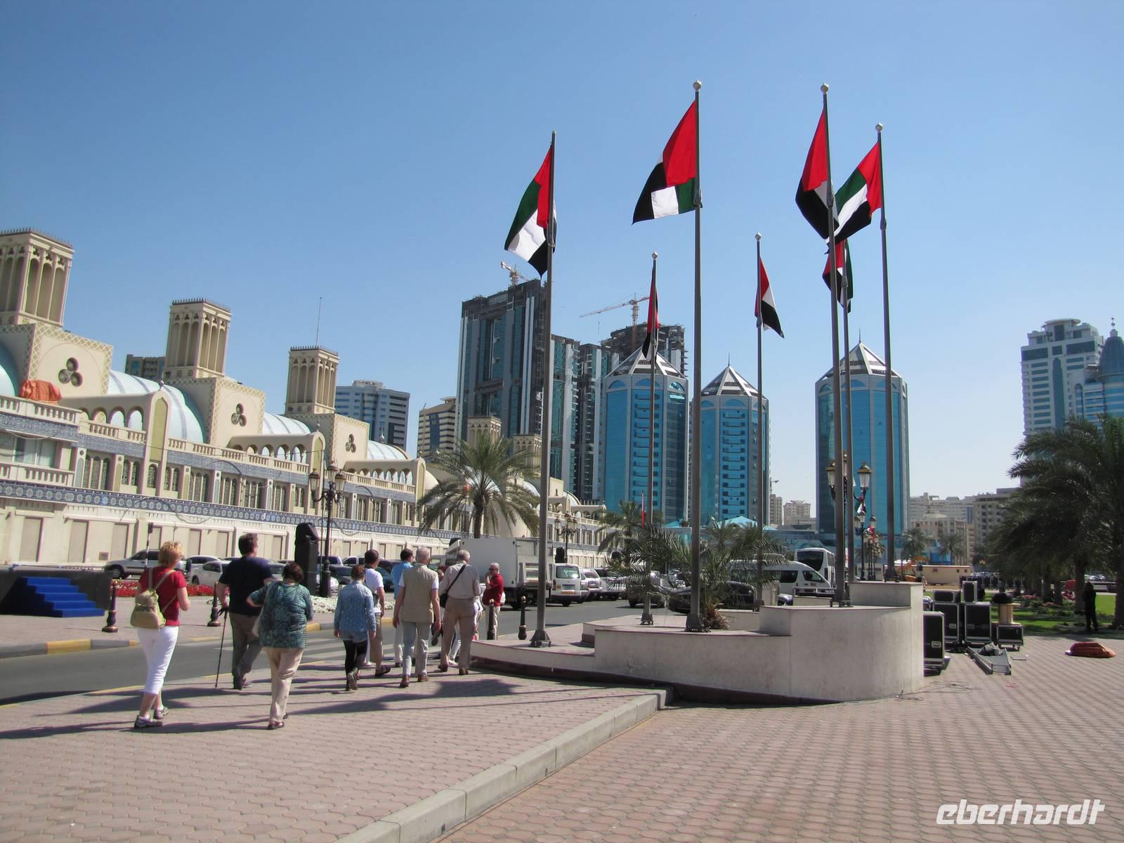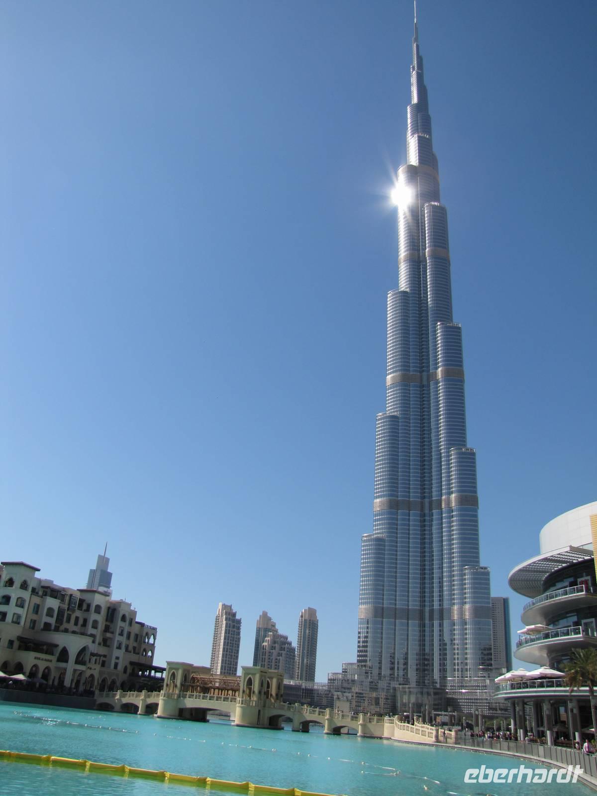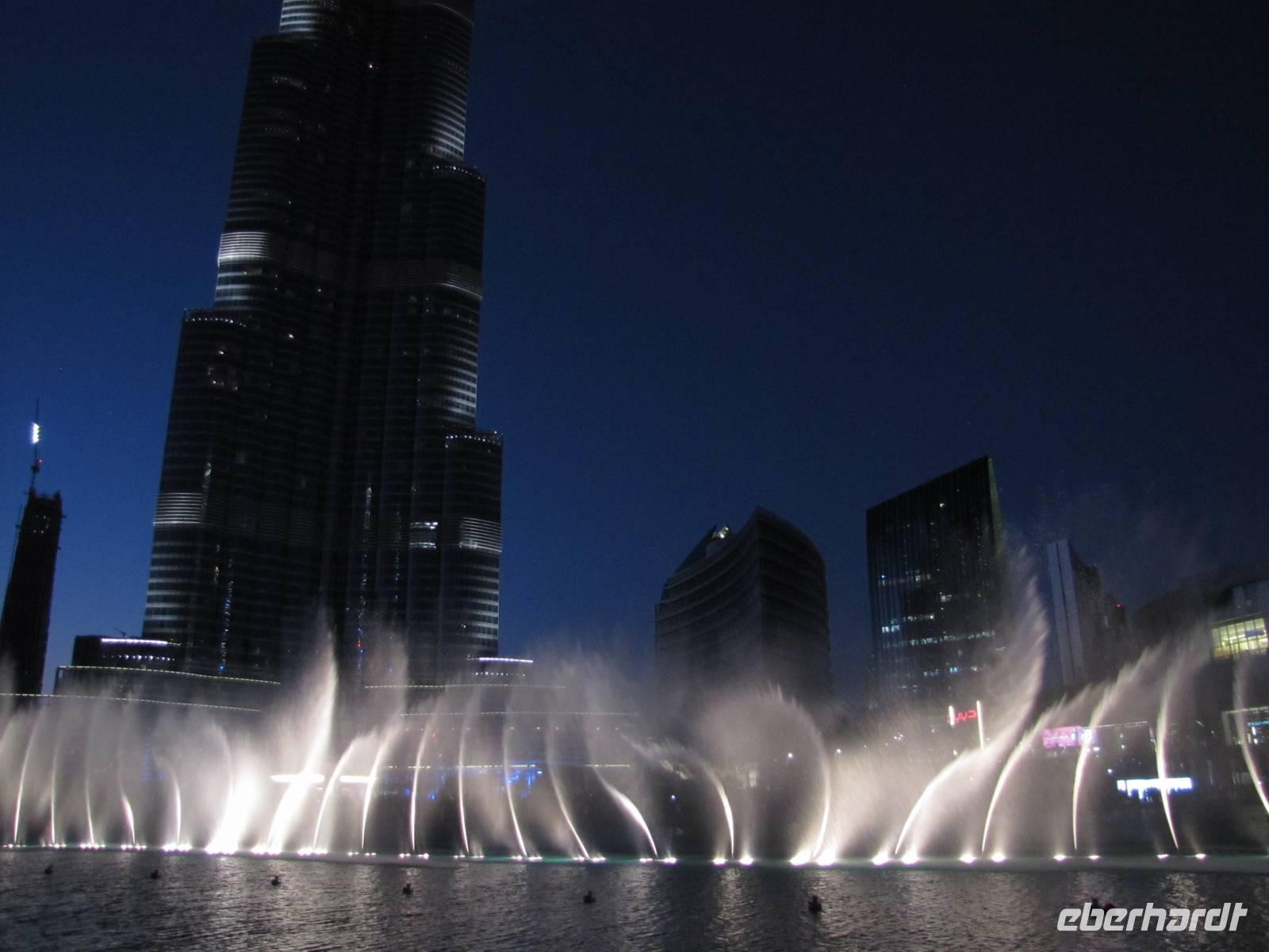 Heute ging es gegen 9.30 nach dem Frühstück zusammen mit Anja in das strengste der 7 Emiraten, nach Sharjah. Die gleichnamige Stadt grenzt fast direkt an Dubai an orientiert sich streng an die Scharia von z.B. Saudi Arabien. Von weiten sahen wir schon die hohen Hochhäuser der Stadt. Ähnlich wie in Dubai entstanden hier in den letzten 10 Jahren gigantische Wolkenkratzer. Jedoch werden diese vorwiegend als Wohnraum genutzt. Das Interessante an den Häusern ist, das fast jedes Gebäude einen Helikopter Landeplatz besitzt. Im Falle eines Brandes gerettet zu werden oder als Landeplatz um schnell zur Arbeit zu gelangen dienen die Dächer der Stadt. In Deutschland gibt es die Mitfahrgelegenheit und in Sharjah die „Mitfluggelegenheit" wo mehrere Geschäftleute frühs zusammen auf Arbeit fliegen nach Dubai. Wir fuhren ein wenig durch die Stadt und besuchten zuerst den Korankreisverkehr, wo rings herum eine Moschee, ein Gericht und ein Verwaltungsgebäude der Stadt standen. Weiter ging es zum Fischmarkt von Sharjah. Dort konnten wir den frischen Fang des Tages betrachten und auch mal einen kleinen Hai in die Hand nehmen. Unser größter der Reisegruppe, auch Konstantin genannt hielt stolz einen Hai vor die Kamera. Anschließend fuhren wir zu einer Mall und legten eine kurze Pause ein. Mit einem tollen Blick auf die Skyline verabschiedeten wir uns von Sharjah und es ging wieder nach Dubai. Unser nächstes Ziel hieß: Burj Khalifa, das höchste Haus der Welt. Dort angekommen blickten alle erstaunt in den blauen Himmel zur Spitze des Gebäudes. Es war ein gigantischer Anblick! Der Stadtteil heißt Downtown Dubai und am Fuße des Burj Khalifa befindet sich ein künstlicher See mit türkiesblauem Wasser. Nachdem wir tolle Fotos schossen, legten wir in der Dubai Mall, der größten Mall der Welt eine Mittagspause ein. Von Mc Donnals bis Nordsee gab es alles. Nach dem Essen besichtigten wir das Dubai Aquarium und den Dubai Zoo. Anschließend bestaunten wir noch den Dubai Ice Creek, die Schlittschuhbahn von Dubai. Dies befindet sich alles in der größten Mall der Welt, neben dem höchsten Haus der Welt. Anja erzählte uns immer wieder stolz, das Dubai die Stadt der Weltrekorde sei! Gegen 16.20Uhr ging es zum höchsten Aussichtspunkt der Welt mit dem schnellsten Fahrstuhl der Welt. (Und ich fuhr mit der liebsten Reisegruppe der Welt J). Das Gebäude hat eine Gesamthöhe von 828 Metern und wurde nach Scheich Khalifa benannt, um dich Dankbar für eine Geld Spritze aus Abu Dhabi zu zeigen. Bei ausgezeichneter Sicht blickten wir über die imposante Skyline bis hin zur Palmeninsel. Kurz vor 18.00 Uhr trafen wir uns wieder unten am ausgemachten Treffpunkt und bestaunten die tollen Wasserspiele am Fuße des Gebäudes. Immer ab 18.00 Uhr sind aller halben Stunde bis 23.00Uhr Wasserspiele mit Musikuntermalung. Wir konnten nicht genug bekommen und schauten uns 18.30Uhr nochmal eine Show an. Gegen 19.00Uhr fuhren wir zurück zum Hotel und freuten uns auf unser Abendbrot. Abends unternahm ich mit einigen Gästen noch einen kleinen Ausflug mit der Metro noch einmal zum Burj Khalifa, wir bestaunten noch einmal die tollen Wasserspiele und gingen danach in die Skybar „Neos" im Adress Hotel. Im 64. Stockwerk angekommen blickten wir über die tolle Skyline bei einem leckeren Drink. Gegen 24Uhr sind wir mit Taxis wieder zurück zum Hotel gefahren, eine Strecke kostete ca. 10,00€ (sehr günstig).