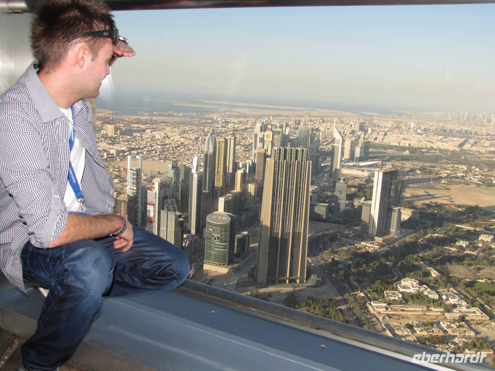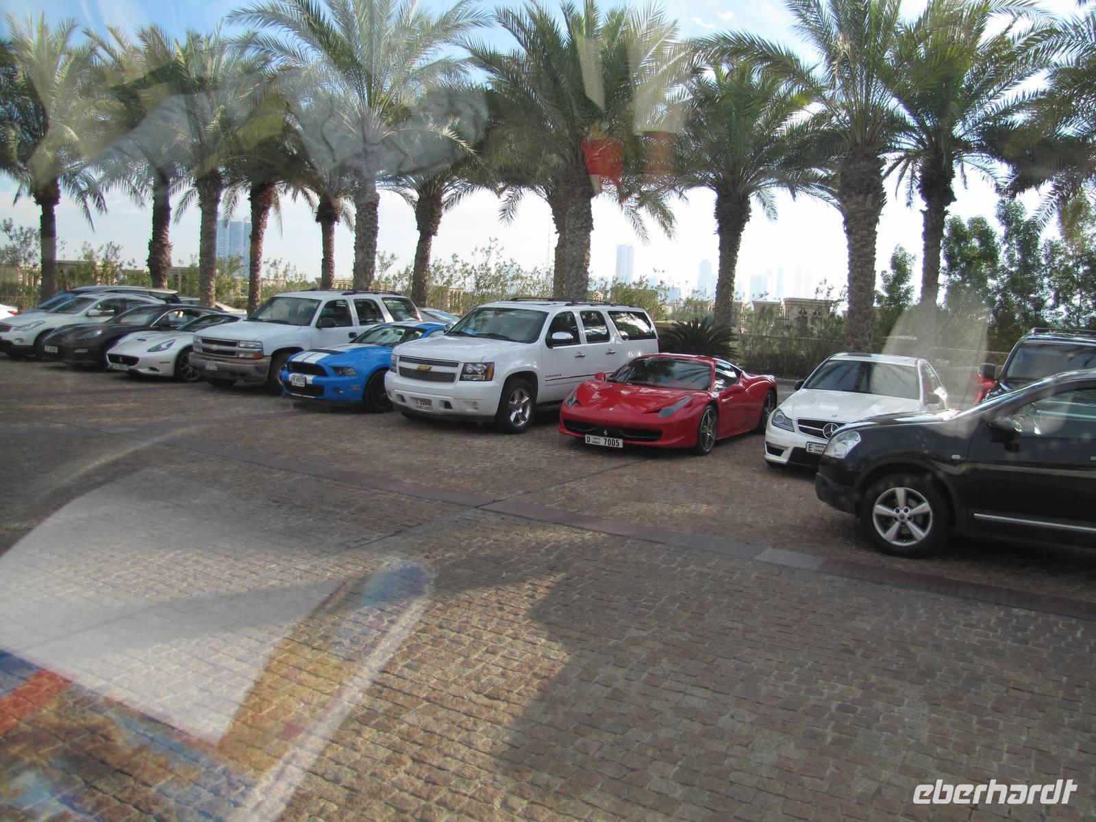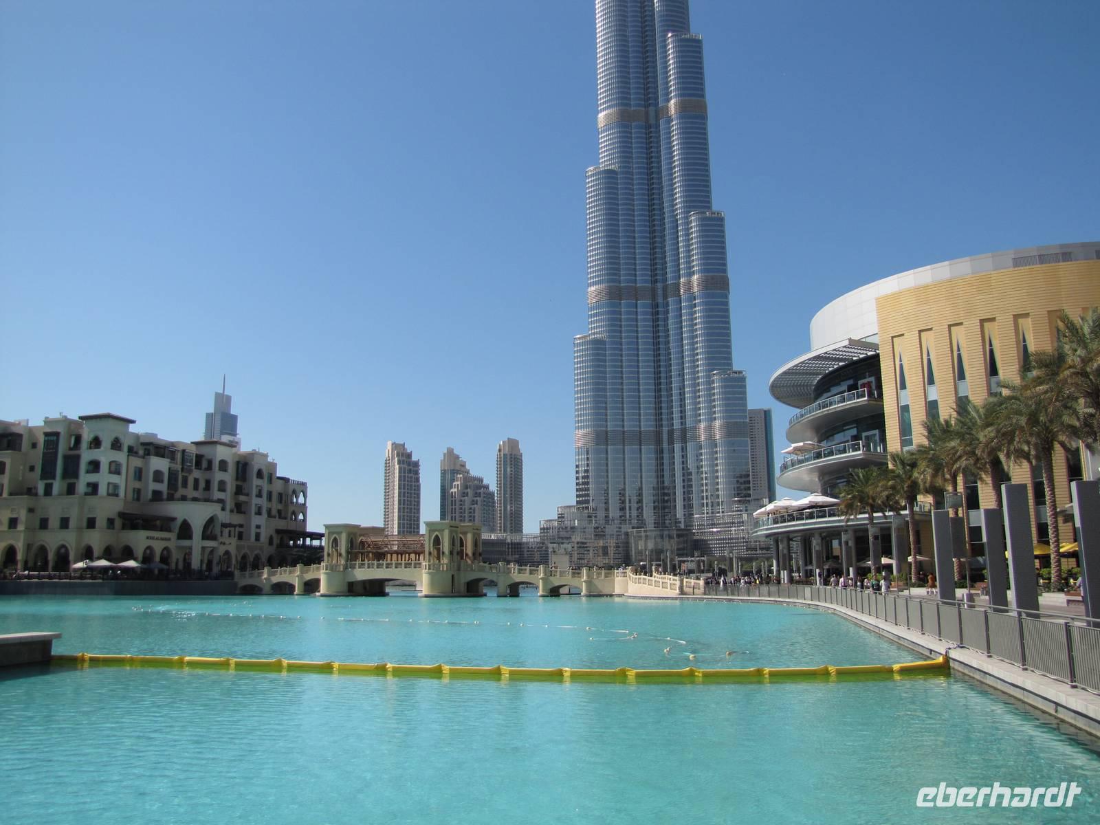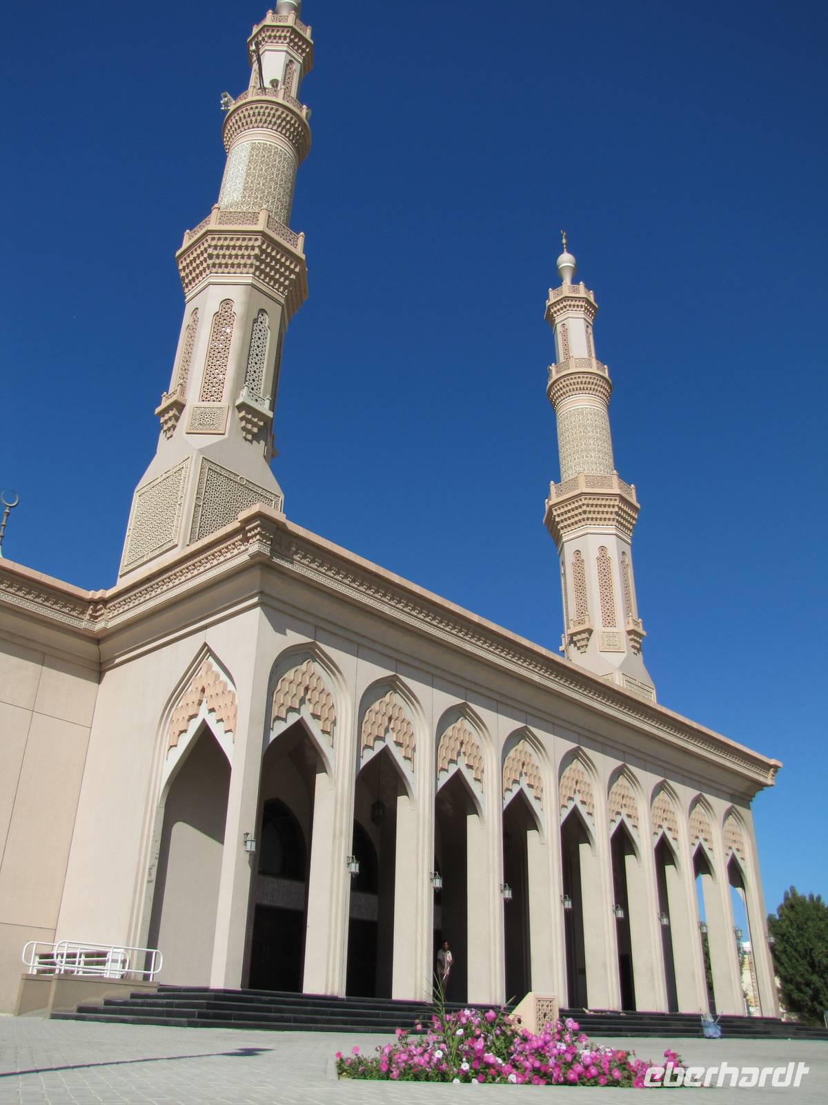 Heute ging es gegen 9.30 nach dem Frühstück zusammen mit Anja in das strengste der 7 Emiraten, nach Sharjah. Die gleichnamige Stadt grenzt fast direkt an Dubai an orientiert sich streng an die Scharia von z.B. Saudi Arabien. Von weiten sahen wir schon die hohen Hochhäuser der Stadt. Ähnlich wie in Dubai entstanden hier in den letzten 10 Jahren gigantische Wolkenkratzer. Jedoch werden diese vorwiegend als Wohnraum genutzt. Das Interessante an den Häusern ist, das fast jedes Gebäude einen Helikopter Landeplatz besitzt. Im Falle eines Brandes gerettet zu werden oder als Landeplatz um schnell zur Arbeit zu gelangen dienen die Dächer der Stadt. In Deutschland gibt es die Mitfahrgelegenheit und in Sharjah die „Mitfluggelegenheit" wo mehrere Geschäftleute frühs zusammen auf Arbeit fliegen nach Dubai. Wir fuhren ein wenig durch die Stadt und besuchten zuerst den Korankreisverkehr, wo rings herum eine Moschee, ein Gericht und ein Verwaltungsgebäude der Stadt standen. Weiter ging es zum Fischmarkt von Sharjah. Dort konnten wir den frischen Fang des Tages betrachten und auch mal einen kleinen Hai in die Hand nehmen. Unser größter der Reisegruppe, auch Konstantin genannt hielt stolz einen Hai vor die Kamera. Anschließend fuhren wir zu einer Mall und legten eine kurze Pause ein. Mit einem tollen Blick auf die Skyline verabschiedeten wir uns von Sharjah und es ging wieder nach Dubai. Unser nächstes Ziel hieß: Burj Khalifa, das höchste Haus der Welt. Dort angekommen blickten alle erstaunt in den blauen Himmel zur Spitze des Gebäudes. Es war ein gigantischer Anblick! Der Stadtteil heißt Downtown Dubai und am Fuße des Burj Khalifa befindet sich ein künstlicher See mit türkiesblauem Wasser. Nachdem wir tolle Fotos schossen, legten wir in der Dubai Mall, der größten Mall der Welt eine Mittagspause ein. Von Mc Donnals bis Nordsee gab es alles. Nach dem Essen besichtigten wir das Dubai Aquarium und den Dubai Zoo. Anschließend bestaunten wir noch den Dubai Ice Creek, die Schlittschuhbahn von Dubai. Dies befindet sich alles in der größten Mall der Welt, neben dem höchsten Haus der Welt. Anja erzählte uns immer wieder stolz, das Dubai die Stadt der Weltrekorde sei! Gegen 16.20Uhr ging es zum höchsten Aussichtspunkt der Welt mit dem schnellsten Fahrstuhl der Welt. (Und ich fuhr mit der liebsten Reisegruppe der Welt J). Das Gebäude hat eine Gesamthöhe von 828 Metern und wurde nach Scheich Khalifa benannt, um dich Dankbar für eine Geld Spritze aus Abu Dhabi zu zeigen. Bei ausgezeichneter Sicht blickten wir über die imposante Skyline bis hin zur Palmeninsel. Kurz vor 18.00 Uhr trafen wir uns wieder unten am ausgemachten Treffpunkt und bestaunten die tollen Wasserspiele am Fuße des Gebäudes. Immer ab 18.00 Uhr sind aller halben Stunde bis 23.00Uhr Wasserspiele mit Musikuntermalung. Wir konnten nicht genug bekommen und schauten uns 18.30Uhr nochmal eine Show an. Gegen 19.00Uhr fuhren wir zurück zum Hotel und freuten uns auf unser Abendbrot. Abends unternahm ich mit einigen Gästen noch einen kleinen Ausflug mit der Metro noch einmal zum Burj Khalifa, wir bestaunten noch einmal die tollen Wasserspiele und gingen danach in die Skybar „Neos" im Adress Hotel. Im 64. Stockwerk angekommen blickten wir über die tolle Skyline bei einem leckeren Drink. Gegen 24Uhr sind wir mit Taxis wieder zurück zum Hotel gefahren, eine Strecke kostete ca. 10,00€ (sehr günstig).