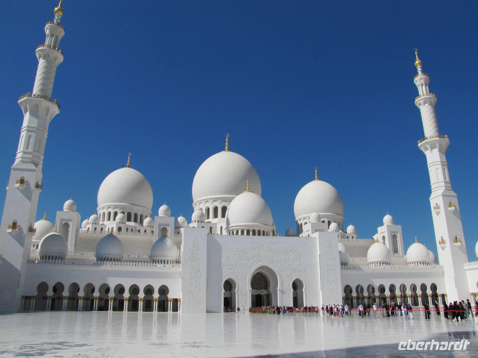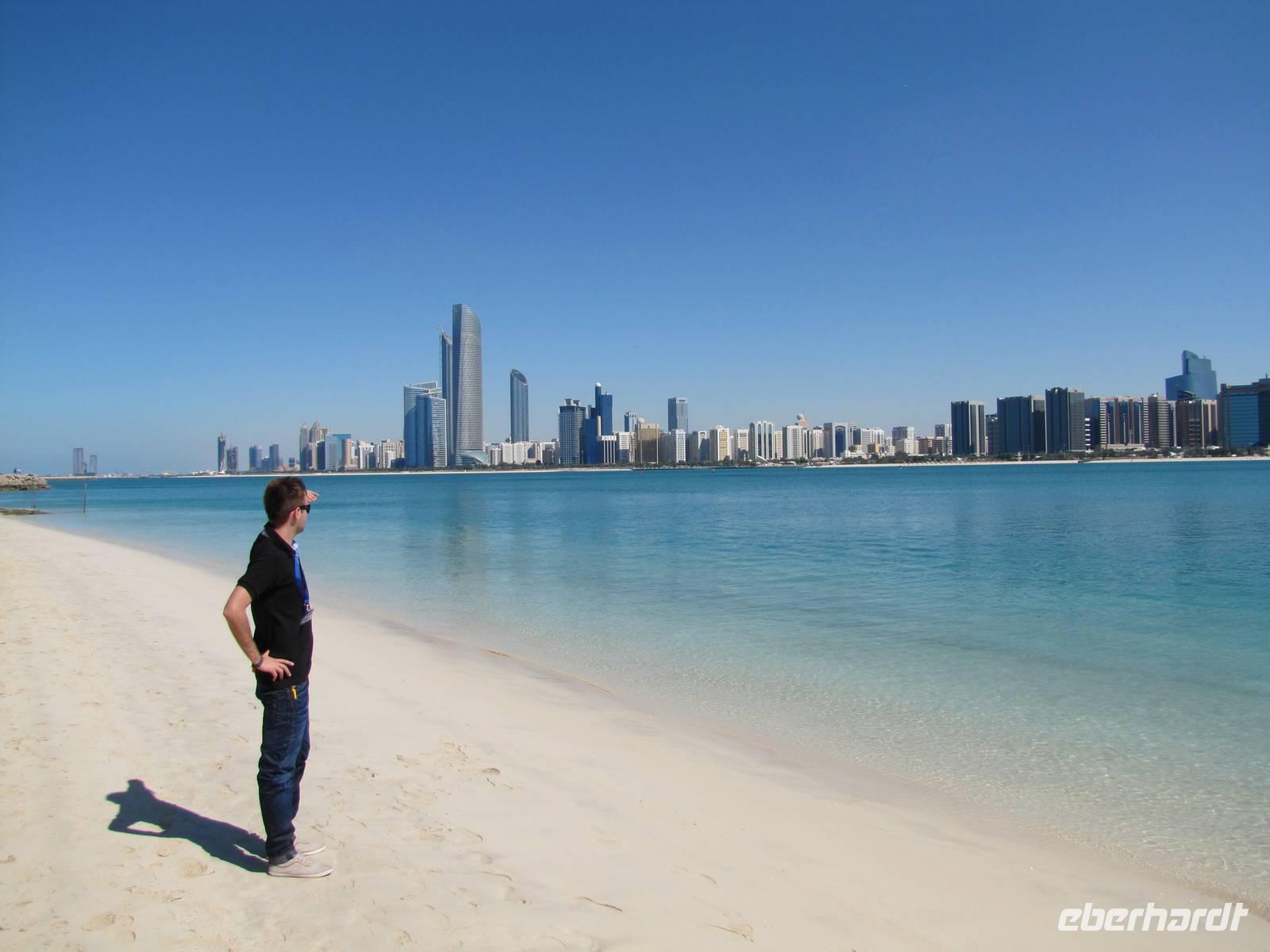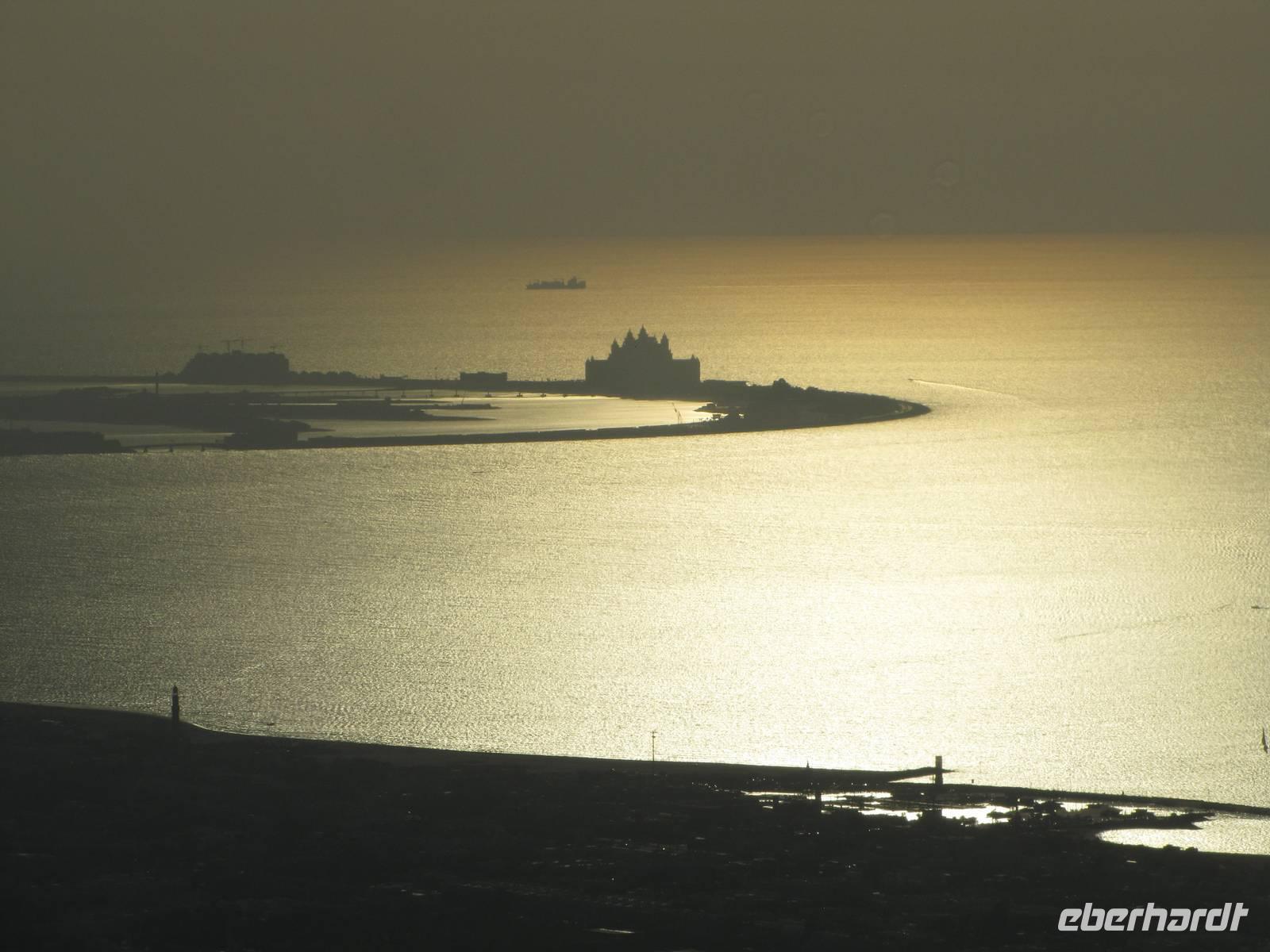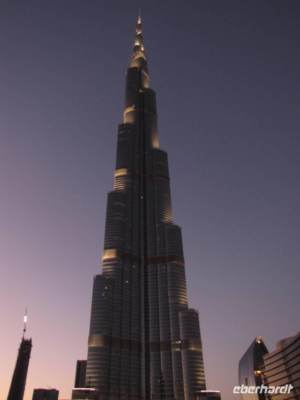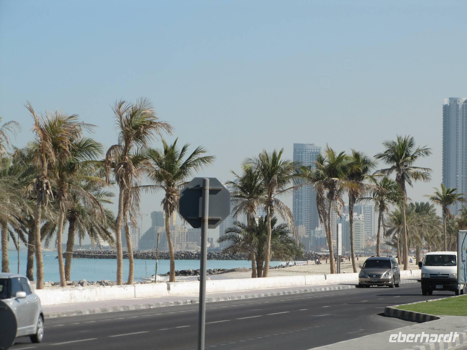Heute ging es gegen 9.30 nach dem Frühstück zusammen mit Anja in das strengste der 7 Emiraten, nach Sharjah. Die gleichnamige Stadt grenzt fast direkt an Dubai an orientiert sich streng an die Scharia von z.B. Saudi Arabien. Von weiten sahen wir schon die hohen Hochhäuser der Stadt. Ähnlich wie in Dubai entstanden hier in den letzten 10 Jahren gigantische Wolkenkratzer. Jedoch werden diese vorwiegend als Wohnraum genutzt. Das Interessante an den Häusern ist, das fast jedes Gebäude einen Helikopter Landeplatz besitzt. Im Falle eines Brandes gerettet zu werden oder als Landeplatz um schnell zur Arbeit zu gelangen dienen die Dächer der Stadt. In Deutschland gibt es die Mitfahrgelegenheit und in Sharjah die „Mitfluggelegenheit" wo mehrere Geschäftleute frühs zusammen auf Arbeit fliegen nach Dubai. Wir fuhren ein wenig durch die Stadt und besuchten zuerst den Korankreisverkehr, wo rings herum eine Moschee, ein Gericht und ein Verwaltungsgebäude der Stadt standen. Weiter ging es zum Fischmarkt von Sharjah. Dort konnten wir den frischen Fang des Tages betrachten und auch mal einen kleinen Hai in die Hand nehmen. Unser größter der Reisegruppe, auch Konstantin genannt hielt stolz einen Hai vor die Kamera. Anschließend fuhren wir zu einer Mall und legten eine kurze Pause ein. Mit einem tollen Blick auf die Skyline verabschiedeten wir uns von Sharjah und es ging wieder nach Dubai. Unser nächstes Ziel hieß: Burj Khalifa, das höchste Haus der Welt. Dort angekommen blickten alle erstaunt in den blauen Himmel zur Spitze des Gebäudes. Es war ein gigantischer Anblick! Der Stadtteil heißt Downtown Dubai und am Fuße des Burj Khalifa befindet sich ein künstlicher See mit türkiesblauem Wasser. Nachdem wir tolle Fotos schossen, legten wir in der Dubai Mall, der größten Mall der Welt eine Mittagspause ein. Von Mc Donnals bis Nordsee gab es alles. Nach dem Essen besichtigten wir das Dubai Aquarium und den Dubai Zoo. Anschließend bestaunten wir noch den Dubai Ice Creek, die Schlittschuhbahn von Dubai. Dies befindet sich alles in der größten Mall der Welt, neben dem höchsten Haus der Welt. Anja erzählte uns immer wieder stolz, das Dubai die Stadt der Weltrekorde sei! Gegen 16.20Uhr ging es zum höchsten Aussichtspunkt der Welt mit dem schnellsten Fahrstuhl der Welt. (Und ich fuhr mit der liebsten Reisegruppe der Welt J). Das Gebäude hat eine Gesamthöhe von 828 Metern und wurde nach Scheich Khalifa benannt, um dich Dankbar für eine Geld Spritze aus Abu Dhabi zu zeigen. Bei ausgezeichneter Sicht blickten wir über die imposante Skyline bis hin zur Palmeninsel. Kurz vor 18.00 Uhr trafen wir uns wieder unten am ausgemachten Treffpunkt und bestaunten die tollen Wasserspiele am Fuße des Gebäudes. Immer ab 18.00 Uhr sind aller halben Stunde bis 23.00Uhr Wasserspiele mit Musikuntermalung. Wir konnten nicht genug bekommen und schauten uns 18.30Uhr nochmal eine Show an. Gegen 19.00Uhr fuhren wir zurück zum Hotel und freuten uns auf unser Abendbrot. Abends unternahm ich mit einigen Gästen noch einen kleinen Ausflug mit der Metro noch einmal zum Burj Khalifa, wir bestaunten noch einmal die tollen Wasserspiele und gingen danach in die Skybar „Neos" im Adress Hotel. Im 64. Stockwerk angekommen blickten wir über die tolle Skyline bei einem leckeren Drink. Gegen 24Uhr sind wir mit Taxis wieder zurück zum Hotel gefahren, eine Strecke kostete ca. 10,00€ (sehr günstig).