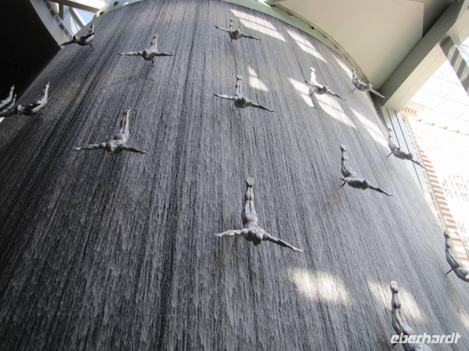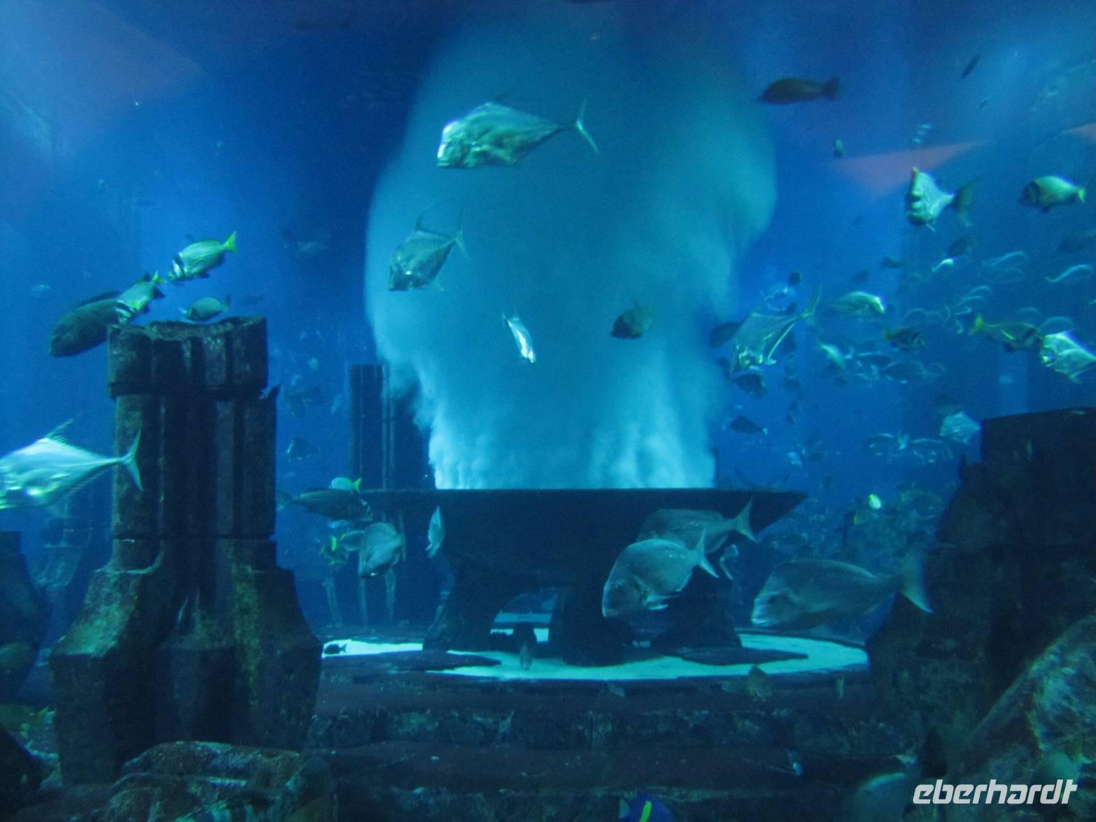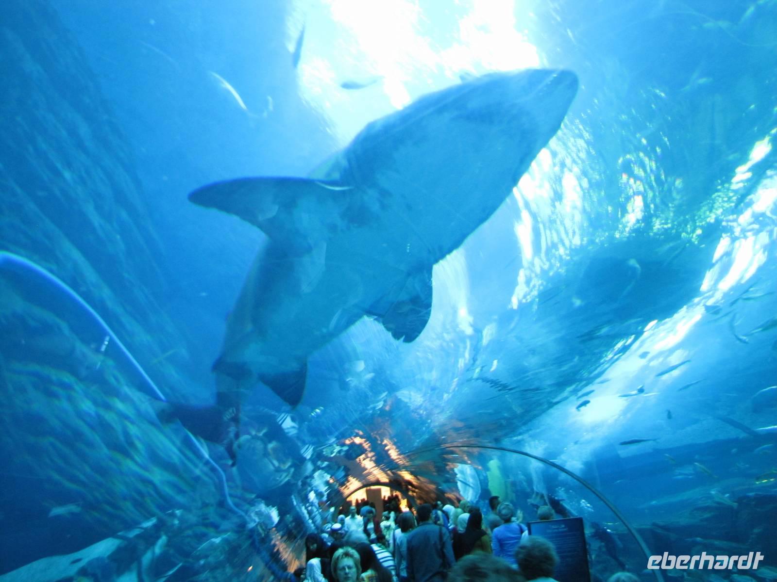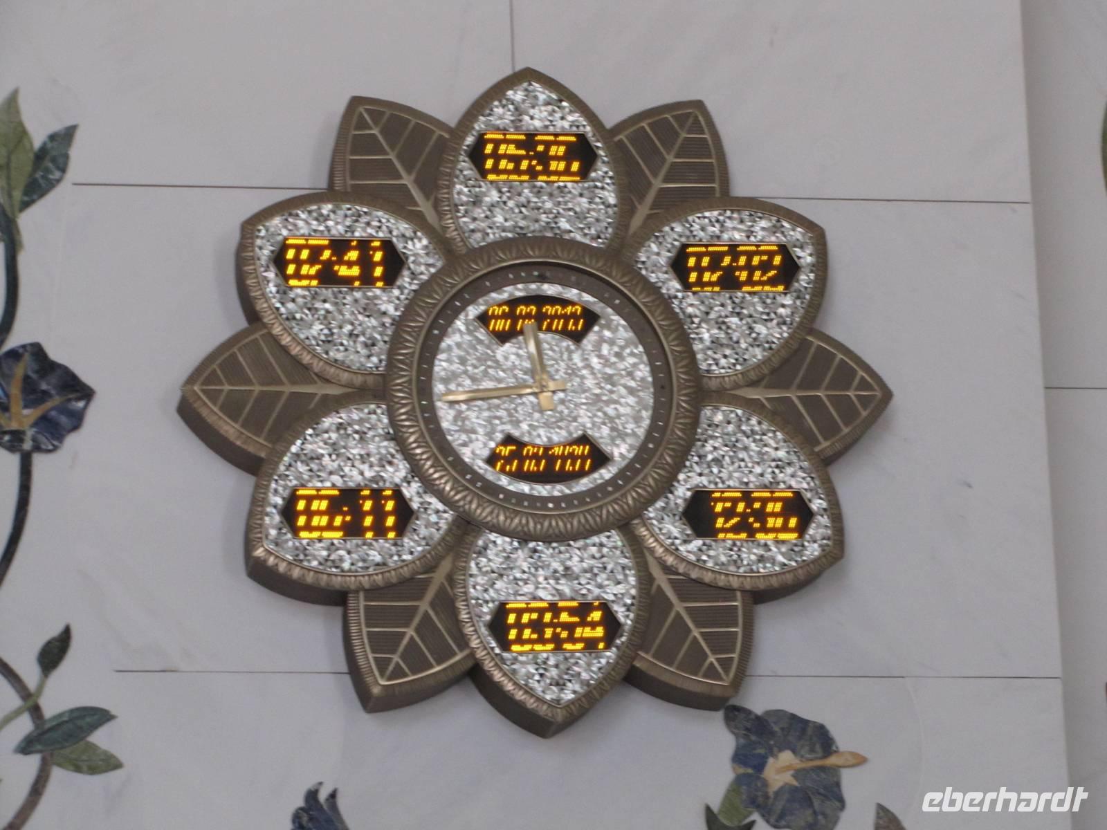 Heute ging es gegen 9.30 nach dem Frühstück zusammen mit Anja in das strengste der 7 Emiraten, nach Sharjah. Die gleichnamige Stadt grenzt fast direkt an Dubai an orientiert sich streng an die Scharia von z.B. Saudi Arabien. Von weiten sahen wir schon die hohen Hochhäuser der Stadt. Ähnlich wie in Dubai entstanden hier in den letzten 10 Jahren gigantische Wolkenkratzer. Jedoch werden diese vorwiegend als Wohnraum genutzt. Das Interessante an den Häusern ist, das fast jedes Gebäude einen Helikopter Landeplatz besitzt. Im Falle eines Brandes gerettet zu werden oder als Landeplatz um schnell zur Arbeit zu gelangen dienen die Dächer der Stadt. In Deutschland gibt es die Mitfahrgelegenheit und in Sharjah die „Mitfluggelegenheit" wo mehrere Geschäftleute frühs zusammen auf Arbeit fliegen nach Dubai. Wir fuhren ein wenig durch die Stadt und besuchten zuerst den Korankreisverkehr, wo rings herum eine Moschee, ein Gericht und ein Verwaltungsgebäude der Stadt standen. Weiter ging es zum Fischmarkt von Sharjah. Dort konnten wir den frischen Fang des Tages betrachten und auch mal einen kleinen Hai in die Hand nehmen. Unser größter der Reisegruppe, auch Konstantin genannt hielt stolz einen Hai vor die Kamera. Anschließend fuhren wir zu einer Mall und legten eine kurze Pause ein. Mit einem tollen Blick auf die Skyline verabschiedeten wir uns von Sharjah und es ging wieder nach Dubai. Unser nächstes Ziel hieß: Burj Khalifa, das höchste Haus der Welt. Dort angekommen blickten alle erstaunt in den blauen Himmel zur Spitze des Gebäudes. Es war ein gigantischer Anblick! Der Stadtteil heißt Downtown Dubai und am Fuße des Burj Khalifa befindet sich ein künstlicher See mit türkiesblauem Wasser. Nachdem wir tolle Fotos schossen, legten wir in der Dubai Mall, der größten Mall der Welt eine Mittagspause ein. Von Mc Donnals bis Nordsee gab es alles. Nach dem Essen besichtigten wir das Dubai Aquarium und den Dubai Zoo. Anschließend bestaunten wir noch den Dubai Ice Creek, die Schlittschuhbahn von Dubai. Dies befindet sich alles in der größten Mall der Welt, neben dem höchsten Haus der Welt. Anja erzählte uns immer wieder stolz, das Dubai die Stadt der Weltrekorde sei! Gegen 16.20Uhr ging es zum höchsten Aussichtspunkt der Welt mit dem schnellsten Fahrstuhl der Welt. (Und ich fuhr mit der liebsten Reisegruppe der Welt J). Das Gebäude hat eine Gesamthöhe von 828 Metern und wurde nach Scheich Khalifa benannt, um dich Dankbar für eine Geld Spritze aus Abu Dhabi zu zeigen. Bei ausgezeichneter Sicht blickten wir über die imposante Skyline bis hin zur Palmeninsel. Kurz vor 18.00 Uhr trafen wir uns wieder unten am ausgemachten Treffpunkt und bestaunten die tollen Wasserspiele am Fuße des Gebäudes. Immer ab 18.00 Uhr sind aller halben Stunde bis 23.00Uhr Wasserspiele mit Musikuntermalung. Wir konnten nicht genug bekommen und schauten uns 18.30Uhr nochmal eine Show an. Gegen 19.00Uhr fuhren wir zurück zum Hotel und freuten uns auf unser Abendbrot. Abends unternahm ich mit einigen Gästen noch einen kleinen Ausflug mit der Metro noch einmal zum Burj Khalifa, wir bestaunten noch einmal die tollen Wasserspiele und gingen danach in die Skybar „Neos" im Adress Hotel. Im 64. Stockwerk angekommen blickten wir über die tolle Skyline bei einem leckeren Drink. Gegen 24Uhr sind wir mit Taxis wieder zurück zum Hotel gefahren, eine Strecke kostete ca. 10,00€ (sehr günstig).
