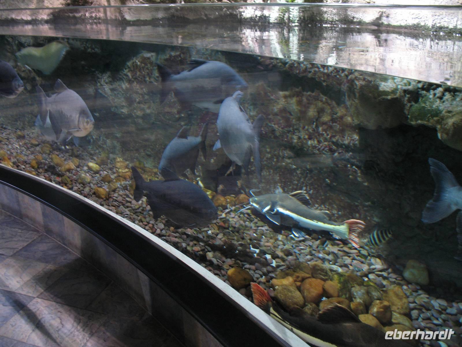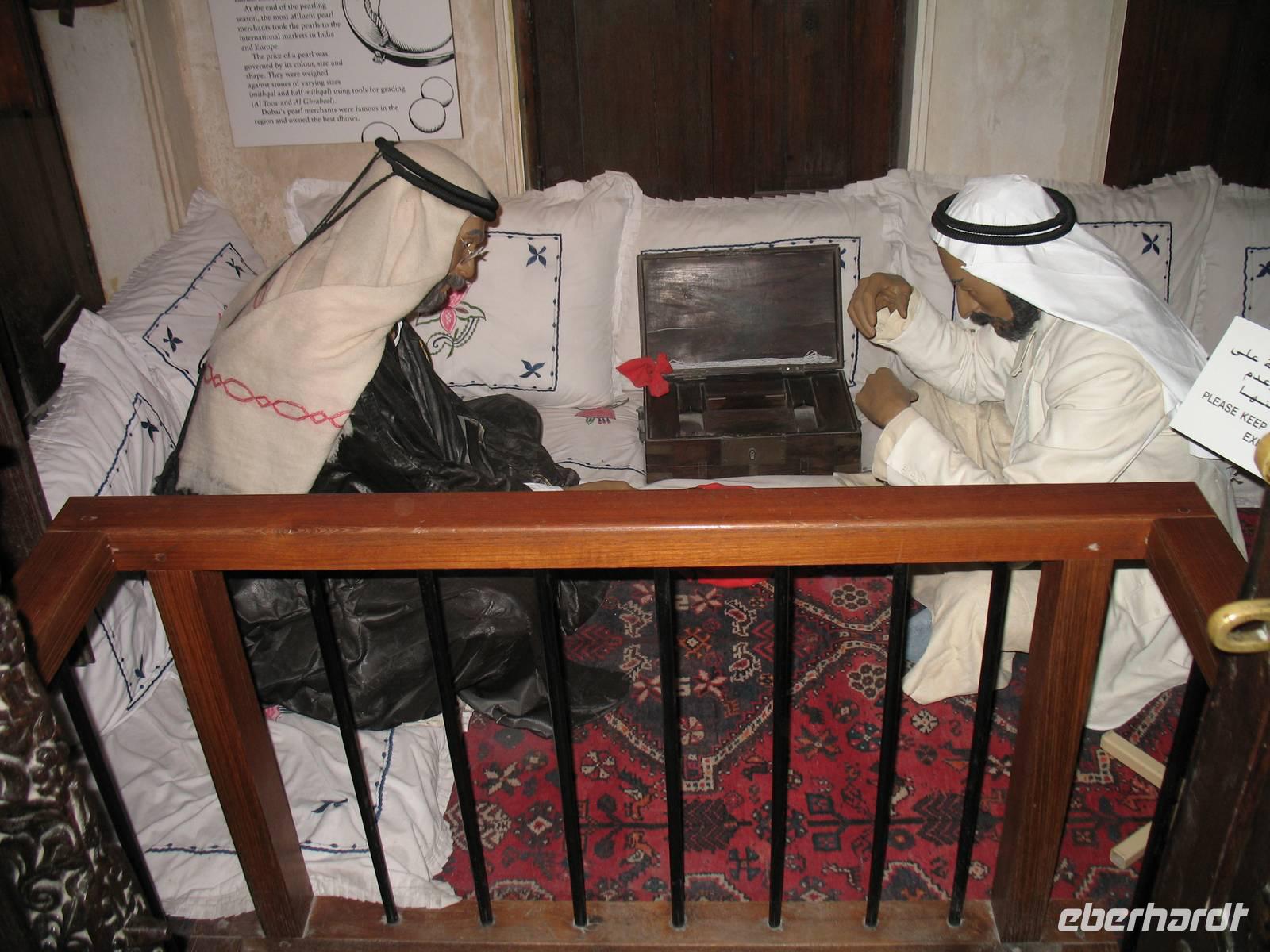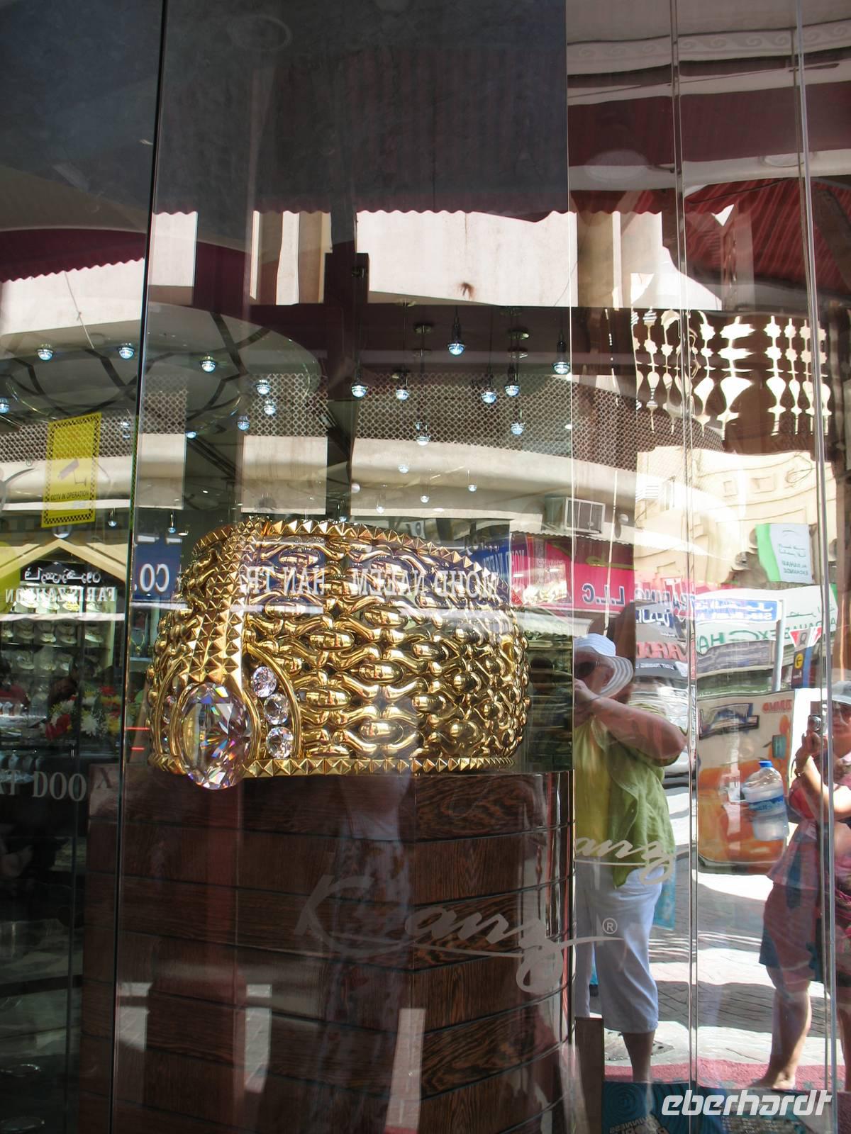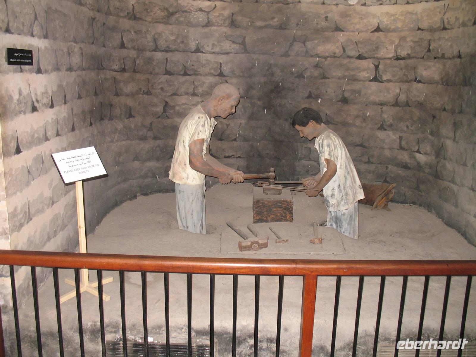 Bei strahlendem Sonnenschein starten wir nach einer angenehmen Nacht im Wüstenparadies Dubai in den Tag :-) Das Frühstück ist sehr lecker und frisch gestärkt finden wir uns in der Lobby des Hotels zu unserer Stadtführung per Fuß im Alten Dubai ein. Die Klimaanlage ist wieder auf eine wohlige Temperatur eingestellt. Aber kaum begeben wir uns nach draußen, schwitzen wir bereits nach wenigen Minuten in der heißen Sonne! Wir werden wohl noch ein paar Tage benötigen, um uns an Klima und Luftfeuchtigkeit zu gewöhnen :-) Als wir vor unserem Hotel stehen, zeigt sich sofort dessen tolle Lage. Denn direkt gegenüber auf der anderen Straßenseite und nur wenige Schritte entfernt befindet sich das Dubai Museum, hier beginnen wir unseren Stadtrundgang! Das Museum wurde unterirdisch gebaut und der Fluss Dubai Creek wurde bildlich hindurch gezeichnet. Der Dubai Creek ist ein Meeresarm vom Persischen Golf, welcher die Stadt in zwei Teile trennt. Über ihn konnten Boote aus angrenzenden Länder wie Oman oder Bahrain nach Dubai gelangen, so dass Dubai bereits seit dem 18. Jahrhundert eine Handelsstadt ist. Im Museum lauschen wir gespannt Anjas Worten zu den geschichtlichen Anfängen der Wüstenstadt. Sie erzählt uns unter anderem, dass wie auf einem Bild im Museum gemalt um den Dubai Creek herum im 15. Jahrhundert nur Wüste, ganz wenig Bäume und ein paar Hütten, aber keine festen Häuser vorhanden waren. Erst im 18. Jahrhundert wurden Häuser aus Stein und Lehm gebaut. Zu dieser Zeit beginnt auch die Geschichte von Dubai, wobei das moderne Dubai, welches wir uns morgen anschauen werden, lediglich in den vergangenen 15 Jahren entstanden ist. Im Museum sehen wir beispielsweise Beduinen-Zelte aus Kamelhaar, in denen die Menschen im 18. Jahrhundert gelebt haben. Weiter sehen wir Waffen zu Verteidigung, Musikinstrumente und einen Videofilm von zehn Minuten mit Bildern beginnend im Jahre 1930 bis zur heutigen Zeit. Nach unserem Besuch im Museum spazieren wir durch enge Gassen im Alten Dubai an Marktständen mit Gewürzen und auch traditionellen Gewändern vorbei. Die engen Gassen wurden extra so gebaut, damit sich die Hitze nicht staut, ab und zu ein Luftzug zu spüren ist und Schatten gespendet wird. Weiter erfahren wir von Anja, dass in Dubai mehr als 200 unterschiedliche Nationen leben. Die meisten Bewohner im Land sind Ausländer, wobei der Großteil aus Indien und Parkistan stammt. Die offizielle Landessprache ist Arabisch, obwohl aufgrund des hohen Anteils an Ausländern die meistgesprochene Sprache Englisch ist. Die einheimische Bevölkerung liegt bei weniger als 20 Prozent und wir können sie an ihrer traditionellen Kleidung, bestehend unter anderem aus langen weißen Gewändern bei den Männern und schwarzen Abayas bei den Damen, erkennen. Nachdem wir unsere ersten Euros in Dirham getauscht haben, warten auch schon die nächsten Programmpunkte der Gewürz-Souk und Gold-Souk auf uns. Der Weg zu den Souks führt uns zur Abra-Station, wo wir mit dem Wassertaxi auf dem Dubai Creek fahren und nach nur rund fünf Minuten ans andere Ufer gelangen. Zuerst schauen wir uns den Gewürz-Souk an und lassen uns von einem Händler, teilweise in Deutsch, verschiedene Gewürze zeigen. Eine halbe Stunde später schlendern wir zu unserem heutigen letzten Tagespunkt, dem Gold-Souk, wo wir den wohl größten Goldring der Welt bestaunen :-) Anja erzählt uns, dass es in Dubai nur importiertes Gold gibt, da dieses Land sehr bekannt für Gold ist. Wir lassen uns unterschiedliche Schmuckstücke zeigen und einige Gäste handeln auch mit den Verkäufern. Unser Rundgang durch das Alte Dubai endet nach der Rückfahrt mit dem Wassertaxi gegen 13.00 Uhr an unserem Hotel. Für diejenigen Gäste, welche am kommenden Freitag an der Dhau Cruise teilnehmen, gibt es heute ein Mittagessen im Hotel-Restaurant "Bastakiya", da uns am Freitag ein Abendessen im Hotel entfallen würde. Die Nicht-Teilnehmer haben Freizeit, welche viele Gäste für einen Besuch am Touristenstrand nutzen. Bei Temperaturen über 36 Grad und Wassertemperaturen von rund 30 Grad fühlt es sich für einige Reisegäste vielleicht eher wie ein heißes (angenehmes) Bad in einer riesengroßen Badewanne an! Nach einem leckeren und reichhaltigen Mittagessen genießen auch die anderen Gäste die freie Zeit bis zum Abendessen mit einer Stadterkundung oder einem weiteren Spaziergang durch die engen Gassen mit kleinen Souvenirläden. Die Reisegruppe trifft sich gegen 19.00 Uhr zum gemeinsamen Abendessen wieder im bereits bekannten Hotel-Restaurant "Bastakiya", wo auch das Frühstücksbuffet aufgebaut ist. Dies ist nun unsere dritte Mahlzeit im Hotel und wir können auch das Abendbuffet nur loben. Nach dem Essen lassen einige Reisegäste den Tag bei einem Spaziergang am Creek und zu einem nur wenige Schritte vom Hotel entfernten Supermarkt ausklingen. Selbst gegen 21.00 Uhr ist es mit über 30 Grad noch richtig warm in Dubai, eine Abkühlung bietet da wohl nur die Klimaanlage in der Hotellobby! Wir wünschen uns eine gute Nacht und sind schon ganz gespannt auf das Moderne Dubai, welches wir uns am nächsten Tag anschauen werden :-)