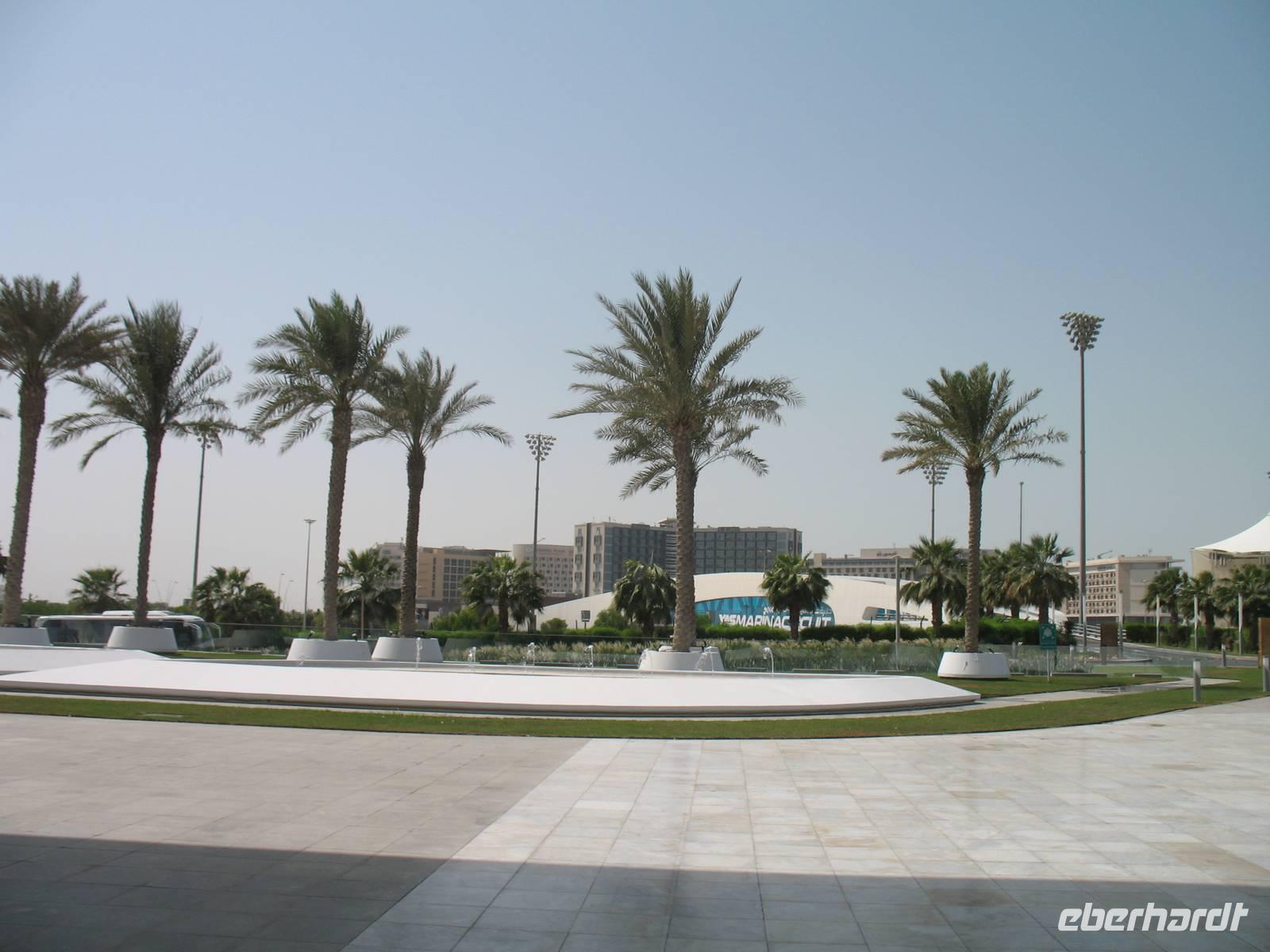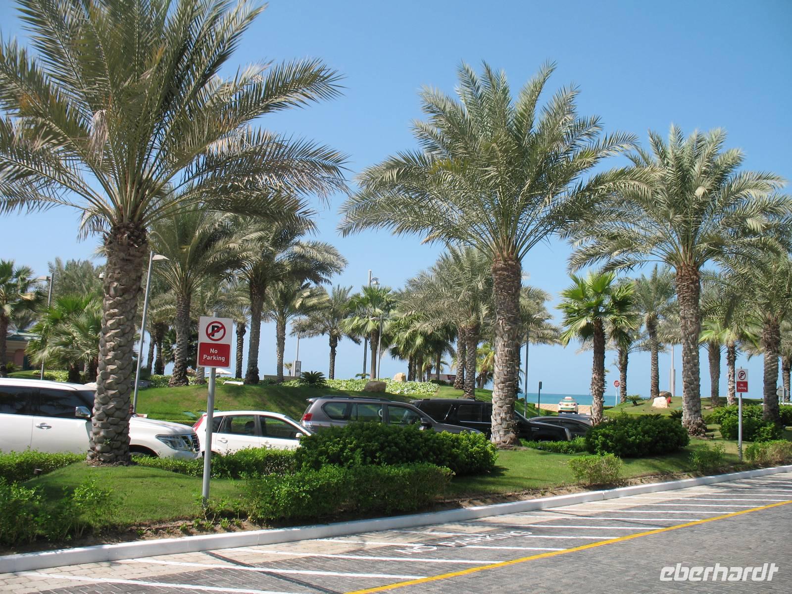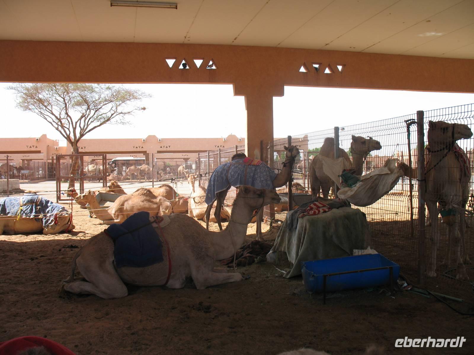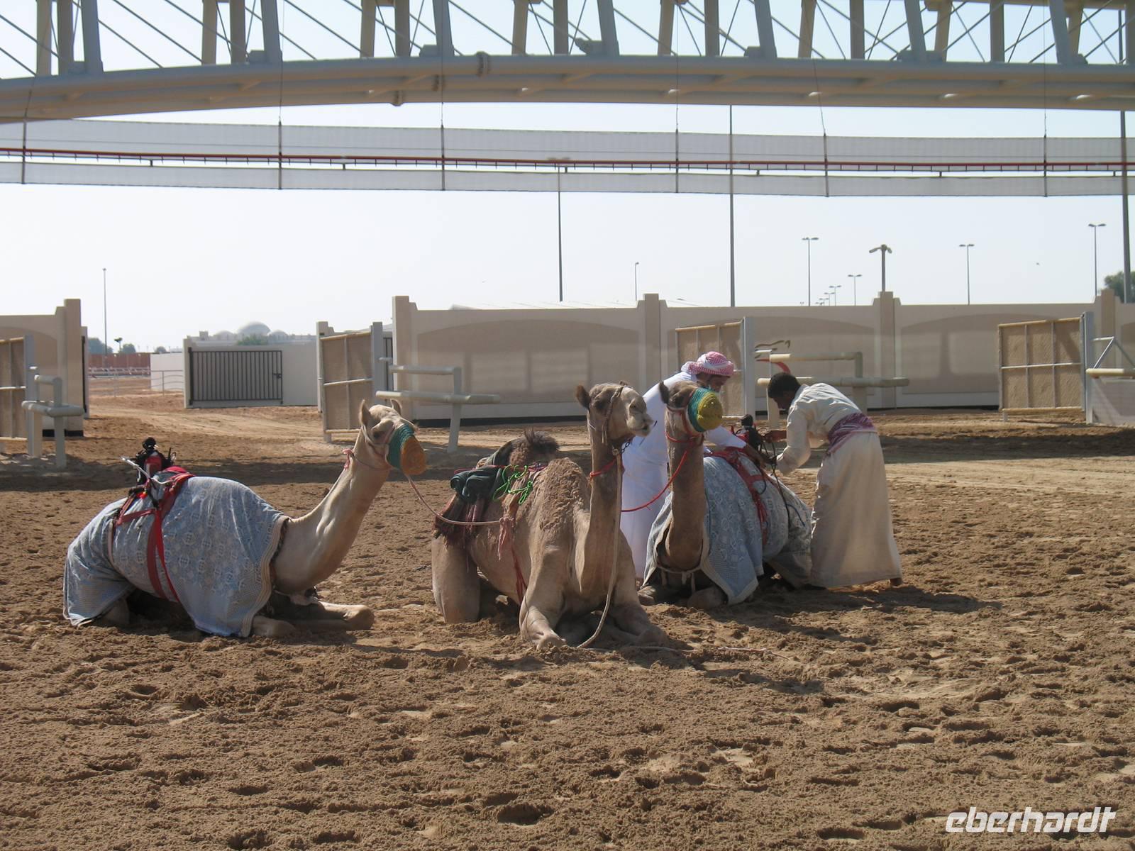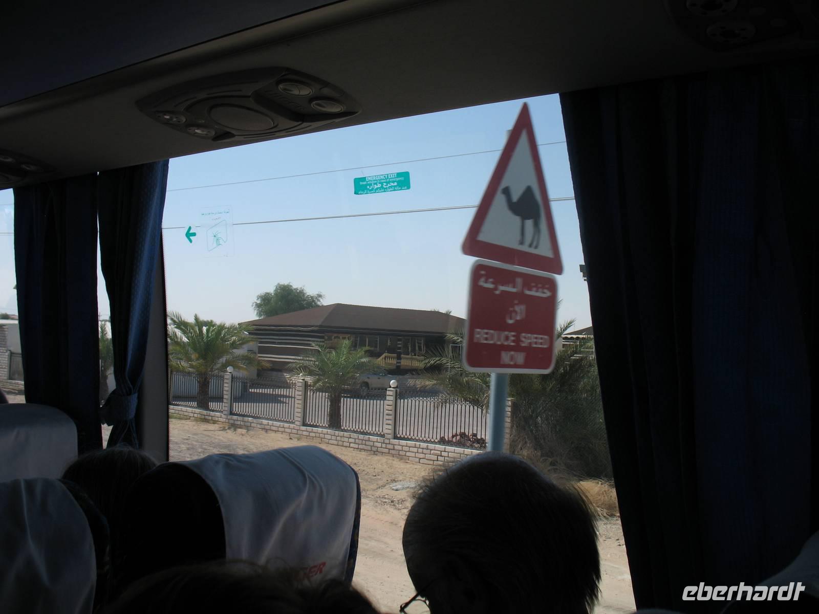 Wir stärken uns an unseren letzten Tag in Dubai mit einem ausgiebigem Frühstück im "Bastakiya". Gegen 09.00 Uhr fahren wir zum Emirat Al Ain. Zuerst halten wir für wenige Minuten zum Fotografieren an einer Kamel-Rennstrecke. Danach führt uns der Weg weiter zur Al Ain Oase, wo wir die Palmenkletterer bei ihrer Arbeit sehen. Im Anschluss spazieren wir durch die Oase und besuchen auch das Museum. Nächster Programmpunkt ist der Kamelmarkt in Al Ain. Kaum sind wir am Markt angekommen, werden wir auch gleich von den Händlern animiert Fotos zu machen. Natürlich wollen sie dafür eine Gegenleistung, also passen wir besonders auf. Eine halbe Stunde später fahren wir zur Al Bawhadi Mall, wo wir unsere Mittagspause verbringen. Um 14.30 Uhr geht es wieder zum Hotel zurück. Wir haben noch ein paar Stunden Freizeit bis zum Abendessen und anschließender Fahrt zum Flughafen. Unser letztes Abendessen in Dubai erhalten wir selbstverständlich im uns bereits bestens bekanntem "Bastakiya". Wir lassen uns die köstlichen Gerichte schmecken und packen dann in aller Ruhe die letzten Sachen und Souvenirs in die Koffer. Pünktlich um 23.00 Uhr werden wir von Anja und Omar abgeholt. Am Flughafen wird es immer hektisch, daher verabschieden wir uns von den beiden bereits noch vor unserem Hotel und bedanken uns für die tolle örtliche Betreuung. Innerhalb von 30 Minuten kommen wir auch schon am internationalem Flughafen an. Wir verabschieden uns herzlich von Omar und Anja und dann laufen wir auch schon Richtung Gepäckabgabe. Hier verläuft alles reibungslos und weiter geht es zu den nächsten Kontrollen!