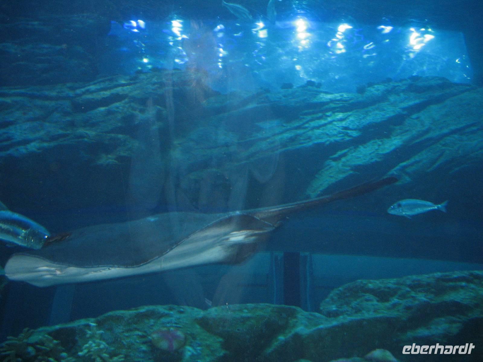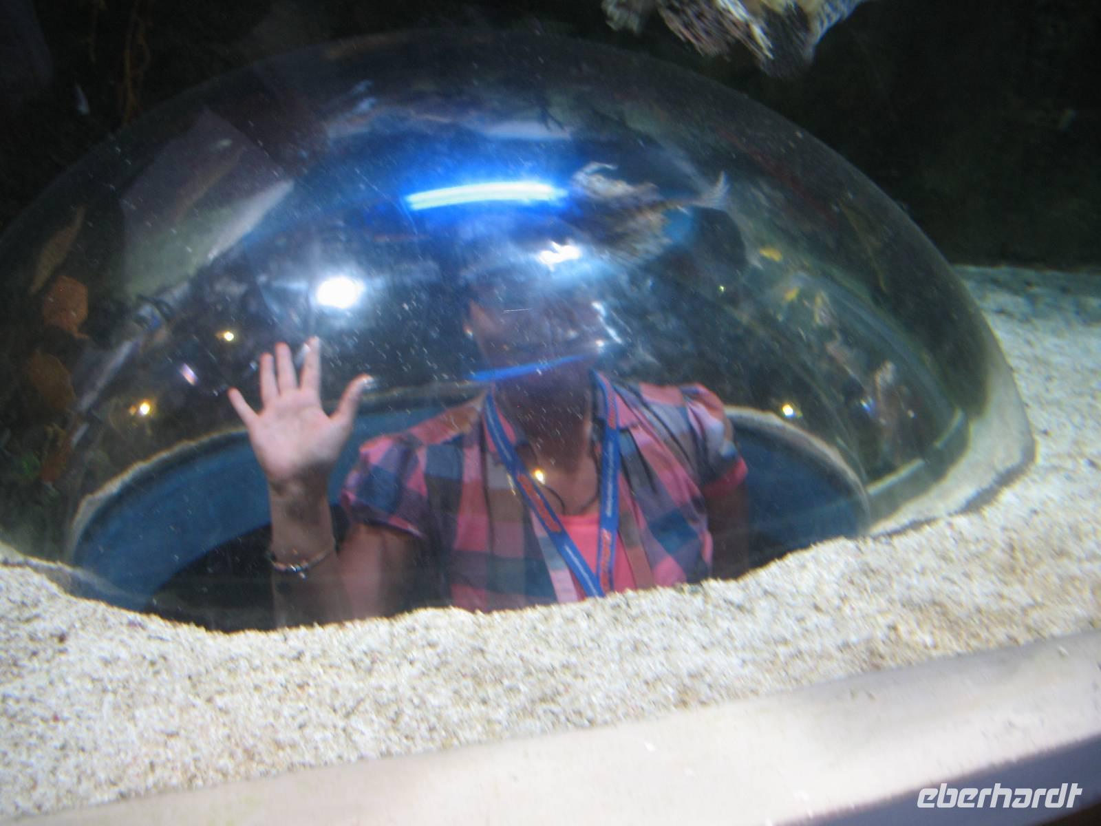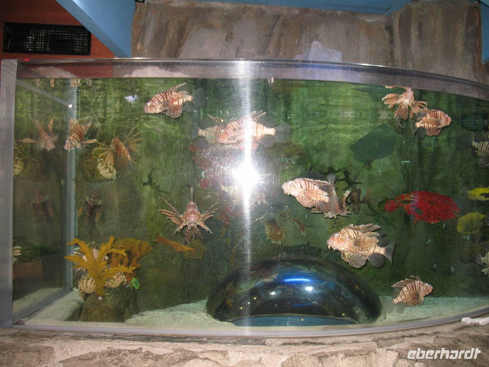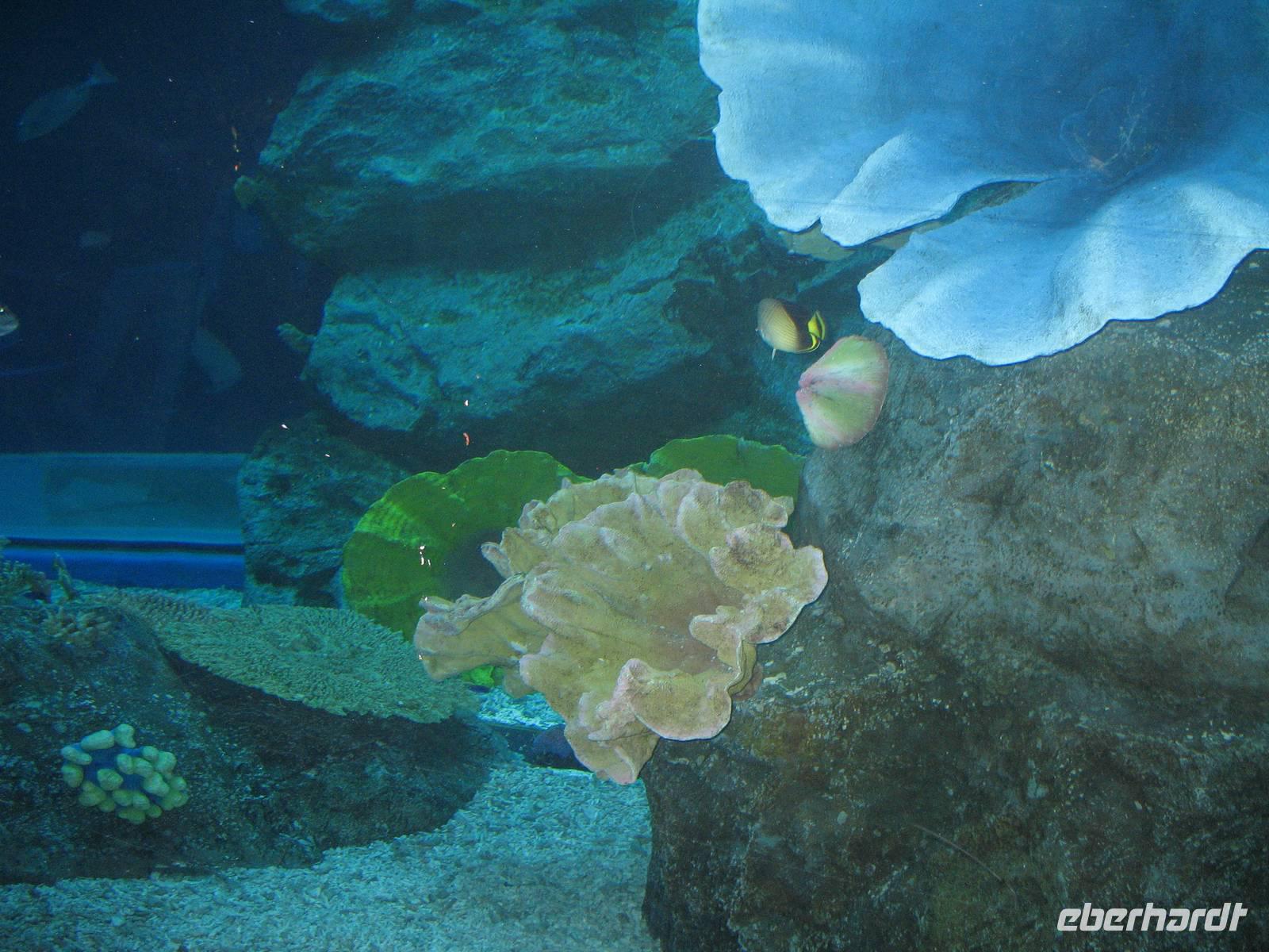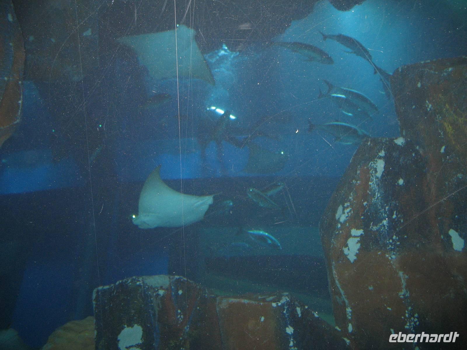 Unser heutiger Tag beginnt wieder mit strahlendem Sonnenschein :-) Während wir gestern bereits das Alte Dubai zu Fuß erkundet haben, folgt am zweiten Tag bei einer Stadtrundfahrt das Moderne Dubai. Zuerst legen wir einen kurzen Foto-Stopp an der Jumeirah Mosque ein. Interessant ist dabei, dass jede Moschee mindestens ein Minarett besitzt. Anja erzählt uns, dass 1975 noch keine Hochhäuser in Dubai zu finden waren. In gleichen Jahr wurde beschlossen, ein World Trade Center für den Welthandel zu bauen. Der Bau hat vier Jahre gedauert und das Gebäude ist 184 Meter hoch. Zudem ist es auf dem 100-Dirham-Schein abgebildet, da es das erste Hochhaus in Dubai war. Weiter erfahren wir, dass Dubai früher ein eigenständiges Land mit eigener rot-weißer Flagge war. Im Jahre 1971 wurde es Mitglied der Vereinigten Arabischen Emirate (VAE). Daraufhin änderte sich auch die Flagge. Sie besteht nun aus den Farben grün, weiß, schwarz und rot. Dann fahren wir zur The Palm Jumeirah. Unterwegs sehen wir öfters ein Bild mit drei Personen. Dies sind die Herrscher in Dubai, nämlich von rechts nach links der Kronprinz Scheich Hamdan, dann in der Mitte der momentane Herrscher in Dubai (seit 2006) und Vizepräsident der VAE Scheich Mohammad und ganz links der Präsident des ganzen Landes und Herrscher in Abu Dhabi Scheich Khalifa. Die Einheimischen sind sehr stolz auf ihre Herrscher, daher sind überall Bilder von ihnen zu sehen. Die Herrscher-Familie in Dubai ist die Maktoum-Familie. Der Name vom Scheich fasst sich so zusammen, dass Scheich in der Übersetzung "der Weiße" bedeutet. Im Gegensatz zu vielen Königshäusern, wo meistens das älteste Kind der Thronfolger oder die Thronfolgerin ist, wird in Dubai in der Familie entschieden, wer der klügste Sohn ist und dieser wird zum Nachfolger ernannt. In Dubai gibt es zwei Jahreszeiten oder auch zwei Saisons genannt. Die heiße Saison ist im Zeitraum von Mitte April oder Anfang Mai bis Oktober mit Temperaturen über 50 Grad und bis zu 99 Prozent Luftfeuchtigkeit. Wir schwitzen bereits nur vom Hören dieser Gradzahlen und können uns gar nicht vorstellen, wie die Menschen bei solche extremen Temperaturen leben können. Die beste Reisezeit mit relativ angenehmen Temperaturen ist von Oktober bis Mitte/ Ende April, wobei in den "kühlsten" Monaten Dezember und Januar tagsüber sogar Temperaturen um die 18 Grad sein können und wo es in der Nacht vereinzelt auch bis auf 10 Grad abkühlen kann. Außerdem ist Dubai eine Halbinsel, das Wasser verdampft aufgrund der hohen Temperaturen, aus dem aufsteigenden Dampft kann sich aber kaum eine Wolke bilden, da sie sofort wieder verdunstet und zu hoher Luftfeuchtigkeit führt. In den kühleren Monaten ist das anders, da können sich durchaus Wolken bilden und es kann regnen, was aber relativ selten vorkommt. Weiter fahren wir am Dubai Zoo vorbei. Dieser Zoo wurde 1996 errichtet und das Besondere daran ist, dass alle Tiere eine eigene Klimaanlage besitzen. Wir können dies bei solchen Temperaturen auch vollkommen nachvollziehen :-) Auf der Rückseite des Zoos befindet sich die deutsche Botschaft. Wir fahren an der im italienischen Baustil errichteten Mercato Shopping Mall vorbei. In Dubai gibt es mittlerweile mehr als 60 Shoppingmalls. Weiter erzählt uns Anja, dass die Privatsphäre in der arabischen Kultur sehr hoch geschätzt wird, so dass keine fremden Menschen einfach so ins Haus kommen. Die Kästen zum Ablesen von Strom und Wasser befinden sich demnach nicht im Haus, sondern diese grauen Kästen stehen draußen an der Hausmauer. Außerdem dürfen Besucher nicht einfach das Grundstück oder gar das Haus betreten. Vor der Villa gibt es links für die Männer und rechts für die Damen ein kleines Haus so wie ein Zelt. Männer und Frauen sitzen, wie es in der arabischen Kultur Tradition ist, getrennt voneinander in verschiedenen Zelten. Zum weiteren Schutz der Privatsphäre werden Mauern um die Häuser errichtet, da vor allem die Frauen zuhause ja auch nicht verschleiert sind. Wir sehen auch eine Hausmauer mit Lichterketten, was bedeutet, dass hinter diesen Mauern eine Tochter verheiratet wird. Die Lichterketten werden für eine Woche um das Haus und die Mauer gelegt. Weiter passieren wir das Four Seasons Resort Dubai am Jumeirah Beach, den Dubai Ladies Club und der Jumeirah Beach Park. Übersetzt heißt Jumeirah "die Glut", da der Sandstrand sehr heiß ist und es sich beim Laufen darüber wie eine Glut anfühlt. Der Strandabschnitt wurde ausschließlich zum Perlentauchen und zur Fischerei im 18. Jahrhundert genutzt, so dass ein traditionelles Souvenir aus Dubai eine Perle ist. Während der Fahrt erzählt uns Anja weiter, dass es in den Emiraten sehr teuer ist, mit dem Fahrzeug geblitzt zu werden, auch wenn es fast überall 20 km/h Karenz gibt. In Abu Dhabi haben sie sogar seit zwei Jahren "Blitzer-Happy-Hour", nimm zwei für einen Preis :-) Dagegen ist der Benzinpreis aufgrund des in den 80Jahren gefundenen Öls sehr günstig, momentan 32 Cent pro Liter. Solche Preise hätten wir natürlich auch gern in Deutschland! Das Öl soll in Dubai noch für die nächsten fünf Jahre vorrätig sein. Jedoch gehört es schon lange nicht mehr zum Hauptwirtschaftszweig, das ist heutzutage vor allem der Tourismus. Scheich Mohammad hat das Potential im Bereich Tourismus gesehen und begonnen hat er in Dubai mit dem Bau des Wahrzeichens, das Burj Al Arab Hotel. Dieses Hotel wurde von einem Architekten-Team aus Großbritannien mit dem Ziel verwirklicht, ein Hotel zu bauen, welches mit der Vergangenheit oder dem Land in Verbindung steht. Große Bedeutung hatte das Meer und die Schifffahrt im Wüstenstaat, so dass letztendlich das Burj Al Arab ein Segelboot darstellt, welches 1999 rund 300 Meter vom Festland entfernt auf einer eigenen Insel im Meer errichtet wurde. Somit hat dieses Hotel auch den Auftakt für den zunehmenden Tourismus in Dubai gebildet. Dann haben wir auch endlich einen ersten Blick auf das 7-Sterne-Hotel Burj Al Arab. An