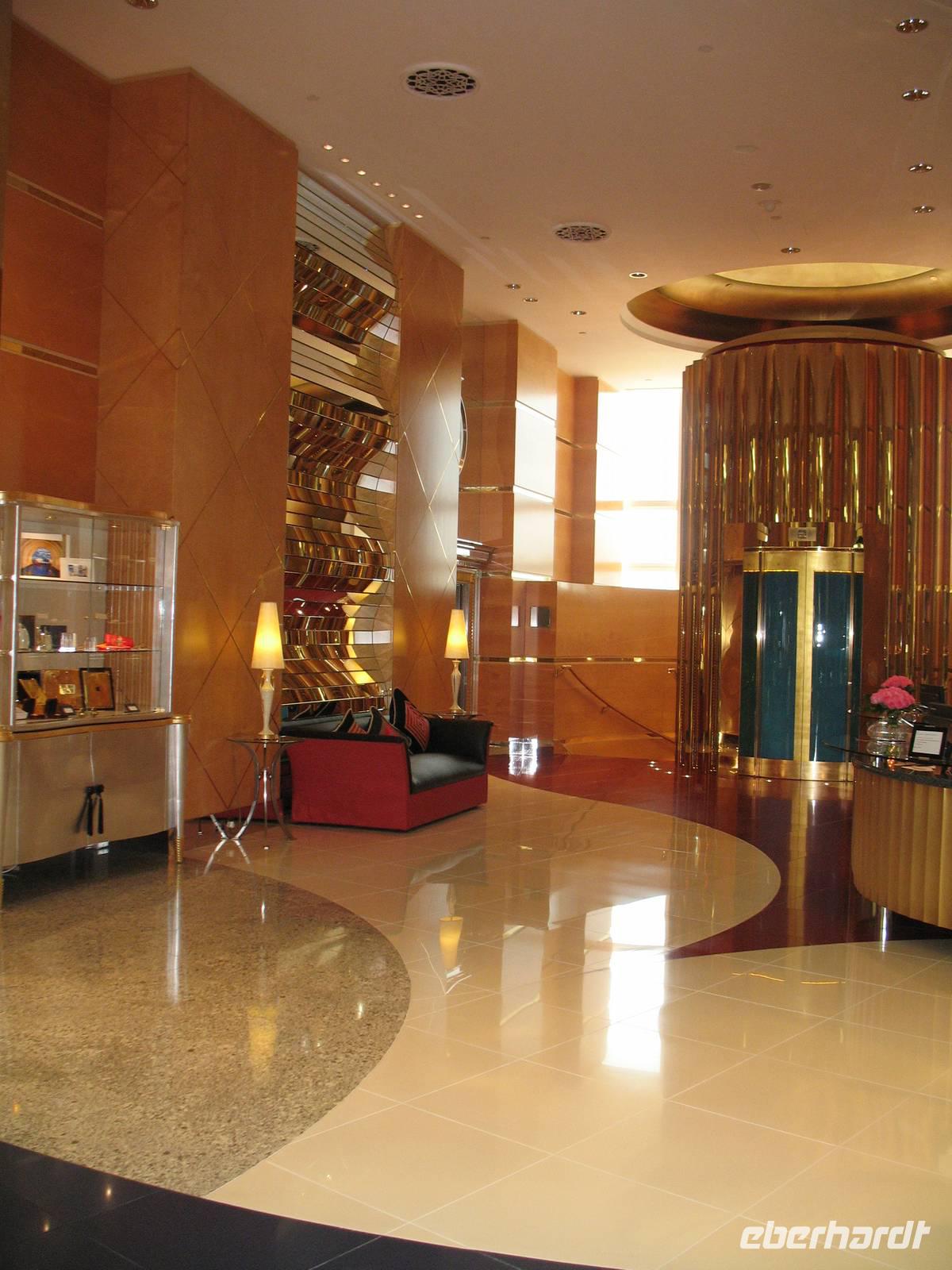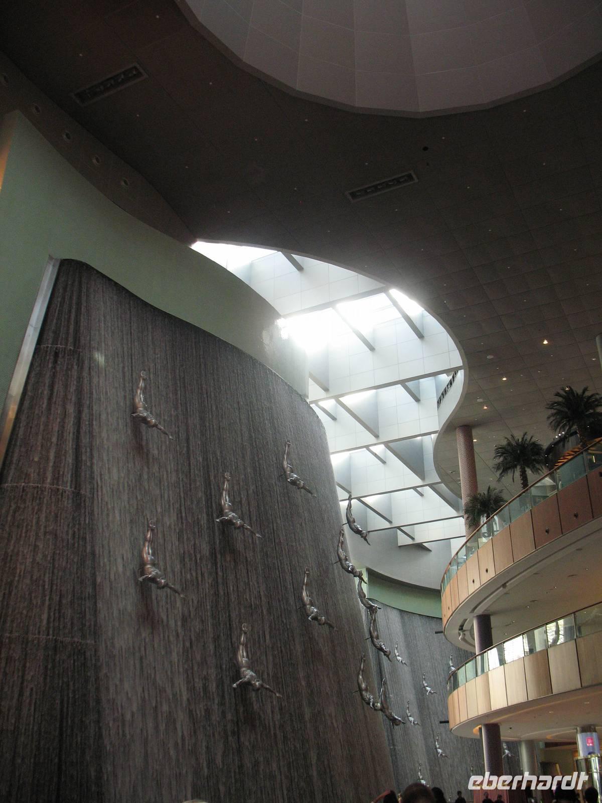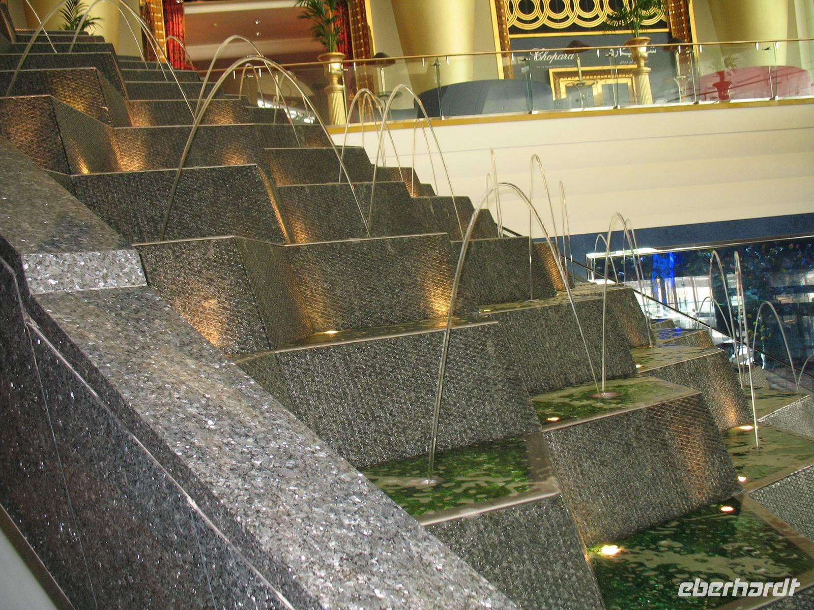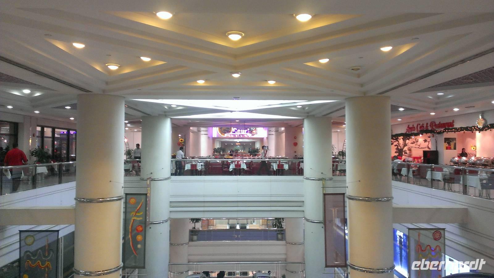 Gutgelaunt und mit einem leckeren Frühstück starten wir in den Tag. Während für die Gruppenmehrheit der fakultative Besuch zum Hotel Burj Al Arab auf dem Tagesprogramm steht, erkunden die anderen Gäste individuell die Besonderheiten der Wüstenstadt :-) Wir werden von unserer örtlichen Reiseleiterin Anja und unserem Busfahrer Omar abgeholt. Zuerst fahren wir zum nur wenige Meter vom Burj Al Arab entfernten Madinat Souk oder Madinat Jumeirah, welches auch als kleines Venedig von Dubai bezeichnet wird. Dies ist eine große Anlage mit Einkaufsmöglichkeiten und kleinem Souk-Gelände mit einem drei Kilometer langem Wasserkanal, kleinen Brücken und Holzbooten, so dass es wirklich an die italienische Stadt Venedig erinnert. Weiter erfahren wir, dass es viele Sehenswürdigkeiten in Dubai gibt, welche uns an andere Länder erinnern. Der Grund dafür liegt in der großen Internationalität des Landes. Viele Sehenswürdigkeiten wurden unter anderem von den jeweiligen Ländern, an welche es erinnert, gesponsert. Dabei soll sich natürlich auch an gewisse Richtlinien gehalten werden. Als Beispiel sei hier das Chrysler Building von New York genannt. New York hat Dubai beim Bau einer Nachbildung des Chrysler Buildings aufgrund positiver Werbung und Berichterstattung in der ganzen Welt unterstützt. Die Bedingung war jedoch, dass das Gebäude in Dubai nicht höher als das Original in New York sein darf. Das wiederum stellte für Dubai kein Problem dar, denn dann bauen sie getreu dem Motto "Bigger Better Dubai" einfach zwei Chrysler Buildings als Zwillingstürme nebeneinander :-) Ungefähr eine halbe Stunde später und mit einigen Souvenirs in der Tasche fahren wir um 12.00 Uhr zum Mittagessen im "Al Iwan Restaurant" im Burj Al Arab. Wie wir bereits gestern erfahren haben, stellt das Hotel ein Segelboot dar und es hat den Auftakt für den zunehmenden Tourismus in Dubai gebildet. Übersetzt bedeutet Burj "der Turm". Das Hotel Burj Al Arab soll ein 7-Sterne-Hotel sein. Manche Menschen sagen aber, ein 7-Sterne-Hotel gibt es doch gar nicht. Das Burj Al Arab ist auch kein 7-Sterne-Hotel, laut Hotelkategorie ist es offiziell ein 5-Sterne-Hotel. Aber es gibt jede Menge Hotelservice der Extraklasse und auch die Hotelausstattung ist ganz besonders, so dass dieses Hotel viel mehr zu bieten hat als andere 5-Sterne-Hotels. Somit darf es mit sieben Sternen werben und sich als 7-Sterne-Hotel bezeichnen, obwohl die höchste Hotelkategorie nur fünf Sterne umfasst. Dubai besitzt eine eigene Hotelkette mit Namen Jumeirah, zu welcher auch das Burj Al Arab gehört. Diese Hotelkette ist weltweit zu finden. Dazu gehört auch das wie eine Welle aussehende Jumeirah Beach Hotel, welches direkt vor dem Burj Al Arab steht. Das Besondere an diesem Hotel der 5-Sterne-Kategorie ist, dass es sehr schmal gebaut wurde. Die Suiten befinden sich in den Seitenwänden und auf jeden Balkon gibt es einen Whirlpool mit Sonnenschirm und zwei Sonnenliegen, Luxus pur also :-) Aber kommen wir wieder zum Hotel Burj Al Arab zurück, welches zudem einen Weltrekord hält, nämlich es ist das teuerste Hotel der Welt. Zum Beispiel kostet eine Nacht in der kleinen Suite mit 68 Quadratmetern stolze 1.500,- Euro. Bei solchen Beträgen wollen wir gar nicht wissen, was für einen Preis die großen Suiten mit einer Größe von fast 200 Quadratmetern aufweisen! Der Standardtransfer zum Hotel erfolgt im weißen Rolls Royce, welche alle mindestens einmal die Zahl 7 in ihren Kennzeichen aus fünf Zahlen aufweisen und besondere Kennzeichen wie 77777 oder 77700 besitzen. Wir wissen bereits, dass es sieben Emirate gibt. Die Menschen der Emirate sagen: "Seven seven seven number of the heaven!", was ausdrückt, dass 7 die Zahl des Himmels für sie ist. Somit wird die Zahl 7 hoch geschätzt, da die Vereinigung zu den sieben Emiraten eine positive Entwicklung für die Einheimischen zur Folge hatte. Um den Hoteleingang überhaupt zu erreichen, sind mehrere Sicherheitskontrollen zu passieren. Schon allein das Hotel ist pompös, das Buffet im "Al Iwan Restaurant" steht dem aber in nix nach. Es gibt jede Menge herzhafte und süße Speisen, alles schön angerichtet und sehr lecker. Wir lassen es uns einfach gut gehen :-) Nach dem Essen versuchen wir mit dem Fahrstuhl in höhere Etagen zu fahren, leider werden wir vom Wachpersonal davon abgehalten. Einen Versuch ist es dennoch wert gewesen. Am Nachmittag fahren wir zurück zum Hotel und nutzen unsere freie Zeit für einen Besuch des Jumeirah Touristenstrandes oder einfach nur zum Entspannen und Genießen! Gegen 19.00 Uhr treffen wir uns zum Abendessen abermals im Hotel-Restaurant "Bastakiya". Die Speisen sind abwechslungsreich und sehr lecker. Nach dem Essen trifft sich der Großteil der Reisegruppe, um gemeinsam zur Metro Station Al Fahidi zu gehen und mit der Metro zur Dubai Mall zu fahren. Natürlich ist auch die Dubai Metro ein Weltrekord, wie sollte es auch anders sein! Sie ist die längste fahrerlose Metro der Welt. Ein weitere Besonderheit besteht darin, dass es ein separates Frauenabteil gibt, wo keine Männer erlaubt sind. Die Frauen wiederum dürfen im Männerabteil mitfahren. Die Metro stoppt an allen Sehenswürdigkeiten, jede Haltestelle wird vor dem Ausstieg über Lautsprecher angekündigt. Zur Vereinfachung heißt die jeweilige Haltestelle genauso wie die Sehenswürdigkeit, an der sie hält. Das Streckennetz gibt es erst seit 2009 und sie ist die erste Metro im Land. Momentan umfasst sie zwei Metrolinien mit 44 Stationen. Die rote Linie mit 52,1 Kilometern und 29 Haltestellen verkehrt im Modernen Dubai und die grüne Linie mit 22,5 Kilometern im Alten Dubai. Die Metrofahrt allein ist schon ein Erlebnis :-) Wir sind rechtzeitig am Burj Khalifa, um uns die Wasserspiele Dubai Fountain vor der Dubai Mall bei Nacht anzuschauen. Die Wasserspiele finden ab 18.00 Uhr aller 30 Minuten zu unterschiedlichen Liedern für ungefähr fünf Minuten statt. Wir sind von diesem Schauspiel so begeistert, dass wir eine halb