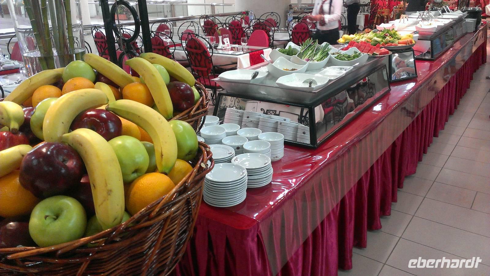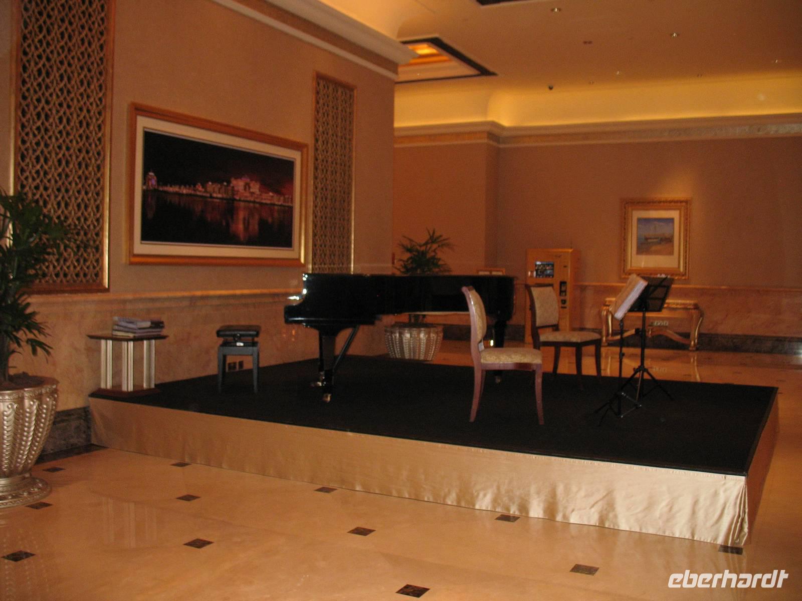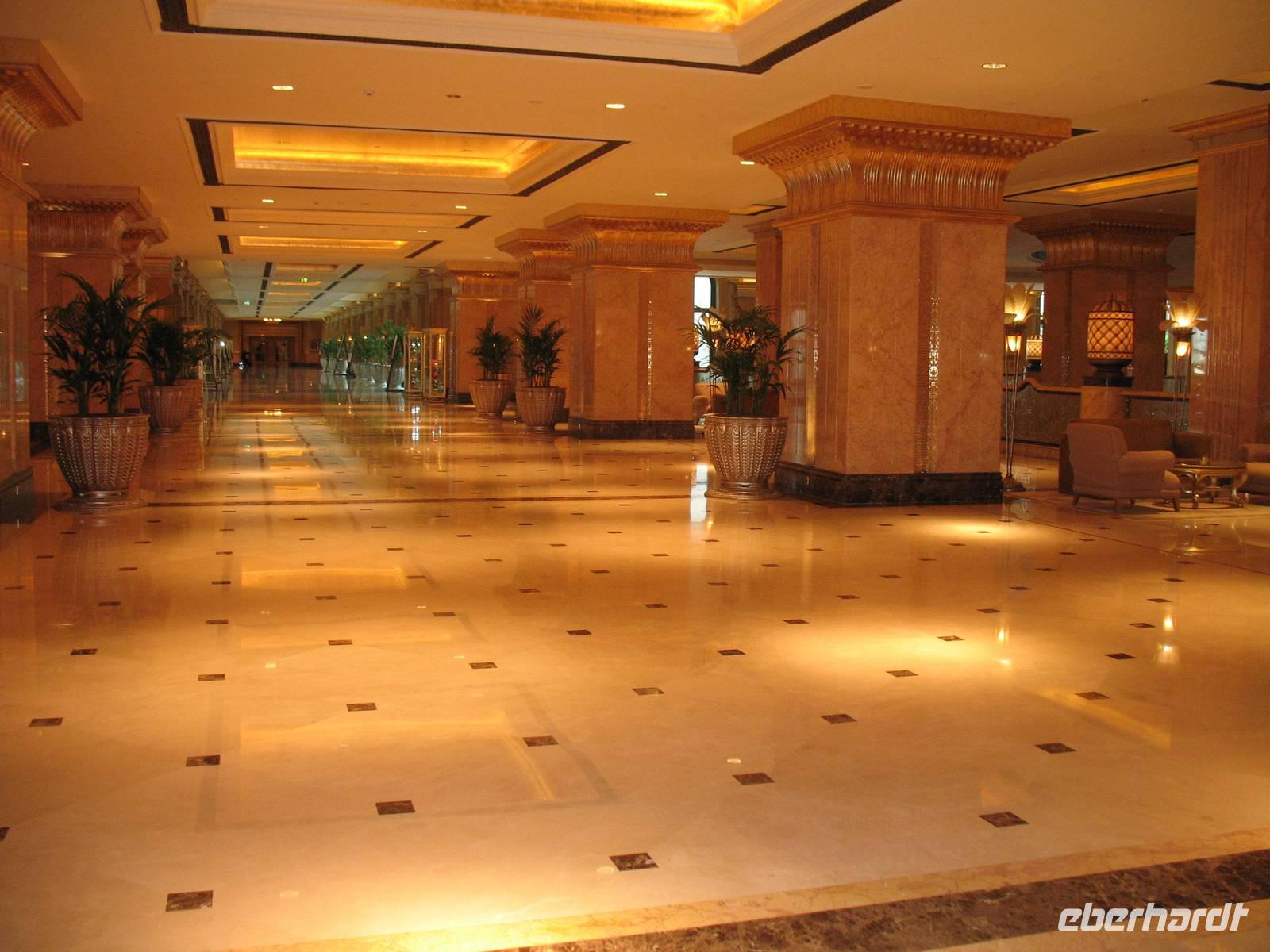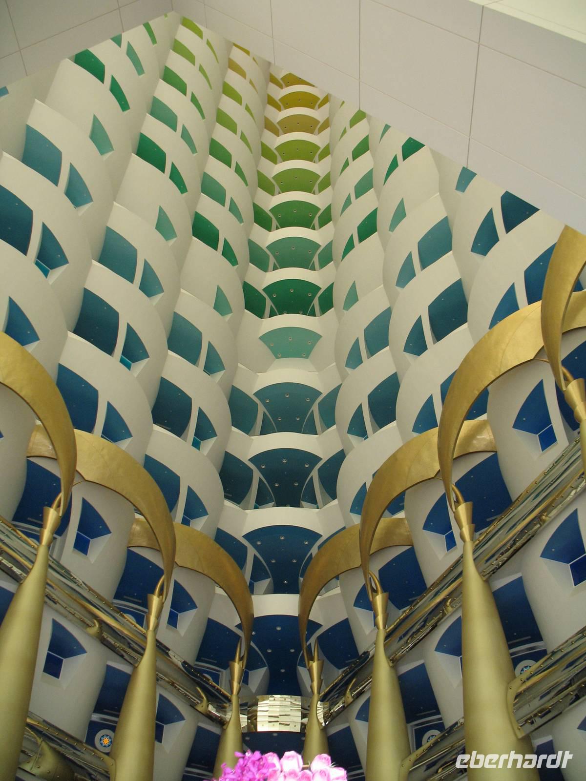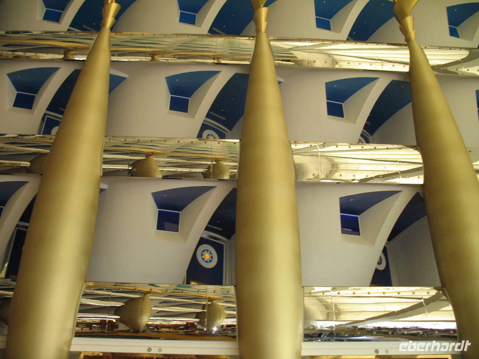 Gutgelaunt und mit einem leckeren Frühstück starten wir in den Tag. Während für die Gruppenmehrheit der fakultative Besuch zum Hotel Burj Al Arab auf dem Tagesprogramm steht, erkunden die anderen Gäste individuell die Besonderheiten der Wüstenstadt :-) Wir werden von unserer örtlichen Reiseleiterin Anja und unserem Busfahrer Omar abgeholt. Zuerst fahren wir zum nur wenige Meter vom Burj Al Arab entfernten Madinat Souk oder Madinat Jumeirah, welches auch als kleines Venedig von Dubai bezeichnet wird. Dies ist eine große Anlage mit Einkaufsmöglichkeiten und kleinem Souk-Gelände mit einem drei Kilometer langem Wasserkanal, kleinen Brücken und Holzbooten, so dass es wirklich an die italienische Stadt Venedig erinnert. Weiter erfahren wir, dass es viele Sehenswürdigkeiten in Dubai gibt, welche uns an andere Länder erinnern. Der Grund dafür liegt in der großen Internationalität des Landes. Viele Sehenswürdigkeiten wurden unter anderem von den jeweiligen Ländern, an welche es erinnert, gesponsert. Dabei soll sich natürlich auch an gewisse Richtlinien gehalten werden. Als Beispiel sei hier das Chrysler Building von New York genannt. New York hat Dubai beim Bau einer Nachbildung des Chrysler Buildings aufgrund positiver Werbung und Berichterstattung in der ganzen Welt unterstützt. Die Bedingung war jedoch, dass das Gebäude in Dubai nicht höher als das Original in New York sein darf. Das wiederum stellte für Dubai kein Problem dar, denn dann bauen sie getreu dem Motto "Bigger Better Dubai" einfach zwei Chrysler Buildings als Zwillingstürme nebeneinander :-) Ungefähr eine halbe Stunde später und mit einigen Souvenirs in der Tasche fahren wir um 12.00 Uhr zum Mittagessen im "Al Iwan Restaurant" im Burj Al Arab. Wie wir bereits gestern erfahren haben, stellt das Hotel ein Segelboot dar und es hat den Auftakt für den zunehmenden Tourismus in Dubai gebildet. Übersetzt bedeutet Burj "der Turm". Das Hotel Burj Al Arab soll ein 7-Sterne-Hotel sein. Manche Menschen sagen aber, ein 7-Sterne-Hotel gibt es doch gar nicht. Das Burj Al Arab ist auch kein 7-Sterne-Hotel, laut Hotelkategorie ist es offiziell ein 5-Sterne-Hotel. Aber es gibt jede Menge Hotelservice der Extraklasse und auch die Hotelausstattung ist ganz besonders, so dass dieses Hotel viel mehr zu bieten hat als andere 5-Sterne-Hotels. Somit darf es mit sieben Sternen werben und sich als 7-Sterne-Hotel bezeichnen, obwohl die höchste Hotelkategorie nur fünf Sterne umfasst. Dubai besitzt eine eigene Hotelkette mit Namen Jumeirah, zu welcher auch das Burj Al Arab gehört. Diese Hotelkette ist weltweit zu finden. Dazu gehört auch das wie eine Welle aussehende Jumeirah Beach Hotel, welches direkt vor dem Burj Al Arab steht. Das Besondere an diesem Hotel der 5-Sterne-Kategorie ist, dass es sehr schmal gebaut wurde. Die Suiten befinden sich in den Seitenwänden und auf jeden Balkon gibt es einen Whirlpool mit Sonnenschirm und zwei Sonnenliegen, Luxus pur also :-) Aber kommen wir wieder zum Hotel Burj Al Arab zurück, welches zudem einen Weltrekord hält, nämlich es ist das teuerste Hotel der Welt. Zum Beispiel kostet eine Nacht in der kleinen Suite mit 68 Quadratmetern stolze 1.500,- Euro. Bei solchen Beträgen wollen wir gar nicht wissen, was für einen Preis die großen Suiten mit einer Größe von fast 200 Quadratmetern aufweisen! Der Standardtransfer zum Hotel erfolgt im weißen Rolls Royce, welche alle mindestens einmal die Zahl 7 in ihren Kennzeichen aus fünf Zahlen aufweisen und besondere Kennzeichen wie 77777 oder 77700 besitzen. Wir wissen bereits, dass es sieben Emirate gibt. Die Menschen der Emirate sagen: "Seven seven seven number of the heaven!", was ausdrückt, dass 7 die Zahl des Himmels für sie ist. Somit wird die Zahl 7 hoch geschätzt, da die Vereinigung zu den sieben Emiraten eine positive Entwicklung für die Einheimischen zur Folge hatte. Um den Hoteleingang überhaupt zu erreichen, sind mehrere Sicherheitskontrollen zu passieren. Schon allein das Hotel ist pompös, das Buffet im "Al Iwan Restaurant" steht dem aber in nix nach. Es gibt jede Menge herzhafte und süße Speisen, alles schön angerichtet und sehr lecker. Wir lassen es uns einfach gut gehen :-) Nach dem Essen versuchen wir mit dem Fahrstuhl in höhere Etagen zu fahren, leider werden wir vom Wachpersonal davon abgehalten. Einen Versuch ist es dennoch wert gewesen. Am Nachmittag fahren wir zurück zum Hotel und nutzen unsere freie Zeit für einen Besuch des Jumeirah Touristenstrandes oder einfach nur zum Entspannen und Genießen! Gegen 19.00 Uhr treffen wir uns zum Abendessen abermals im Hotel-Restaurant "Bastakiya". Die Speisen sind abwechslungsreich und sehr lecker. Nach dem Essen trifft sich der Großteil der Reisegruppe, um gemeinsam zur Metro Station Al Fahidi zu gehen und mit der Metro zur Dubai Mall zu fahren. Natürlich ist auch die Dubai Metro ein Weltrekord, wie sollte es auch anders sein! Sie ist die längste fahrerlose Metro der Welt. Ein weitere Besonderheit besteht darin, dass es ein separates Frauenabteil gibt, wo keine Männer erlaubt sind. Die Frauen wiederum dürfen im Männerabteil mitfahren. Die Metro stoppt an allen Sehenswürdigkeiten, jede Haltestelle wird vor dem Ausstieg über Lautsprecher angekündigt. Zur Vereinfachung heißt die jeweilige Haltestelle genauso wie die Sehenswürdigkeit, an der sie hält. Das Streckennetz gibt es erst seit 2009 und sie ist die erste Metro im Land. Momentan umfasst sie zwei Metrolinien mit 44 Stationen. Die rote Linie mit 52,1 Kilometern und 29 Haltestellen verkehrt im Modernen Dubai und die grüne Linie mit 22,5 Kilometern im Alten Dubai. Die Metrofahrt allein ist schon ein Erlebnis :-) Wir sind rechtzeitig am Burj Khalifa, um uns die Wasserspiele Dubai Fountain vor der Dubai Mall bei Nacht anzuschauen. Die Wasserspiele finden ab 18.00 Uhr aller 30 Minuten zu unterschiedlichen Liedern für ungefähr fünf Minuten statt. Wir sind von diesem Schauspiel so begeistert, dass wir eine halb