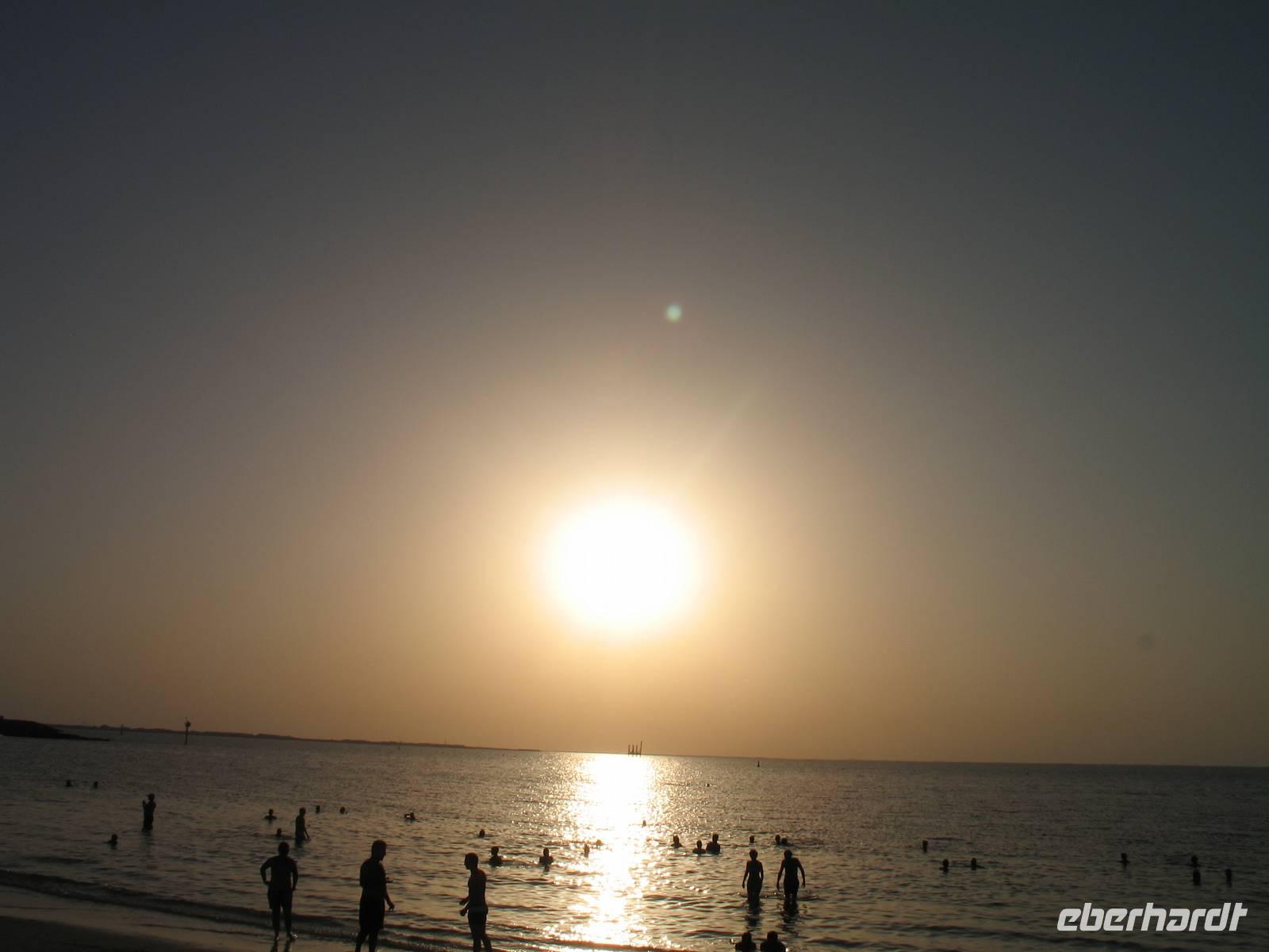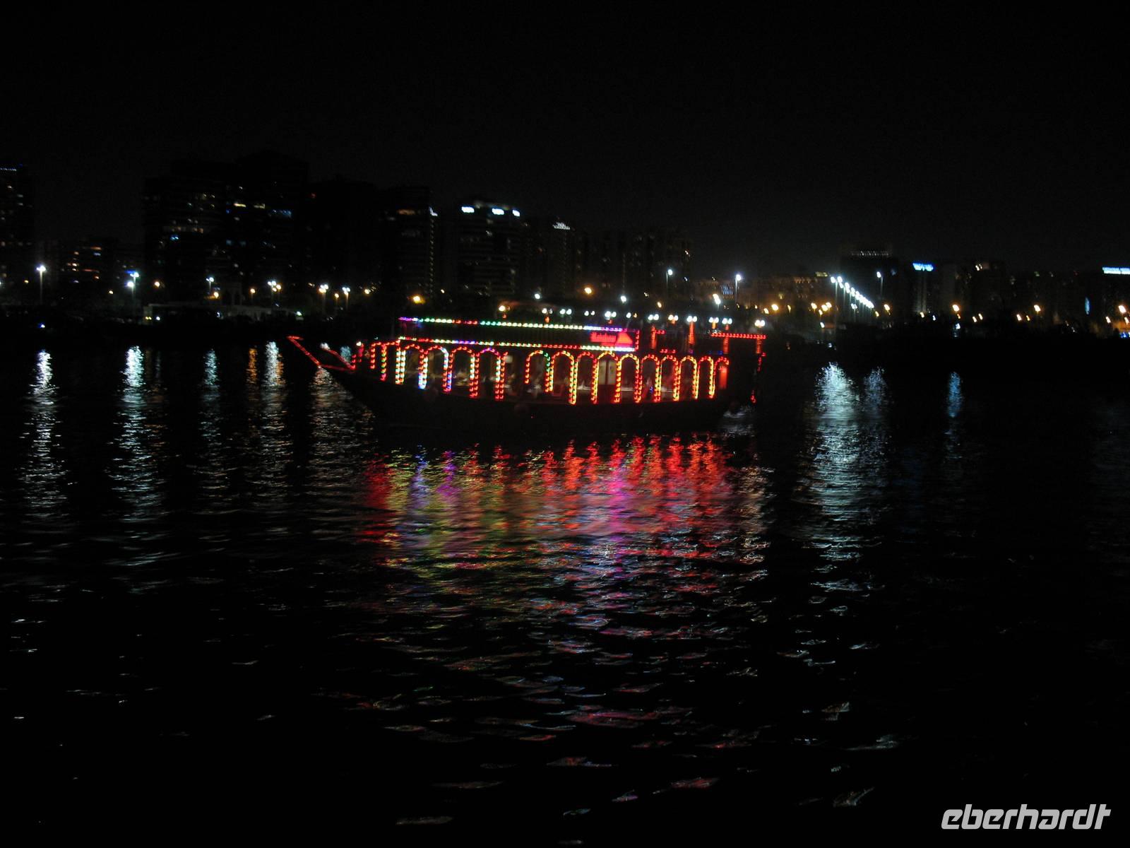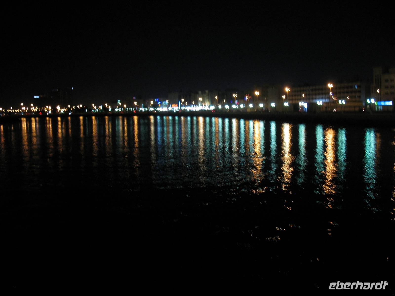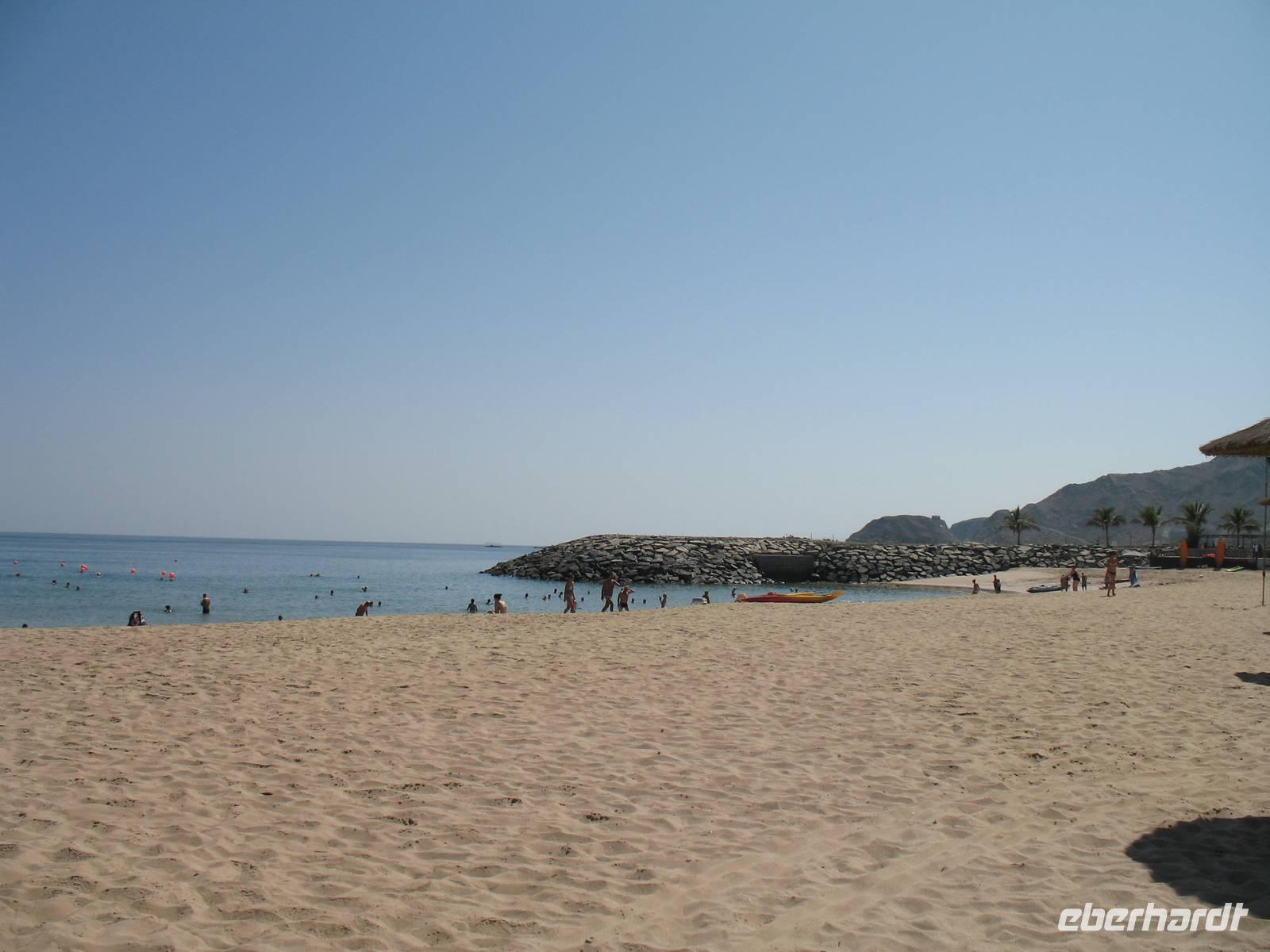 Kaum zu glauben, aber wir sind schon seit sechs Tagen in dieser unglaublichen Wüstenstadt unterwegs und haben bereits viele Highlights erlebt. Für einen Großteil der Gäste geht es heute zum fakultativen Besuch an die Ostküste zum Golf von Oman. Bis zum "Sandy Beach Hotel & Resort" in Fujairah fahren wir mehrere Kilometer. Auf unserem Weg legen wir einen kurzen Foto-Stopp an der Bidiyah Moschee ein. Perfekt zur Mittagszeit erreichen wir das "Sandy Beach Hotel & Resort", wo wir zu Mittag essen und unseren mehrstündigen Badeaufenthalt verbringen werden. Das Mittagessen ist abermals sehr lecker, besonders die Borschtsch-Suppe schmeckt uns gut. Danach entspannen wir am Pool oder am Strand. Der Sand ist so heiß, dass wir nur mit Badeschuhen darauf laufen können. Das Wasser ist ein wenig angenehmer, vielleicht ein oder zwei Grad "kühler" als in Dubai :-) Am Nachmittag fahren wir wieder zum Hotel zurück. Die Mehrheit der Gäste wird ein besonderes Abendessen bei einer Dhau Cruise zu sich nehmen. Die freie Zeit bis dahin nutzen wir unter anderem zum Karten schreiben, im Pool baden, durch die Stadt spazieren oder einfach nur zum Relaxen und Entspannen. Die Nicht-Teilnehmer der Dhau Fahrt erhalten wieder ein köstliches mehrere Gänge Menü in unserem geliebtem Hotel-Restaurant "Bastakiya". Um 19.30 Uhr trifft sich der andere Gruppenteil, um gemeinsam die rund 15 Minuten zur Anlegestelle für die Dhau Cruise am Dubai Creek zu laufen. Wir verbringen dann eine schöne Zeit mit leckerem Buffet auf der Dhau und genießen den Blick über Dubai mit den vielen anderen verschieden leuchtenden Schiffen. Nach rund zwei Stunden legen wir wieder am Steg an und laufen gemütlich zum Hotel zurück. Morgen fliegen wir bereits zurück nach Deutschland, es ist unglaublich wie schnell die Zeit vergeht. Natürlich wartet aber für einige Gäste noch ein toller Ausflug nach Al Ain am kommenden Tag.