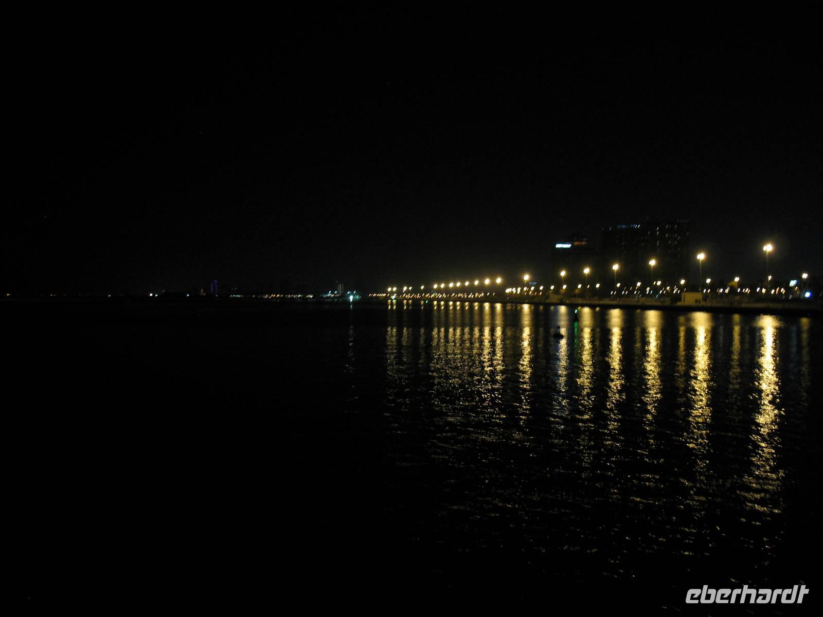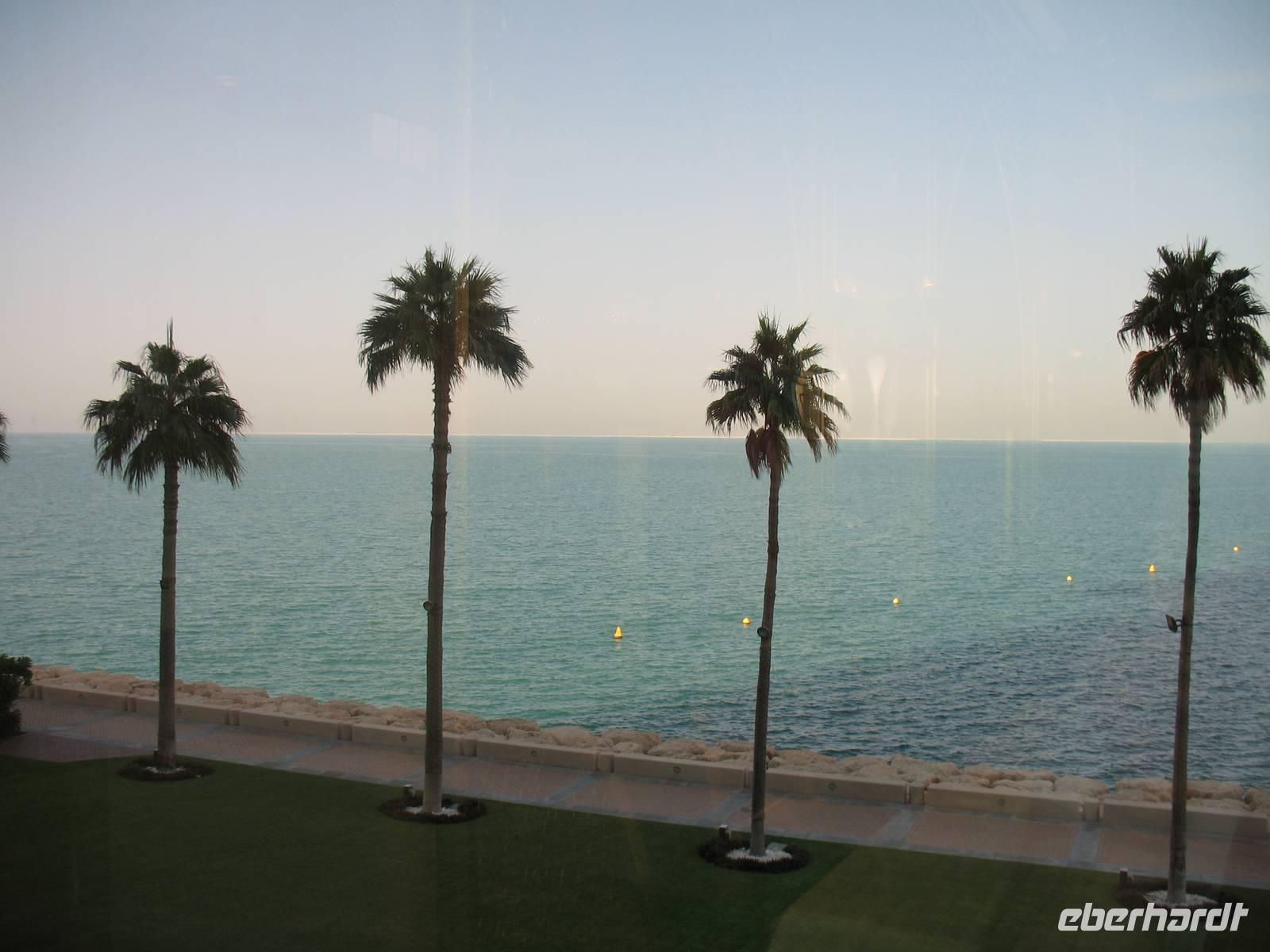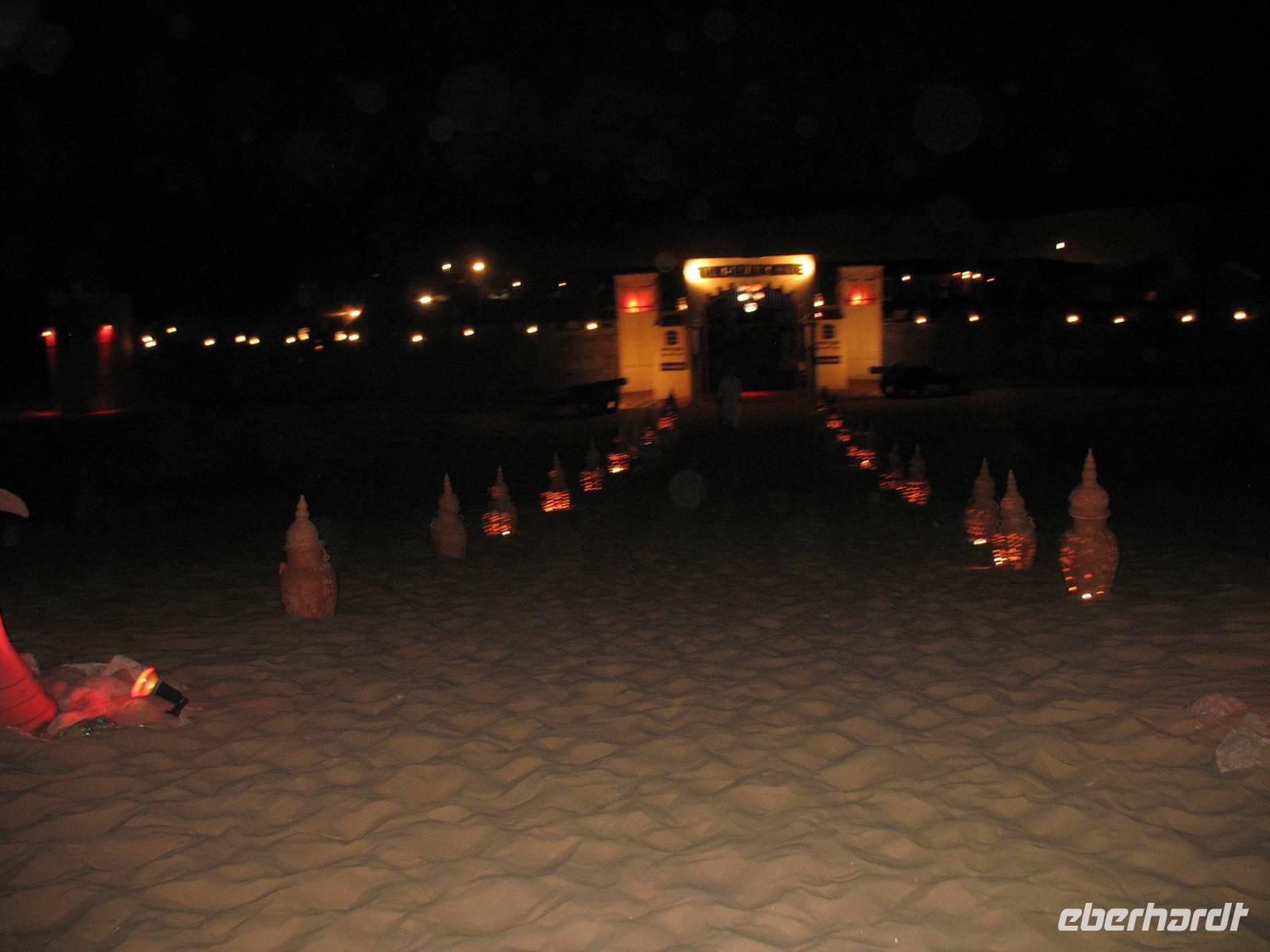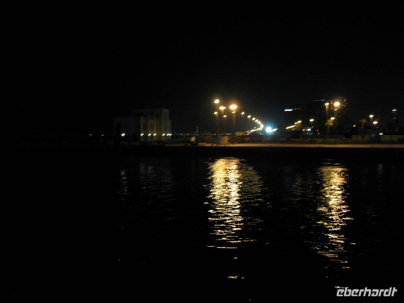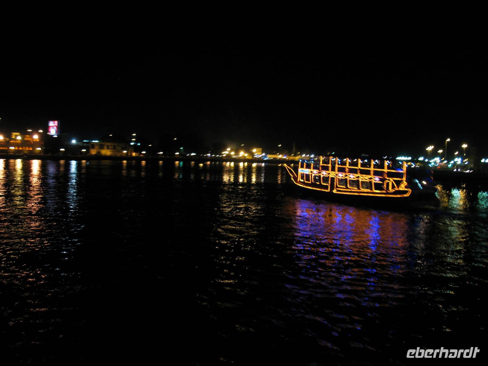Kaum zu glauben, aber wir sind schon seit sechs Tagen in dieser unglaublichen Wüstenstadt unterwegs und haben bereits viele Highlights erlebt. Für einen Großteil der Gäste geht es heute zum fakultativen Besuch an die Ostküste zum Golf von Oman. Bis zum "Sandy Beach Hotel & Resort" in Fujairah fahren wir mehrere Kilometer. Auf unserem Weg legen wir einen kurzen Foto-Stopp an der Bidiyah Moschee ein. Perfekt zur Mittagszeit erreichen wir das "Sandy Beach Hotel & Resort", wo wir zu Mittag essen und unseren mehrstündigen Badeaufenthalt verbringen werden. Das Mittagessen ist abermals sehr lecker, besonders die Borschtsch-Suppe schmeckt uns gut. Danach entspannen wir am Pool oder am Strand. Der Sand ist so heiß, dass wir nur mit Badeschuhen darauf laufen können. Das Wasser ist ein wenig angenehmer, vielleicht ein oder zwei Grad "kühler" als in Dubai :-) Am Nachmittag fahren wir wieder zum Hotel zurück. Die Mehrheit der Gäste wird ein besonderes Abendessen bei einer Dhau Cruise zu sich nehmen. Die freie Zeit bis dahin nutzen wir unter anderem zum Karten schreiben, im Pool baden, durch die Stadt spazieren oder einfach nur zum Relaxen und Entspannen. Die Nicht-Teilnehmer der Dhau Fahrt erhalten wieder ein köstliches mehrere Gänge Menü in unserem geliebtem Hotel-Restaurant "Bastakiya". Um 19.30 Uhr trifft sich der andere Gruppenteil, um gemeinsam die rund 15 Minuten zur Anlegestelle für die Dhau Cruise am Dubai Creek zu laufen. Wir verbringen dann eine schöne Zeit mit leckerem Buffet auf der Dhau und genießen den Blick über Dubai mit den vielen anderen verschieden leuchtenden Schiffen. Nach rund zwei Stunden legen wir wieder am Steg an und laufen gemütlich zum Hotel zurück. Morgen fliegen wir bereits zurück nach Deutschland, es ist unglaublich wie schnell die Zeit vergeht. Natürlich wartet aber für einige Gäste noch ein toller Ausflug nach Al Ain am kommenden Tag.