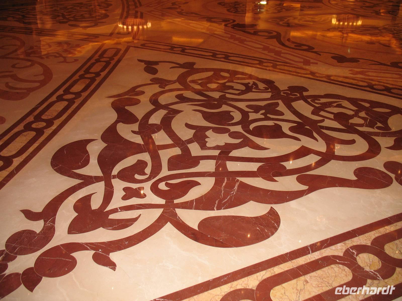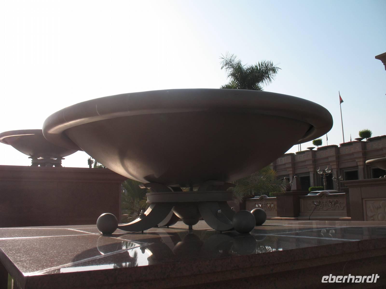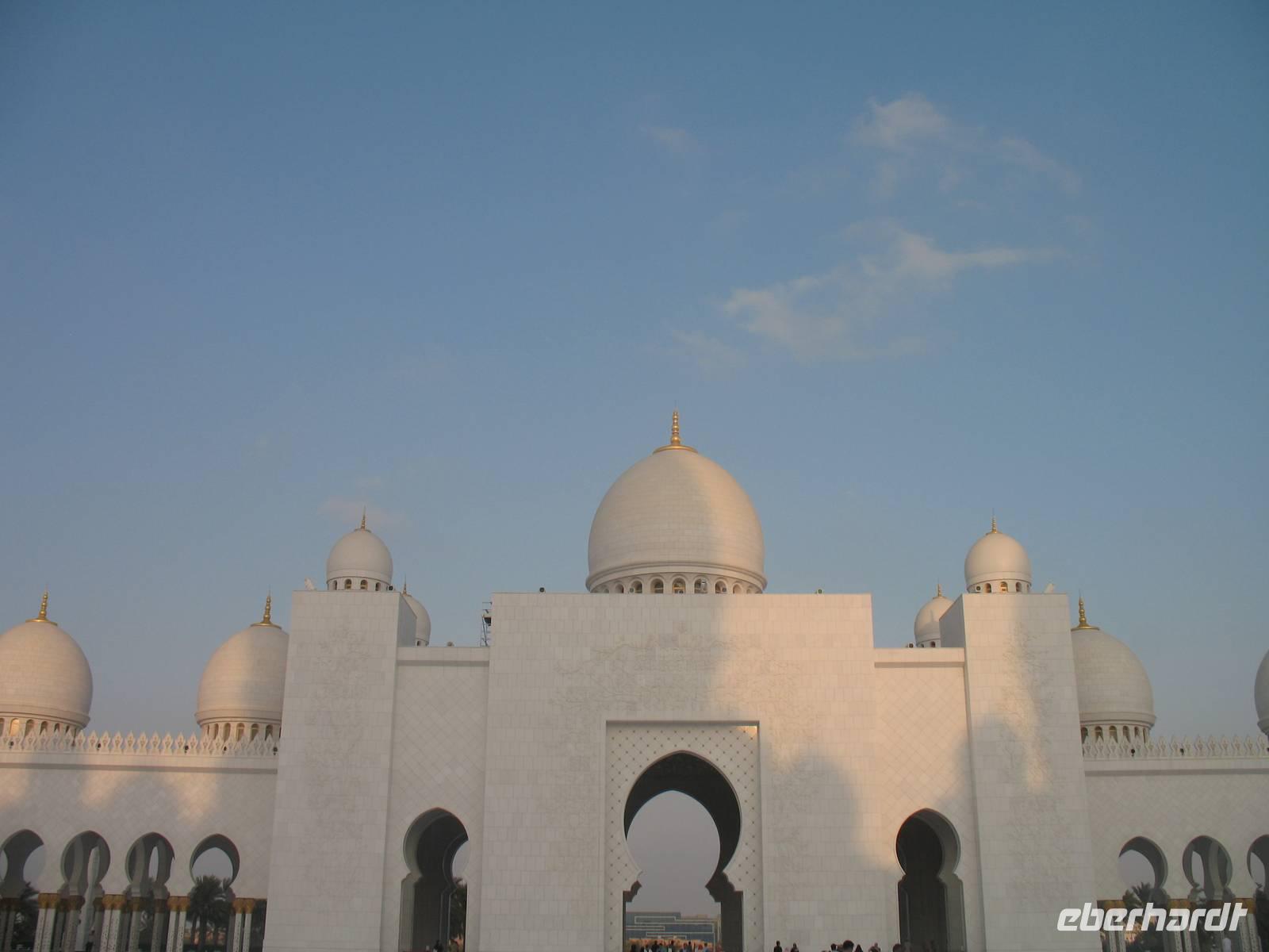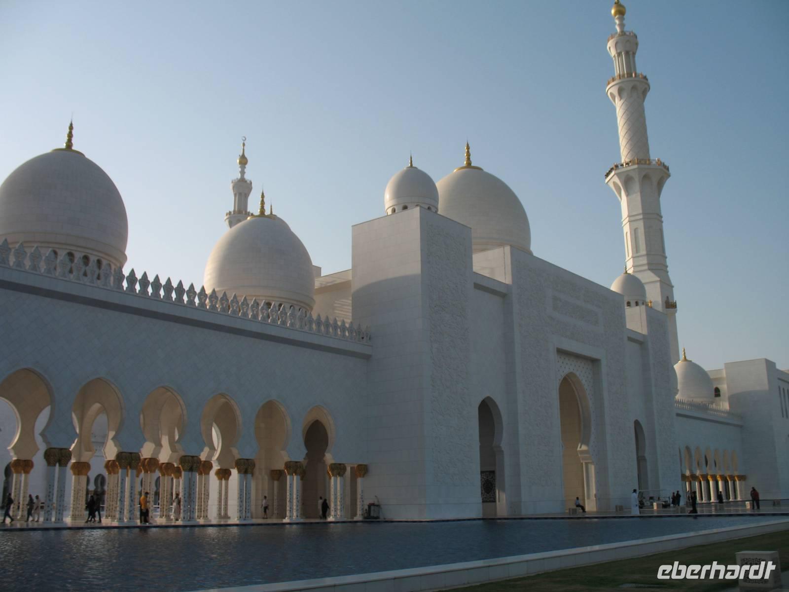 Unser heutiger Tagesprogrammpunkt zum "Bergfest" unserer Reise lautet Abu Dhabi! Übersetzt heißt Abu Dhabi "Vater der Gazelle". Das Frühstück im Hotel ist wie die Tage zuvor wieder sehr lecker und reichhaltig. Um 08.00 Uhr fahren wir pünktlich zum ersten Highlight, dem Falcon Hospital. Während der Fahrt erzählt uns Anja zum Beispiel spannende Informationen zum Alltag der Menschen oder auch zur Staatsbürgerschaft. Im Moment finden in Abu Dhabi sehr viele Neuerungen statt. Das wird besonders sichtbar, da sich aufgrund von Bauarbeiten Straßen und auch Einfahrten ständig ändern, so dass wir mit einem kleinen Umweg am Falcon Hospital ankommen. Dann werden wir von einer Mitarbeiterin der Klinik sehr kompetent durch das Gelände geführt und erfahren viele interessante Details zu den Falken. Wir haben sogar Glück und lernen die deutsche Gründerin Frau Dr. Müller kennen :-) Danach geht unsere Reise auch schon weiter und wir fahren zum Yas Marina Circuit, der Formel 1 Rennstrecke in Abu Dhabi. Natürlich folgen weitere Erzählungen zu Land und Leute von Anja unter anderem zum Verhalten mit dem Alkohol, Abu Dhabi, die Form der Begrüßung untereinander und natürlich auch zur Rennstrecke. Leider haben wir keinen Zutritt zur Strecke, aber trotzdem eine großartige Aussicht darüber. Nächster Programmpunkt ist das Heritage Village. Am Ufer genießen wir einen tollen Blick über die Stadt und kaufen kleine Andenken an den wenigen Souvenirständen. Gegen 14.00 Uhr folgt der Besuch des atemberaubenden Emirates Palace Hotel bei einer Teestunde mit herzhaften und süßen Speisen in entspannter schöner Atmosphäre. In einem solchen fast schon märchenhaften Ambiente schmecken uns diese wunderbar angerichteten Kleinigkeiten noch viel besser. Das Emirates Palace Hotel darf sich genauso wie das Burj Al Arab Hotel in Dubai als 7-Sterne-Hotel bezeichnen, da das Hotel eben auch eine Extraklasse im Service und Angebot aufweist. Das Hotel liegt an einem 1,3 Kilometer langem Privatstrand mit eigenem Yachthafen und zwei Hubschrauber-Landeplätzen. Anja erzählt uns auch, dass beispielsweise aller drei Tage rund 18.000 frische Blumen ins Hotel geliefert werden. Kein Wunder also, dass das Hotel täglich immens hohe Kosten hat! Im Anschluss fahren wir zur berühmten Shaikh Mohammad Bin Zayed Mosque. Während der Fahrt erhalten wir weitere Informationen zum Beispiel zur Moschee, zu Religion und Islam, zum Gebet und auch zum Ramadan. Es ist gewünscht, dass alle Frauen ihr Gesicht verhüllen, bevor sie die Moschee betreten. Diese Information haben die Reisegäste bereits in Deutschland erhalten, so dass alle Damen der Gruppe ihre mitgebrachten Tücher zur Hand haben :-) In der Moschee dürfen wir nur barfuß hineingehen. Die Moschee ist aus reinem Marmor von außen und kommt aus aller Welt, also alle Teile in der Moschee sind von einem Stück aus einem anderem Land, um dieses Mauerwerk entstehen zu lassen. Sie besteht aus vier Minaretten jeweils 107 Meter hoch. Insgesamt ist diese Moschee mit 83 Kuppeln bestückt und oben an den Spitzen mit 24-karätigem Gold verziert. Innendrin in der Moschee befindet sich mit rund 6.500 Quadratmetern der größte Teppich der Welt. Wir lassen uns von Anja im Eingangsbereich die Besonderheiten erklären. Während es einen großen Kronleuchter im Vorraum gibt, werden wir innendrin drei weitere riesengroße Kronleuchter sehen, wovon einer auch wieder ein Weltrekord ist. Zudem werden uns die Uhren in Form einer Sonne gezeigt, oben steht unser Kalenderjahr und Monat und darunter Jahr und Monat des islamischen Kalenders. Die Außenwände sind aus Marmor und die bunten Steine aus Naturstein. An den Wänden und im Boden sind Verzierungen, welche nicht gemalt oder gedruckt sind, sondern diese wurden sehr präzise und fein eingearbeitet. Kommen wir nun wieder zu den Weltrekorden :-) Zum Beispiel gehört der große Teppich dazu, welcher der weltgrößte handgeknöpfte Teppich aus dem Iran ist. Er wurde in drei Teilen nach Dubai geflogen, da er im Stück nicht im Flugzeug transportierbar war. Der Teppich ist sehr bunt und mit Blumen versehen, da sich die Menschen das Paradies ebenfalls bunt und grün vorstellen. Sie glauben nicht nur an Wege aus Wasser, sondern auch an Wege aus Milch und Honig. Diese Wege sind sowohl in den Säulen oder auch in der Gebetswand als kleine leuchtente Linien erkennbar. Im Teppich sind auch Linien im Abstand von 1,5 Metern sichtbar. Diese dienen aber als Gebetslinien oder auch Sitzplätze zum Beten. Es wird immer Schulter an Schulter gebetet, so dass insgesamt mit dem Außenbereich zusammen rund 40.000 Menschen in der Moschee Platz nehmen können. Dies wird besonders beim Ende des Ramadan genutzt. Das Hauptmuster im Teppich findet sich fast als Spiegelbild in der Decke wieder. Weiterhin wurde der Kronleuchter in den Teppichfarben gewählt. Der Kronleuchter hat eine Länge von 15 Metern und einen Durchmesser von 10 Metern. Insgesamt gibt es sieben Kronleuchter in der Moschee, wobei derjenige in der Hauptkuppel der längste, größte und mit 9,6 Tonnen der schwerste Kronleuchter ist. Er wurde in Deutschland gefertigt und ist vollkommen mit Swarovski-Steinen aus Österreich versehen. Die Gebetswand Qibla ist nach Mekka ausgerichtet. In der Mitte steht das arabische Wort für den Gott Allah und rundherum sind 100 Blüten mit Attributen, welche den Gott Allah beschreiben wie Allah der Große oder Allah der Starke. Offiziell gibt es für Allah 99 Attribute, folglich ist eine Blüte ohne Attribut. Die Geschichte dazu ist, dass der Prophet Mohammad bei seiner Reise durch die Wüstenfelder von seinem besten Freund dem Kamel mit dessen Leben vor dem Bösen beschützt wurde. Aus Dankbarkeit dafür hat der Prophet dem Kamel jeden Tag ein Attribut für den Gott Allah verraten, welcher er eigentlich alle für sich behalten sollte, dennoch hat er sie dem Kamel erzählt. Somit sind die 99 Attribute alle bekannt gewesen. Jedoch hat es eine Eigenschaft gegeben, welche de