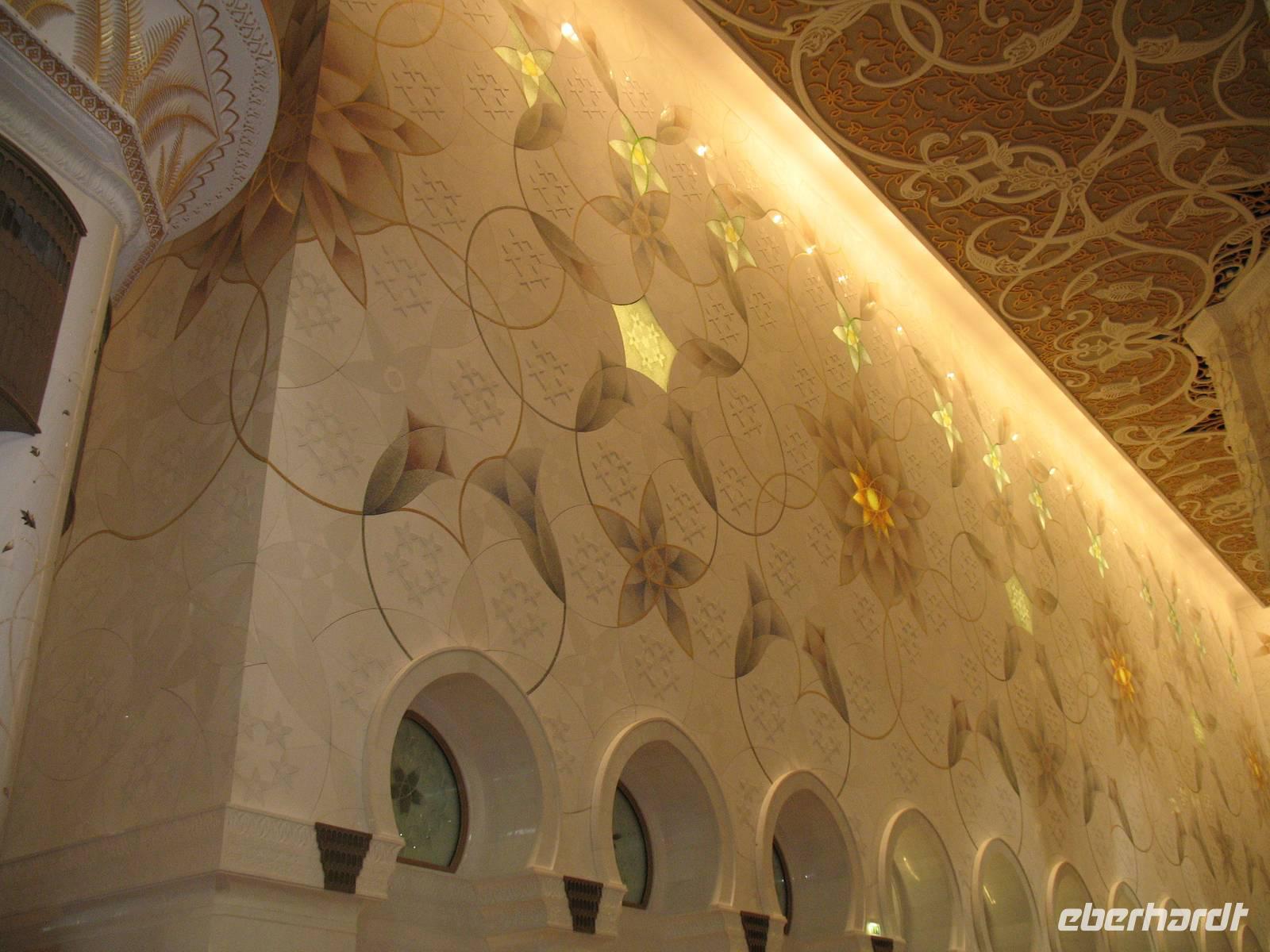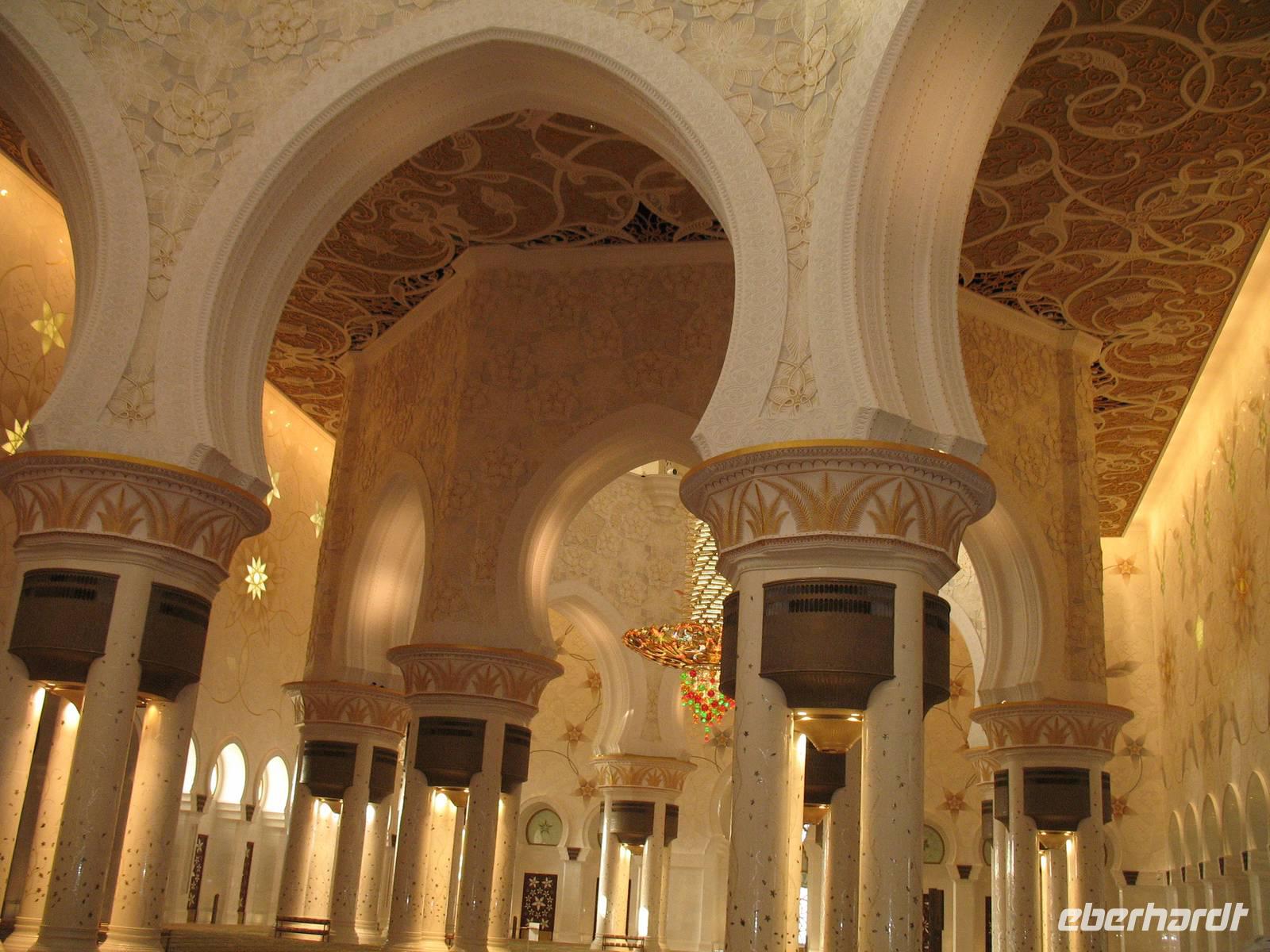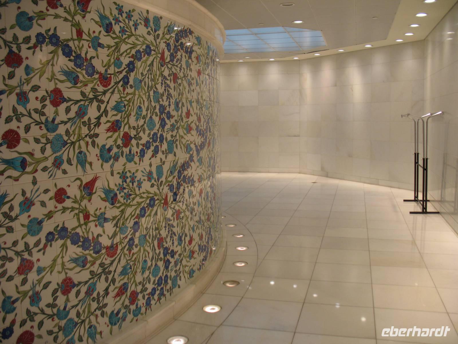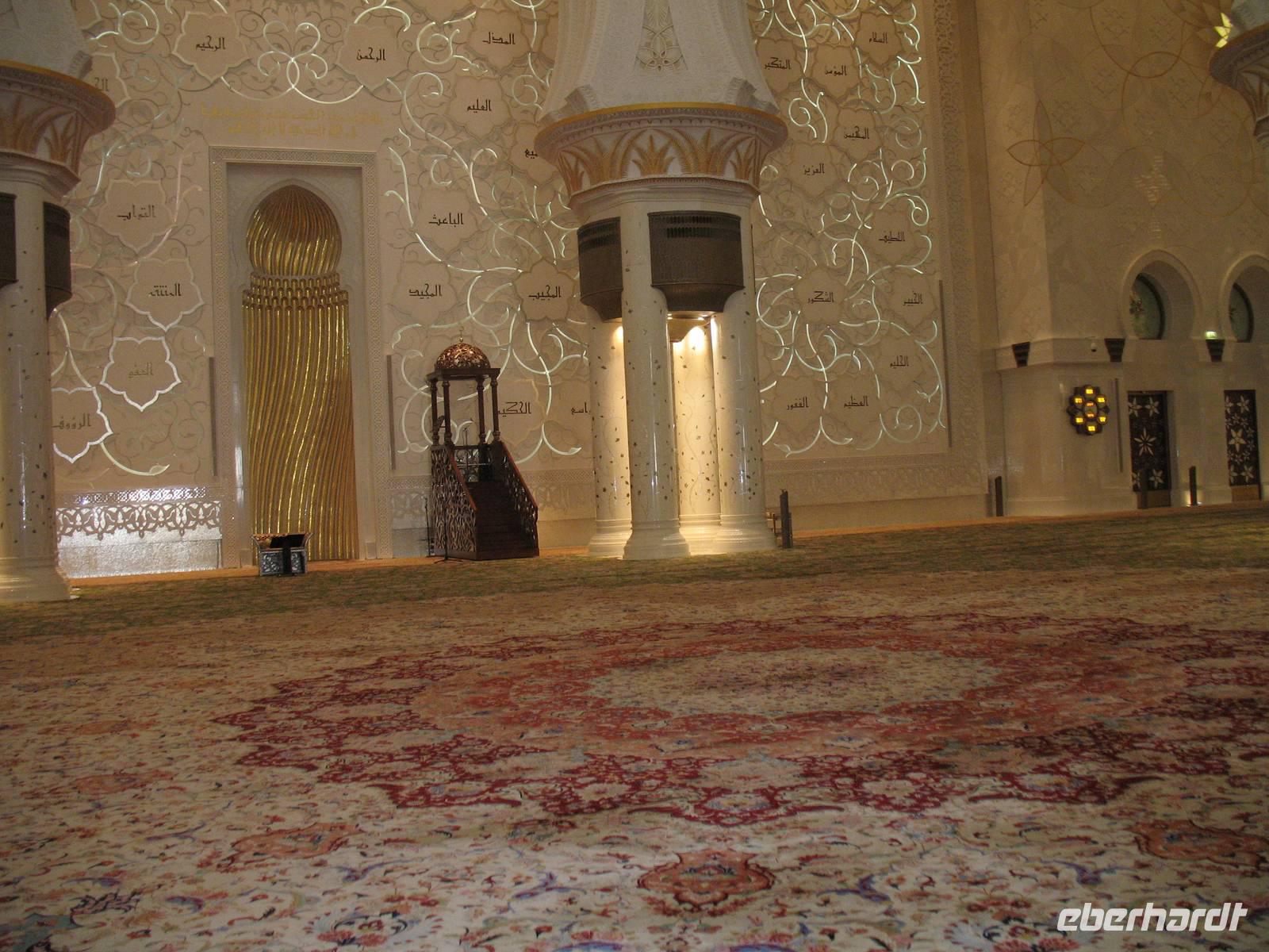 Unser heutiger Tagesprogrammpunkt zum "Bergfest" unserer Reise lautet Abu Dhabi! Übersetzt heißt Abu Dhabi "Vater der Gazelle". Das Frühstück im Hotel ist wie die Tage zuvor wieder sehr lecker und reichhaltig. Um 08.00 Uhr fahren wir pünktlich zum ersten Highlight, dem Falcon Hospital. Während der Fahrt erzählt uns Anja zum Beispiel spannende Informationen zum Alltag der Menschen oder auch zur Staatsbürgerschaft. Im Moment finden in Abu Dhabi sehr viele Neuerungen statt. Das wird besonders sichtbar, da sich aufgrund von Bauarbeiten Straßen und auch Einfahrten ständig ändern, so dass wir mit einem kleinen Umweg am Falcon Hospital ankommen. Dann werden wir von einer Mitarbeiterin der Klinik sehr kompetent durch das Gelände geführt und erfahren viele interessante Details zu den Falken. Wir haben sogar Glück und lernen die deutsche Gründerin Frau Dr. Müller kennen :-) Danach geht unsere Reise auch schon weiter und wir fahren zum Yas Marina Circuit, der Formel 1 Rennstrecke in Abu Dhabi. Natürlich folgen weitere Erzählungen zu Land und Leute von Anja unter anderem zum Verhalten mit dem Alkohol, Abu Dhabi, die Form der Begrüßung untereinander und natürlich auch zur Rennstrecke. Leider haben wir keinen Zutritt zur Strecke, aber trotzdem eine großartige Aussicht darüber. Nächster Programmpunkt ist das Heritage Village. Am Ufer genießen wir einen tollen Blick über die Stadt und kaufen kleine Andenken an den wenigen Souvenirständen. Gegen 14.00 Uhr folgt der Besuch des atemberaubenden Emirates Palace Hotel bei einer Teestunde mit herzhaften und süßen Speisen in entspannter schöner Atmosphäre. In einem solchen fast schon märchenhaften Ambiente schmecken uns diese wunderbar angerichteten Kleinigkeiten noch viel besser. Das Emirates Palace Hotel darf sich genauso wie das Burj Al Arab Hotel in Dubai als 7-Sterne-Hotel bezeichnen, da das Hotel eben auch eine Extraklasse im Service und Angebot aufweist. Das Hotel liegt an einem 1,3 Kilometer langem Privatstrand mit eigenem Yachthafen und zwei Hubschrauber-Landeplätzen. Anja erzählt uns auch, dass beispielsweise aller drei Tage rund 18.000 frische Blumen ins Hotel geliefert werden. Kein Wunder also, dass das Hotel täglich immens hohe Kosten hat! Im Anschluss fahren wir zur berühmten Shaikh Mohammad Bin Zayed Mosque. Während der Fahrt erhalten wir weitere Informationen zum Beispiel zur Moschee, zu Religion und Islam, zum Gebet und auch zum Ramadan. Es ist gewünscht, dass alle Frauen ihr Gesicht verhüllen, bevor sie die Moschee betreten. Diese Information haben die Reisegäste bereits in Deutschland erhalten, so dass alle Damen der Gruppe ihre mitgebrachten Tücher zur Hand haben :-) In der Moschee dürfen wir nur barfuß hineingehen. Die Moschee ist aus reinem Marmor von außen und kommt aus aller Welt, also alle Teile in der Moschee sind von einem Stück aus einem anderem Land, um dieses Mauerwerk entstehen zu lassen. Sie besteht aus vier Minaretten jeweils 107 Meter hoch. Insgesamt ist diese Moschee mit 83 Kuppeln bestückt und oben an den Spitzen mit 24-karätigem Gold verziert. Innendrin in der Moschee befindet sich mit rund 6.500 Quadratmetern der größte Teppich der Welt. Wir lassen uns von Anja im Eingangsbereich die Besonderheiten erklären. Während es einen großen Kronleuchter im Vorraum gibt, werden wir innendrin drei weitere riesengroße Kronleuchter sehen, wovon einer auch wieder ein Weltrekord ist. Zudem werden uns die Uhren in Form einer Sonne gezeigt, oben steht unser Kalenderjahr und Monat und darunter Jahr und Monat des islamischen Kalenders. Die Außenwände sind aus Marmor und die bunten Steine aus Naturstein. An den Wänden und im Boden sind Verzierungen, welche nicht gemalt oder gedruckt sind, sondern diese wurden sehr präzise und fein eingearbeitet. Kommen wir nun wieder zu den Weltrekorden :-) Zum Beispiel gehört der große Teppich dazu, welcher der weltgrößte handgeknöpfte Teppich aus dem Iran ist. Er wurde in drei Teilen nach Dubai geflogen, da er im Stück nicht im Flugzeug transportierbar war. Der Teppich ist sehr bunt und mit Blumen versehen, da sich die Menschen das Paradies ebenfalls bunt und grün vorstellen. Sie glauben nicht nur an Wege aus Wasser, sondern auch an Wege aus Milch und Honig. Diese Wege sind sowohl in den Säulen oder auch in der Gebetswand als kleine leuchtente Linien erkennbar. Im Teppich sind auch Linien im Abstand von 1,5 Metern sichtbar. Diese dienen aber als Gebetslinien oder auch Sitzplätze zum Beten. Es wird immer Schulter an Schulter gebetet, so dass insgesamt mit dem Außenbereich zusammen rund 40.000 Menschen in der Moschee Platz nehmen können. Dies wird besonders beim Ende des Ramadan genutzt. Das Hauptmuster im Teppich findet sich fast als Spiegelbild in der Decke wieder. Weiterhin wurde der Kronleuchter in den Teppichfarben gewählt. Der Kronleuchter hat eine Länge von 15 Metern und einen Durchmesser von 10 Metern. Insgesamt gibt es sieben Kronleuchter in der Moschee, wobei derjenige in der Hauptkuppel der längste, größte und mit 9,6 Tonnen der schwerste Kronleuchter ist. Er wurde in Deutschland gefertigt und ist vollkommen mit Swarovski-Steinen aus Österreich versehen. Die Gebetswand Qibla ist nach Mekka ausgerichtet. In der Mitte steht das arabische Wort für den Gott Allah und rundherum sind 100 Blüten mit Attributen, welche den Gott Allah beschreiben wie Allah der Große oder Allah der Starke. Offiziell gibt es für Allah 99 Attribute, folglich ist eine Blüte ohne Attribut. Die Geschichte dazu ist, dass der Prophet Mohammad bei seiner Reise durch die Wüstenfelder von seinem besten Freund dem Kamel mit dessen Leben vor dem Bösen beschützt wurde. Aus Dankbarkeit dafür hat der Prophet dem Kamel jeden Tag ein Attribut für den Gott Allah verraten, welcher er eigentlich alle für sich behalten sollte, dennoch hat er sie dem Kamel erzählt. Somit sind die 99 Attribute alle bekannt gewesen. Jedoch hat es eine Eigenschaft gegeben, welche de